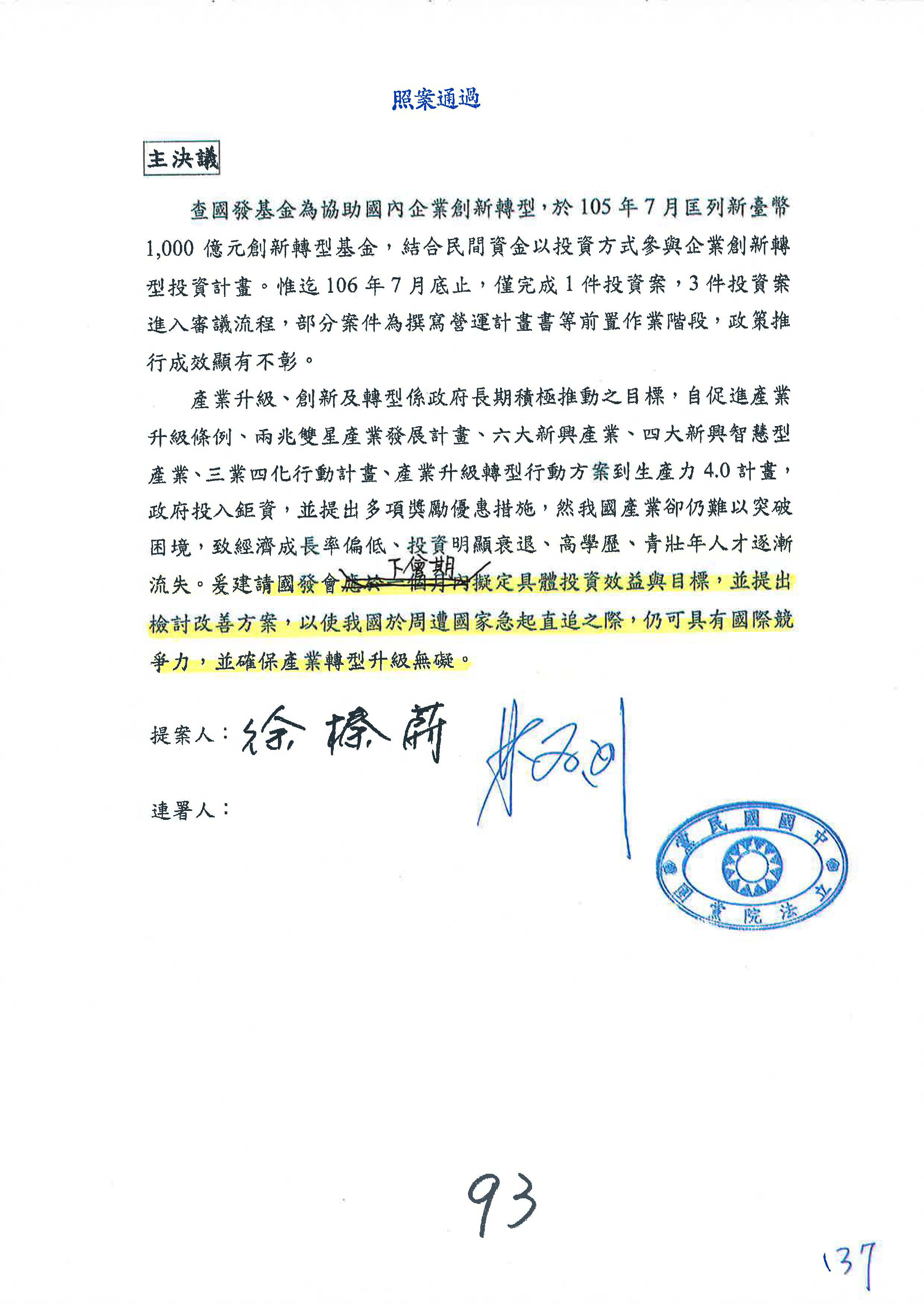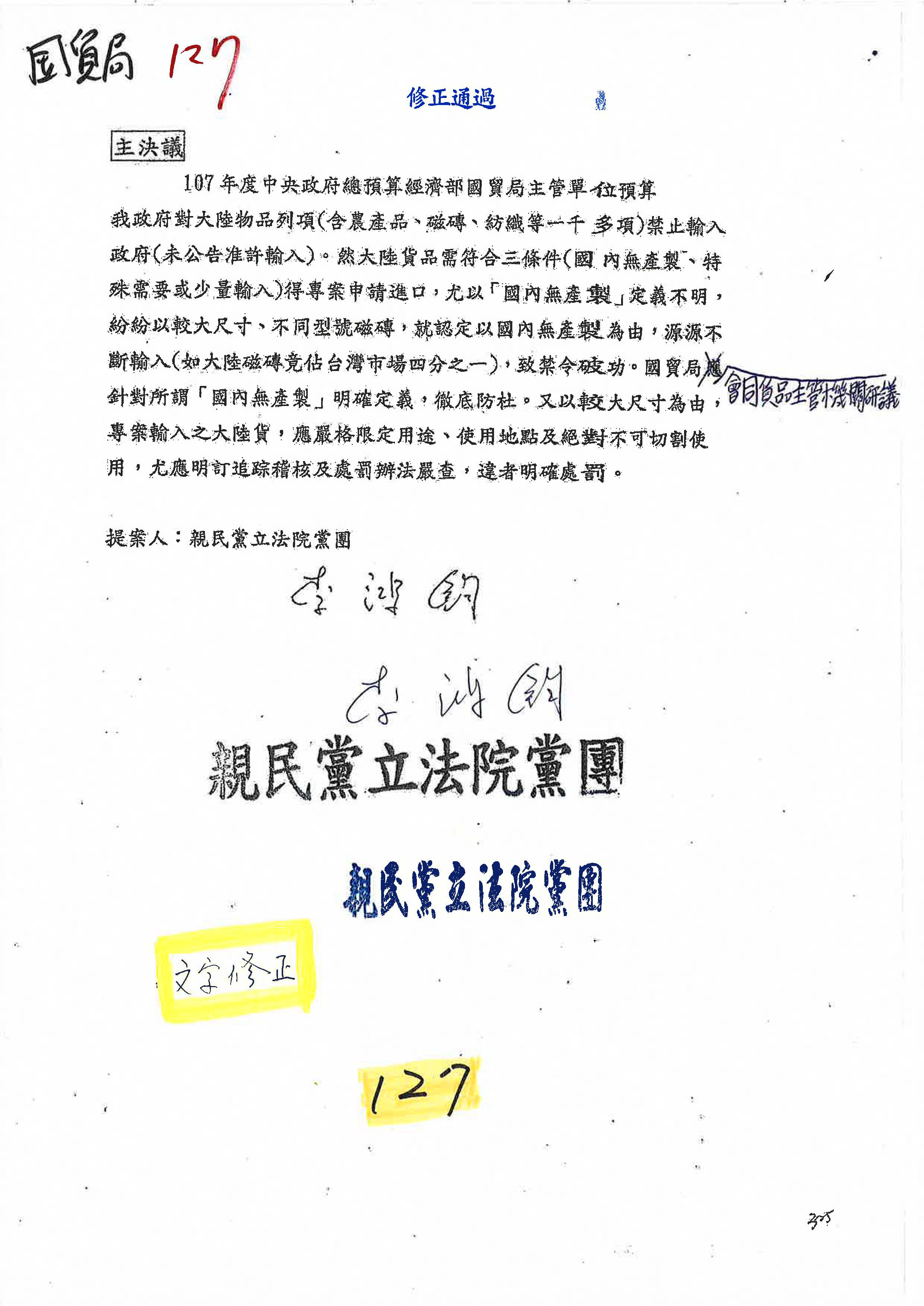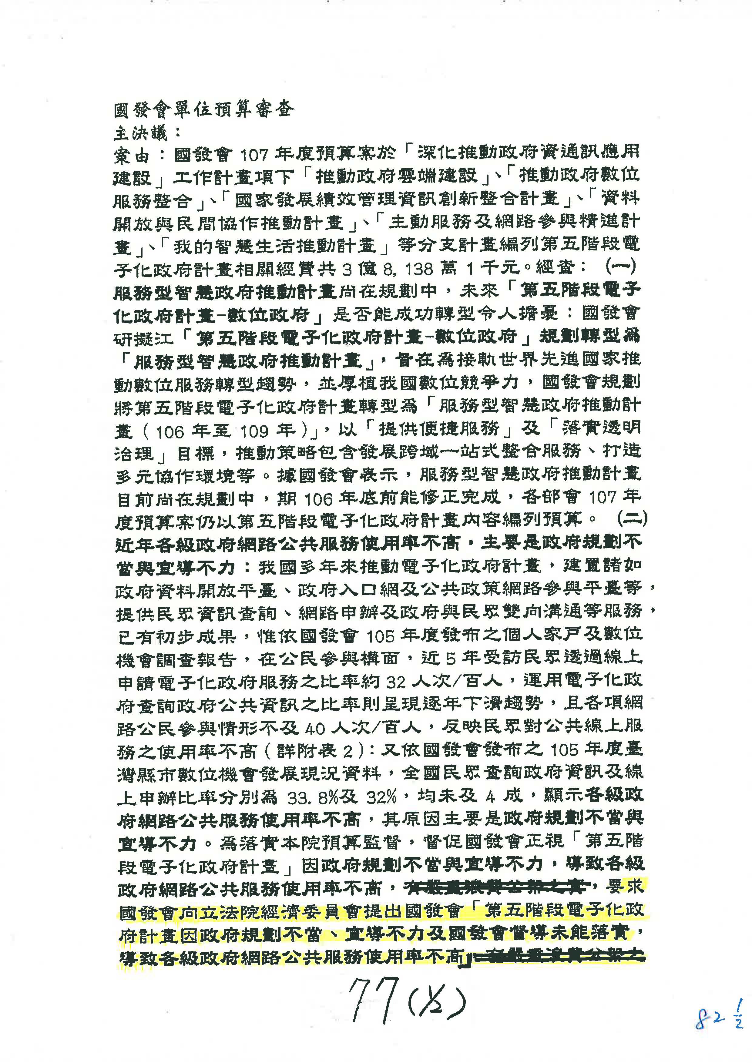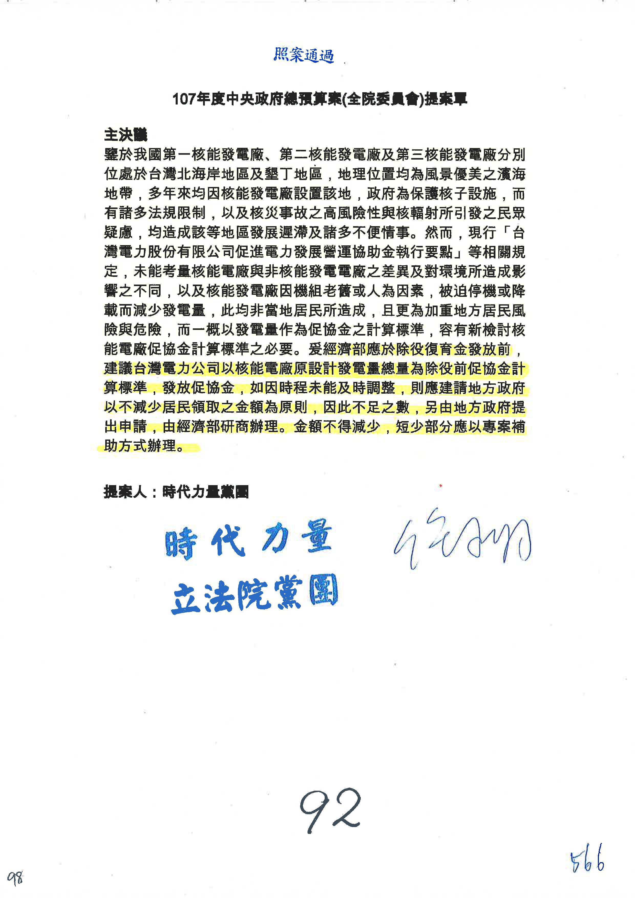主席:報告院會,外交及國防委員會審查部分除保留部分外,其餘均照協商結論通過。