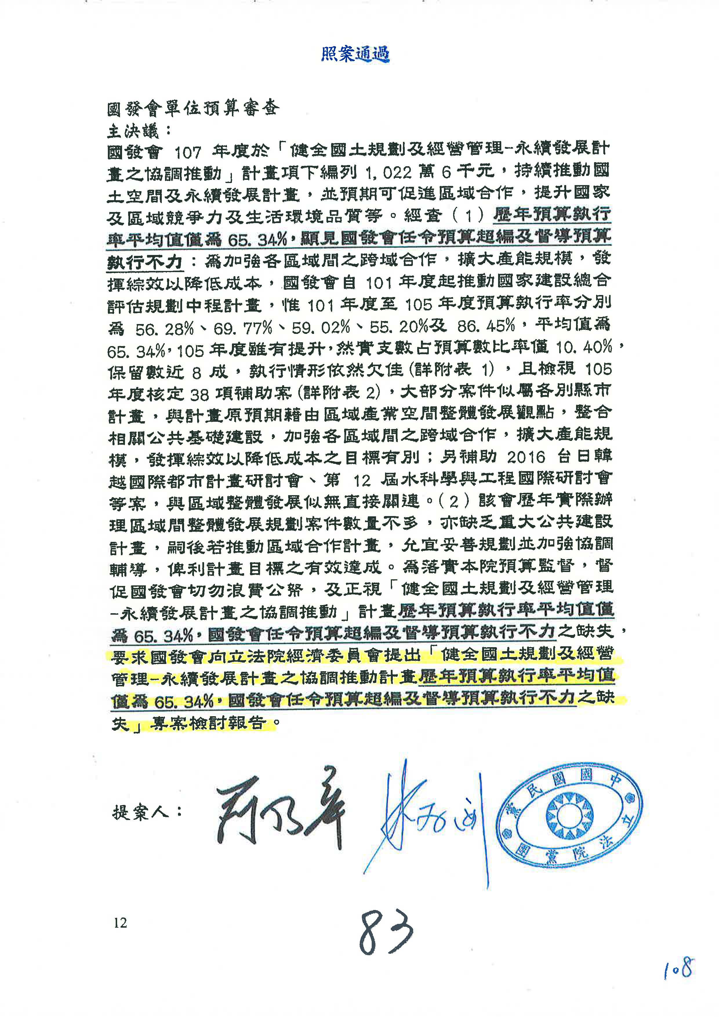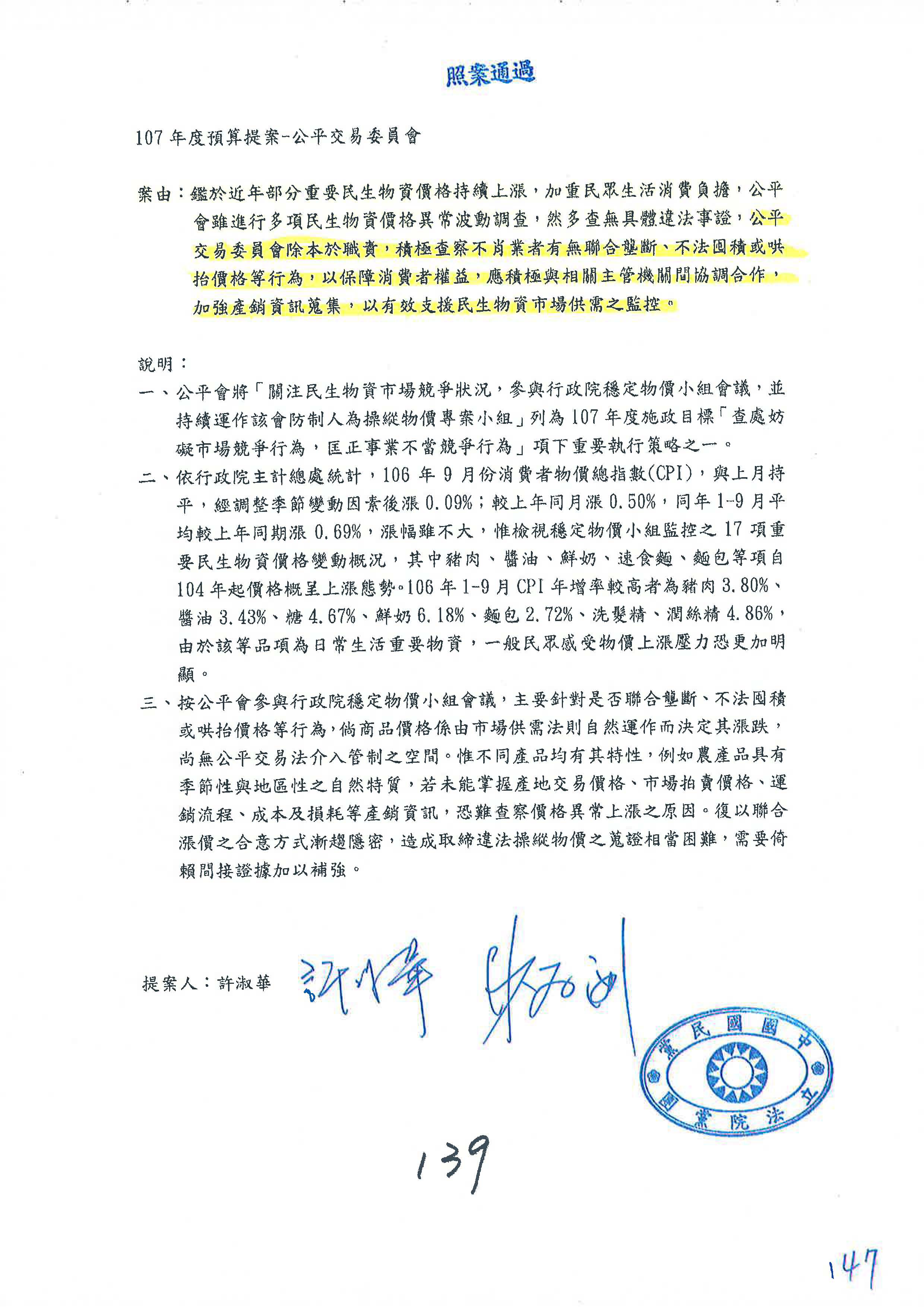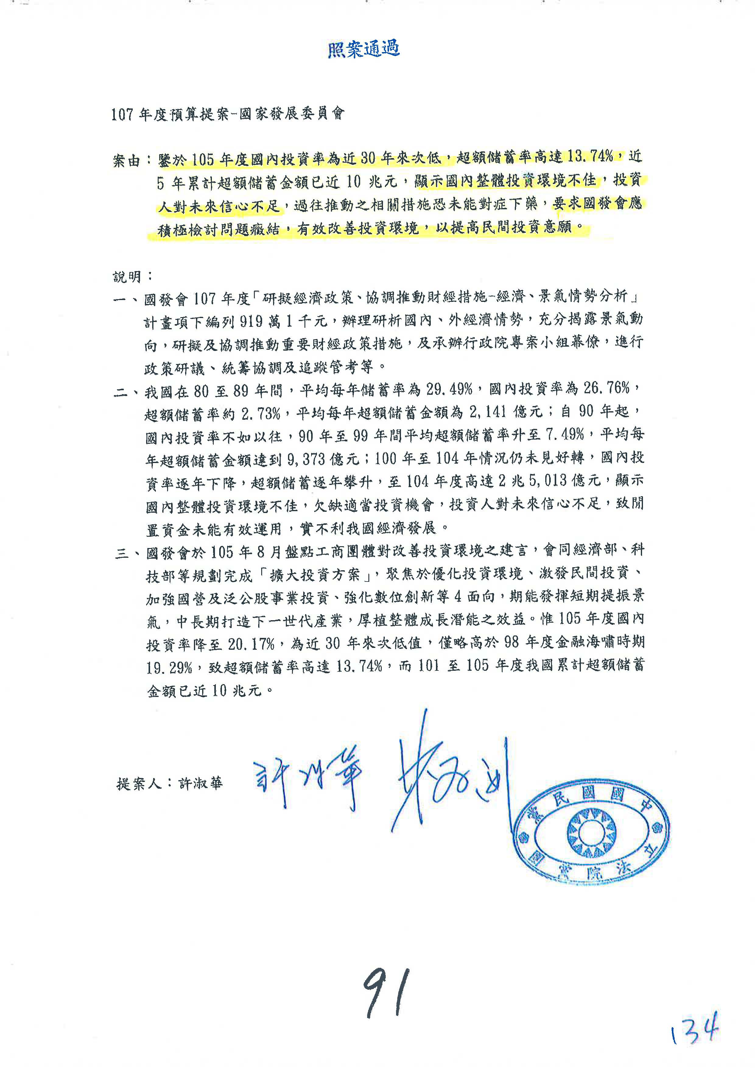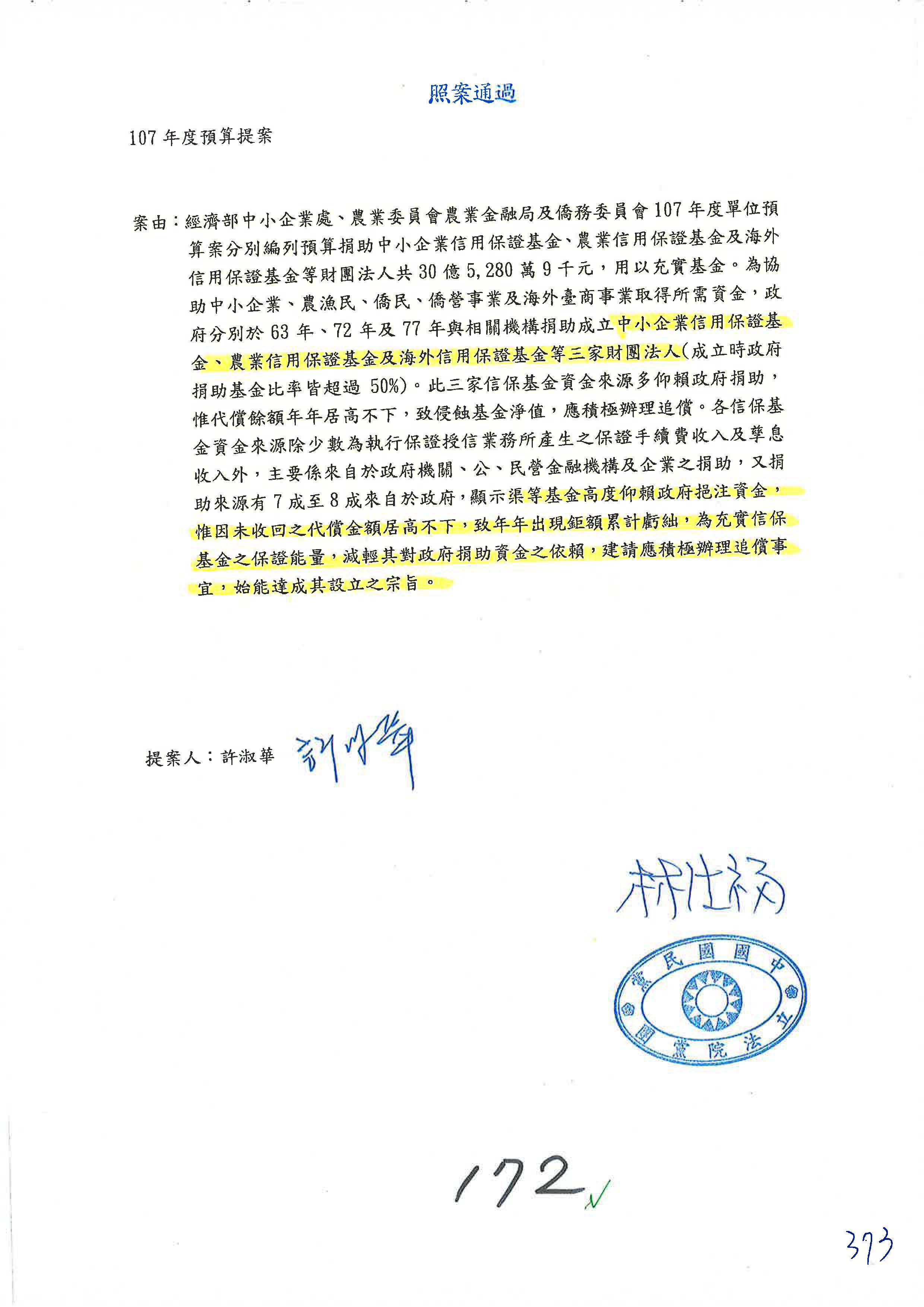 主席:報告院會,財政委員會審查部分除保留部分外,其餘均照協商結論通過。