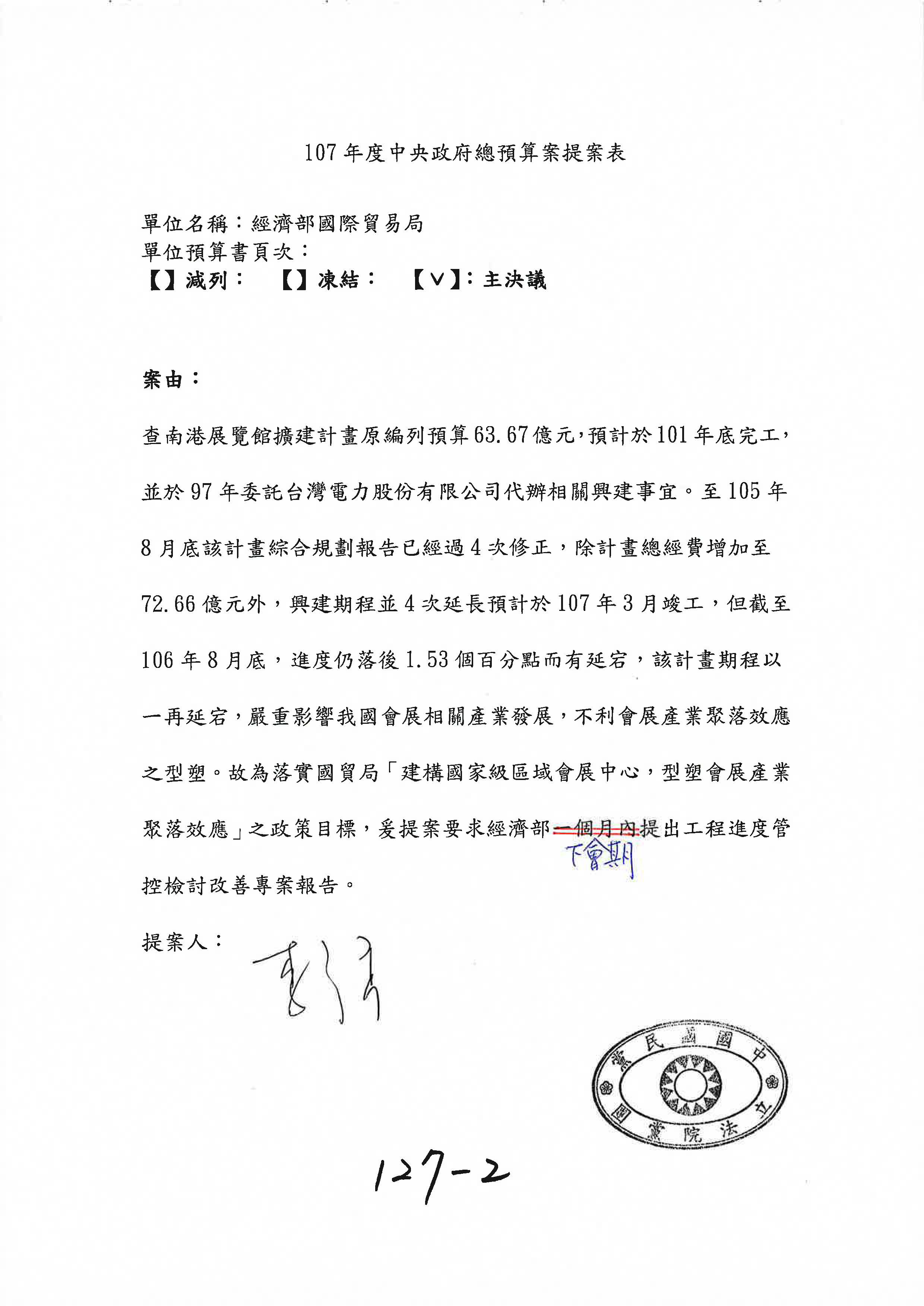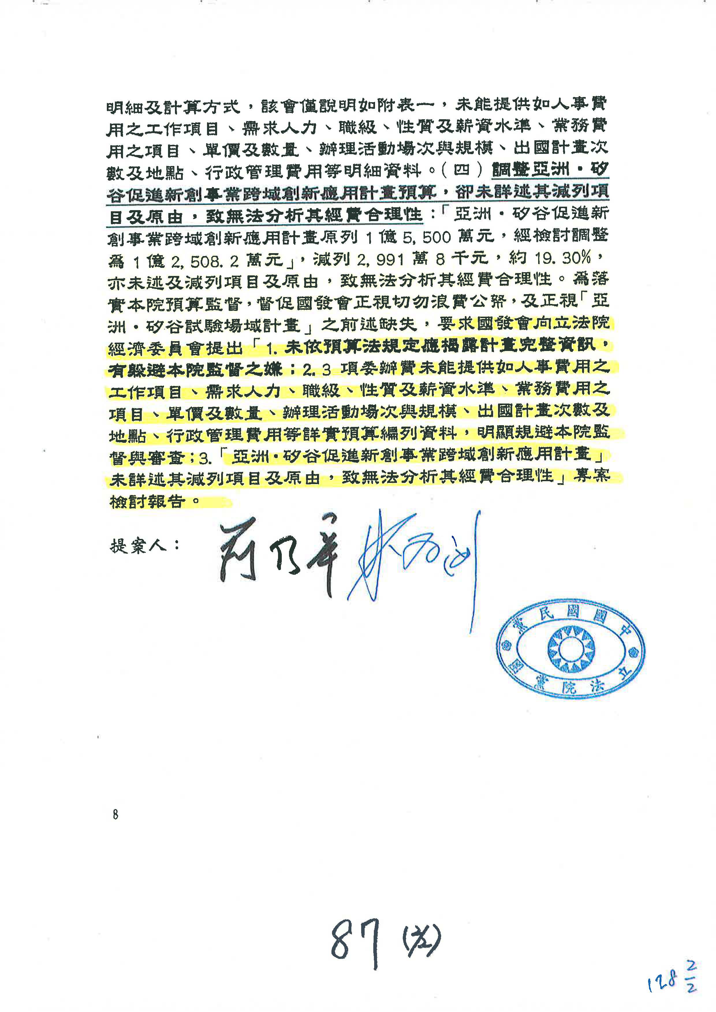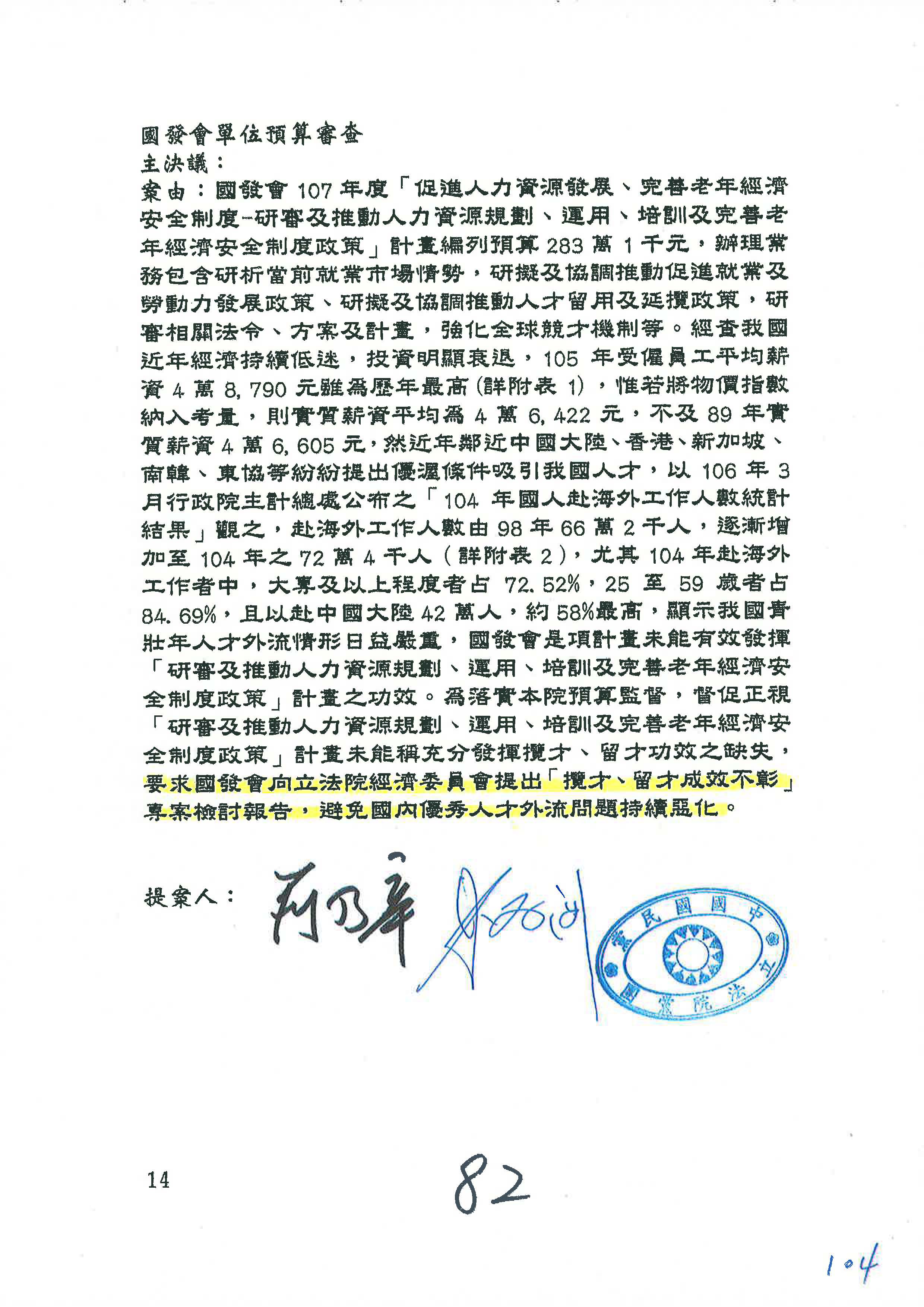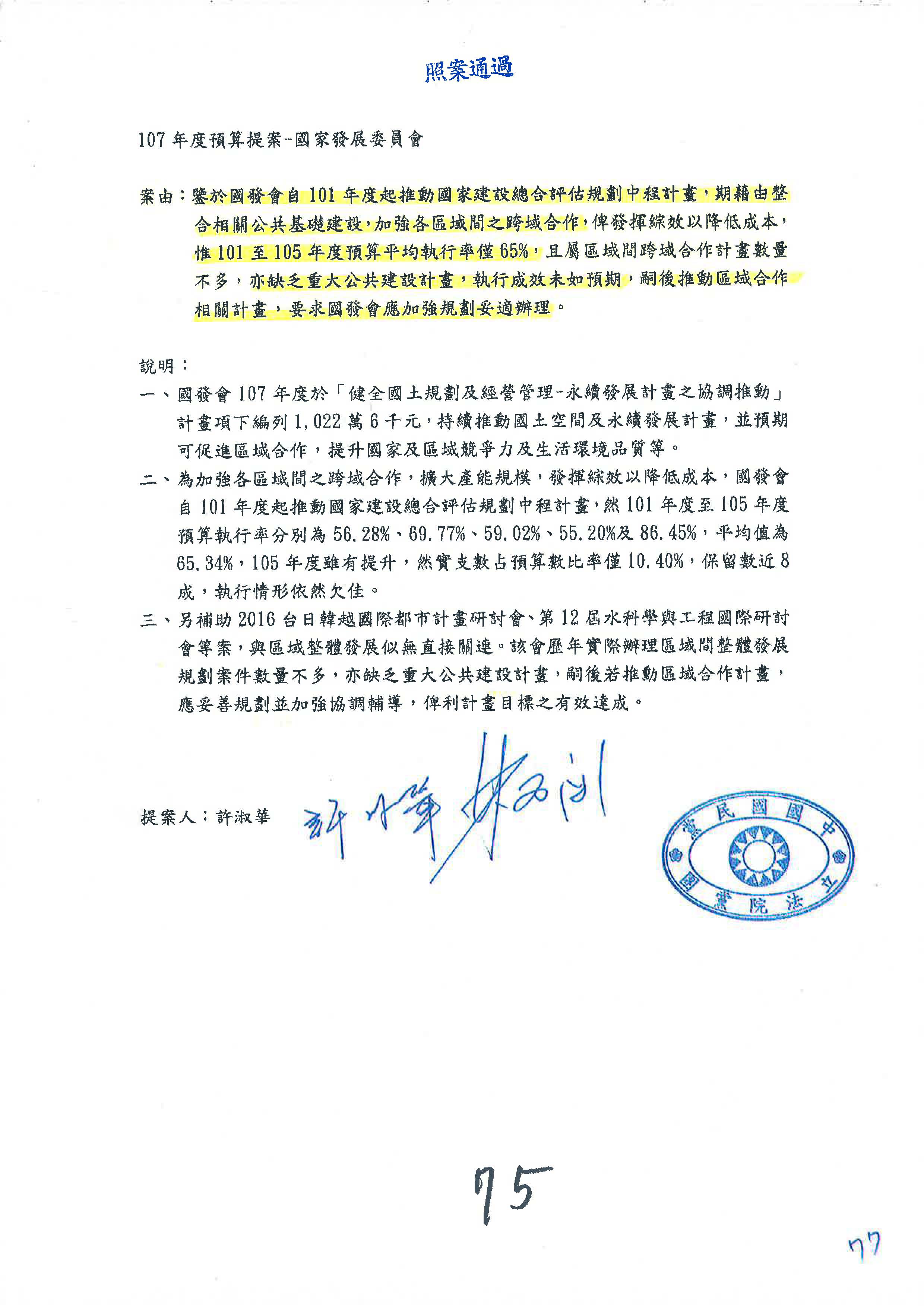 主席:報告院會,財政委員會審查部分除保留部分外,其餘均照協商結論通過。