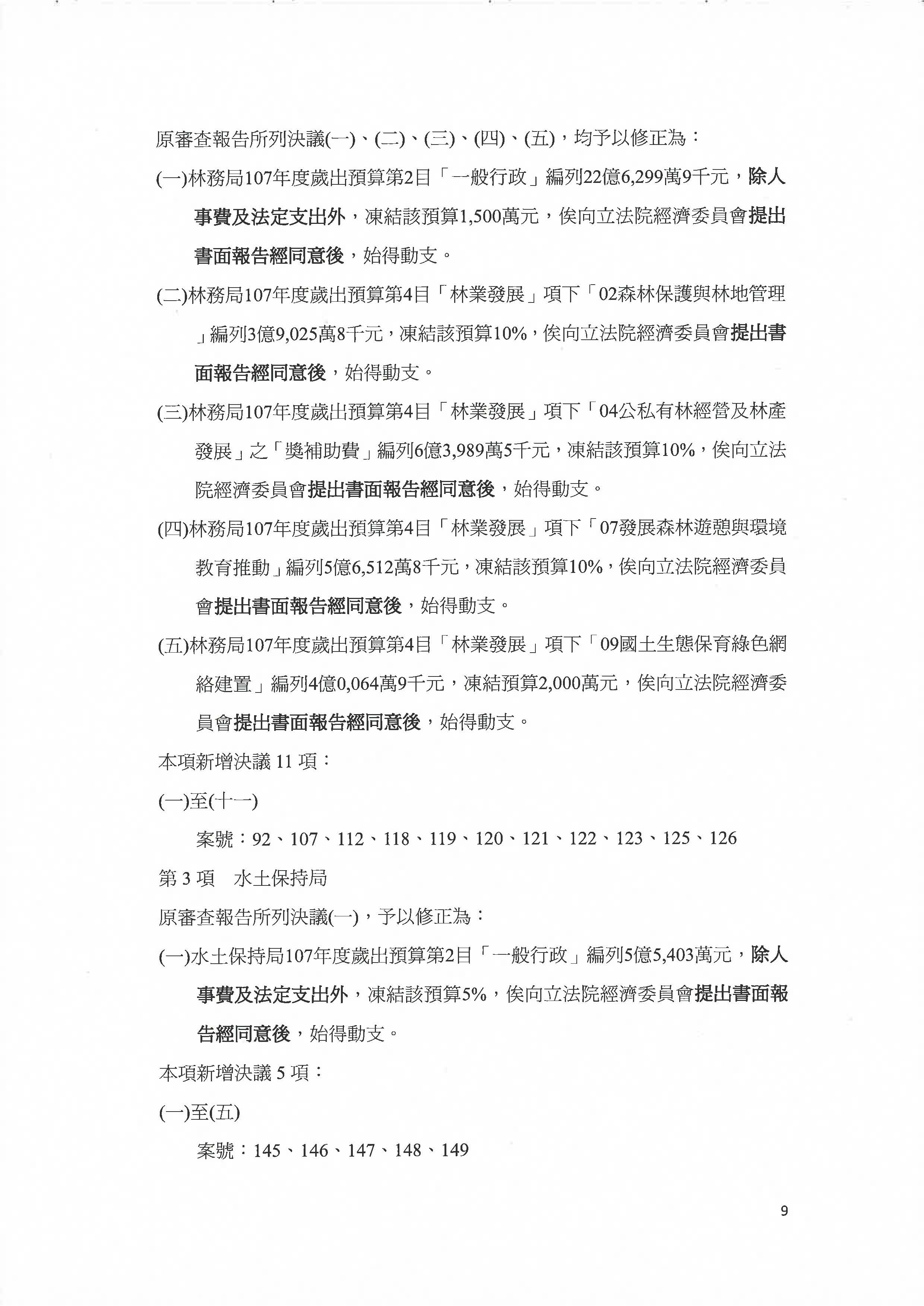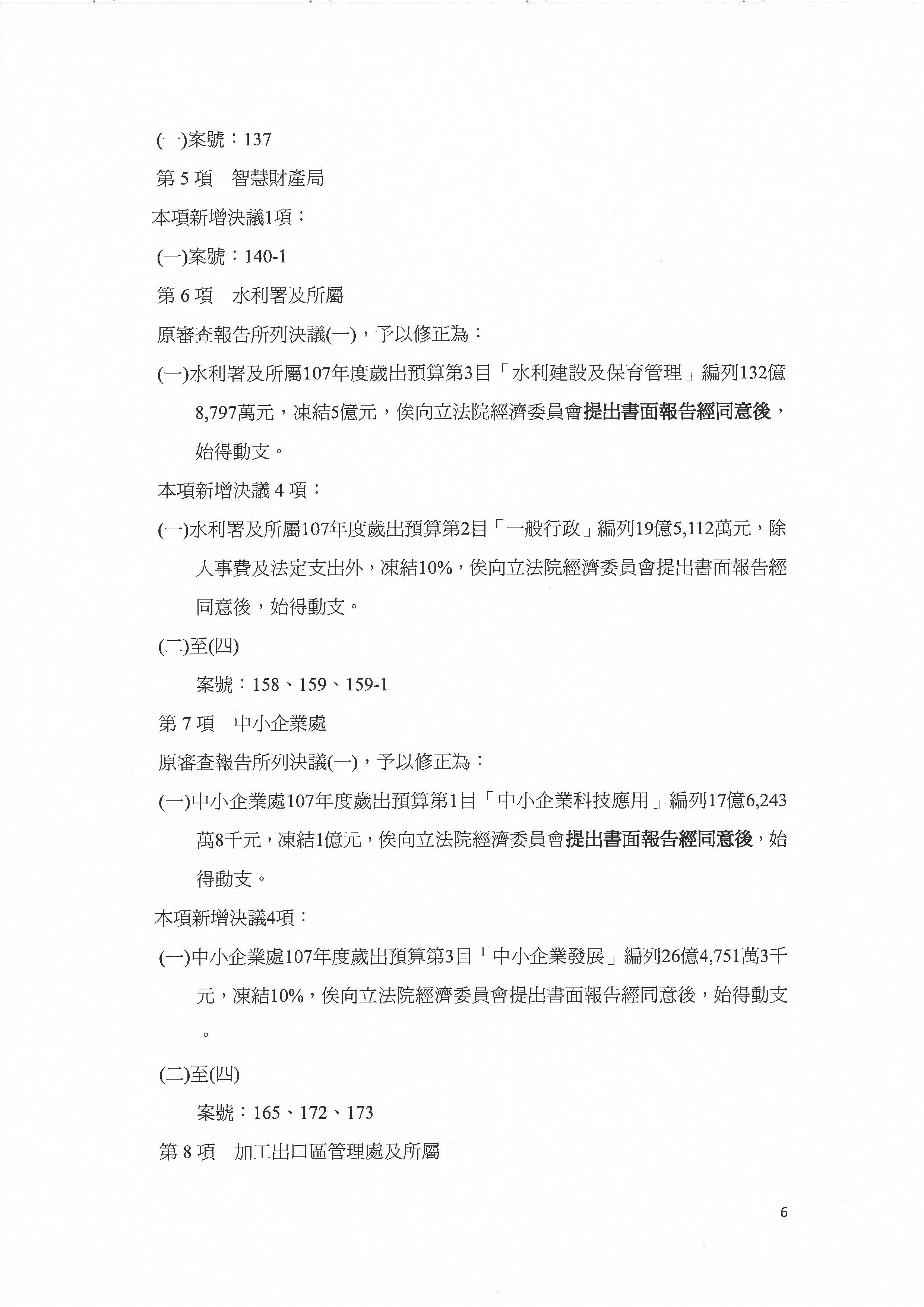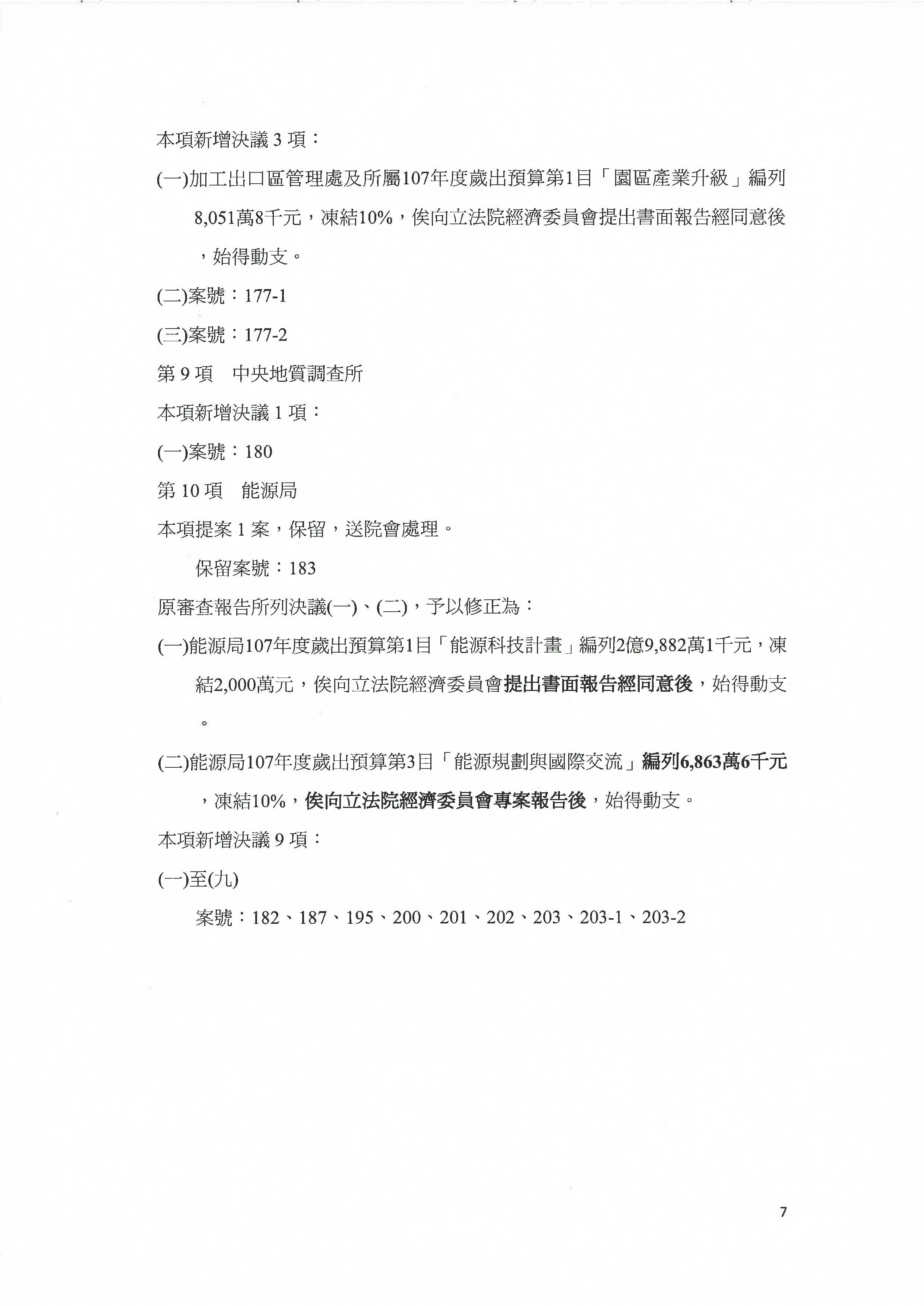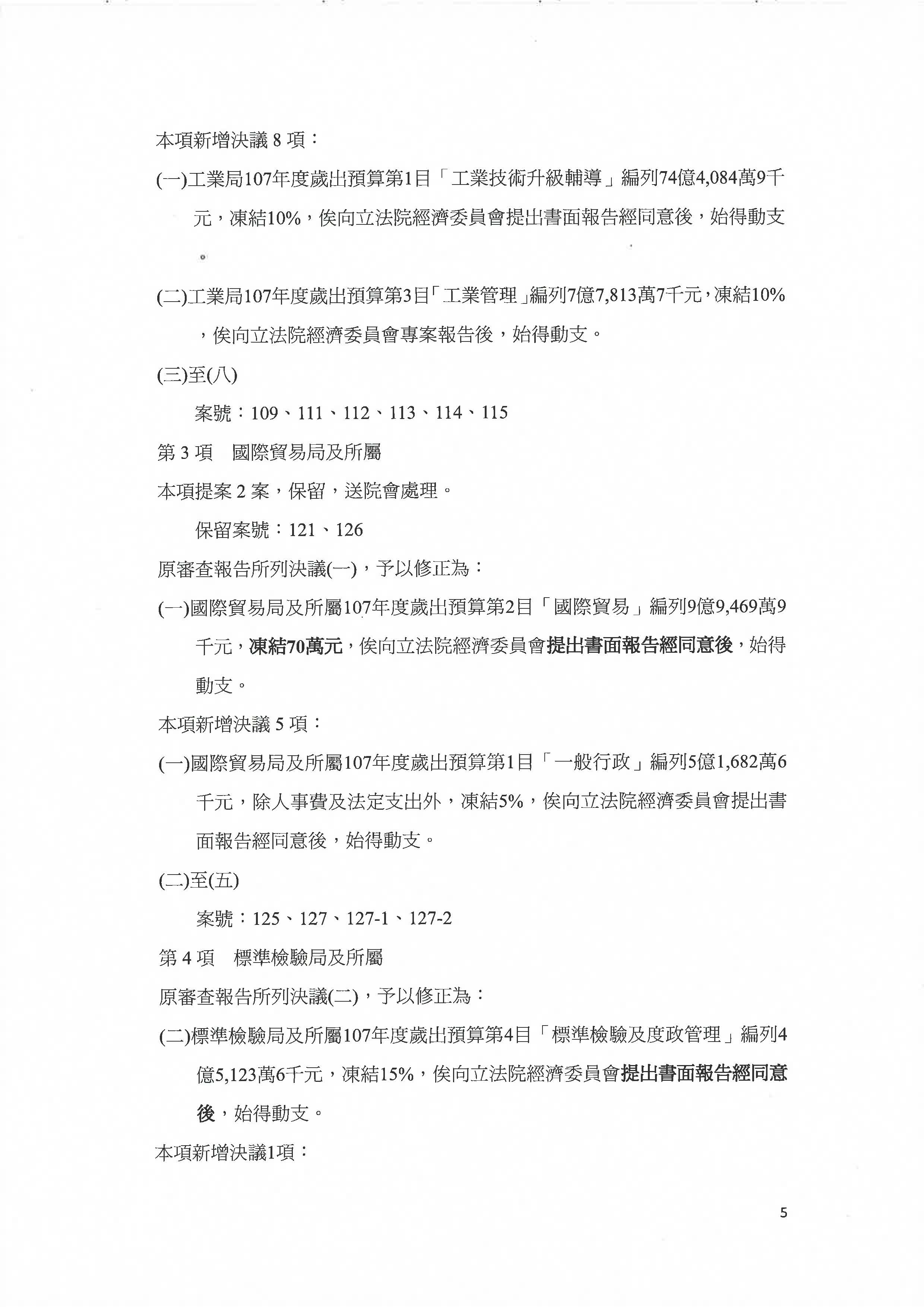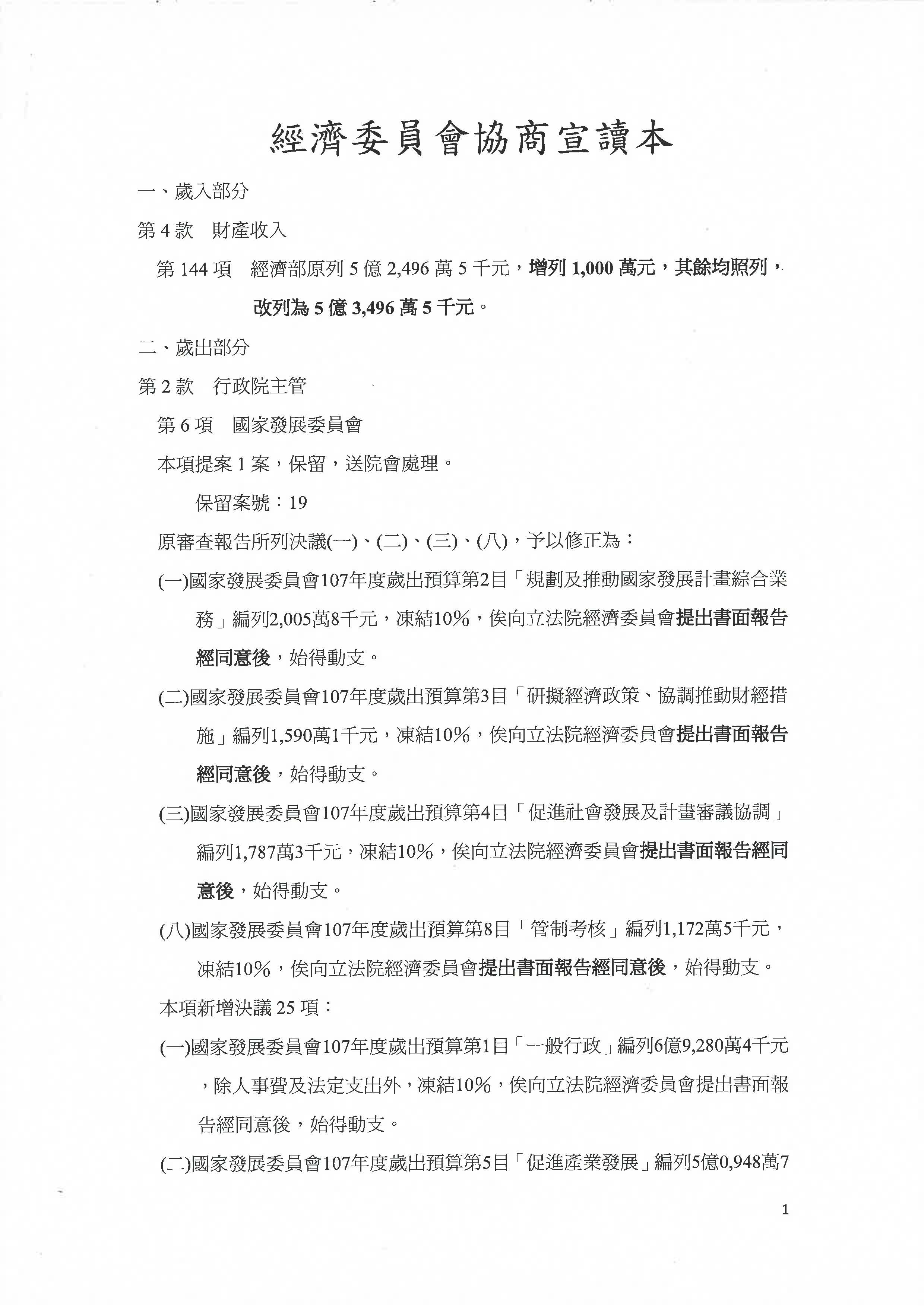 主席:報告院會,經濟委員會審查部分除保留部分外,其餘均照協商結論通過。