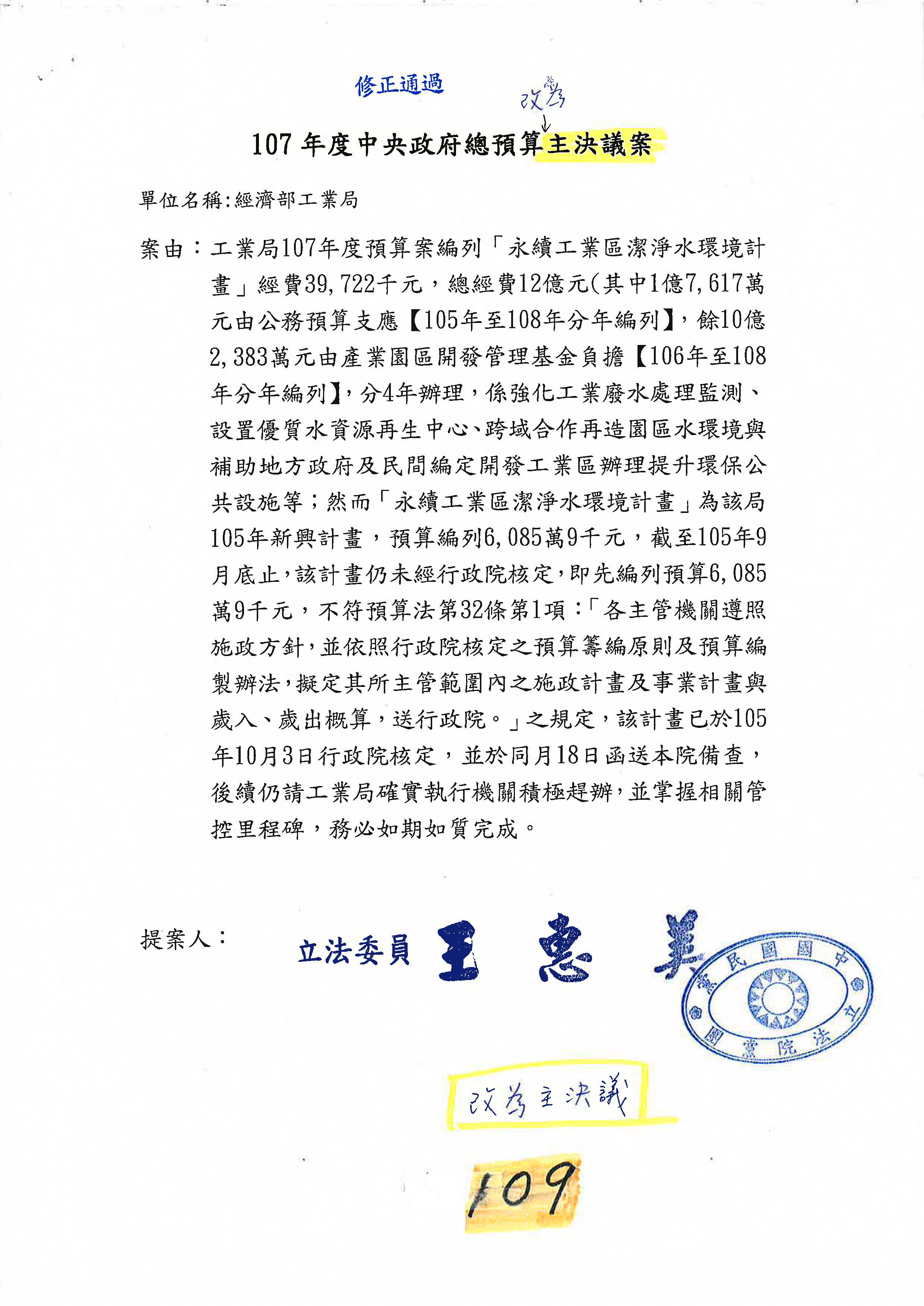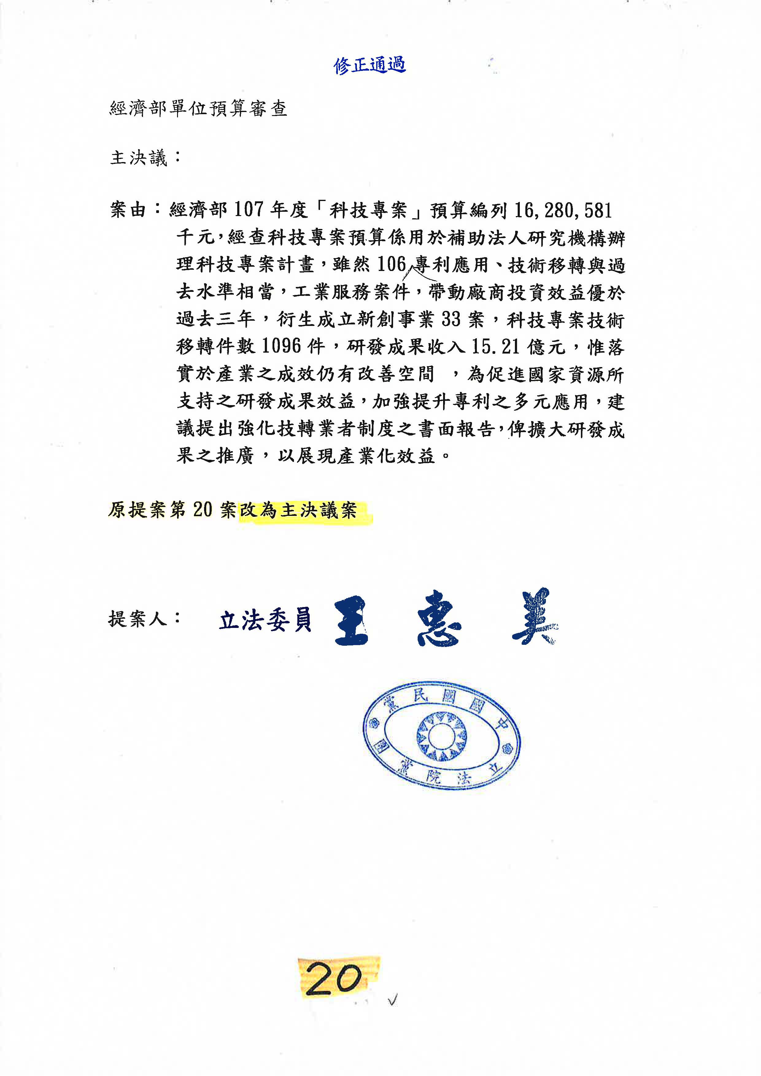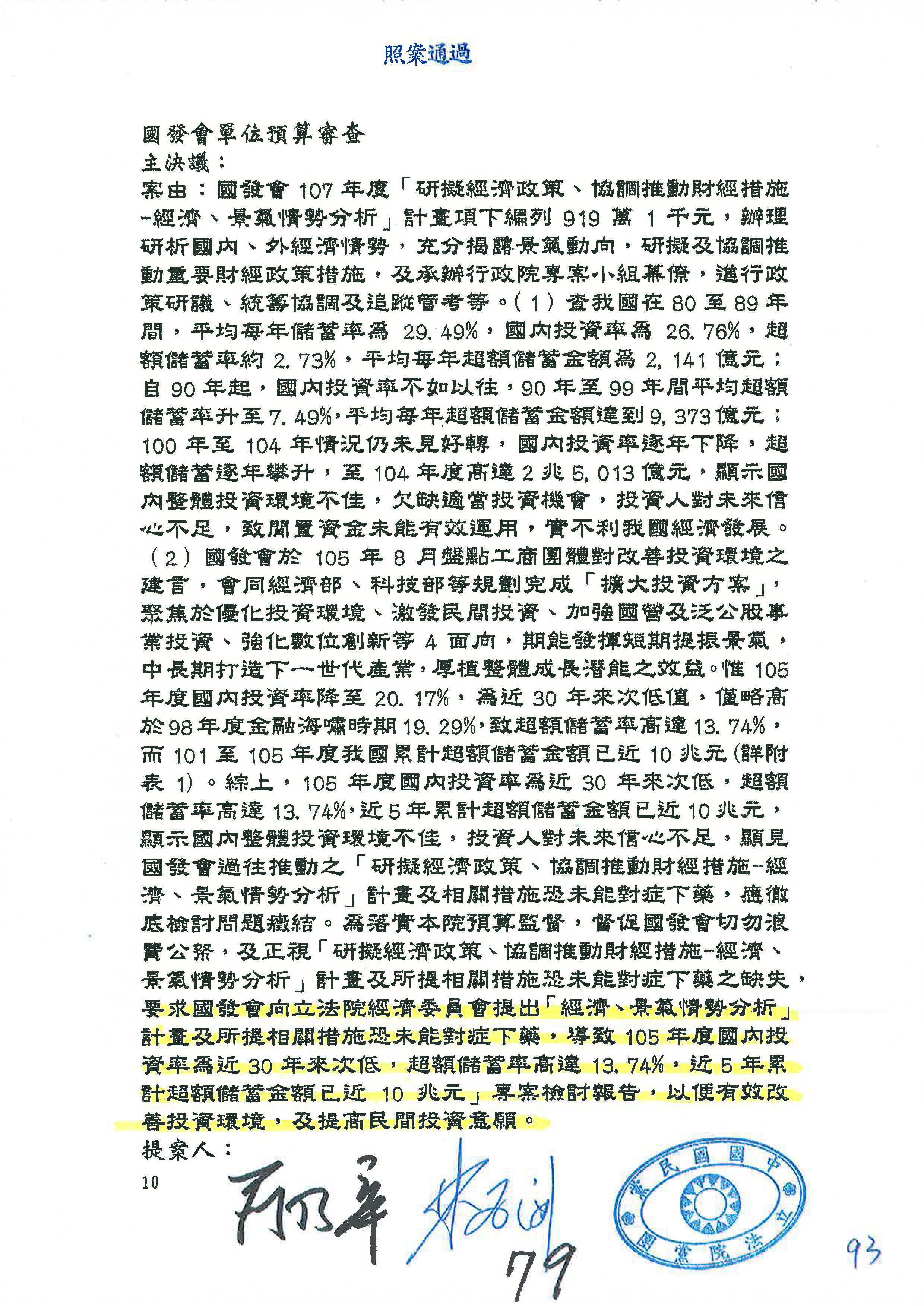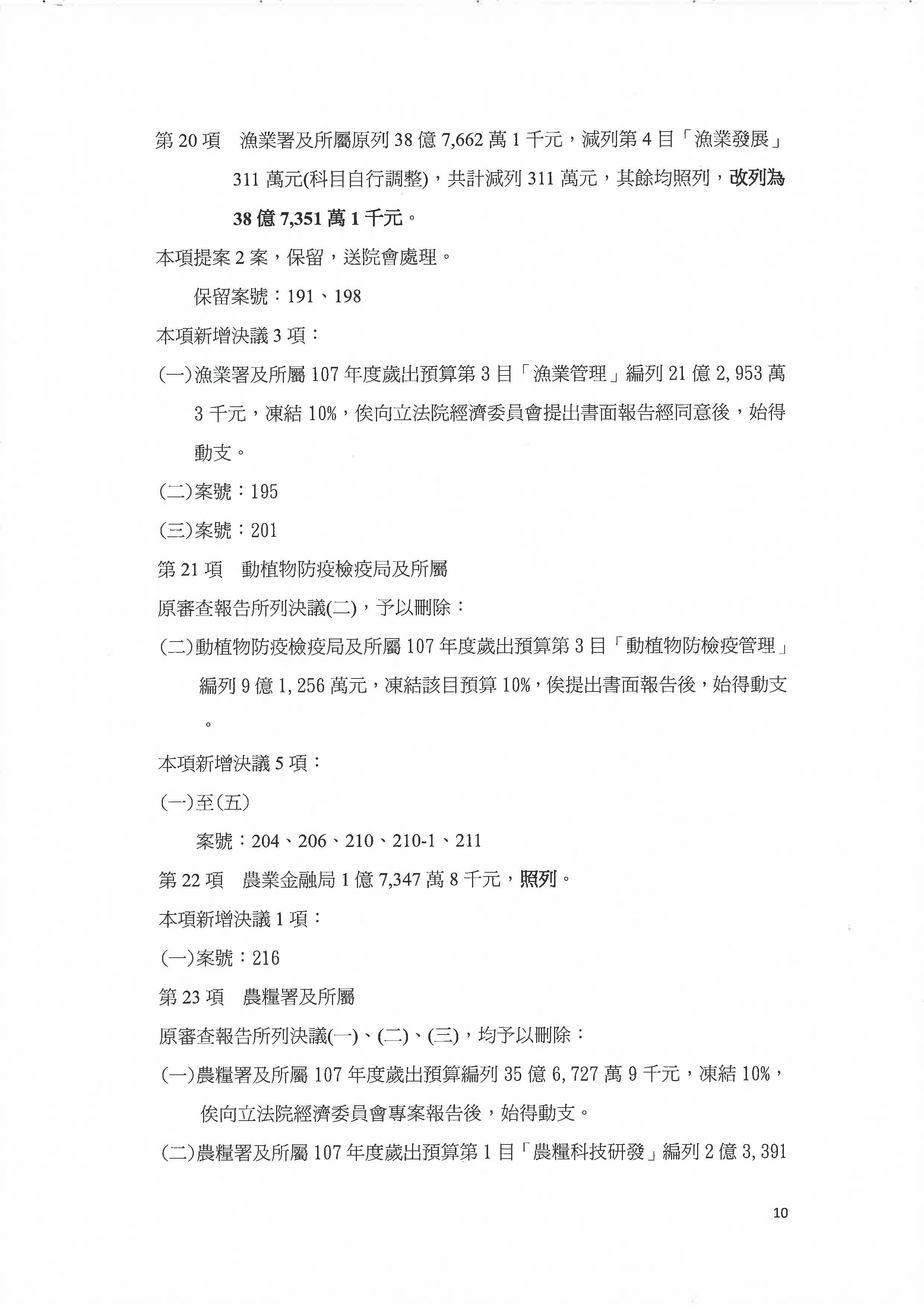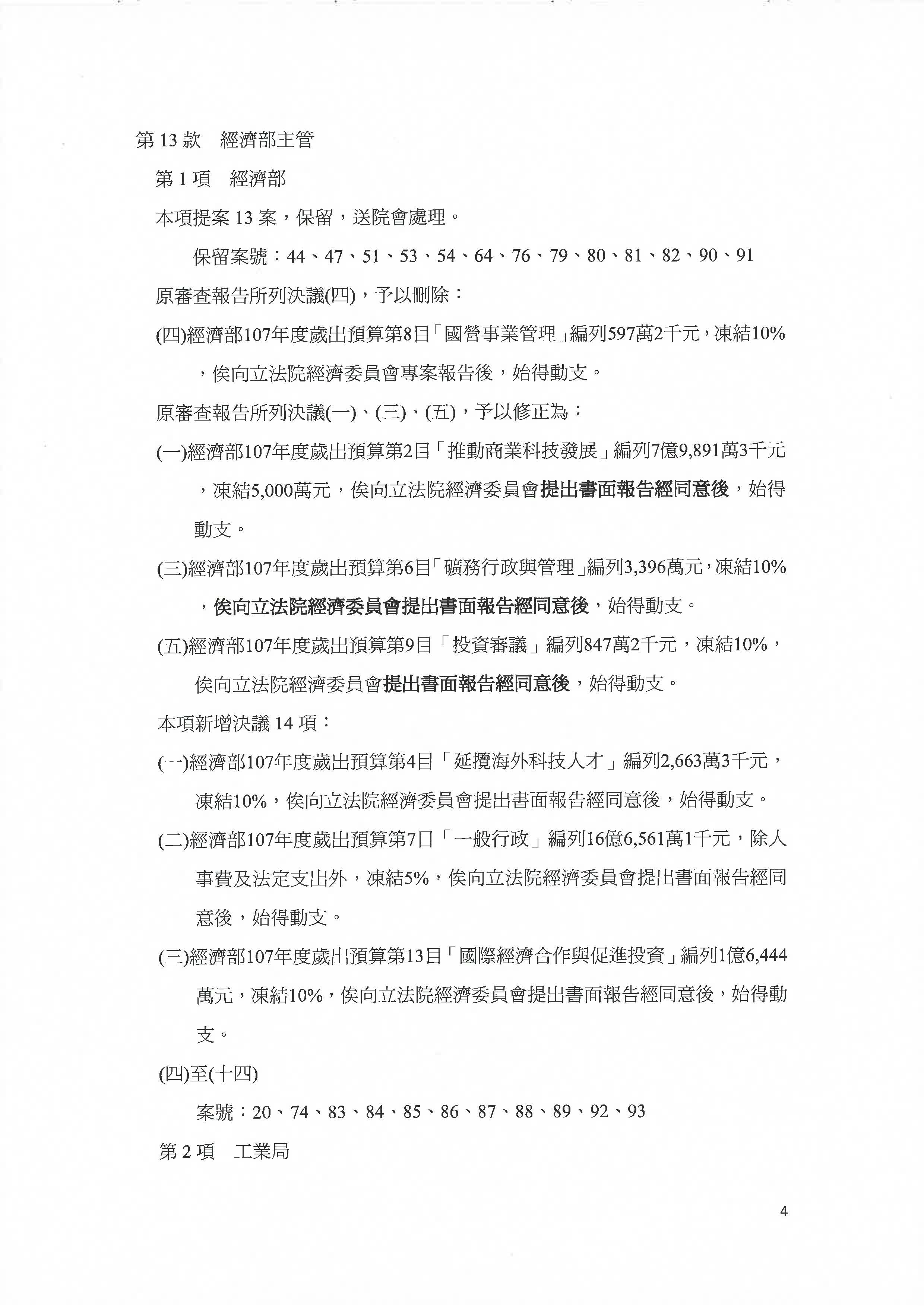 主席:報告院會,經濟委員會審查部分除保留部分外,其餘均照協商結論通過。