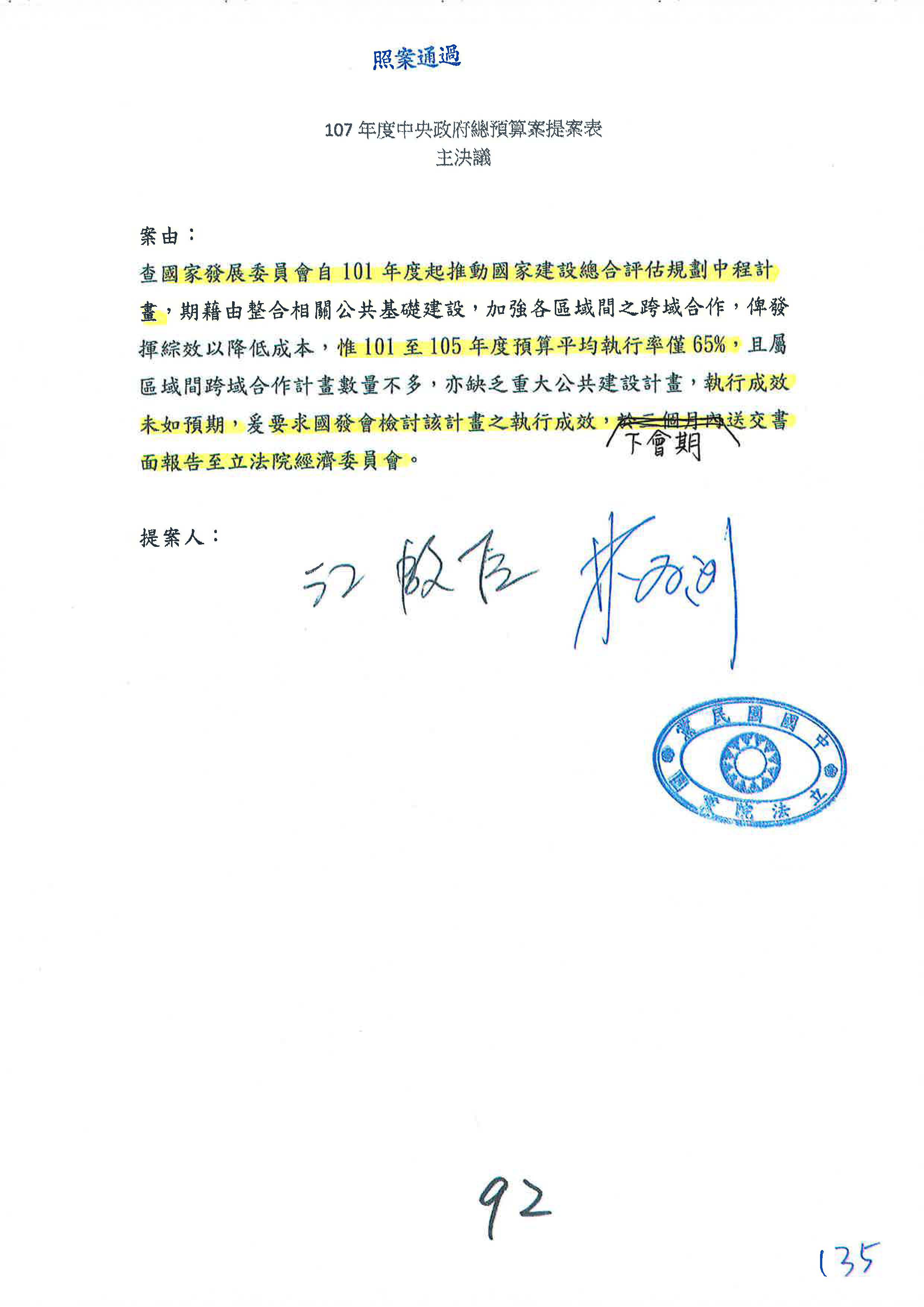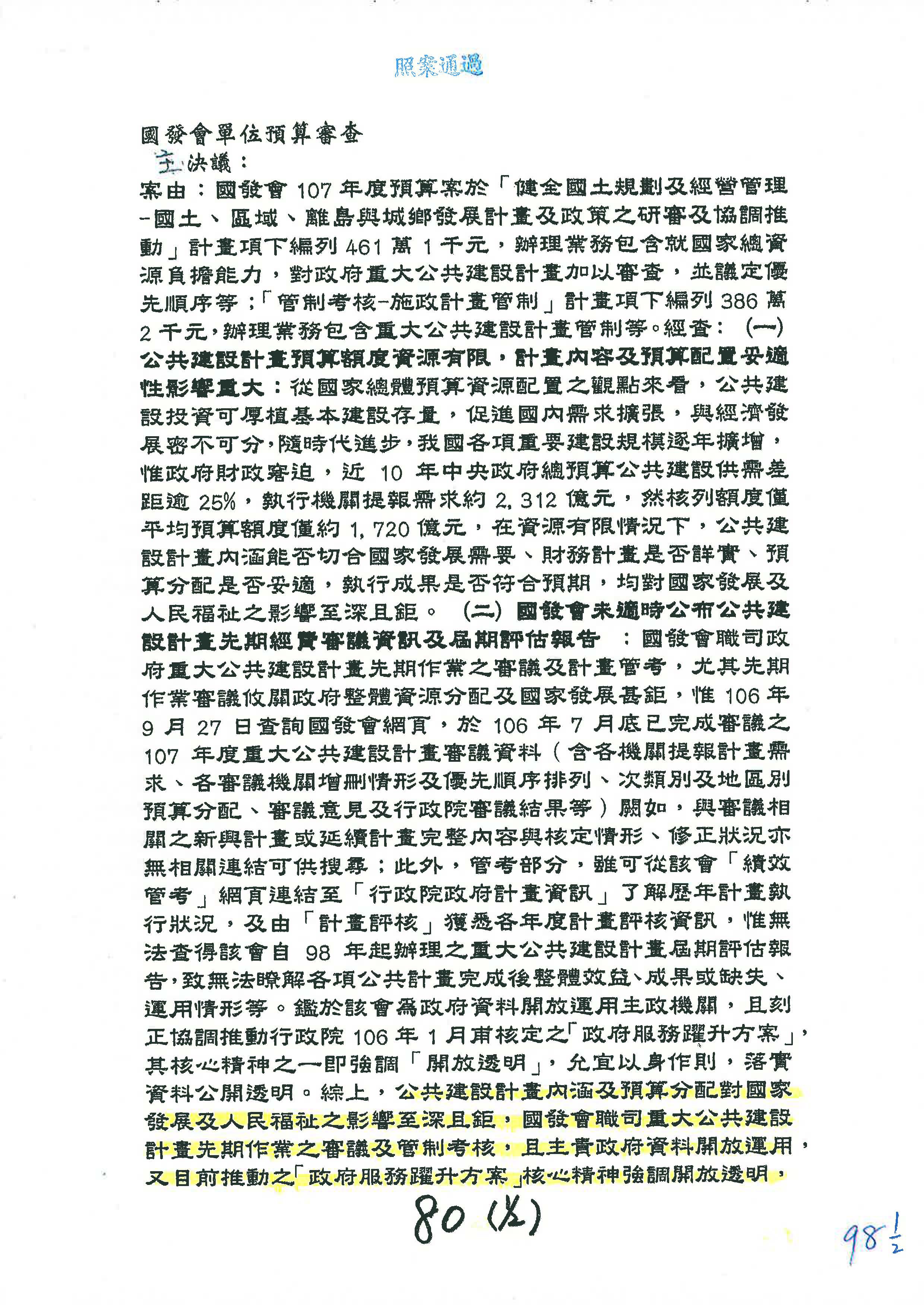 主席:報告院會,交通委員會審查部分除保留部分外,其餘均照協商結論通過。