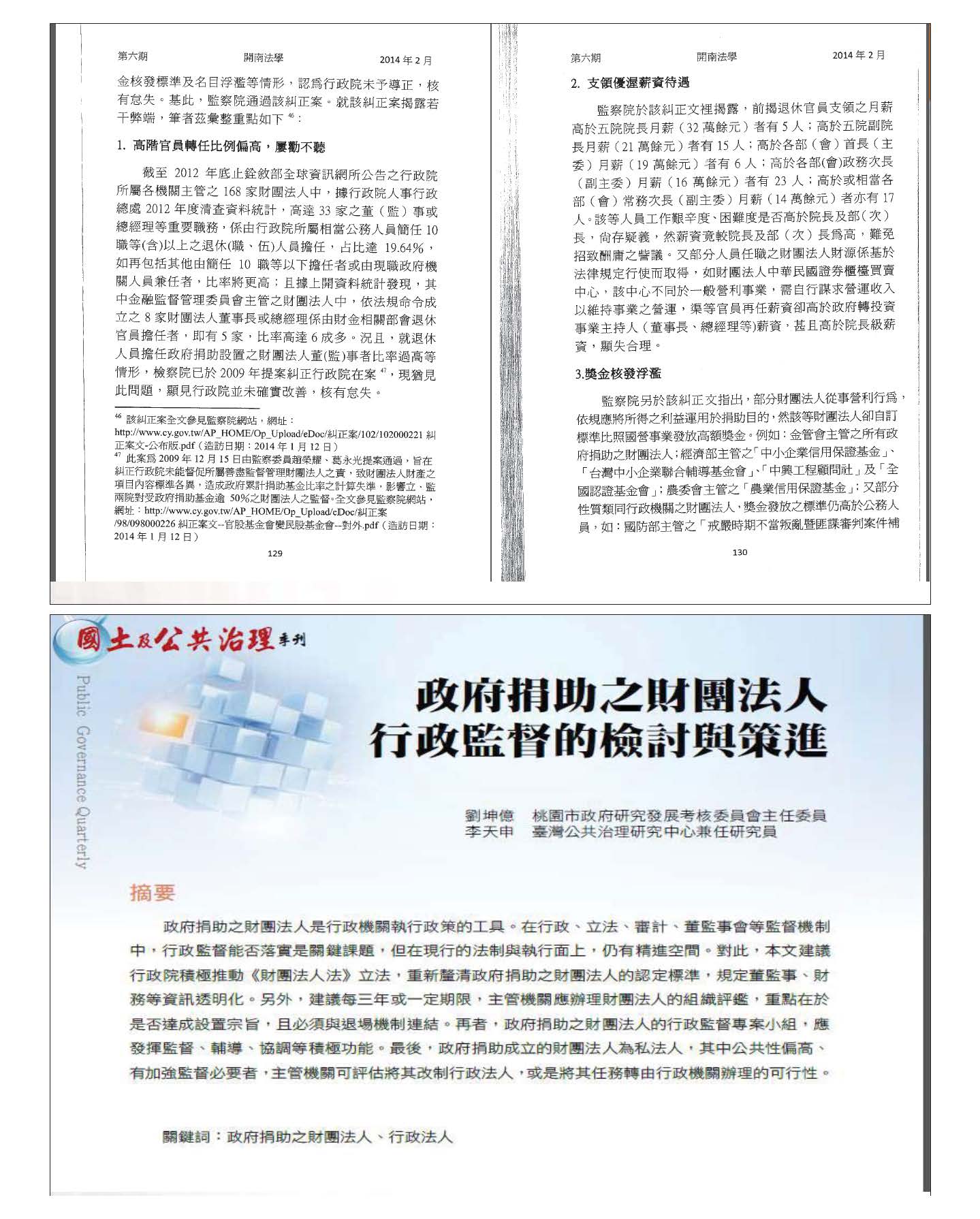 另外一個要提到的就是公設財團法人有哪些的問題,可能是將來要監督的,比如高階官員轉任到財團法人的比例非常高,另外一個被詬病的問題是拿的薪水非常多,從財政法的角度這其實很有問題,甚至有人提出獎金的發放非常浮濫等等,國內慢慢有一些學者開始研究這部分,也一致認為如果針對公設財團法人,要有一定的程度進行行政監督,另外一部分也可以從民主治理的角度去看。