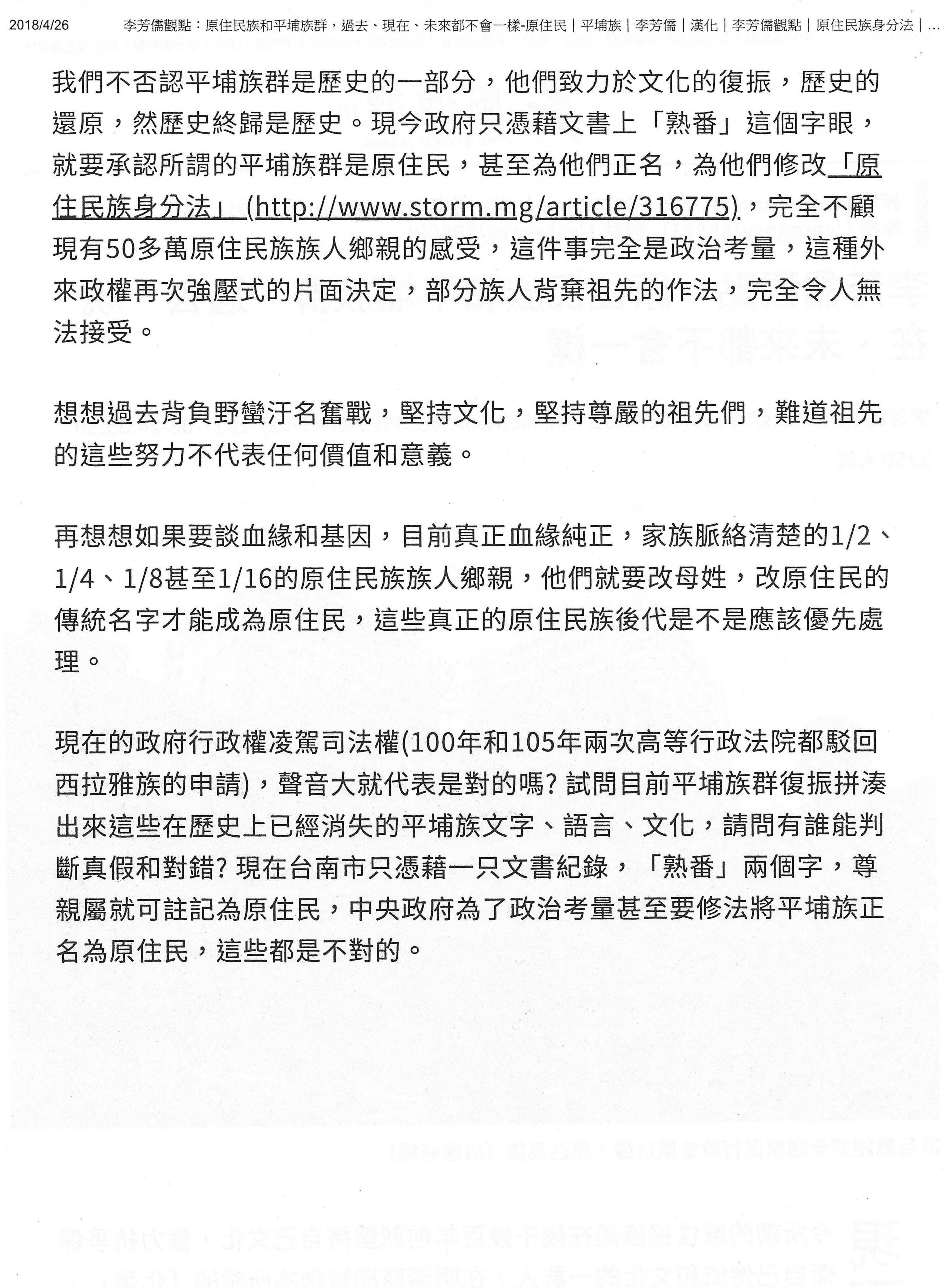 假如等一下還有時間的話,我願意再舉另外一個事例,讓我們來看看到底要怎麼樣來支持平埔原住民正名後續的權益問題。