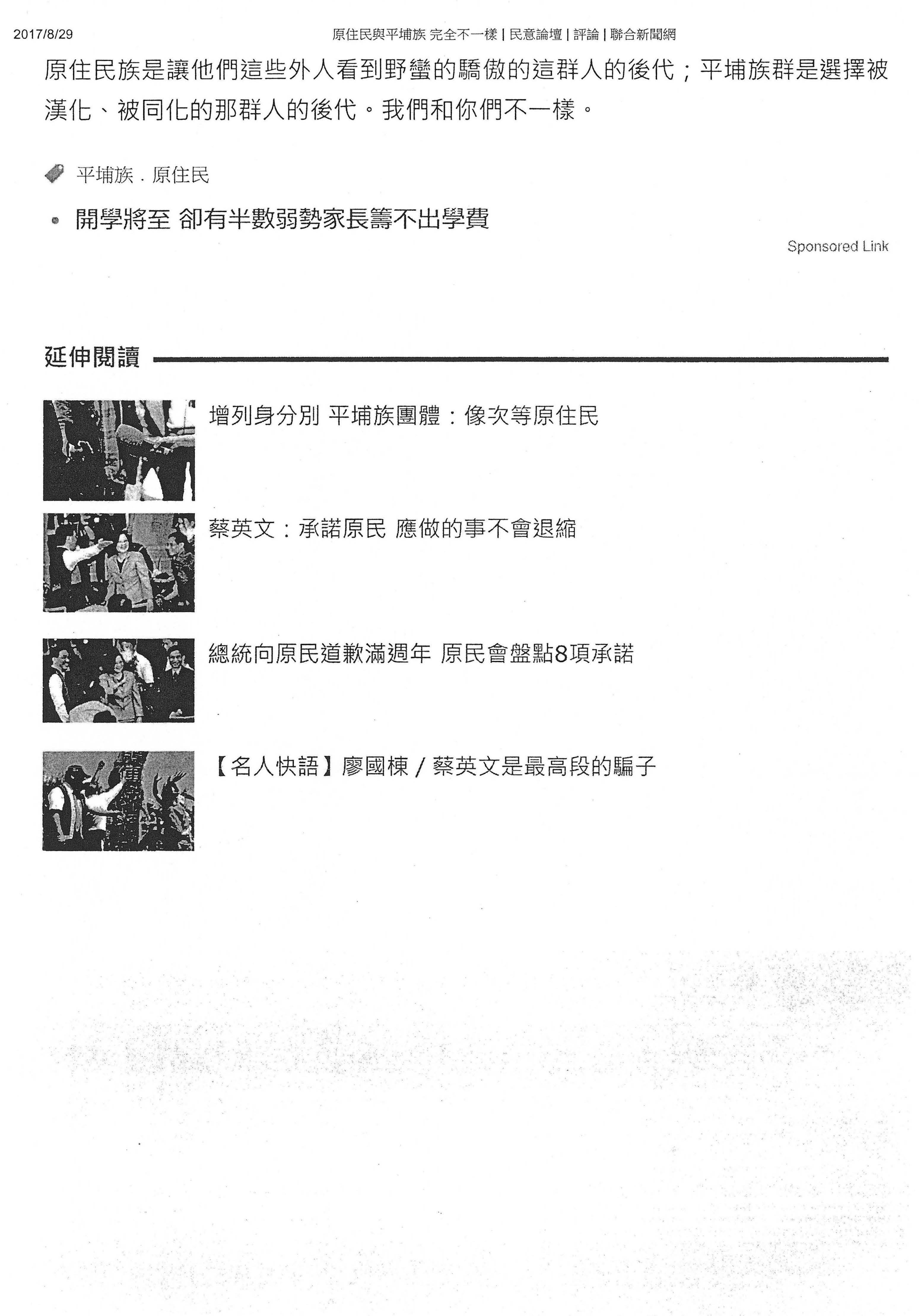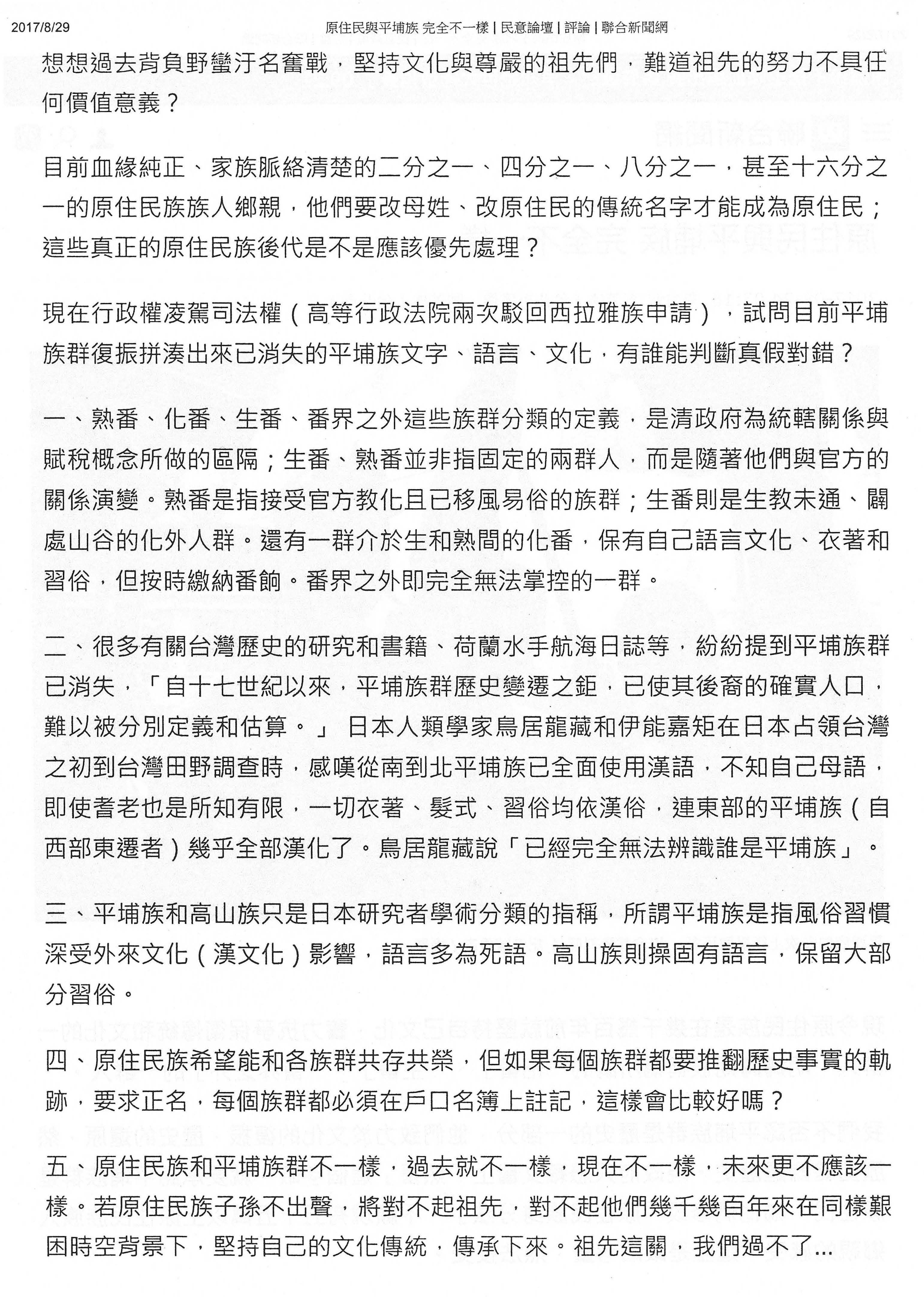 第二個是漢化太深,漢化太深可以作為權利排除的理由嗎?如果是這樣子的話,我覺得漢人的社會是磨刀霍霍。一個理由是遍遠地區,然後是用救助的,現在說漢化的時候,隨著原住民年輕人大概有三分之一到一半在都會區的時候,原則上我覺得小英總統的作法是要在歷史上畫一個句點,然後大家良心都不會覺得很不安,晚上就可以睡覺了,這是很悲哀的,我們這裡都是幫兇了!謝謝。