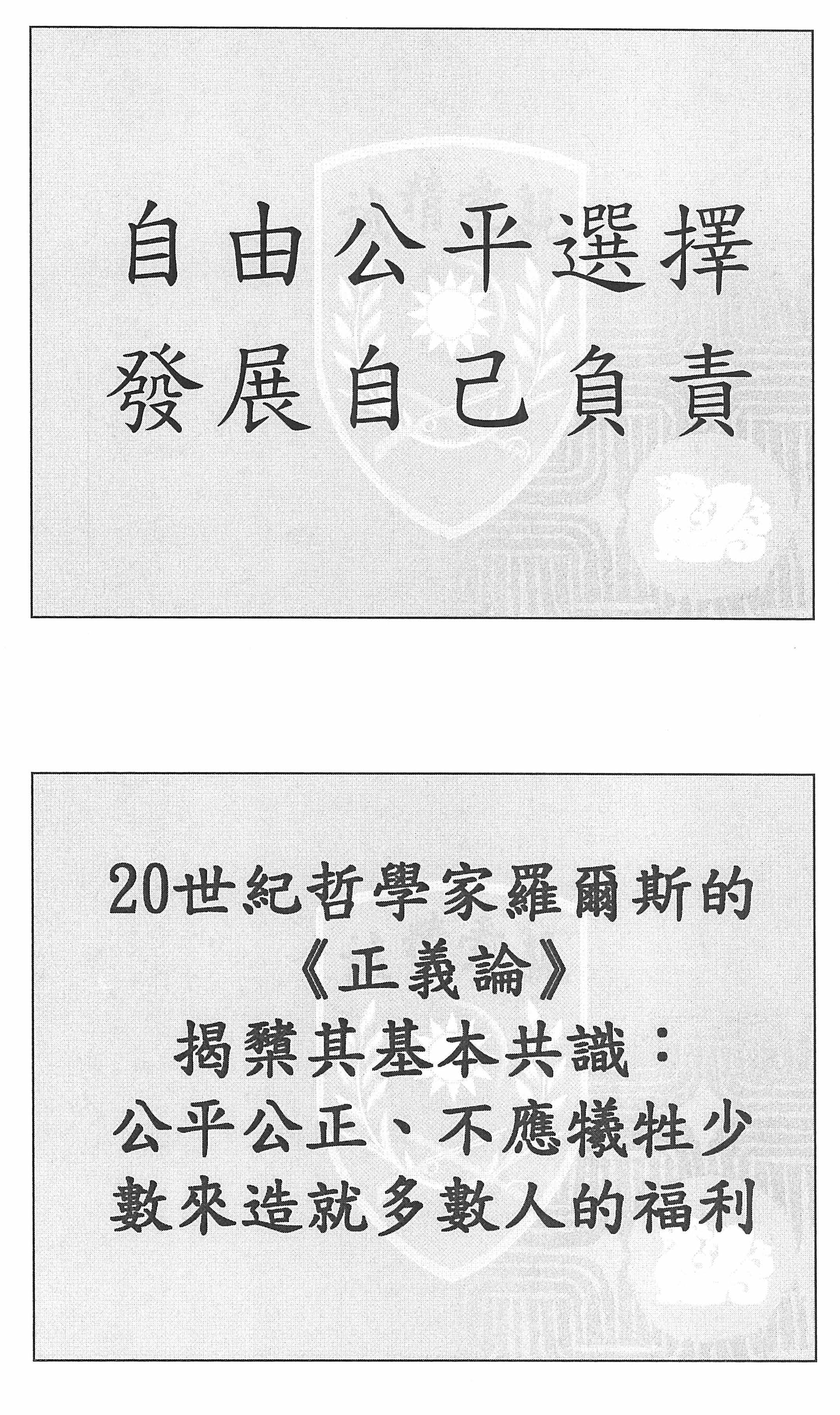 3.「正義論」共識「公平公正」「不應犧牲少數來造就多數人的福利」。