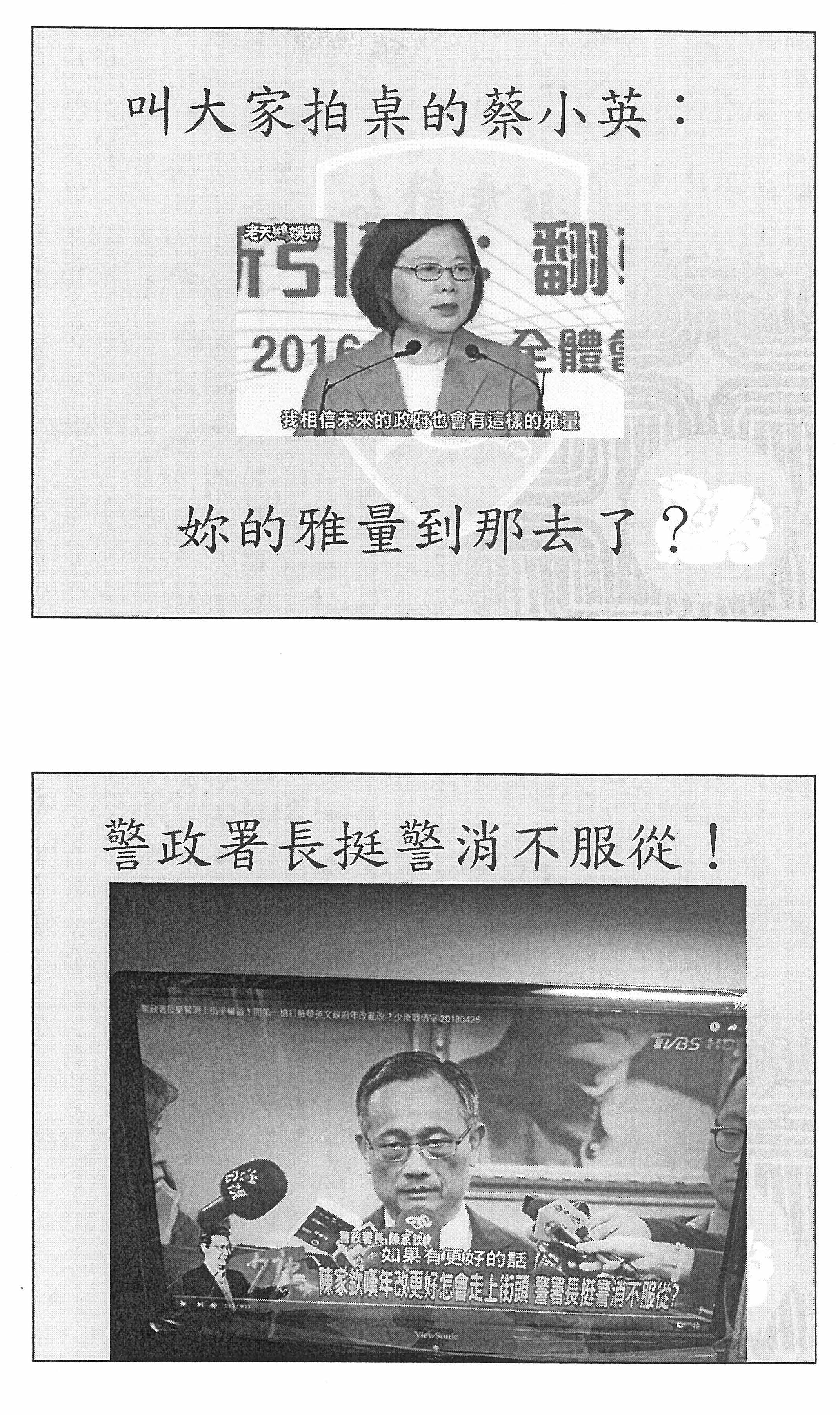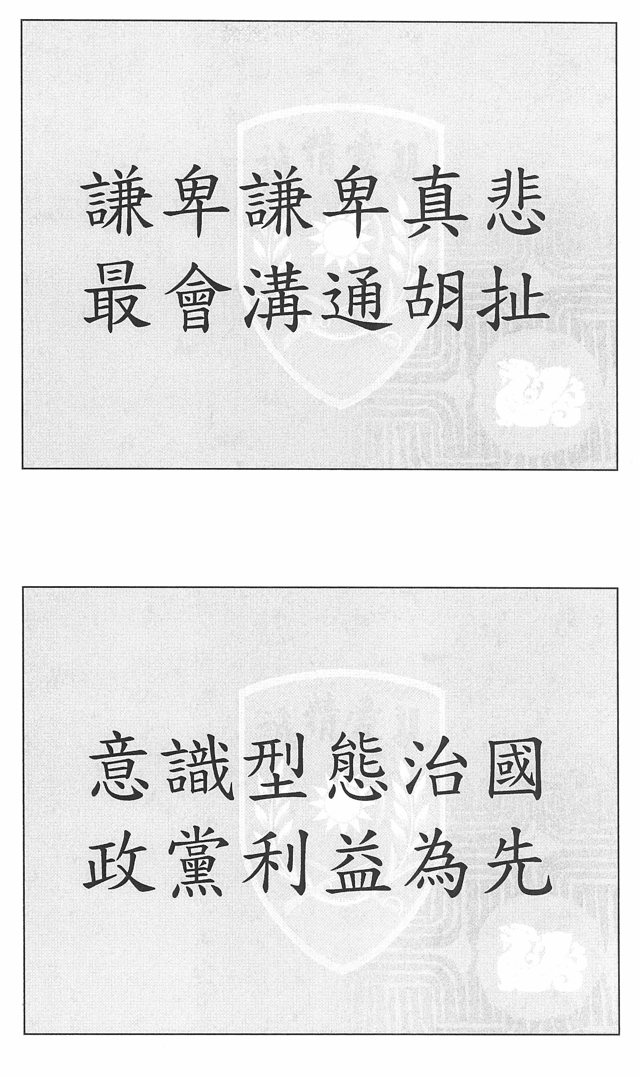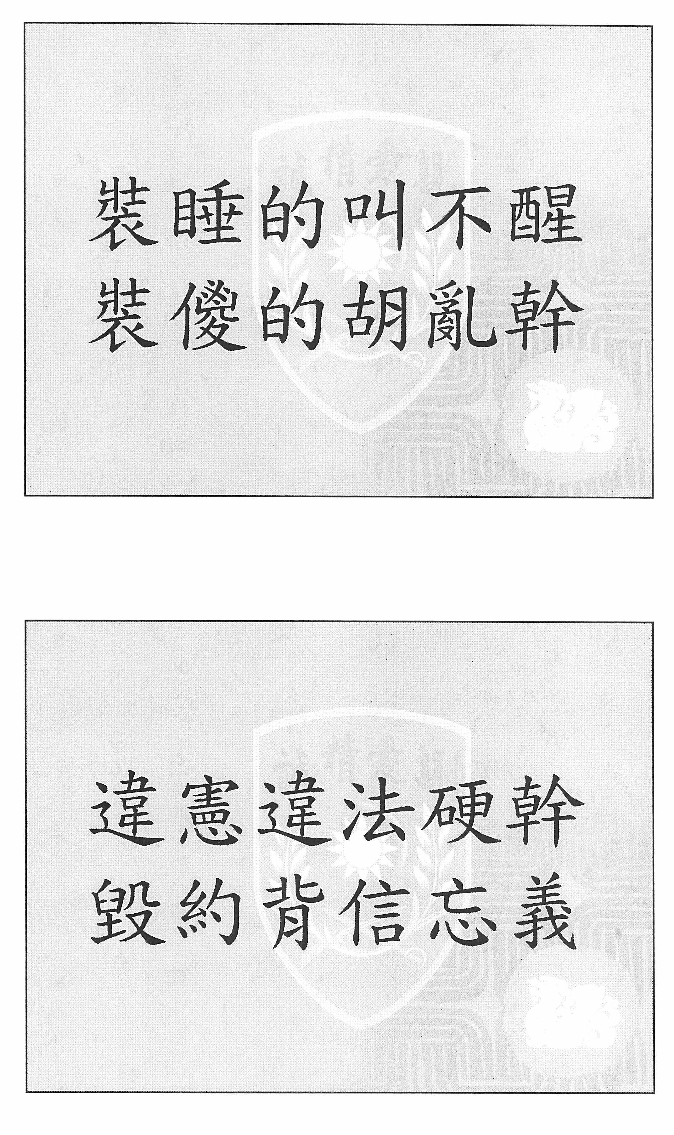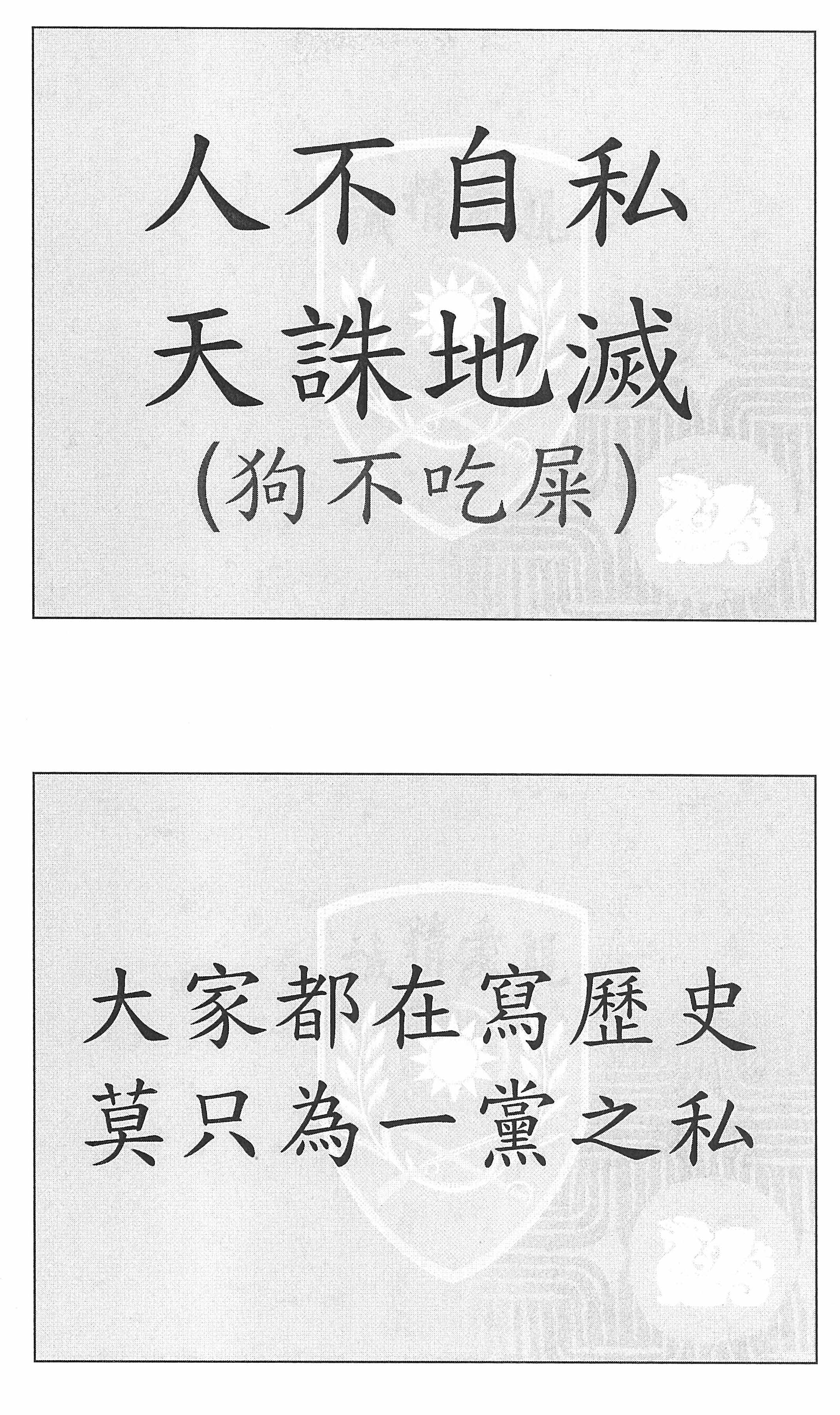 這篇文章在LINE上面傳了很長一段時間,其實就是我們現在真正的寫照,我們有看到財政困難嗎?所以基金破產、國家財政困難根本就是一個假議題,這一切的一切都是包藏禍心的假改革、真鬥爭,所以我今天在這裡打出的標題是「大家都在寫歷史,莫只為一黨之私」。執政黨所有的委員,可能受到了上級(黨)的壓力,可是我們誠懇的呼籲,身為一個黨員,不是光為你的黨服務,應該要為國家、民眾來服務。立法院9樓大禮堂的標語寫著「國家至上、民眾第一」,所以我們在這邊呼籲所有的委員,請想到國家至上,當然每個人對國家的想法不一樣,我們忠於的是中華民國,你想的可能是其他國家,無論如何,民眾第一,所有的民眾都在支持我們的國家。