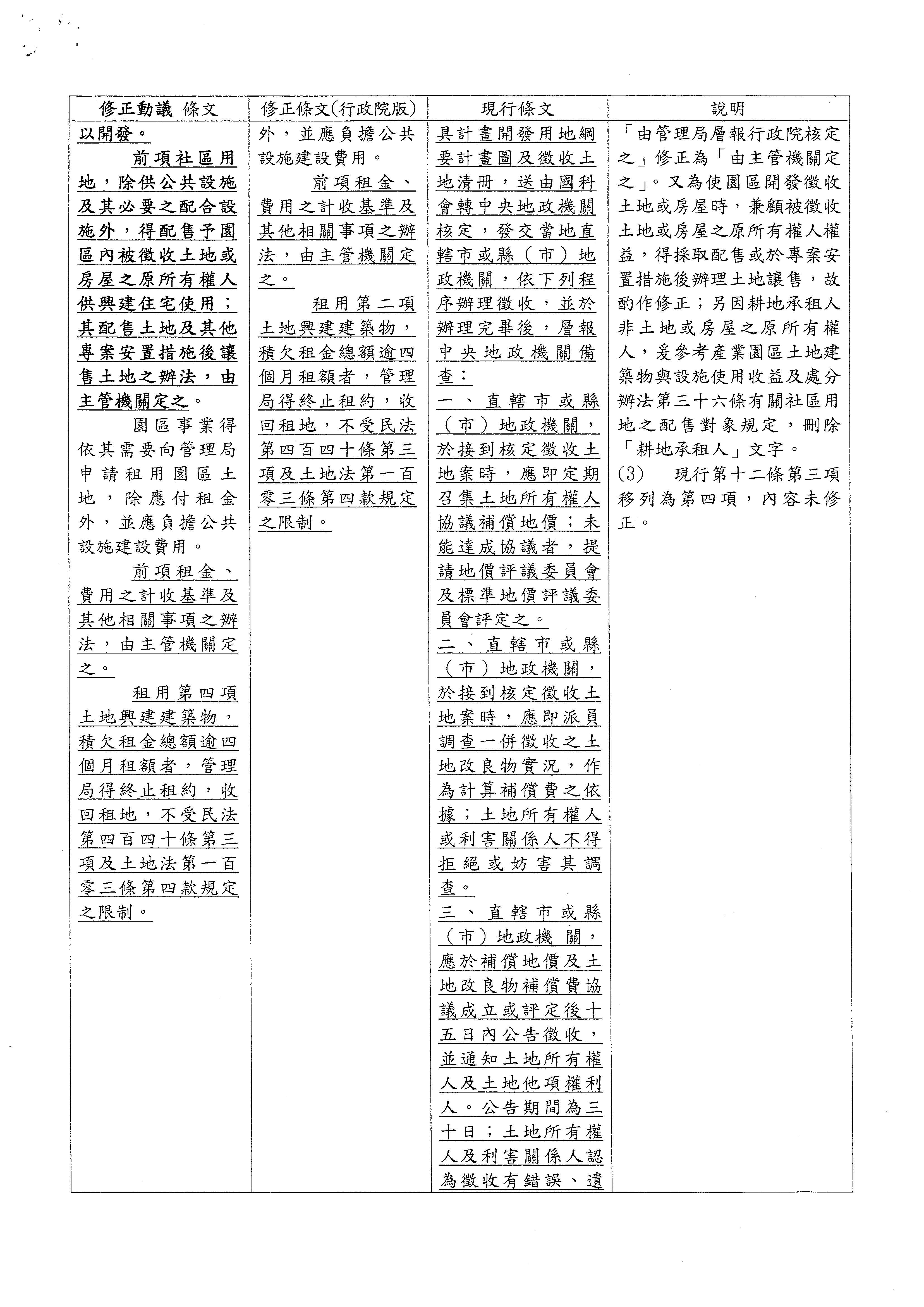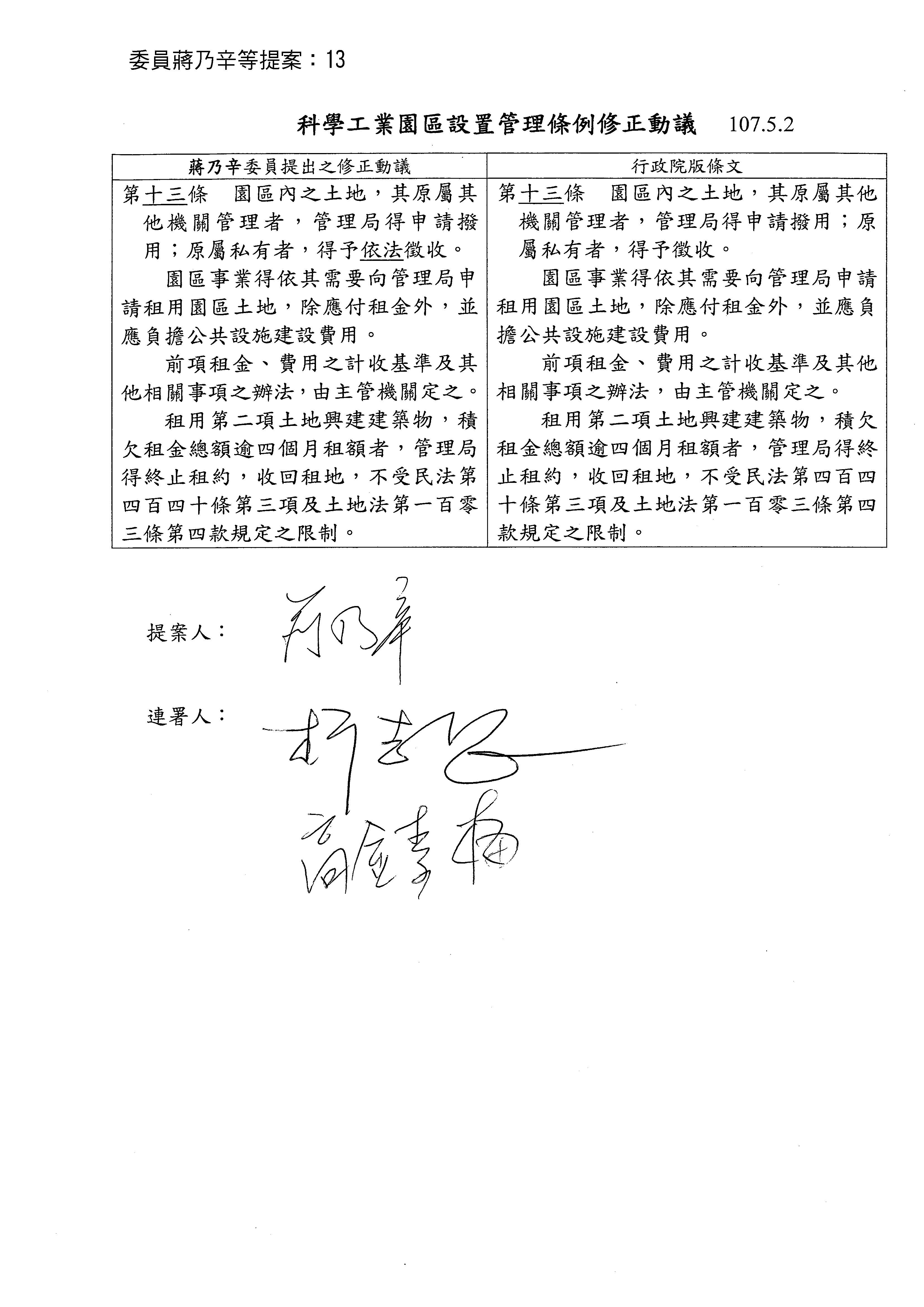 主席:好,回頭處理第十三條,我們把修正動議補正一下:「園區內之土地,其原屬其他機關管理者,管理局得申請撥用;原屬私有者,得予依法徵收。