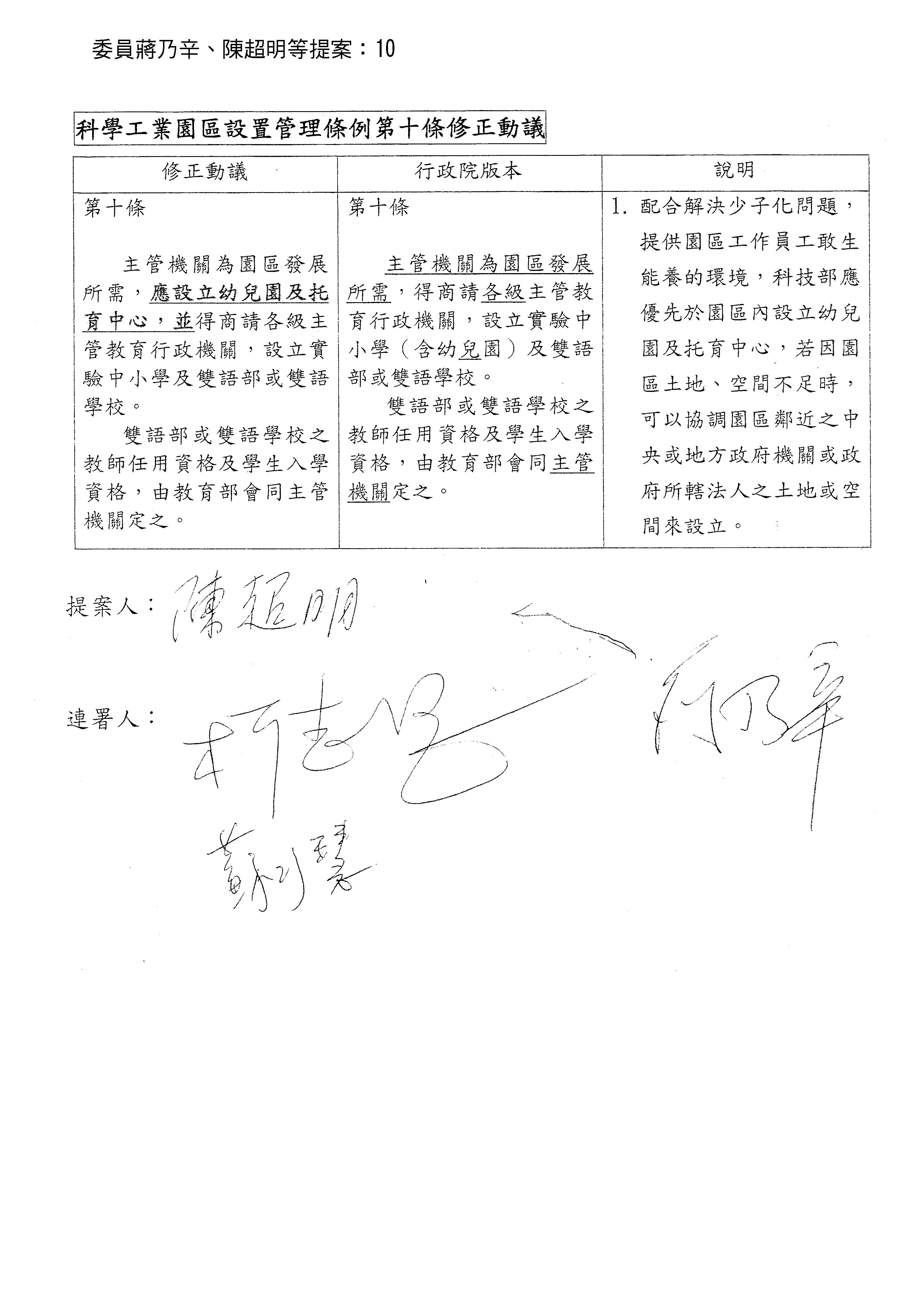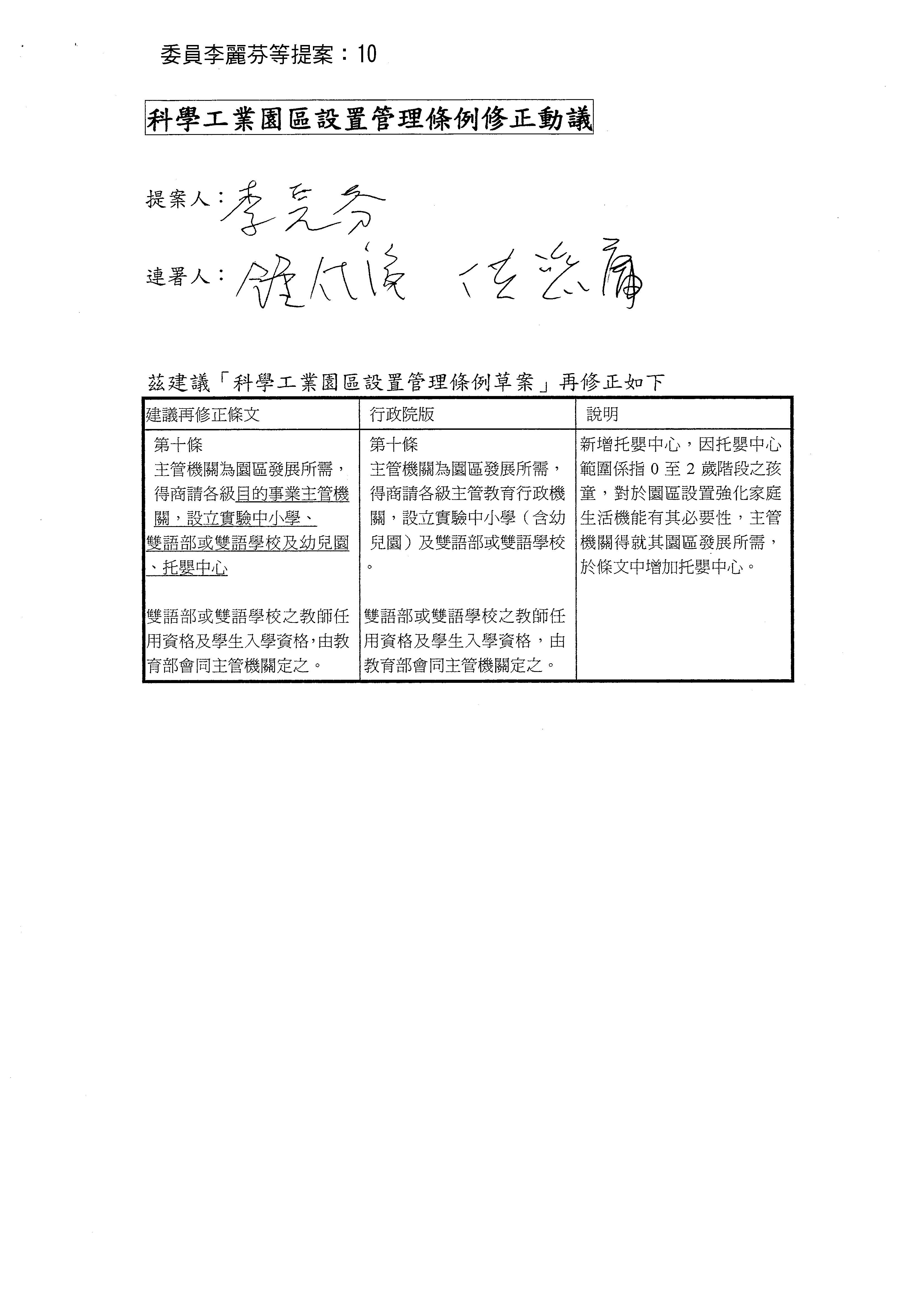 剛剛第十條的修正動議條文,各位委員剛剛都連署了,現在宣讀。