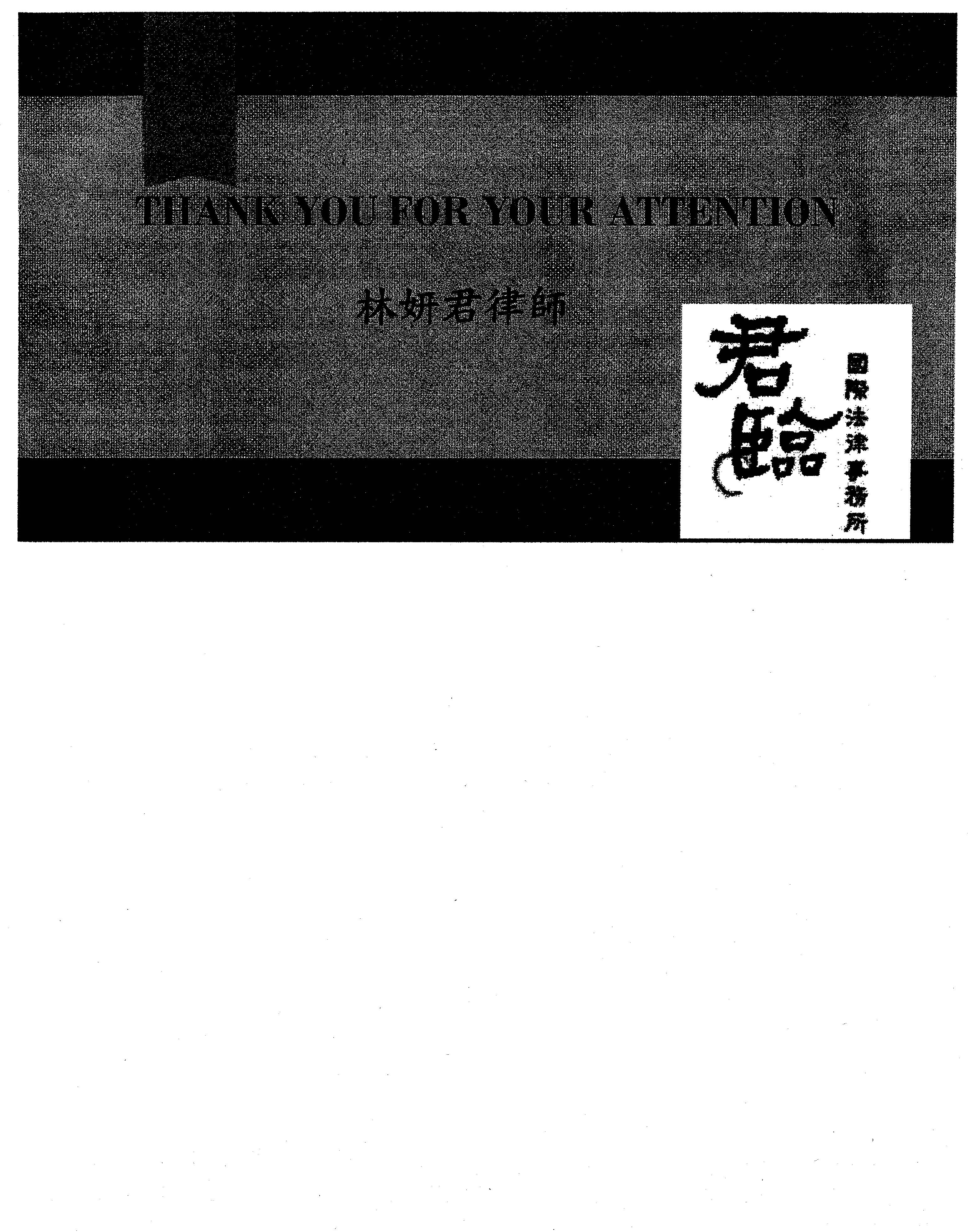 依照簽到的先後順序,接下來請君臨國際法律事務所林妍君律師發言。