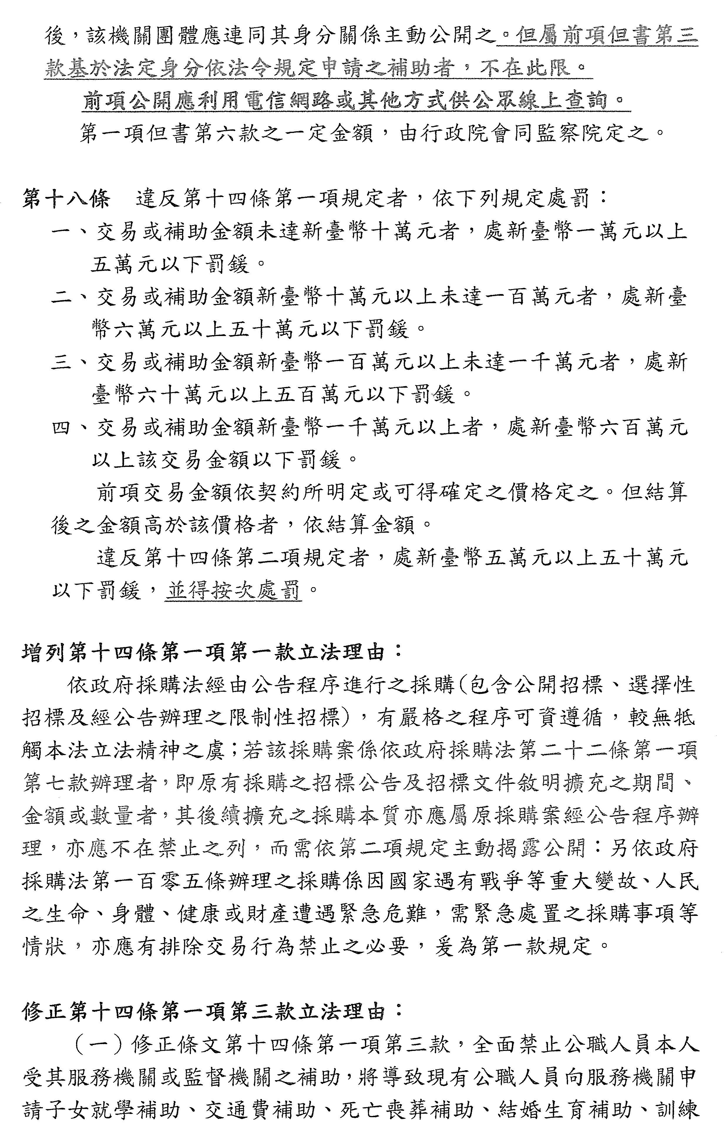 公職人員或其關係人與公職人員服務之機關團體或受其監督之機關團體為前項但書第一款至第三款補助或交易行為前,應主動於申請或投標文件內據實表明其身分關係;於補助或交易行為成立後,該機關團體應連同其身分關係主動公開之。但屬前項但書第三款基於法定身分依法令規定申請之補助者,不在此限。