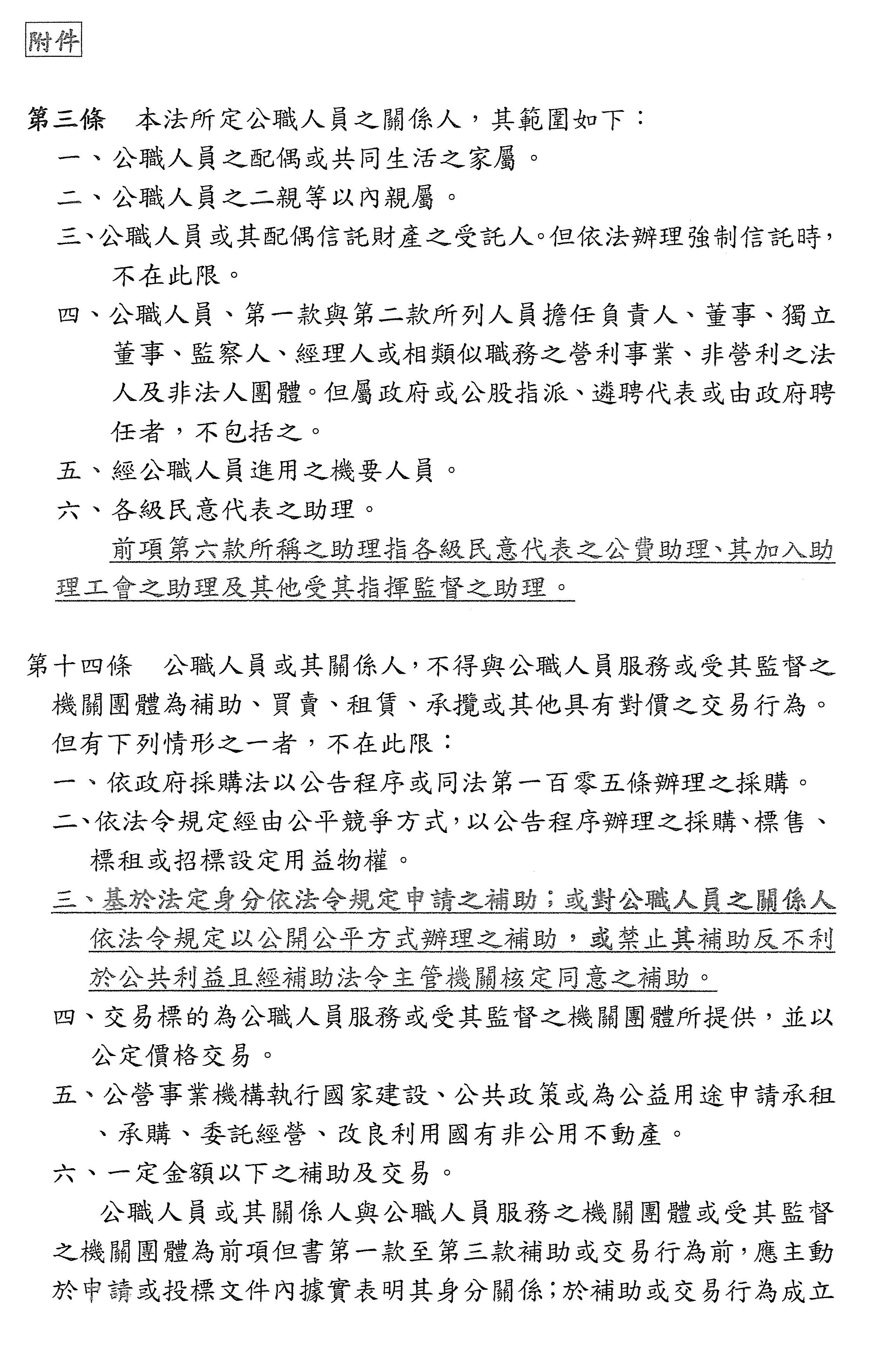 第 三 條 本法所定公職人員之關係人,其範圍如下: