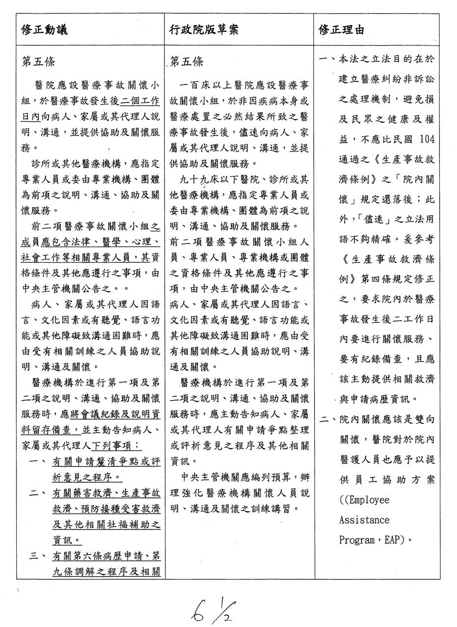 委員劉建國等17人提案: 第三十一條 主管機關對發生醫療事故或醫療糾紛爭議之醫療機構,得令其限期分析發生原因,並提出檢討及改善方案。 主管機關得於前條第二項通報或前項提出檢討及改善方案後一年內,查察改善方案之執行。 委員邱泰源等22人提案: 第三十一條 主管機關對發生醫療事件或醫療爭議之醫療機構,得視需要令其限期分析發生原因,並提出檢討及改善方案。 主管機關得於前條第二項通報或前項提出檢討及改善方案後一年內,查察改善方案之執行。 |