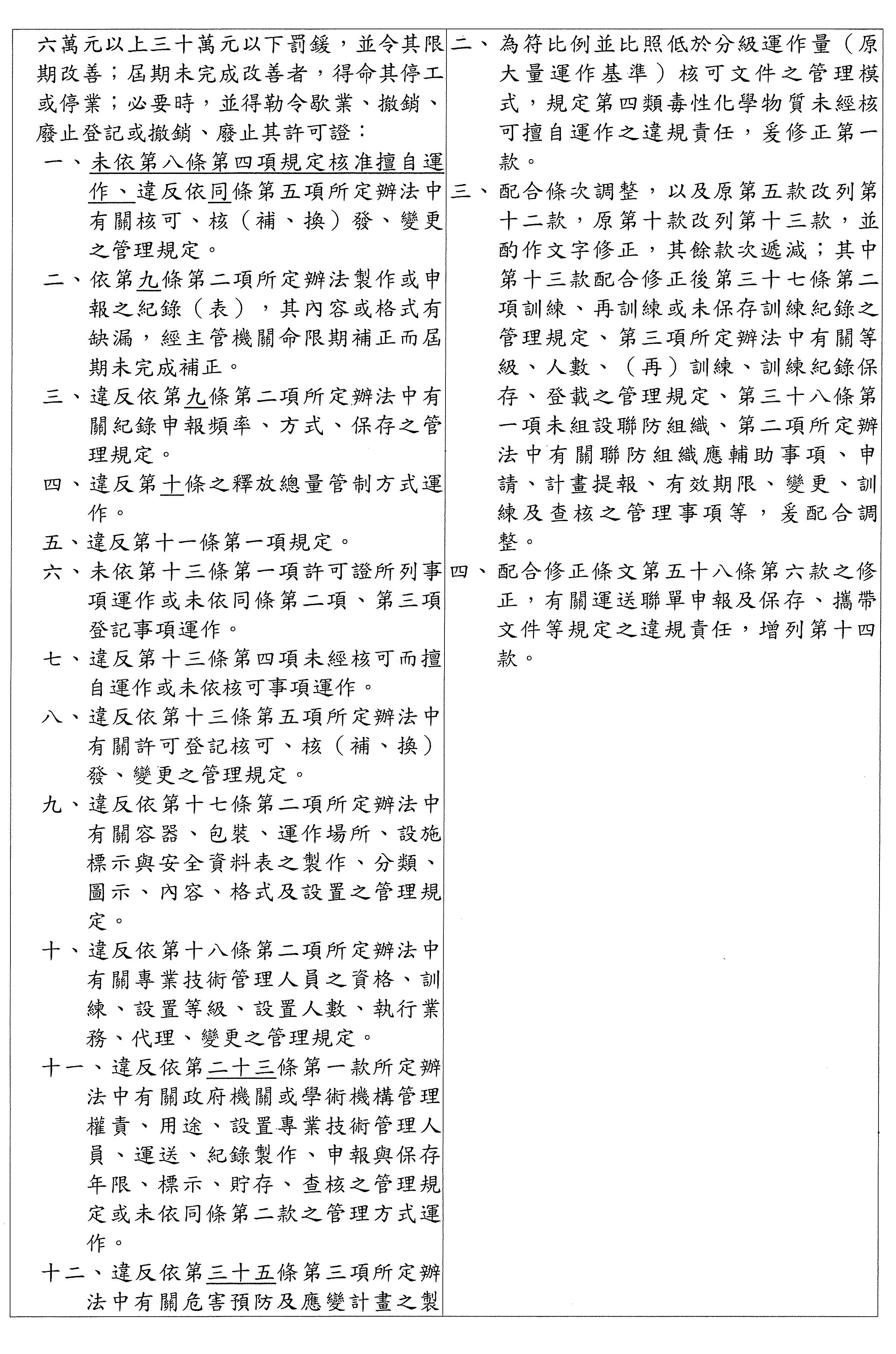 第 十 條 第一類及第二類毒性化學物質之運作,中央主管機關得以釋放總量管制方式管制之。