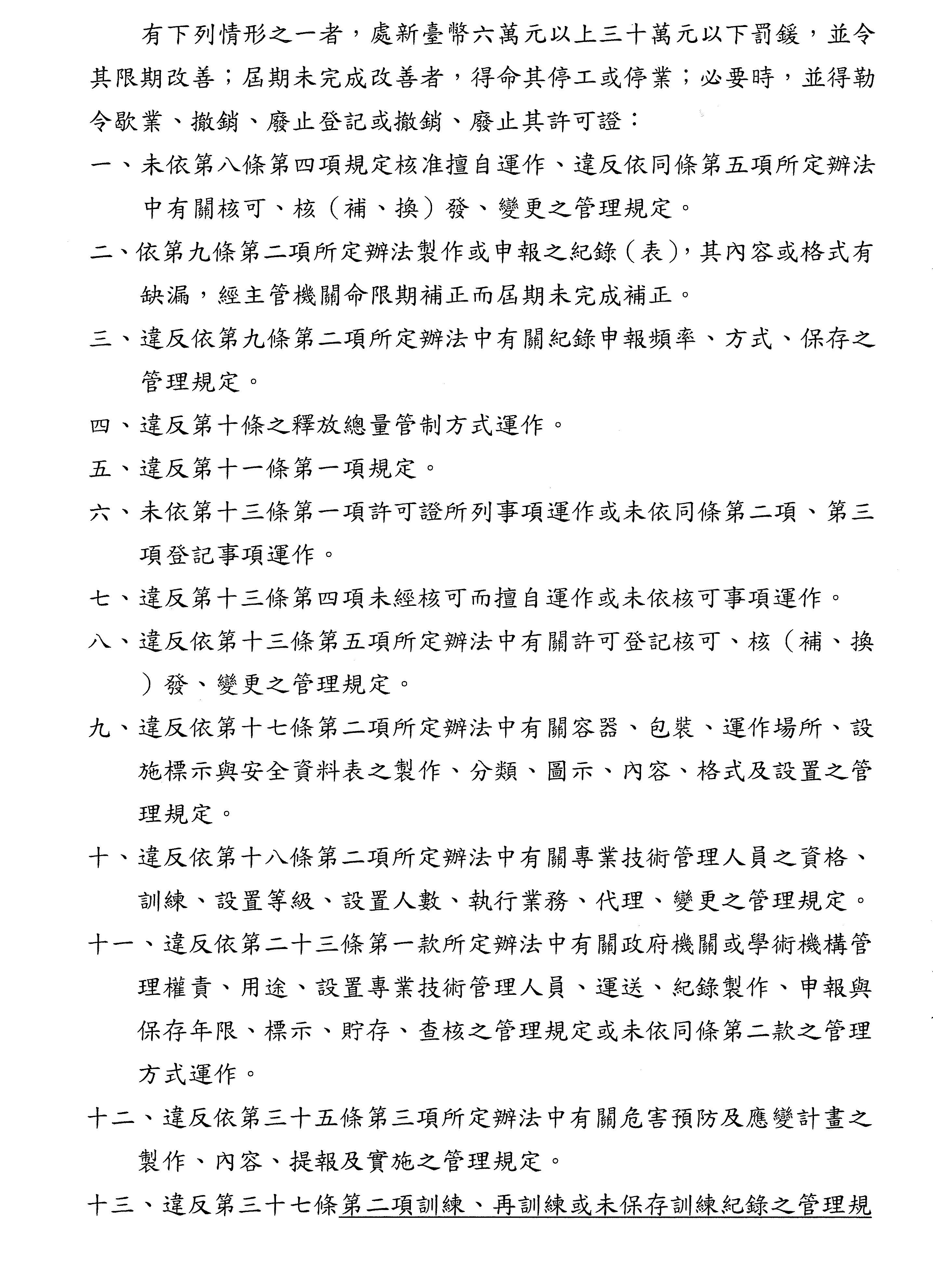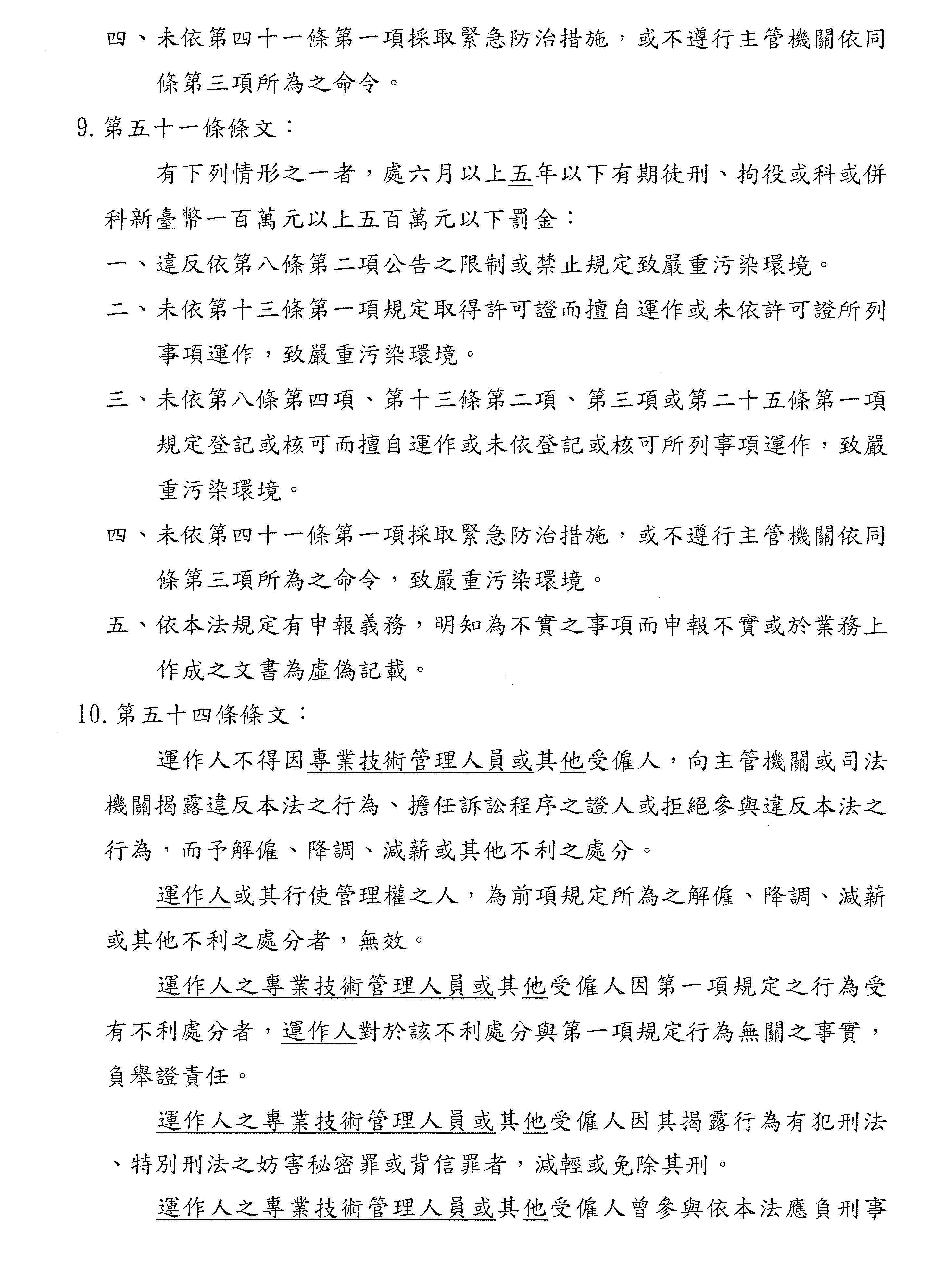 針對「毒性化學物質管理法」第三十八條提出文字修正意見: