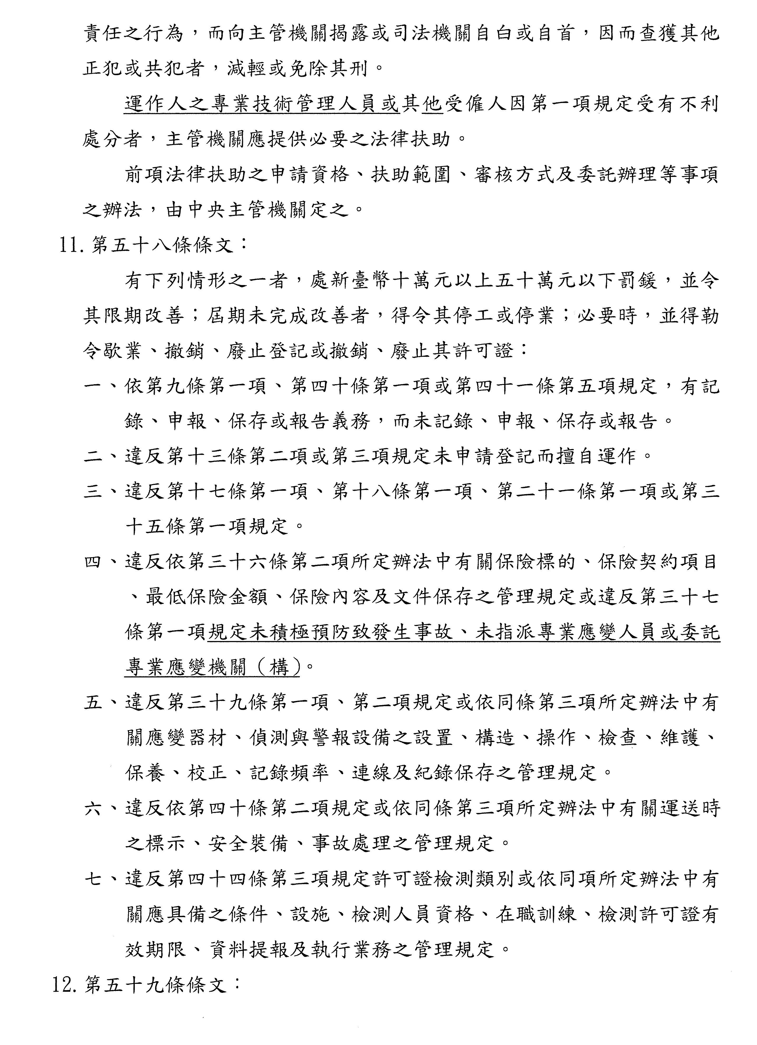 主席:報告院會,三讀條文已宣讀完畢,現有民進黨黨團提出文字修正意見,將第三十八條第一項末句「輔助前項事故發生時」修正為「輔助事故發生時」。