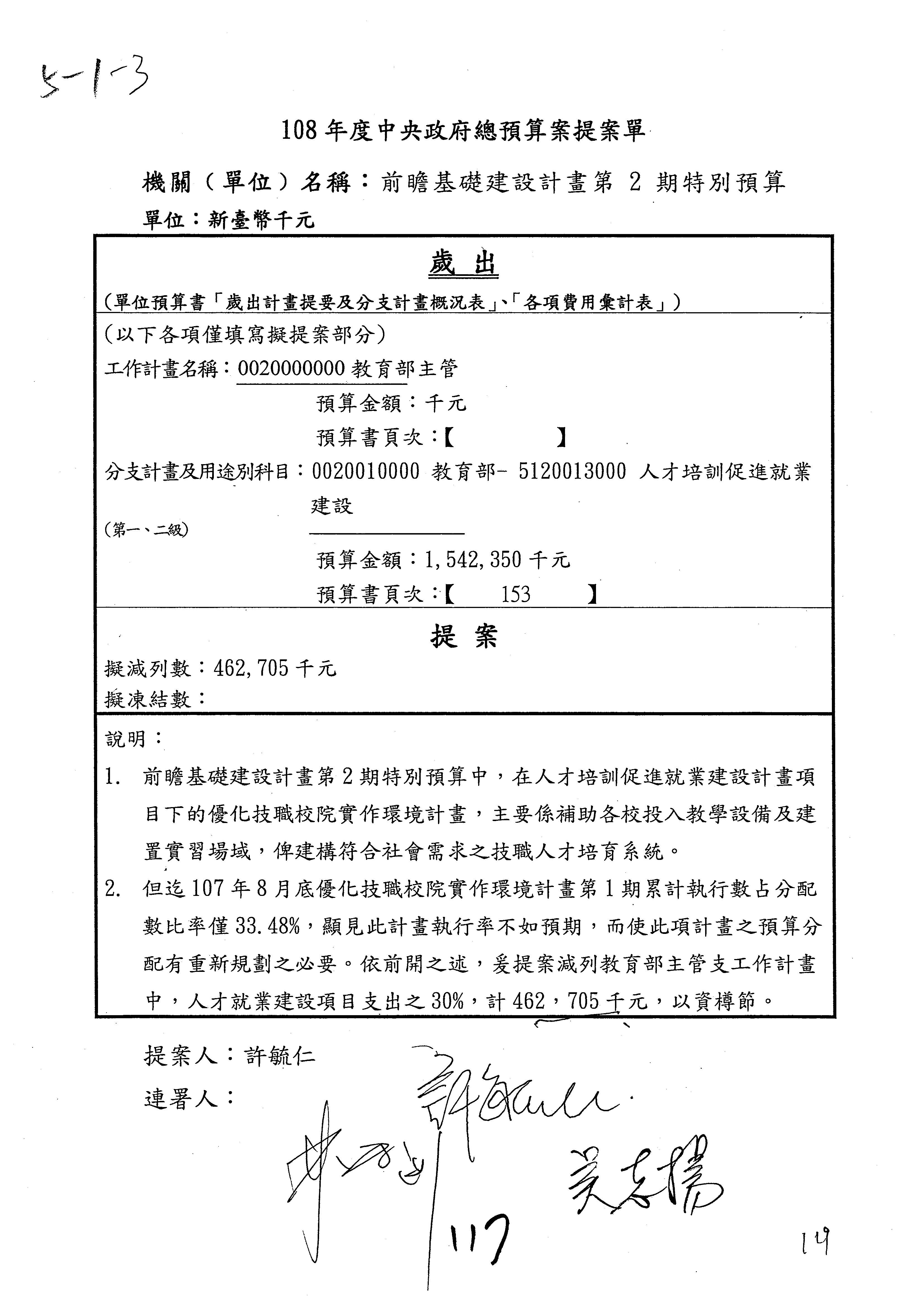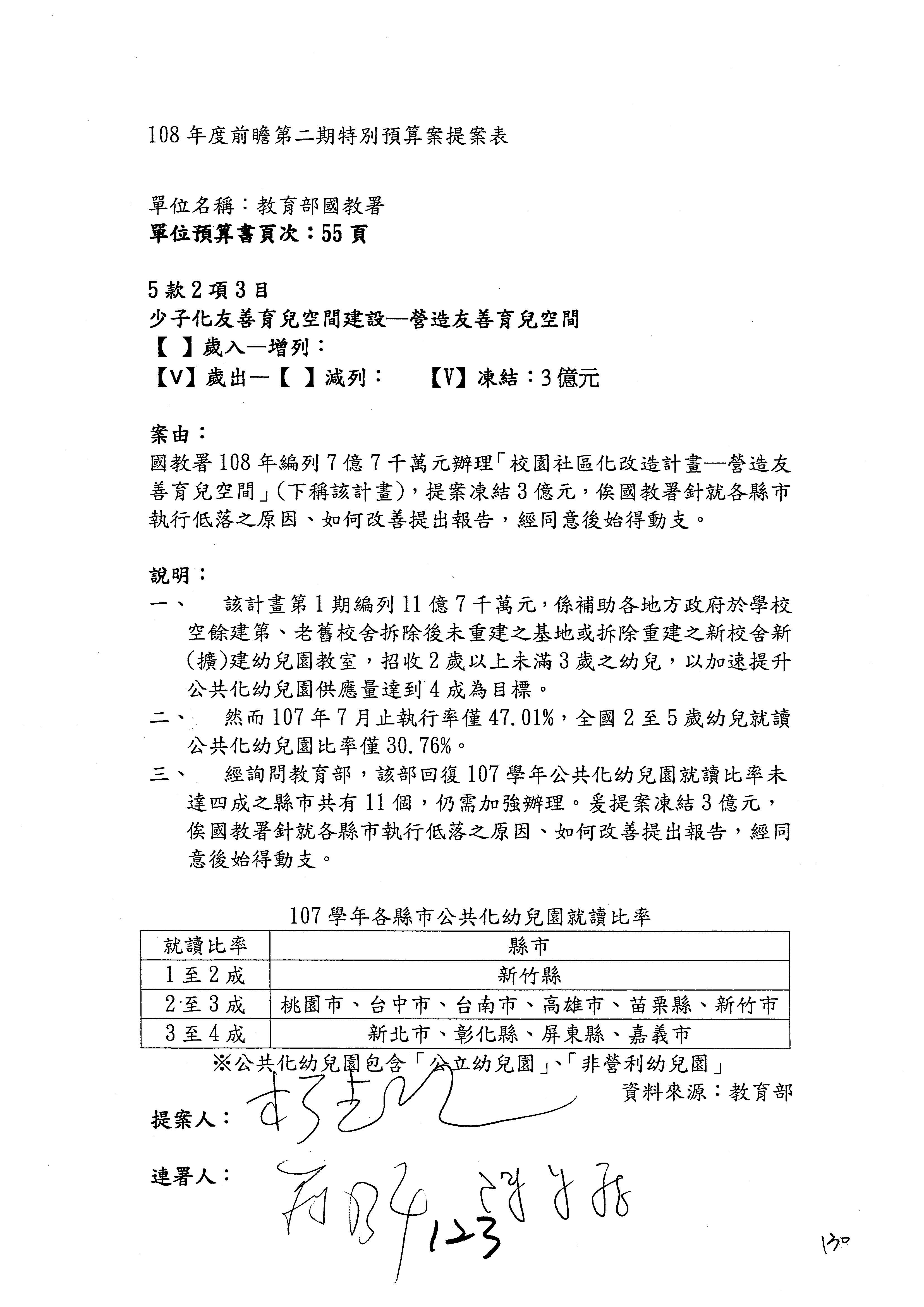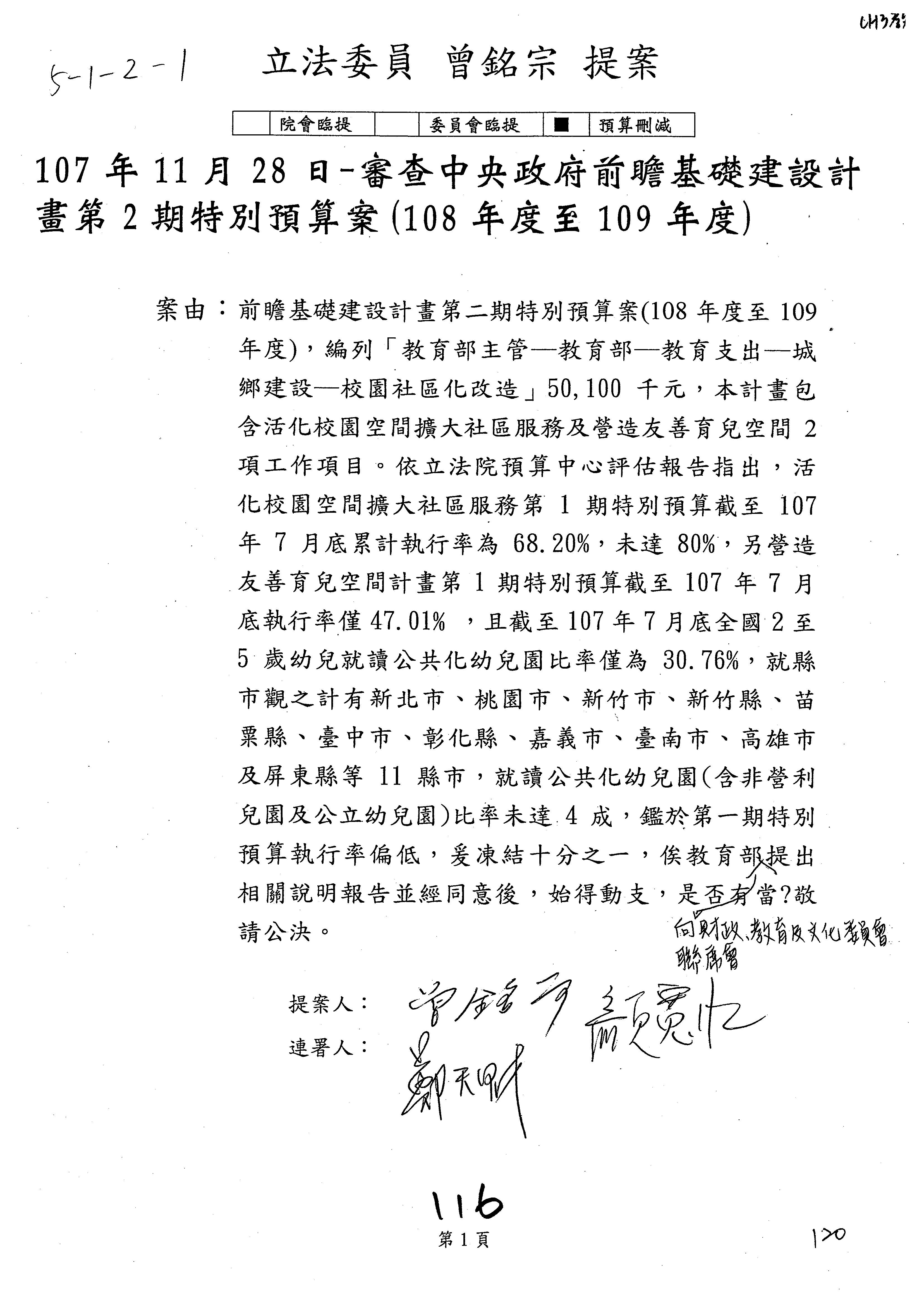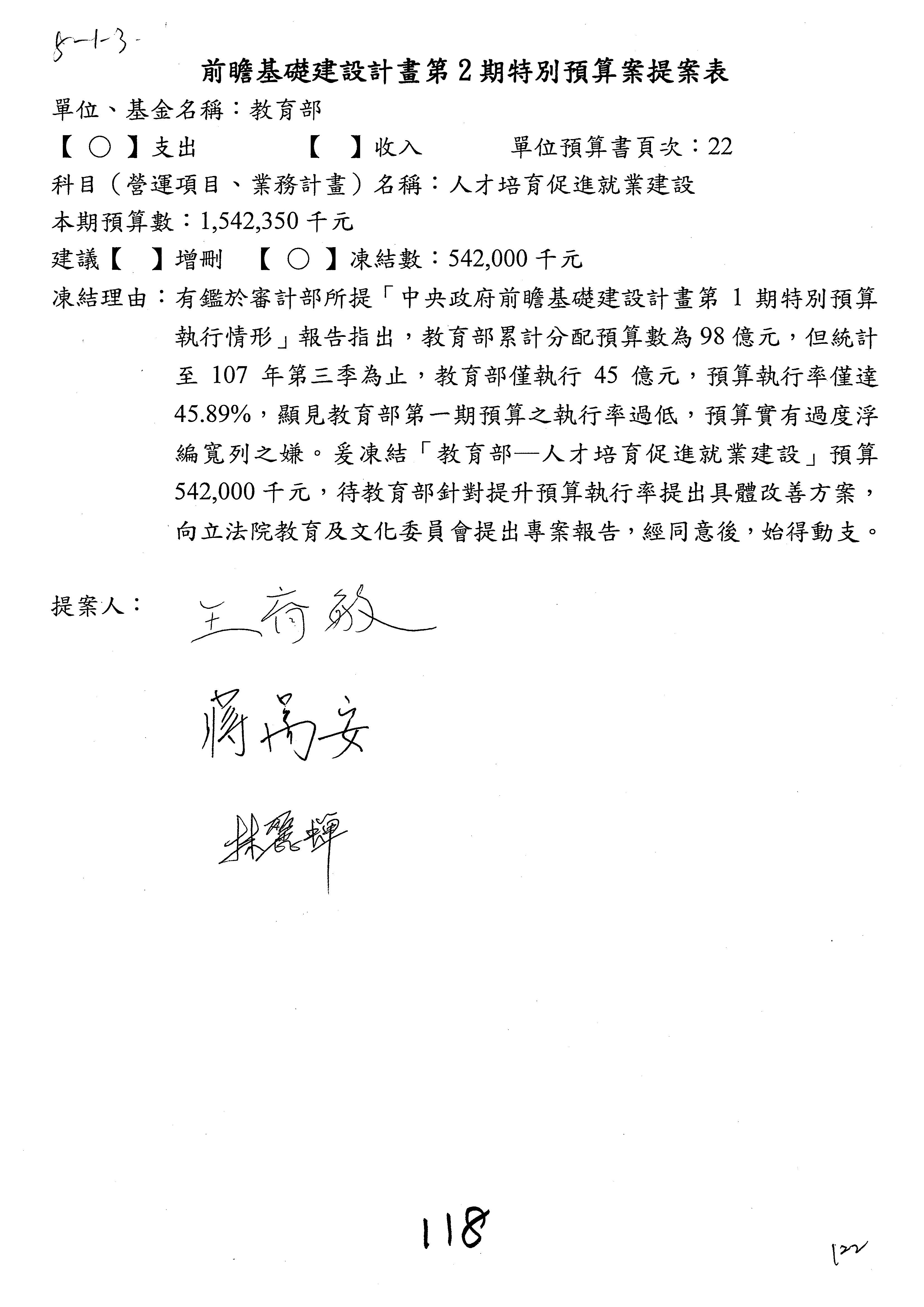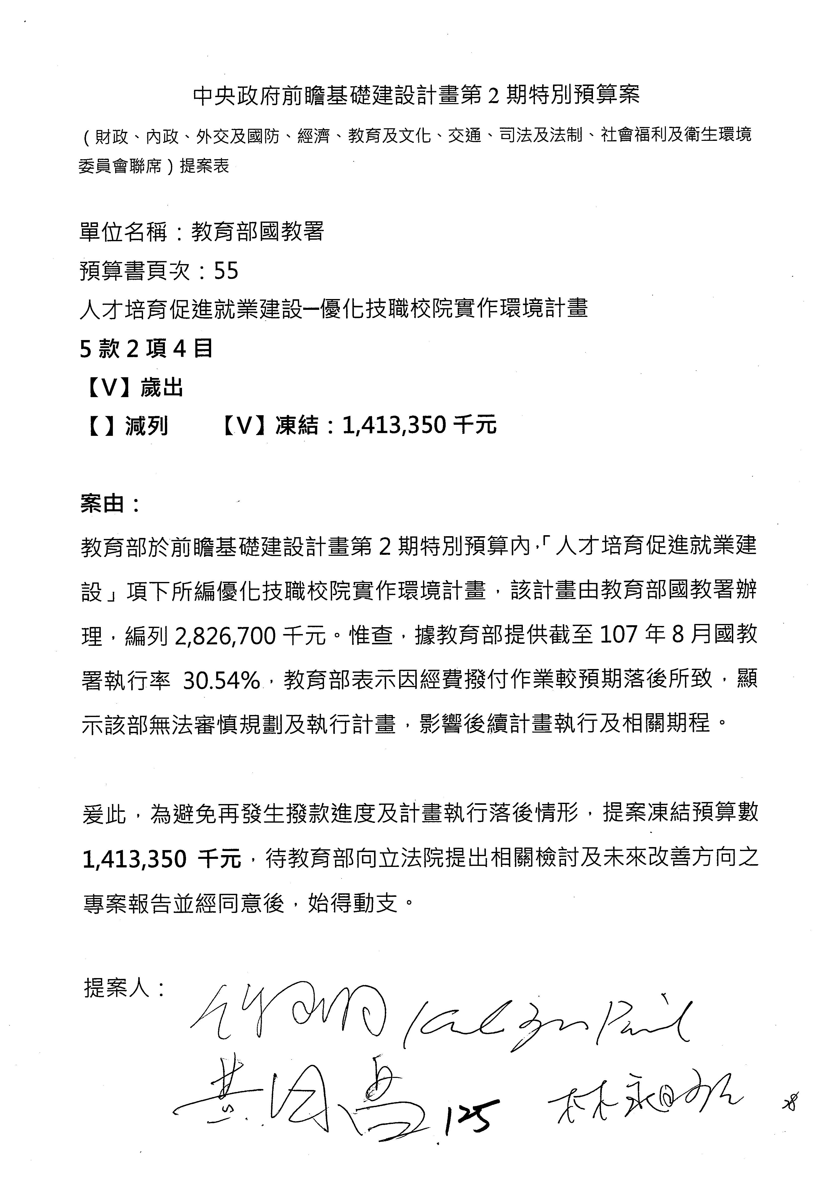 第107案刪減2,000萬元,教育部跟國教署各刪減1,000萬元。