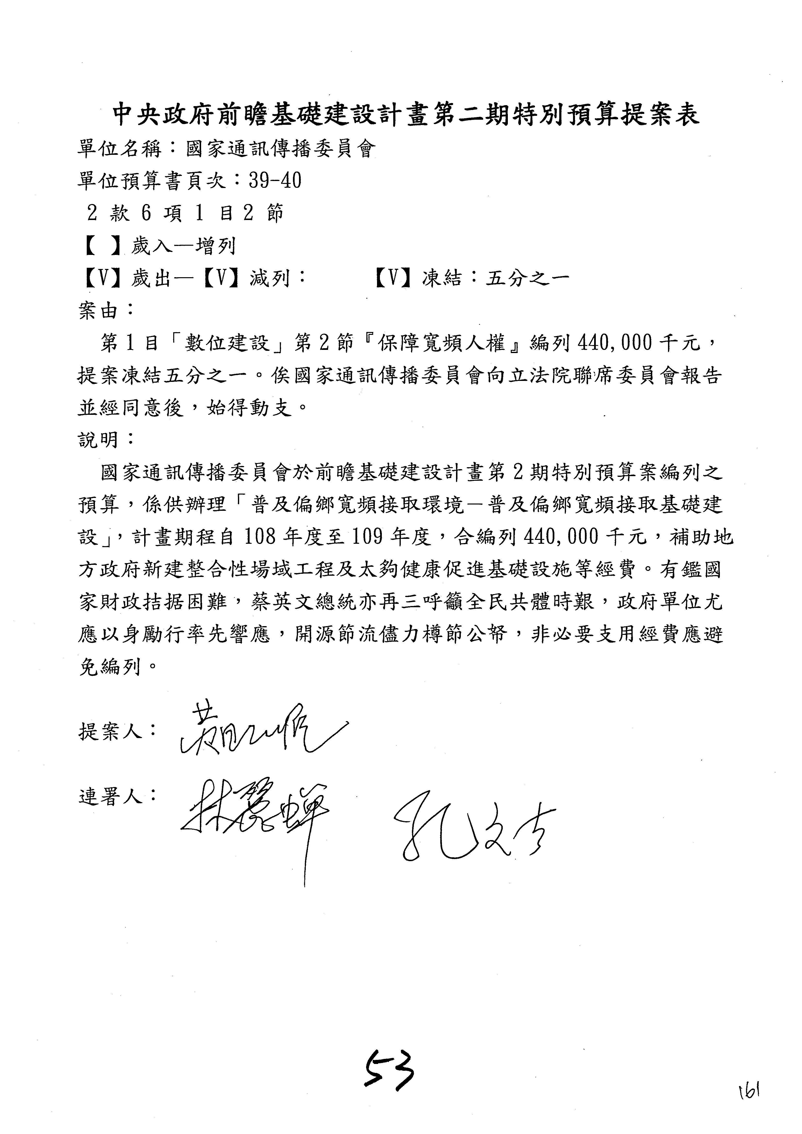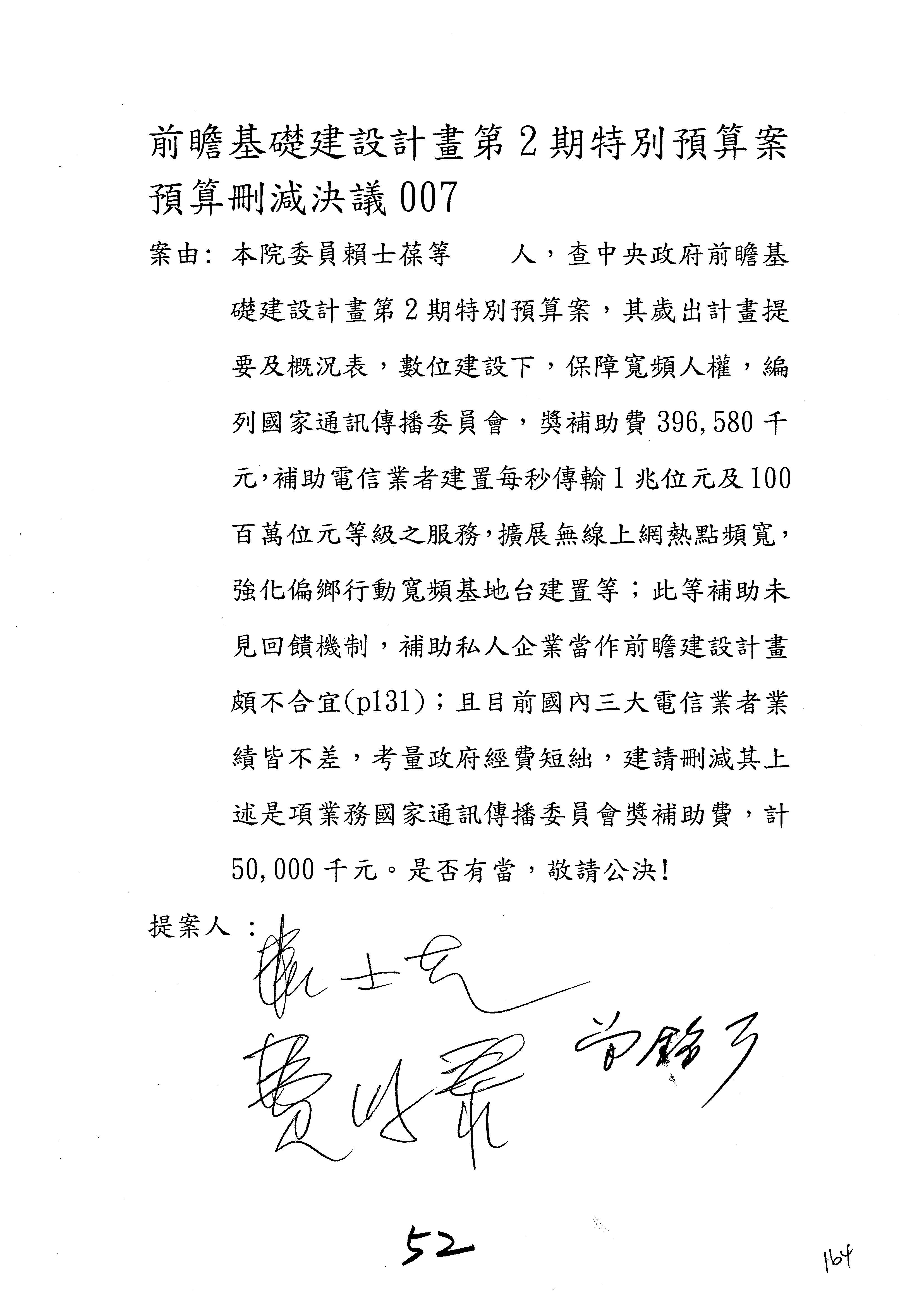 第52案至第53案,合併刪減獎補助費1,000萬元。