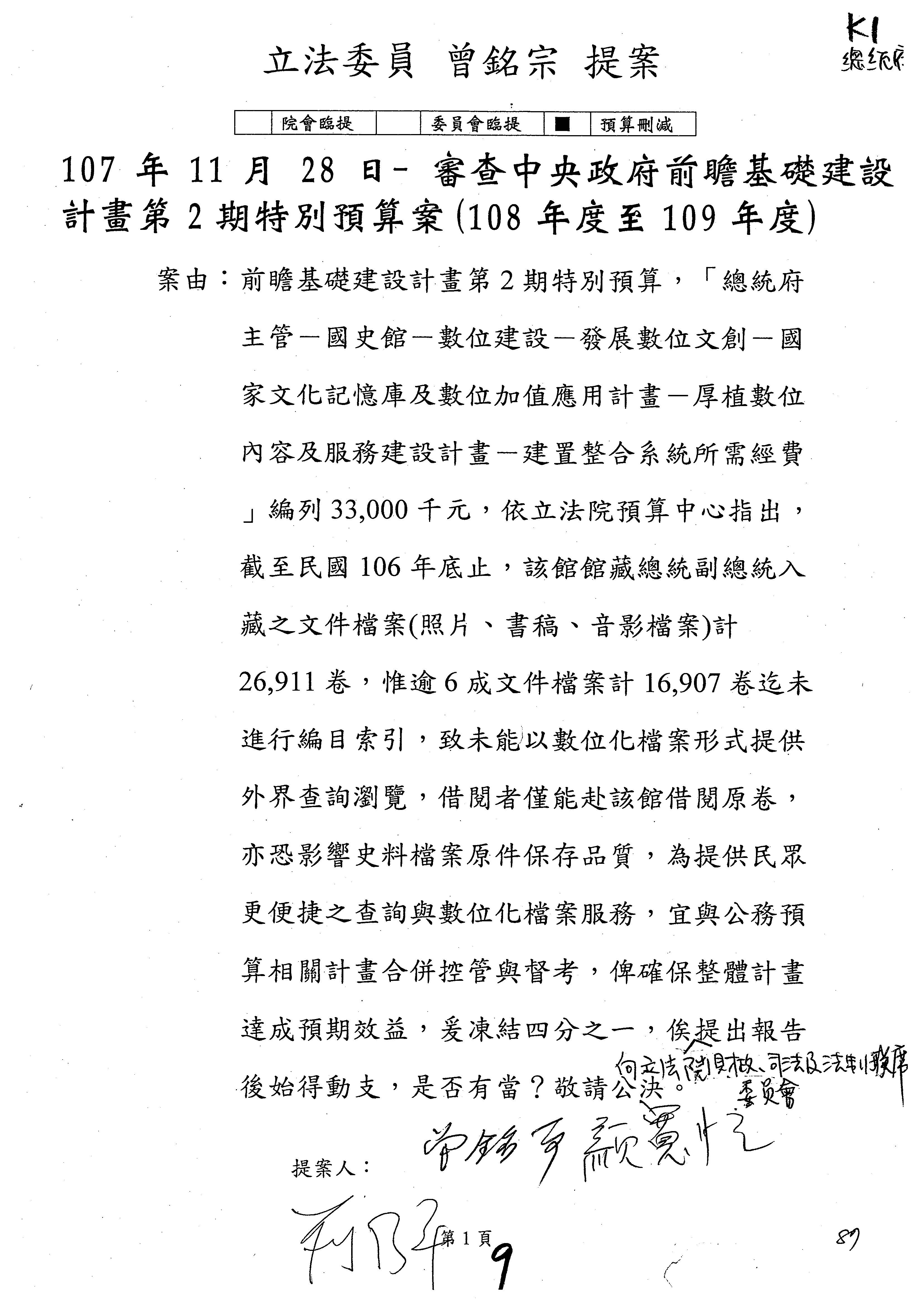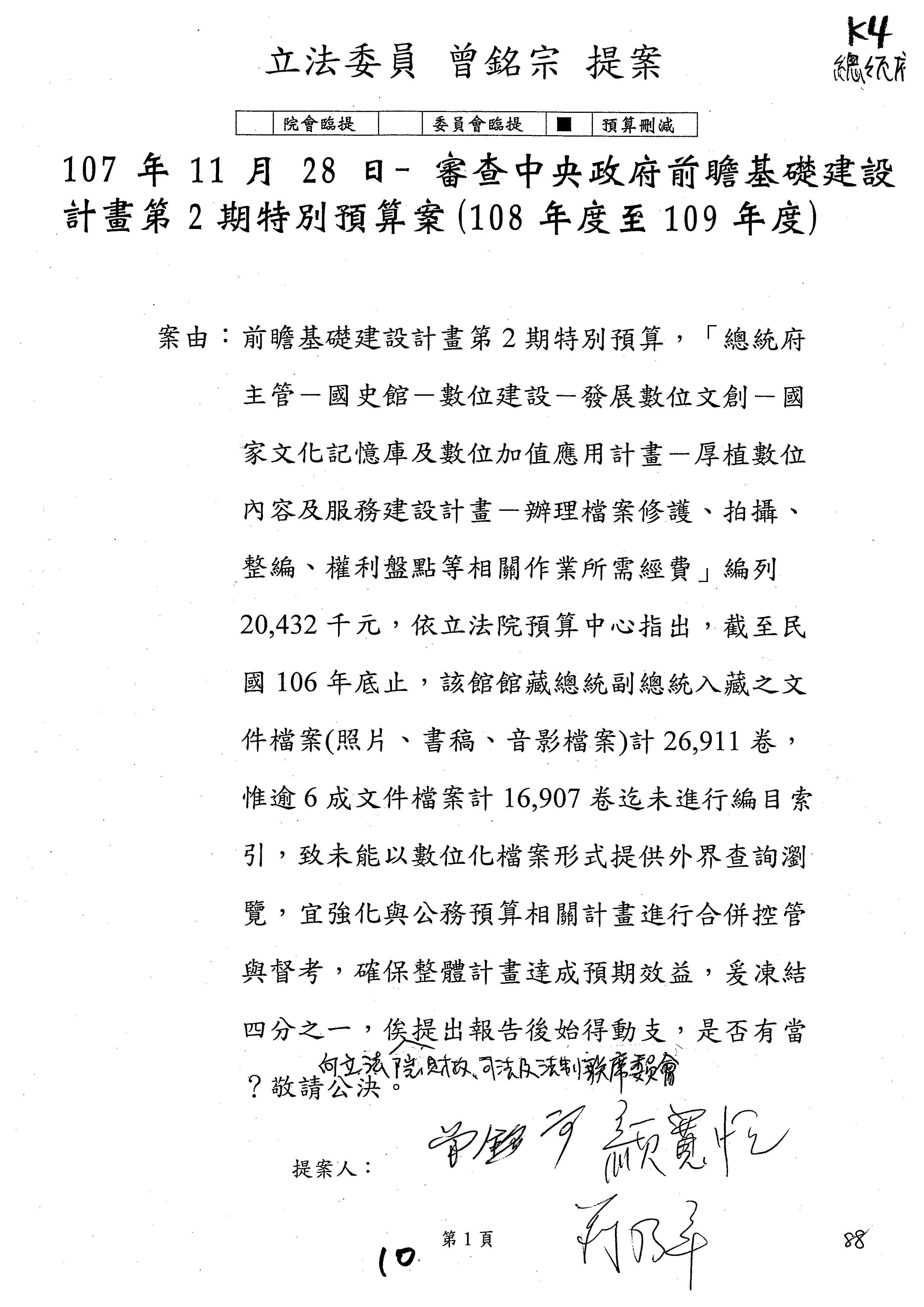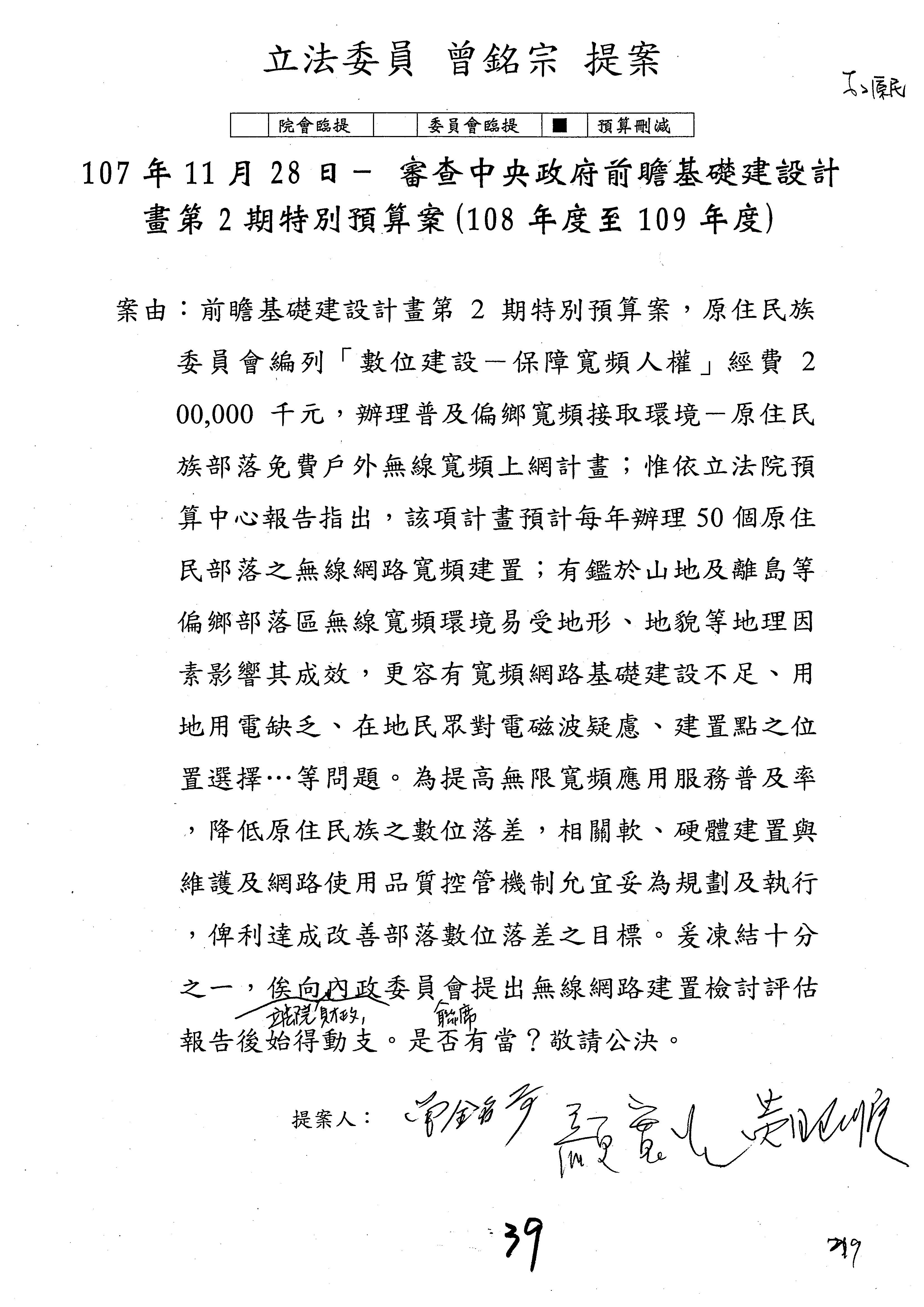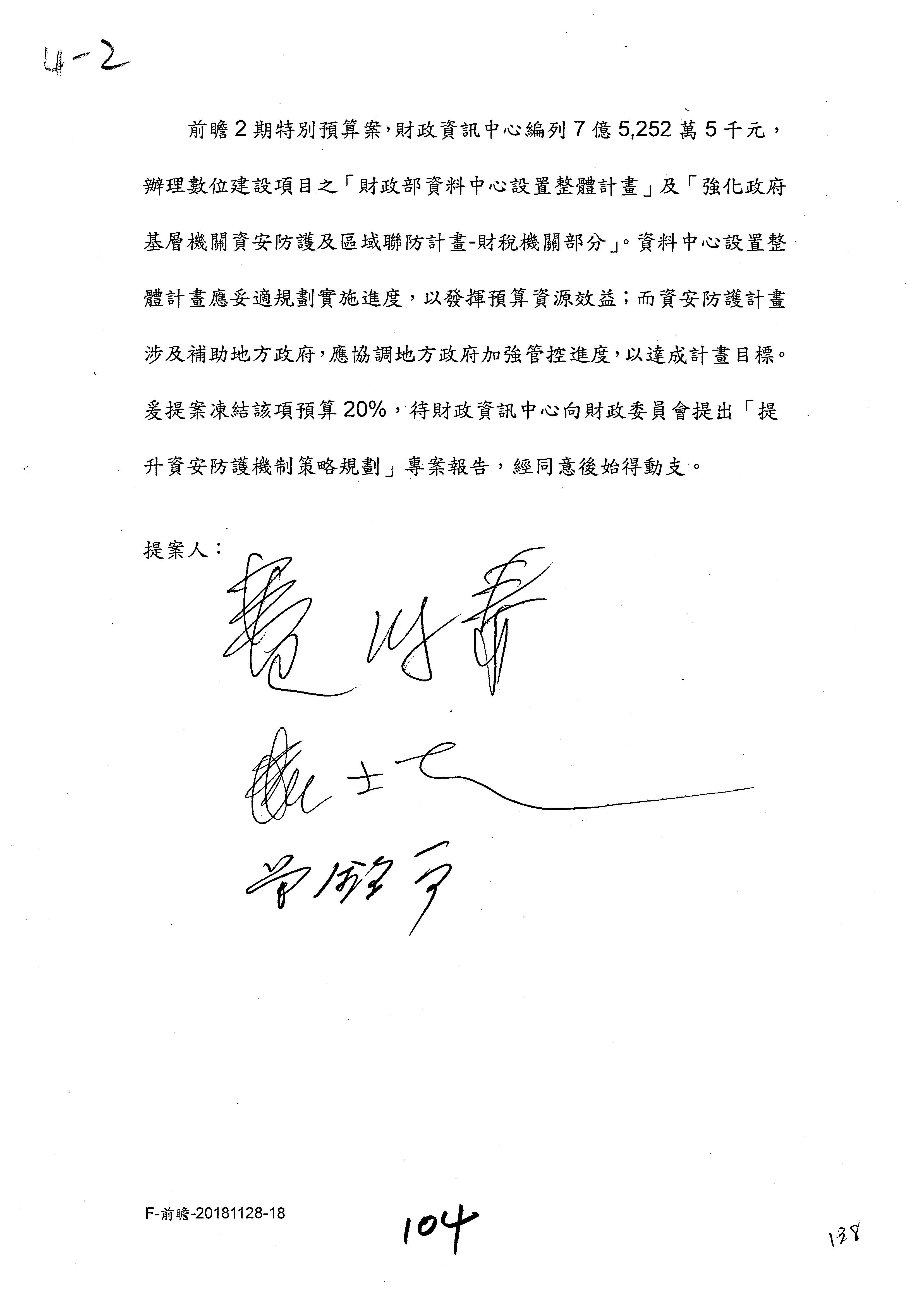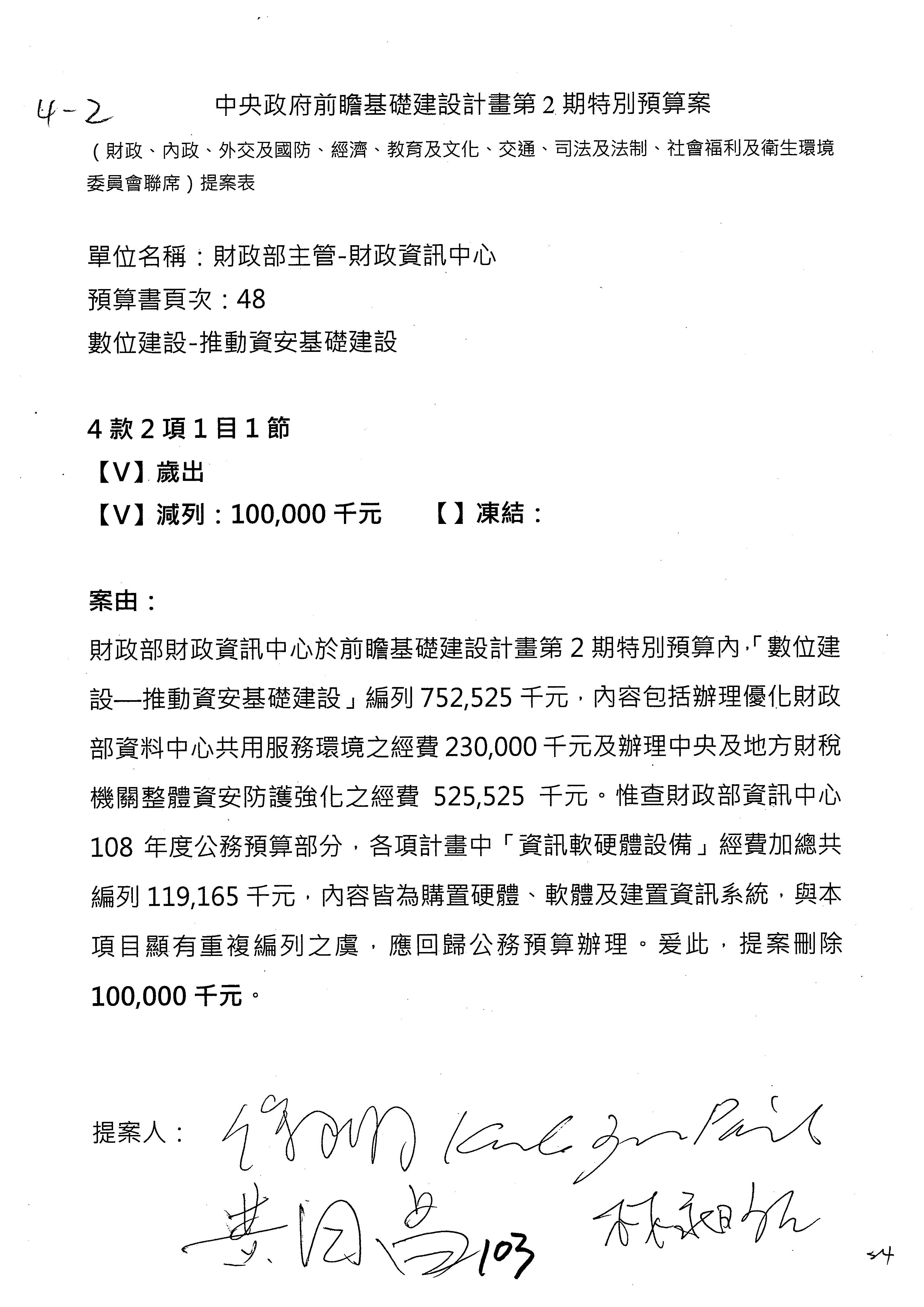 第108案至第111案合併處理,刪減500萬元,刪減資安基礎建設費用。