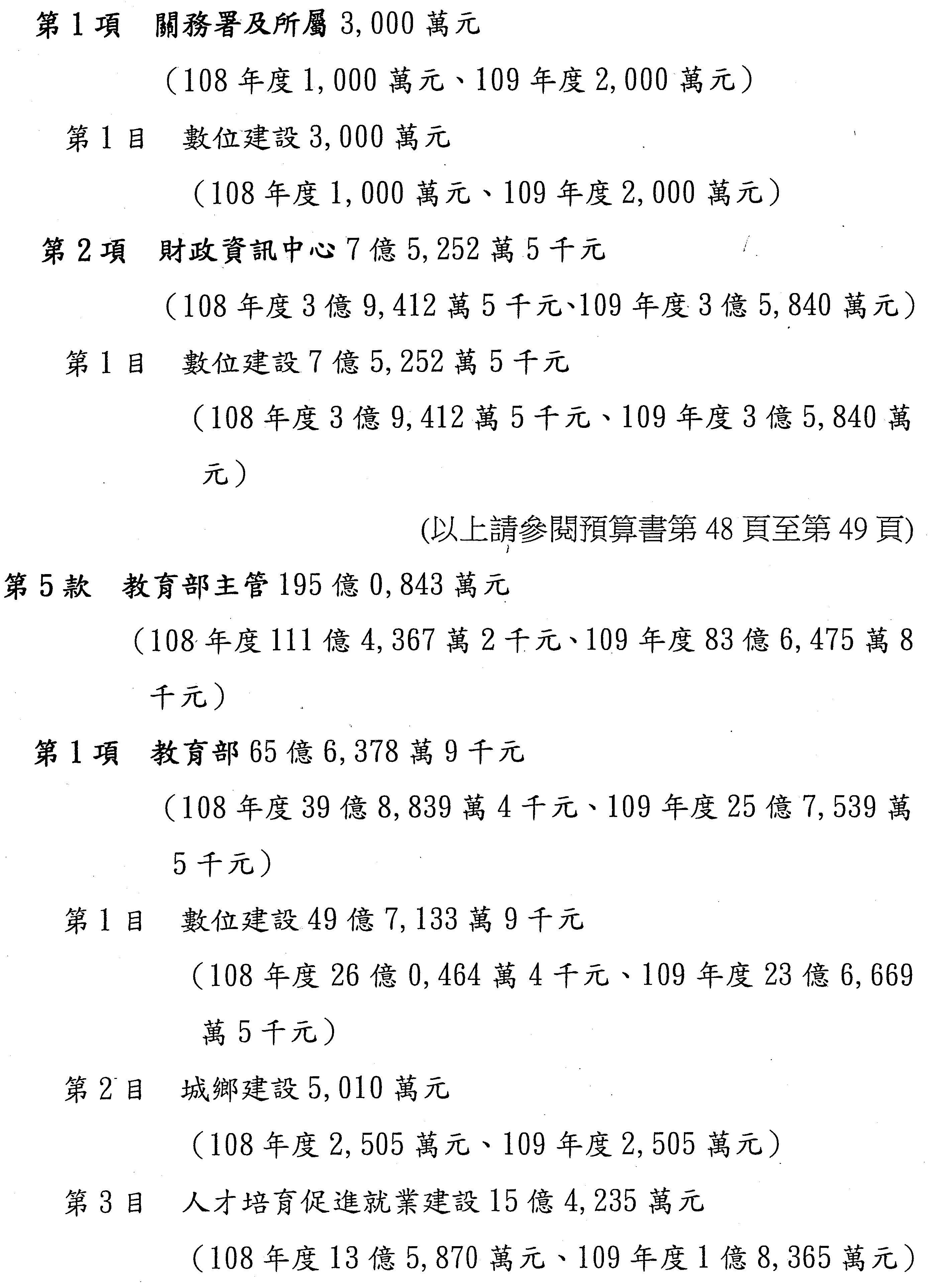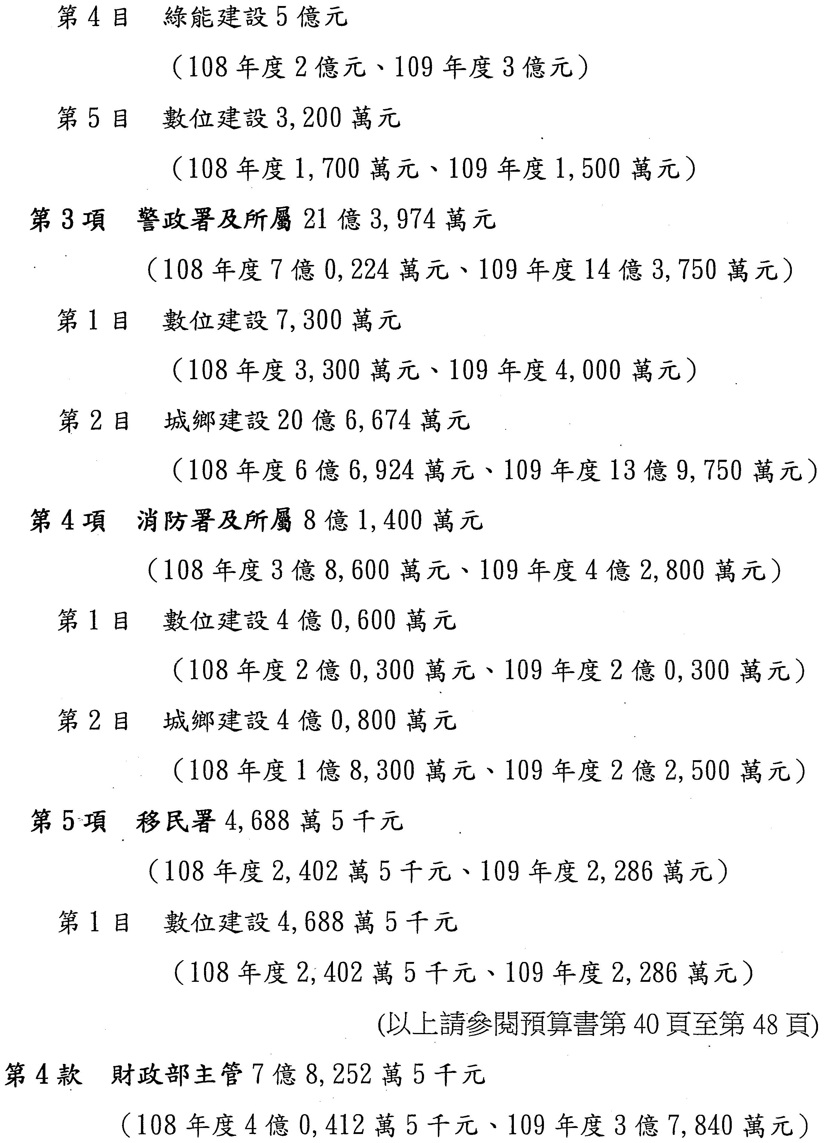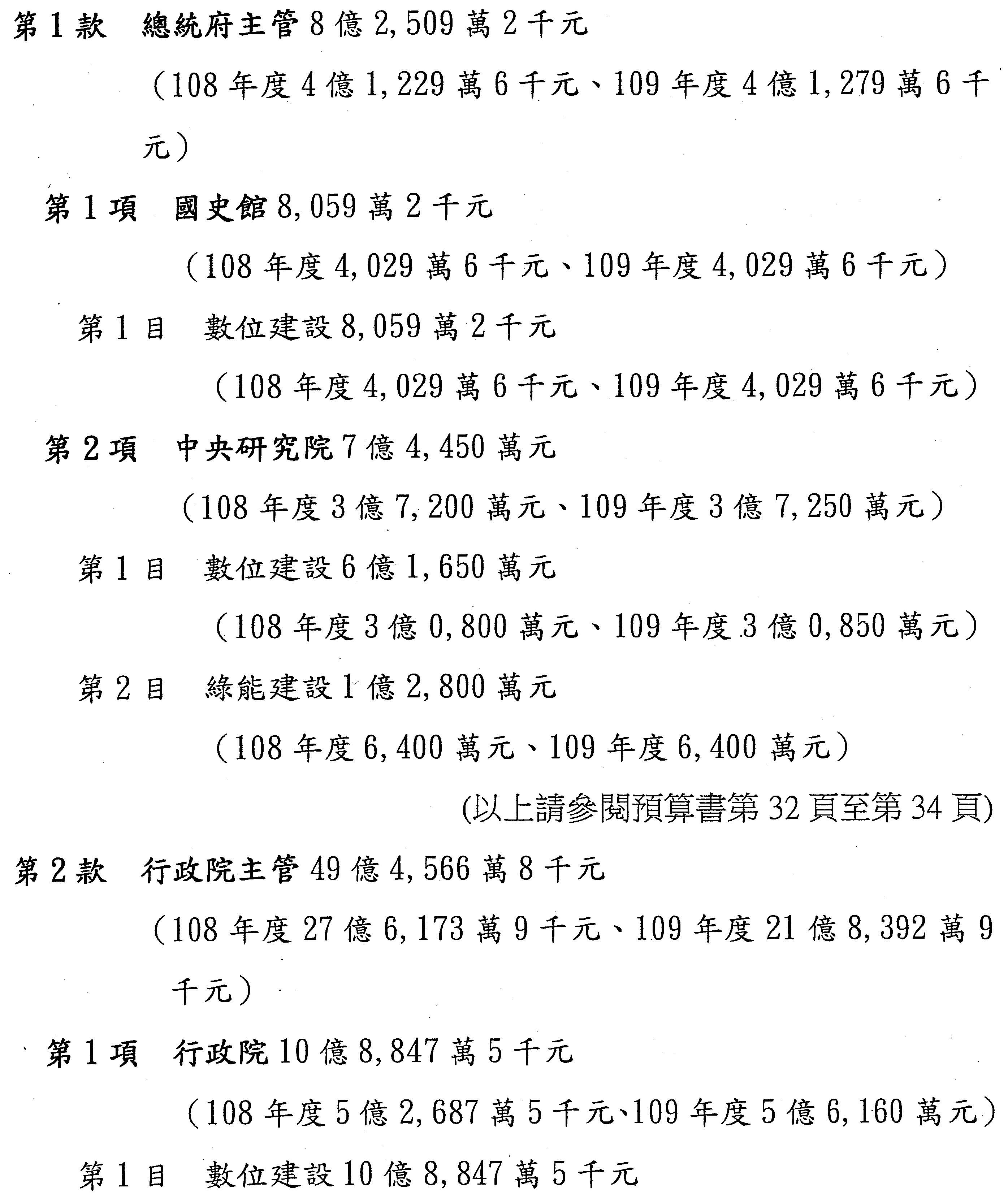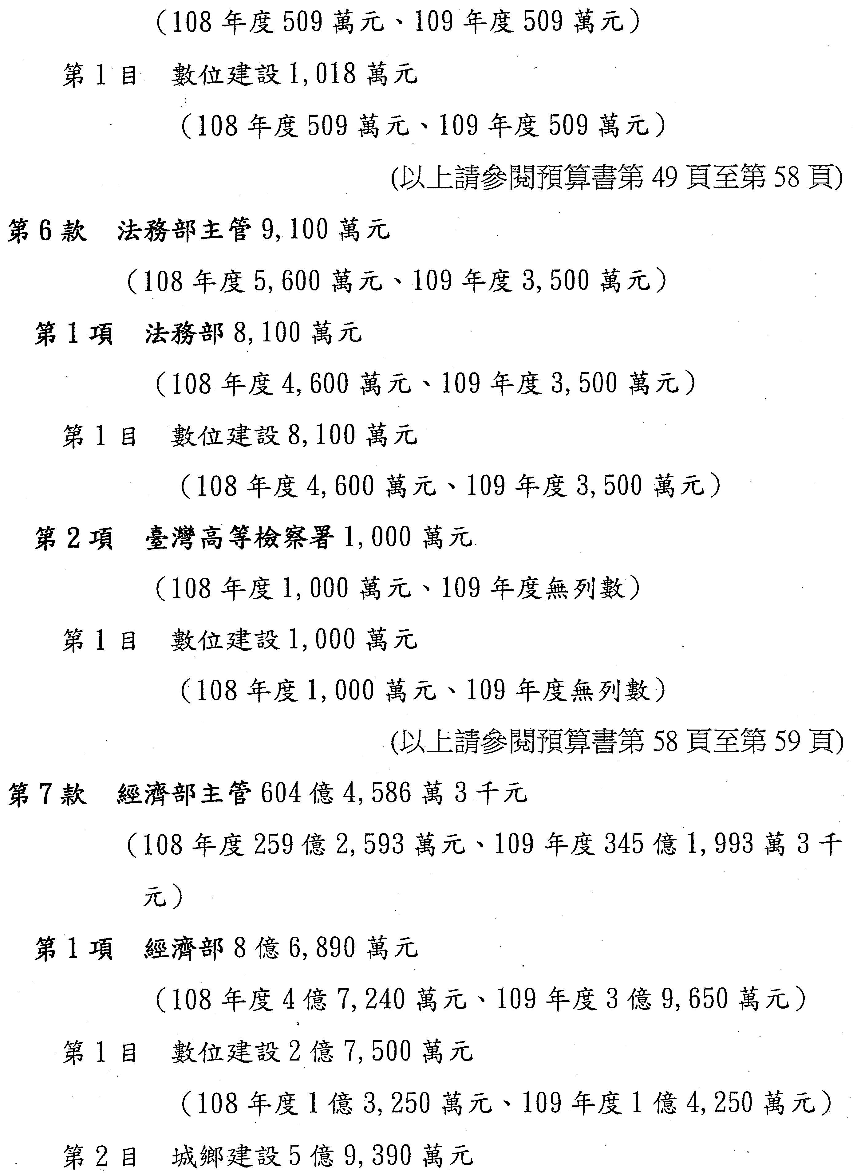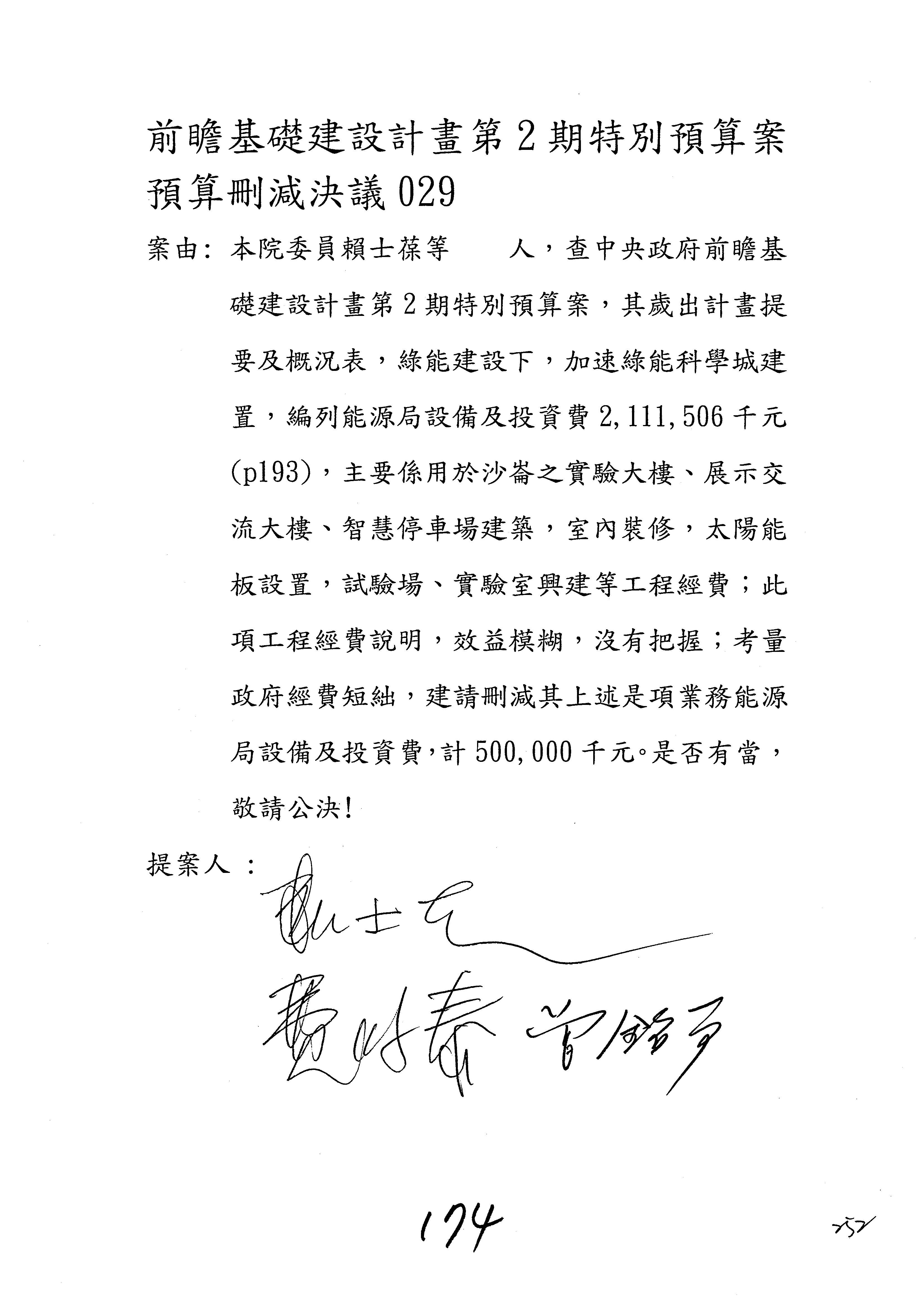 第174案刪減1億1,150萬6,000元,科目自行調整。第175案刪減3,000萬元,科目自行調整。