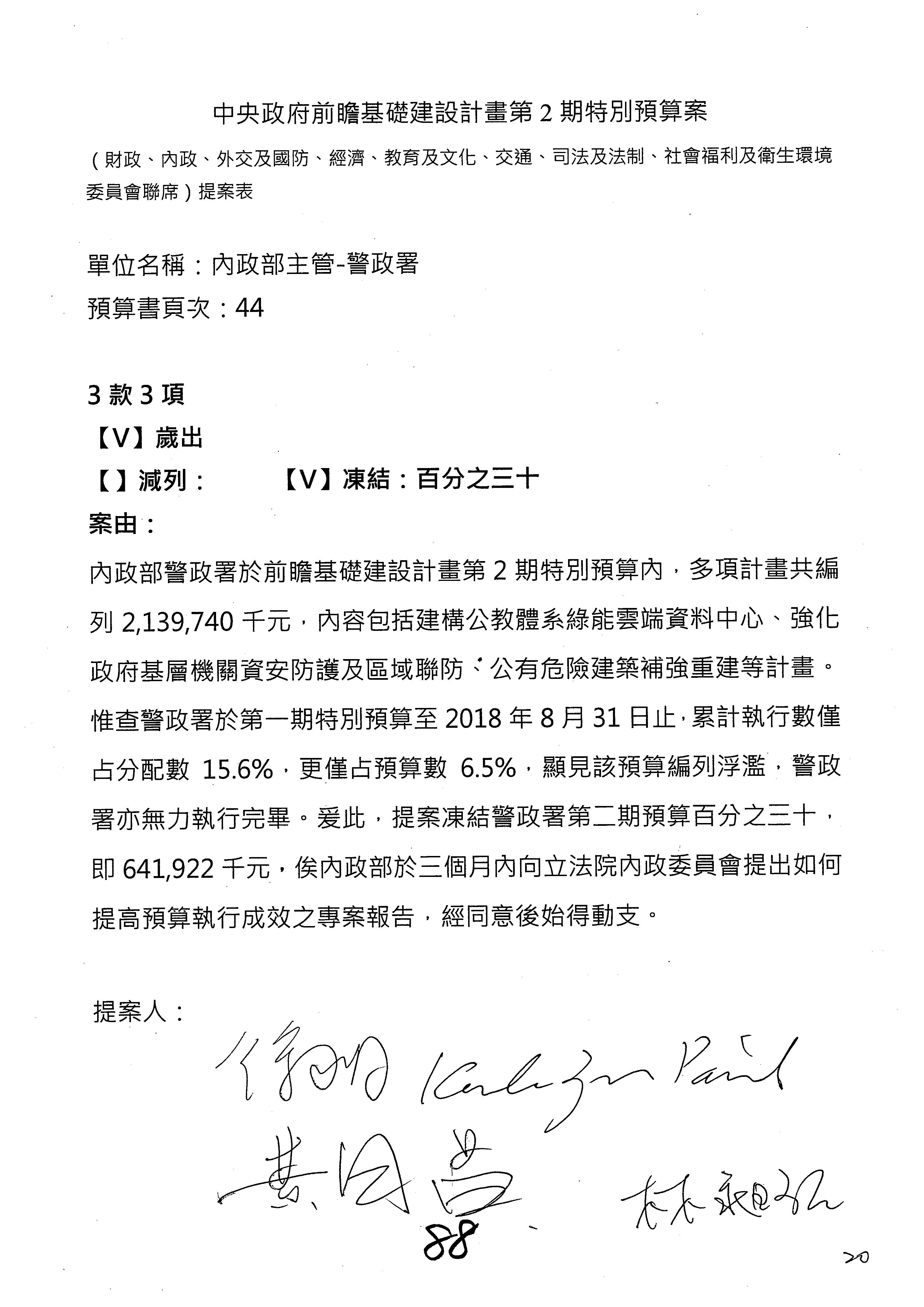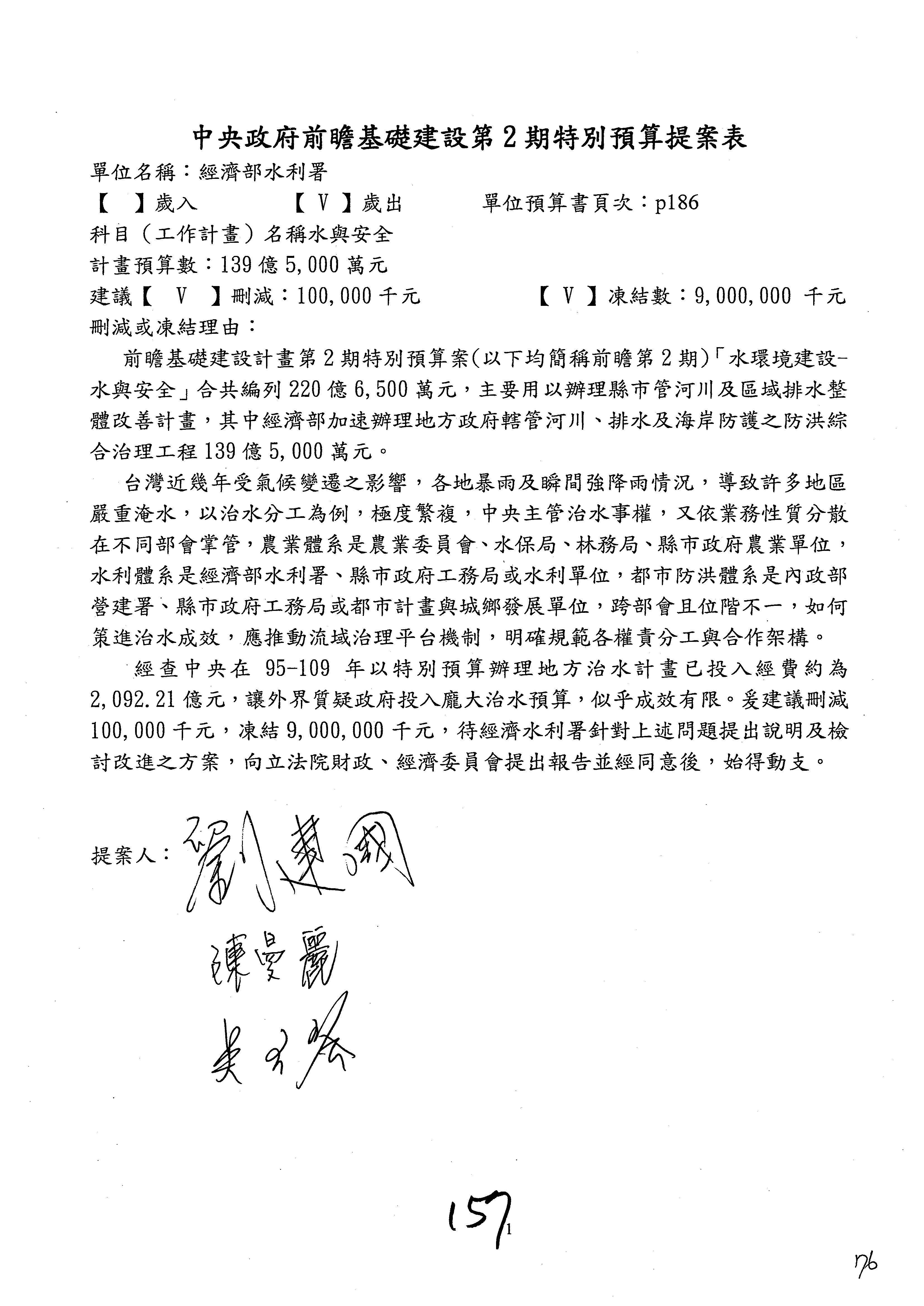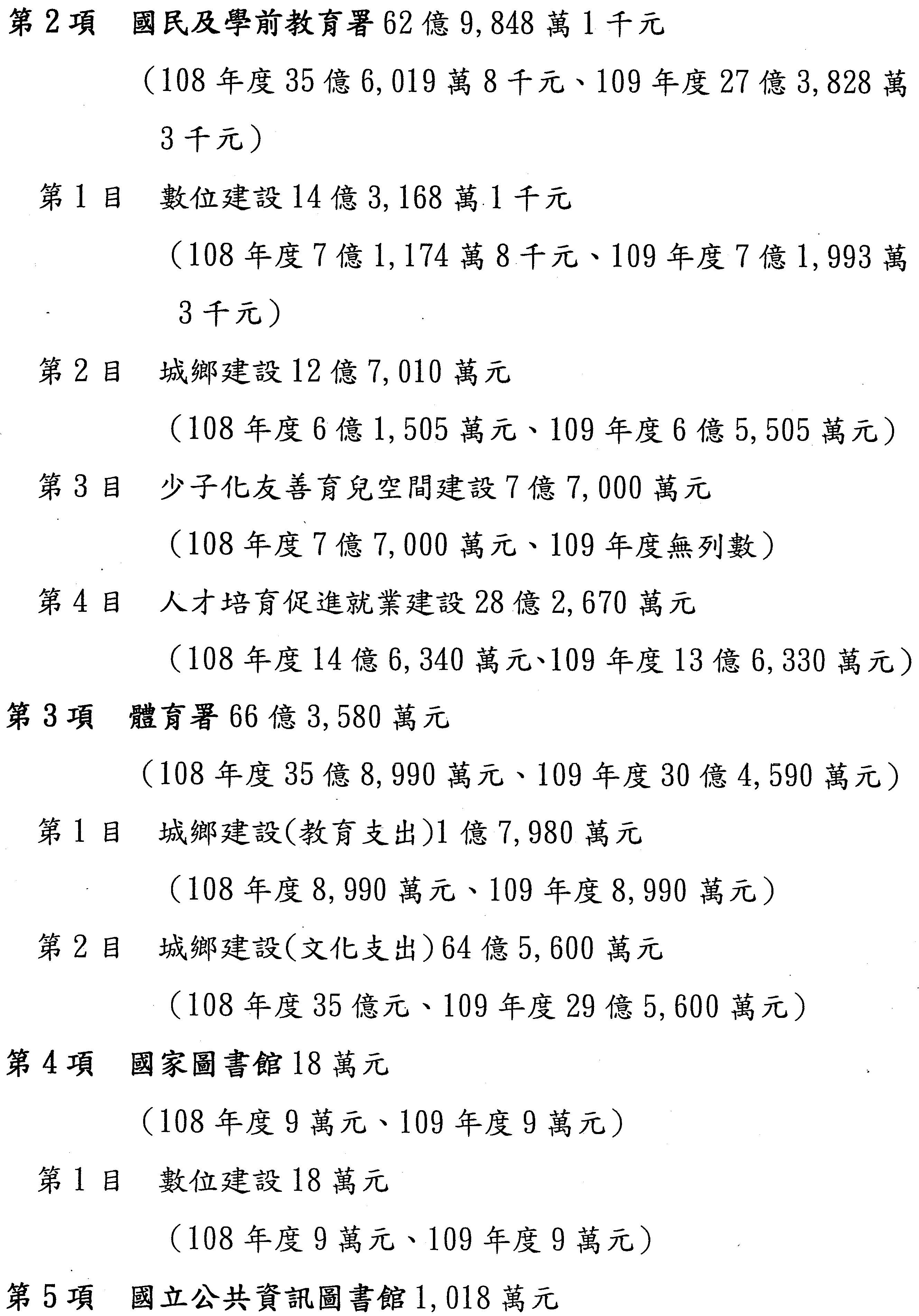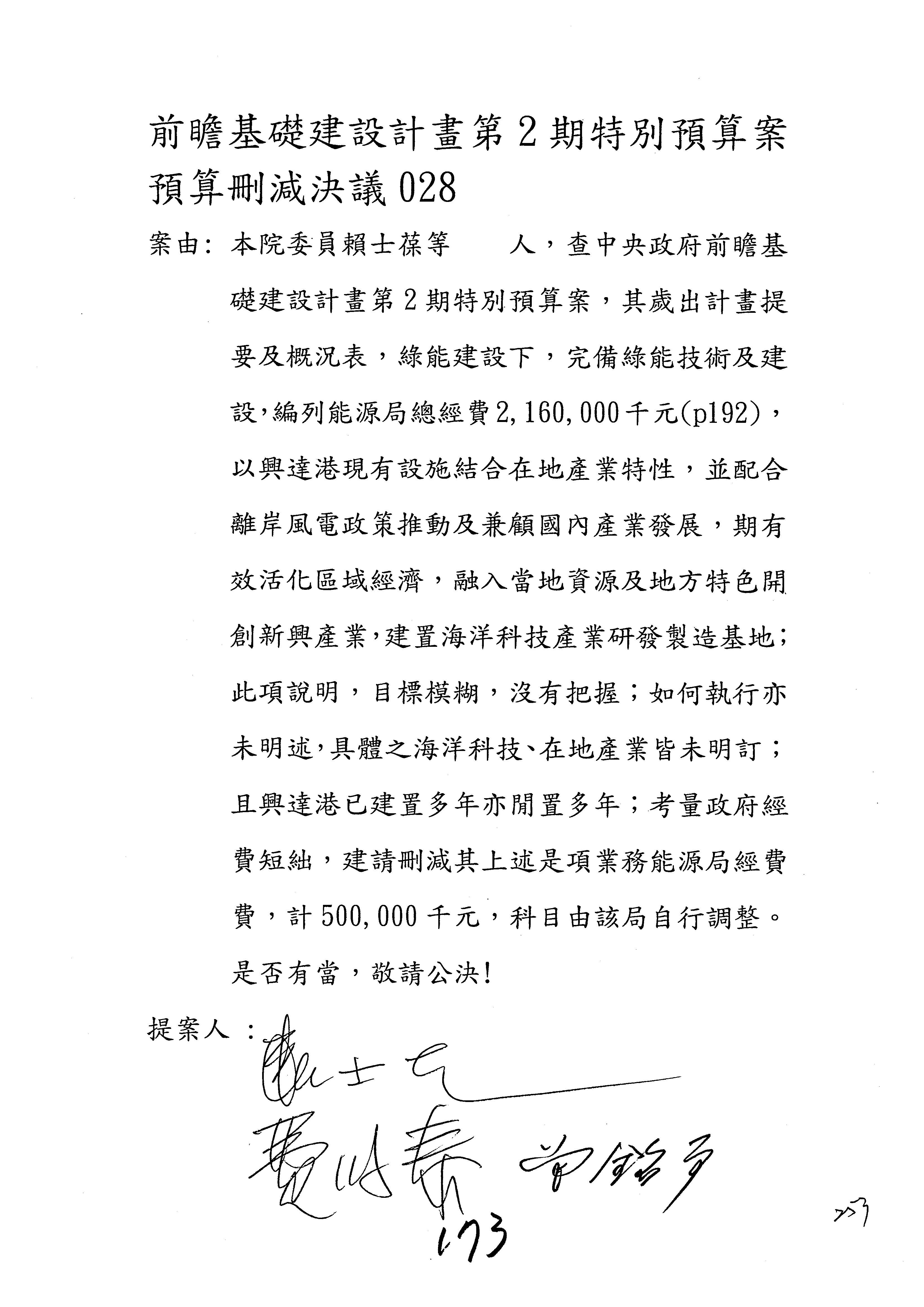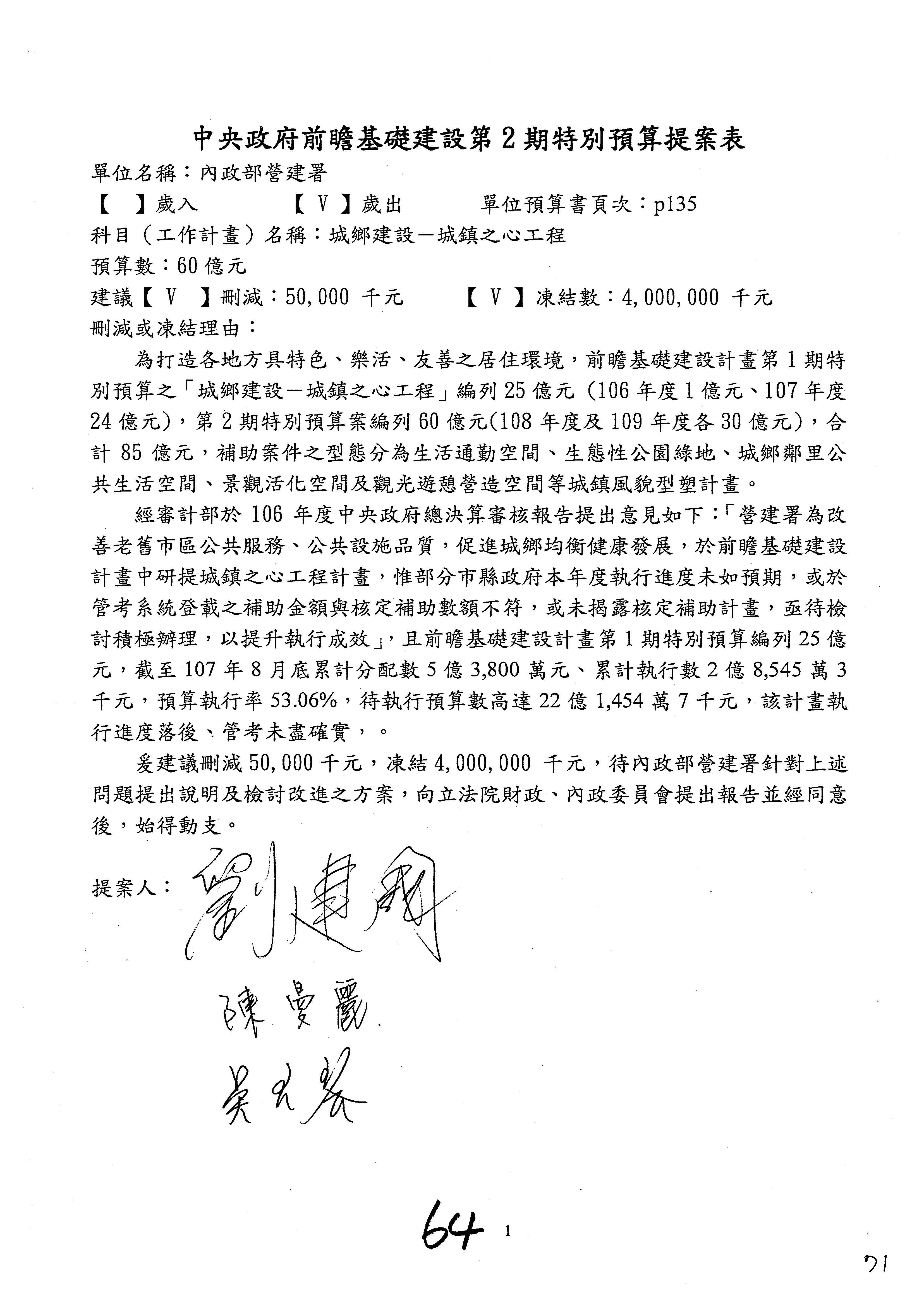 第174案刪減1億1,150萬6,000元,科目自行調整。第175案刪減3,000萬元,科目自行調整。