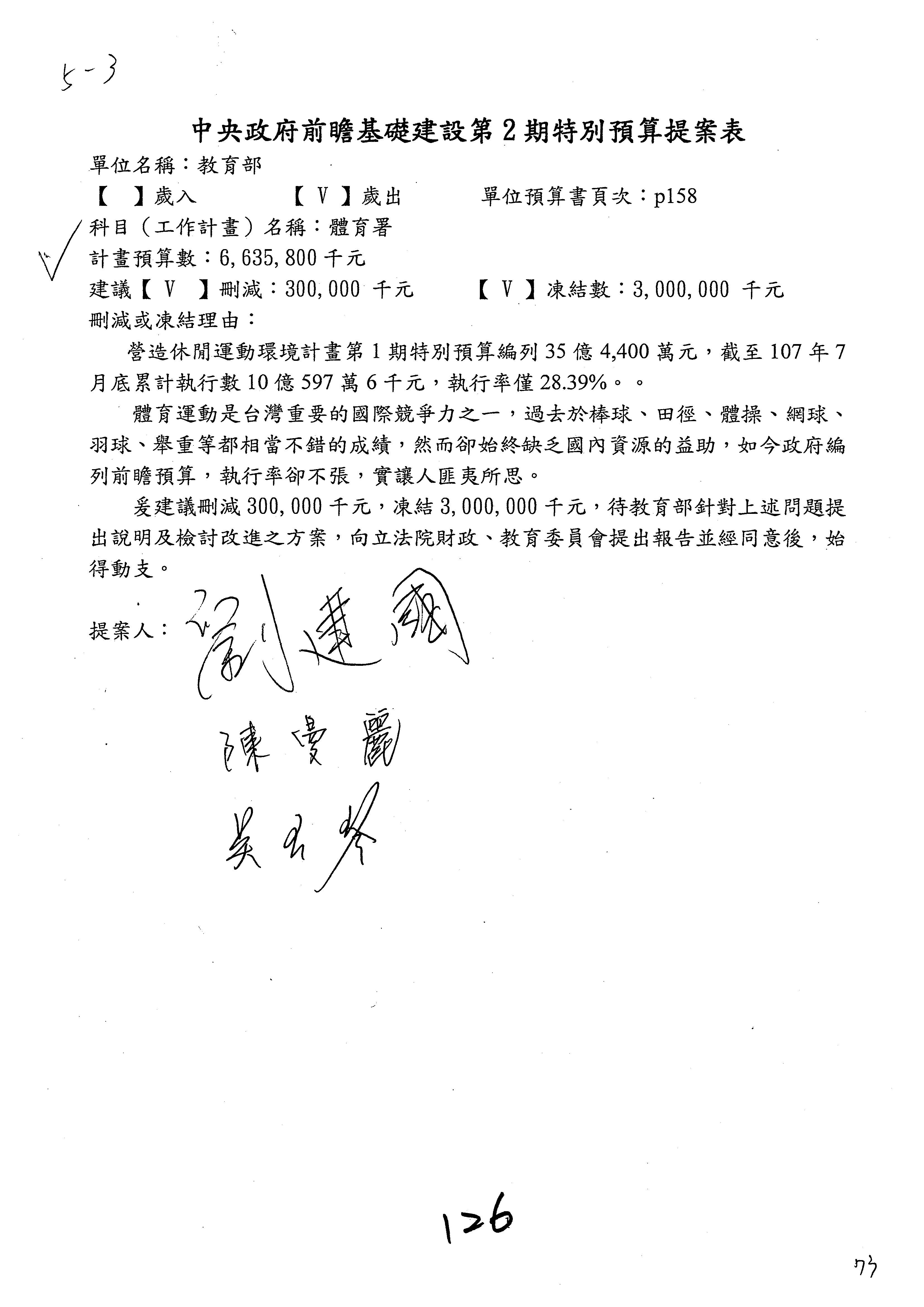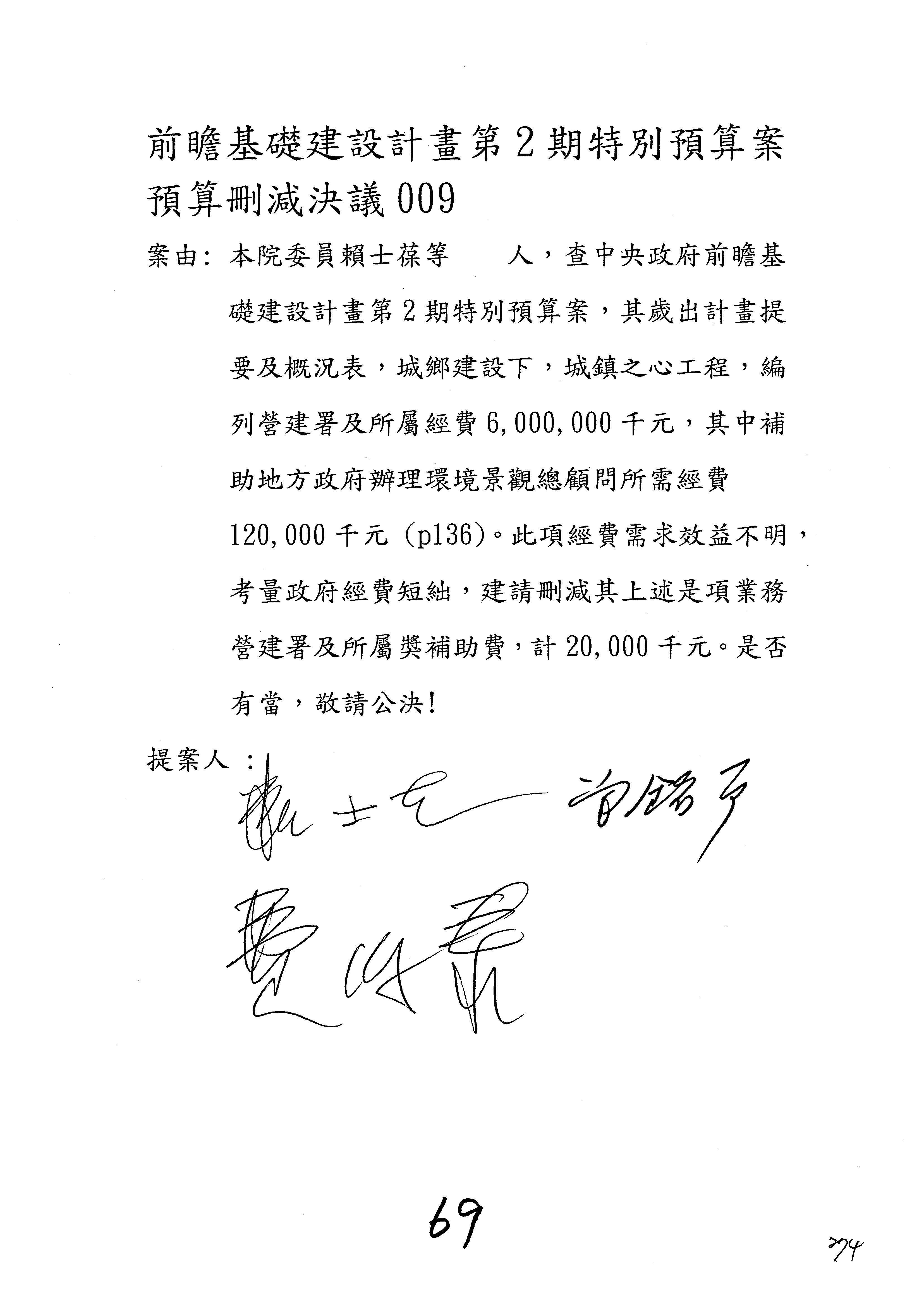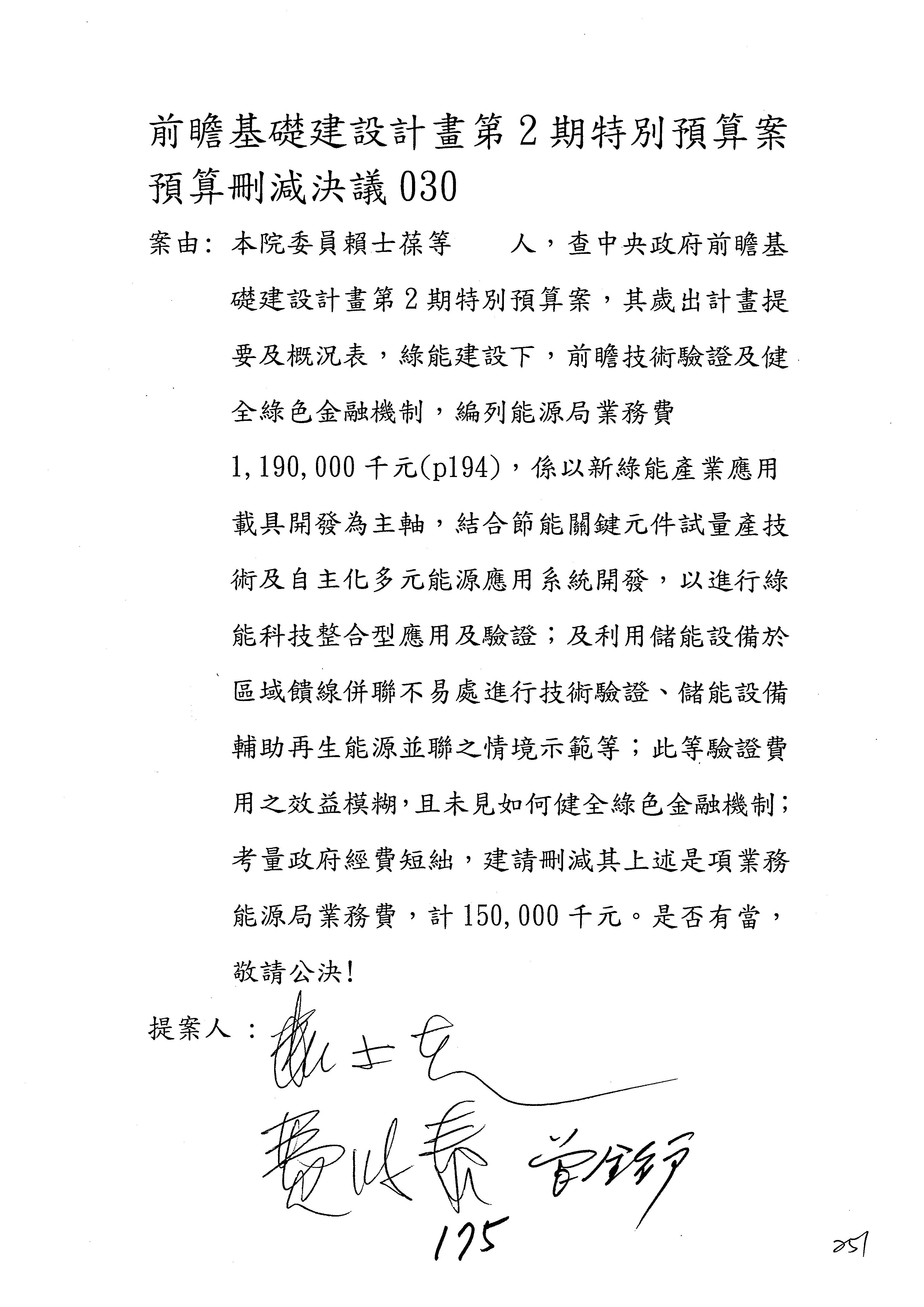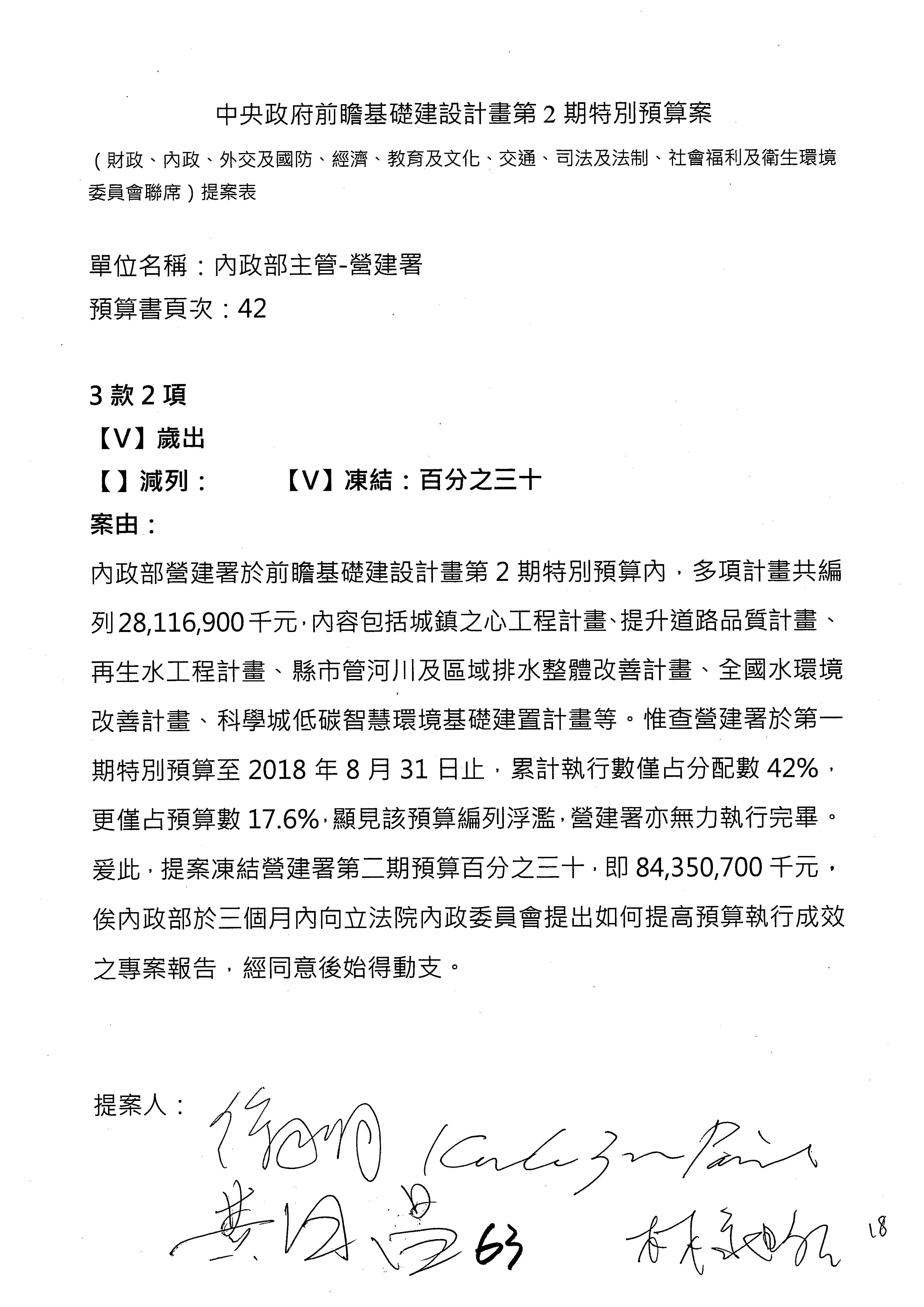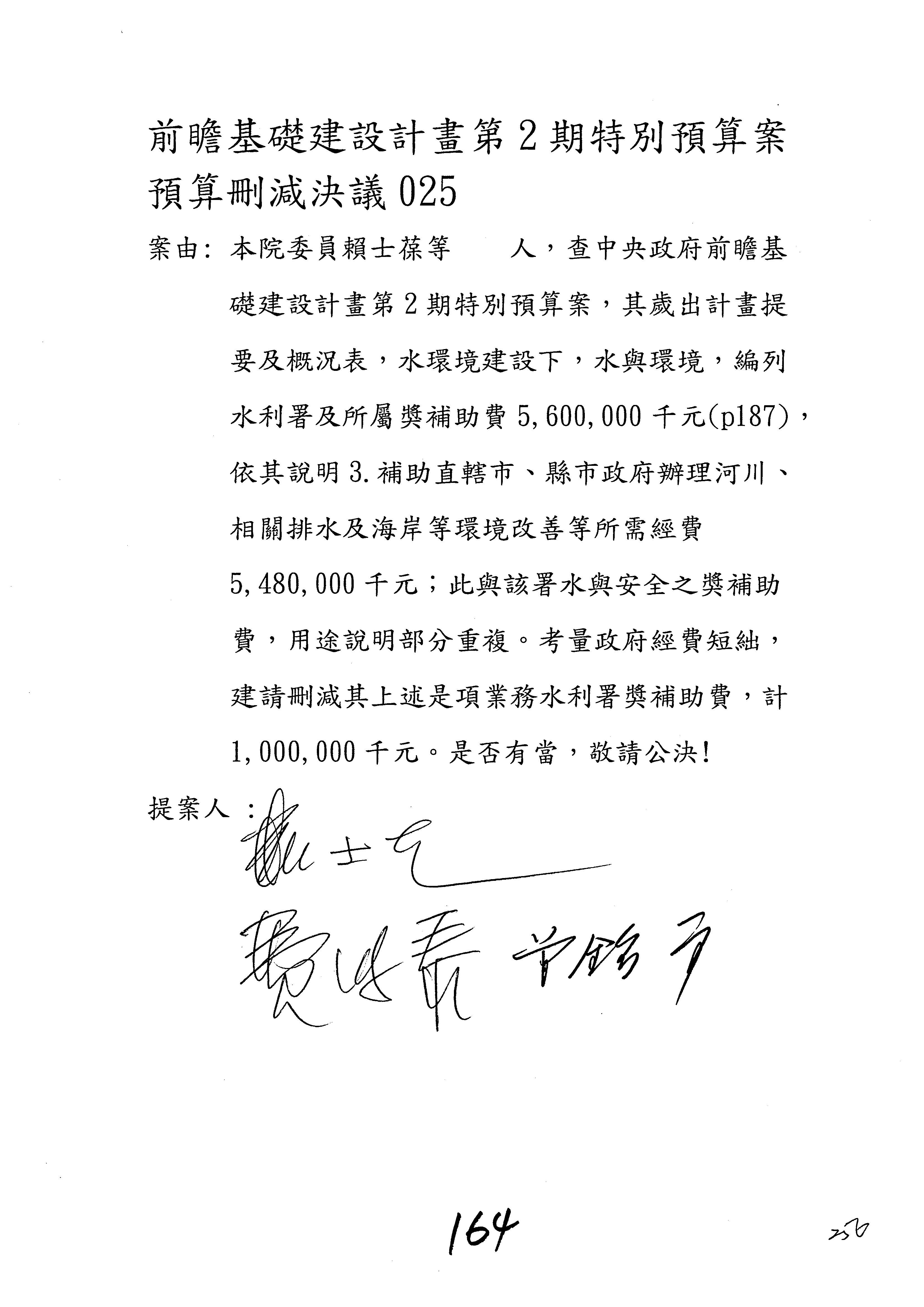 第174案刪減1億1,150萬6,000元,科目自行調整。第175案刪減3,000萬元,科目自行調整。