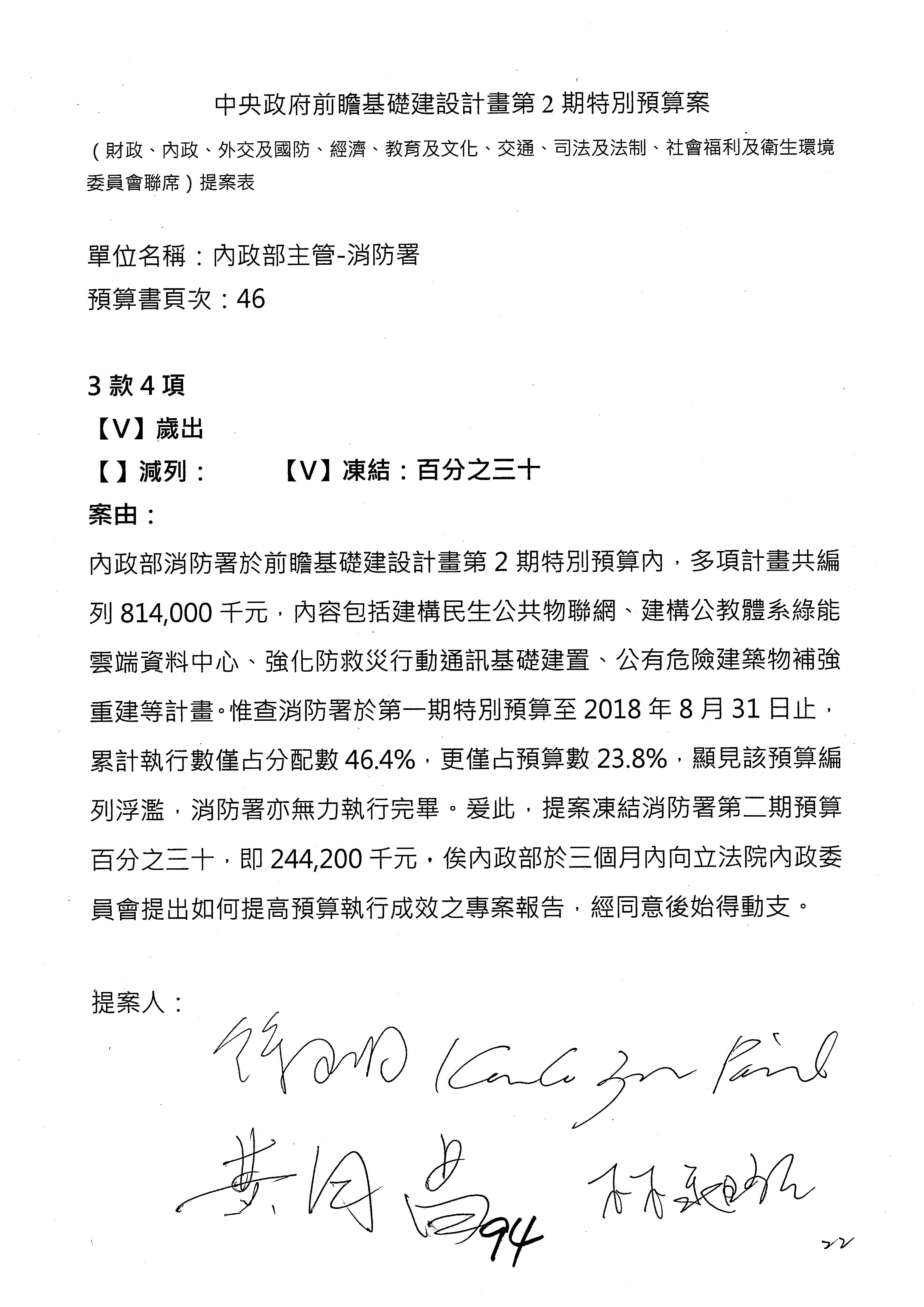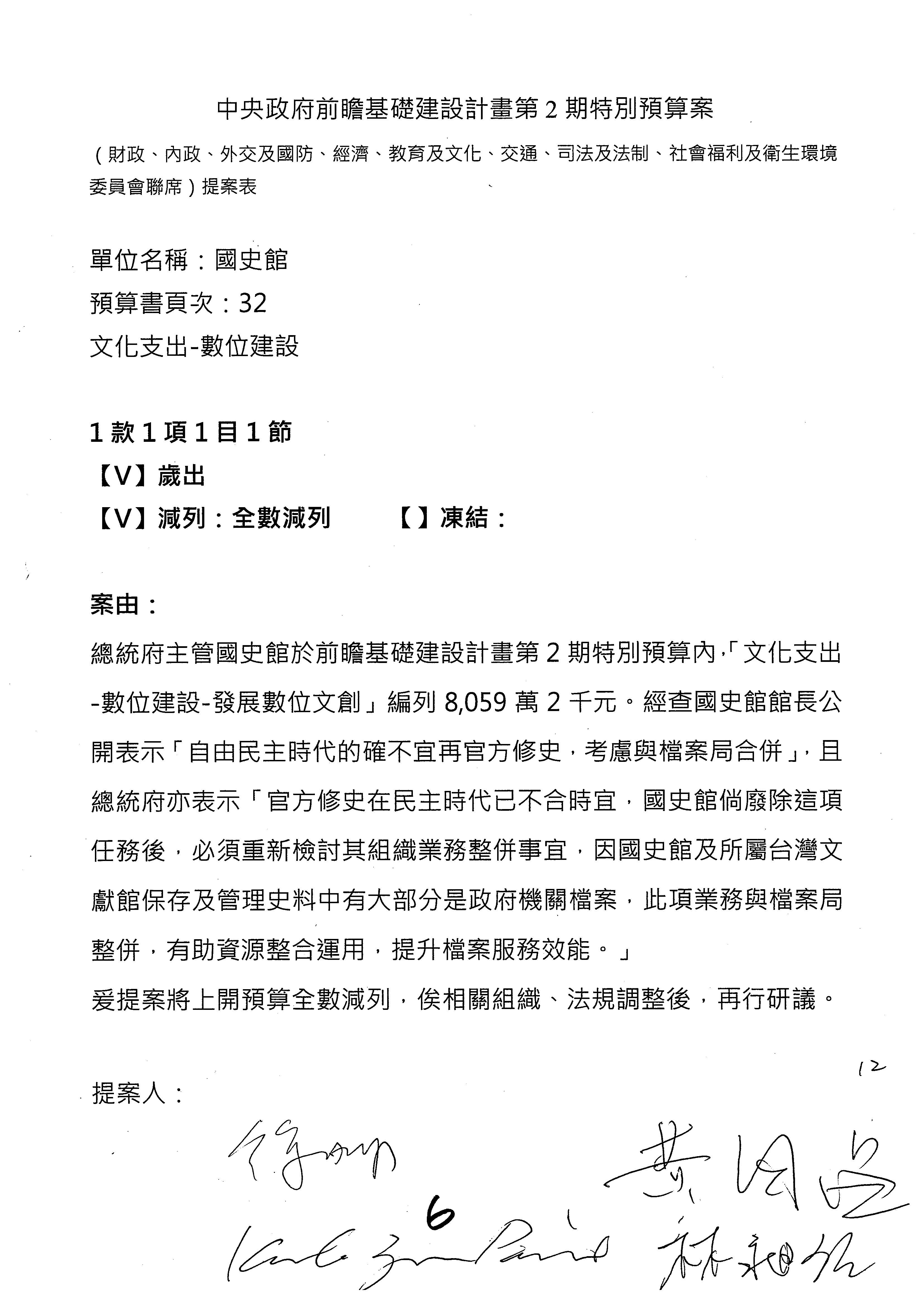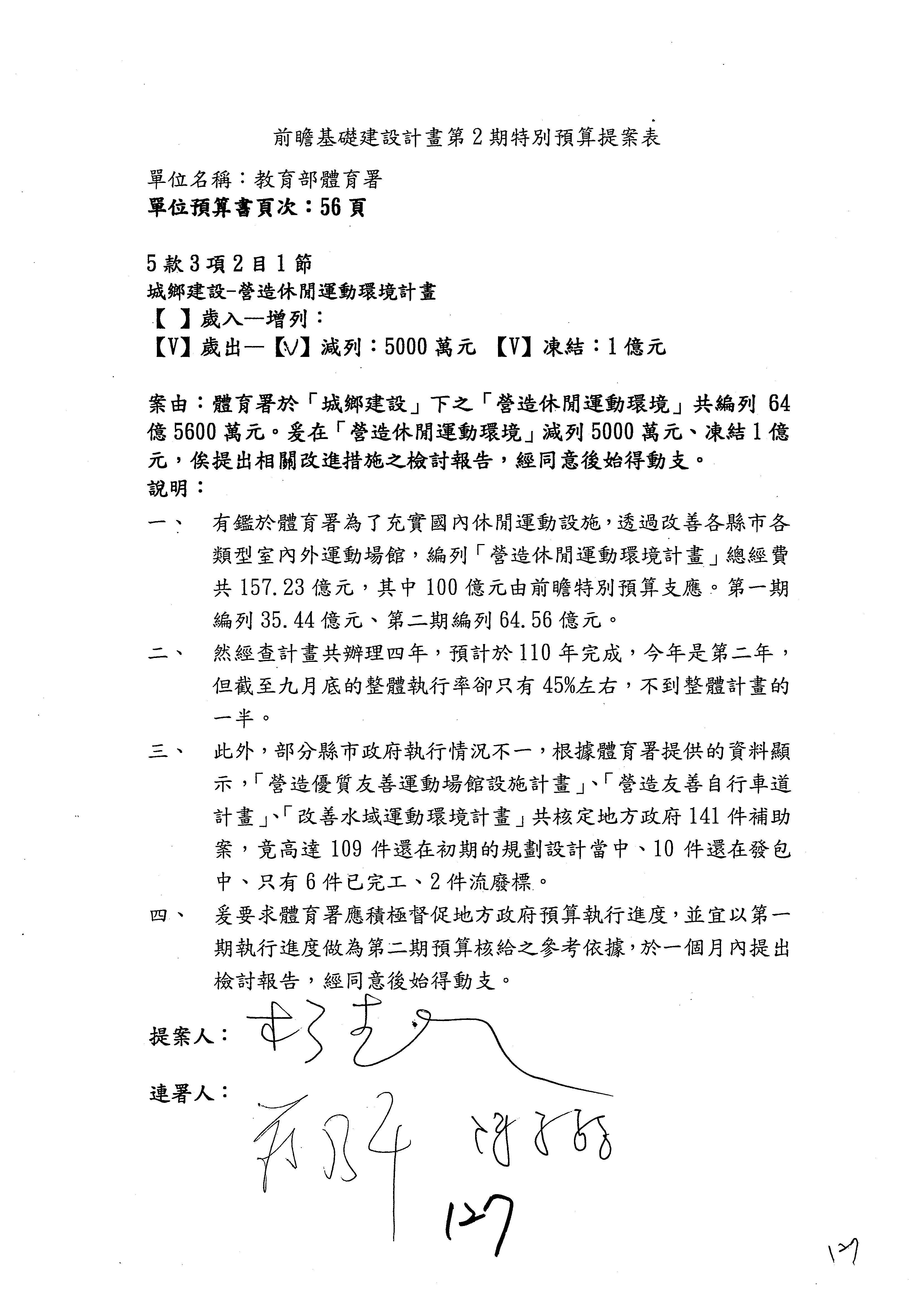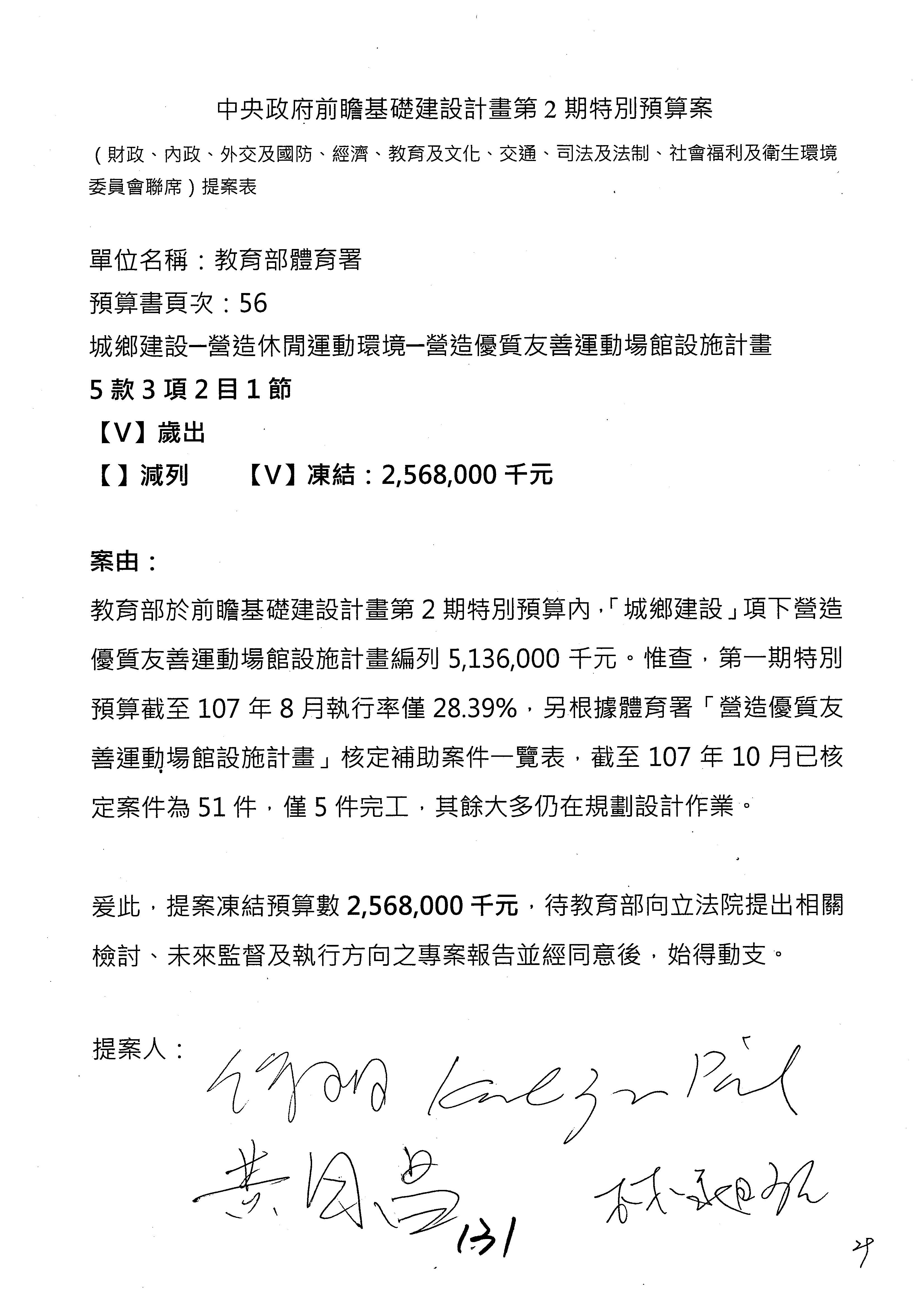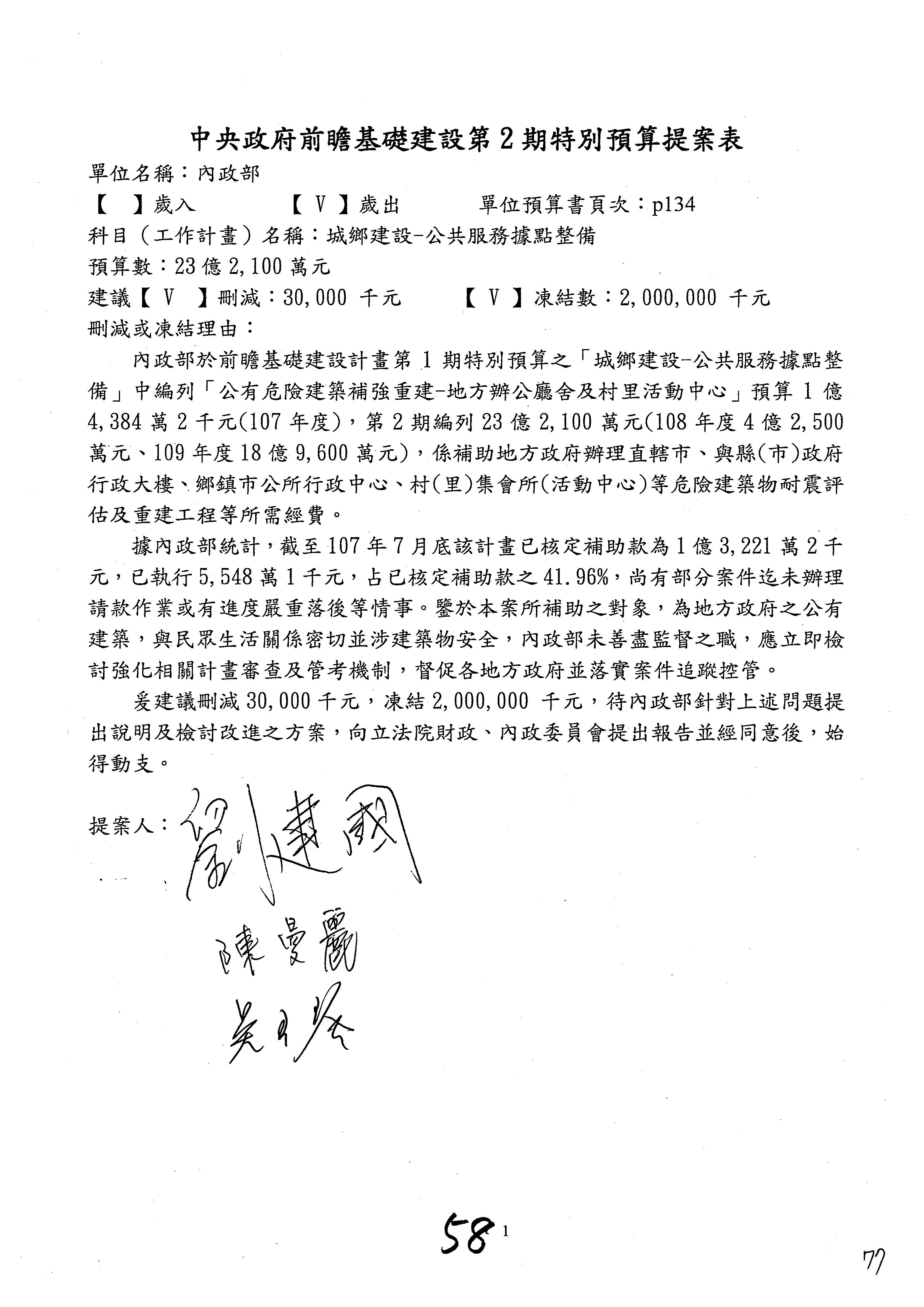 第174案刪減1億1,150萬6,000元,科目自行調整。第175案刪減3,000萬元,科目自行調整。