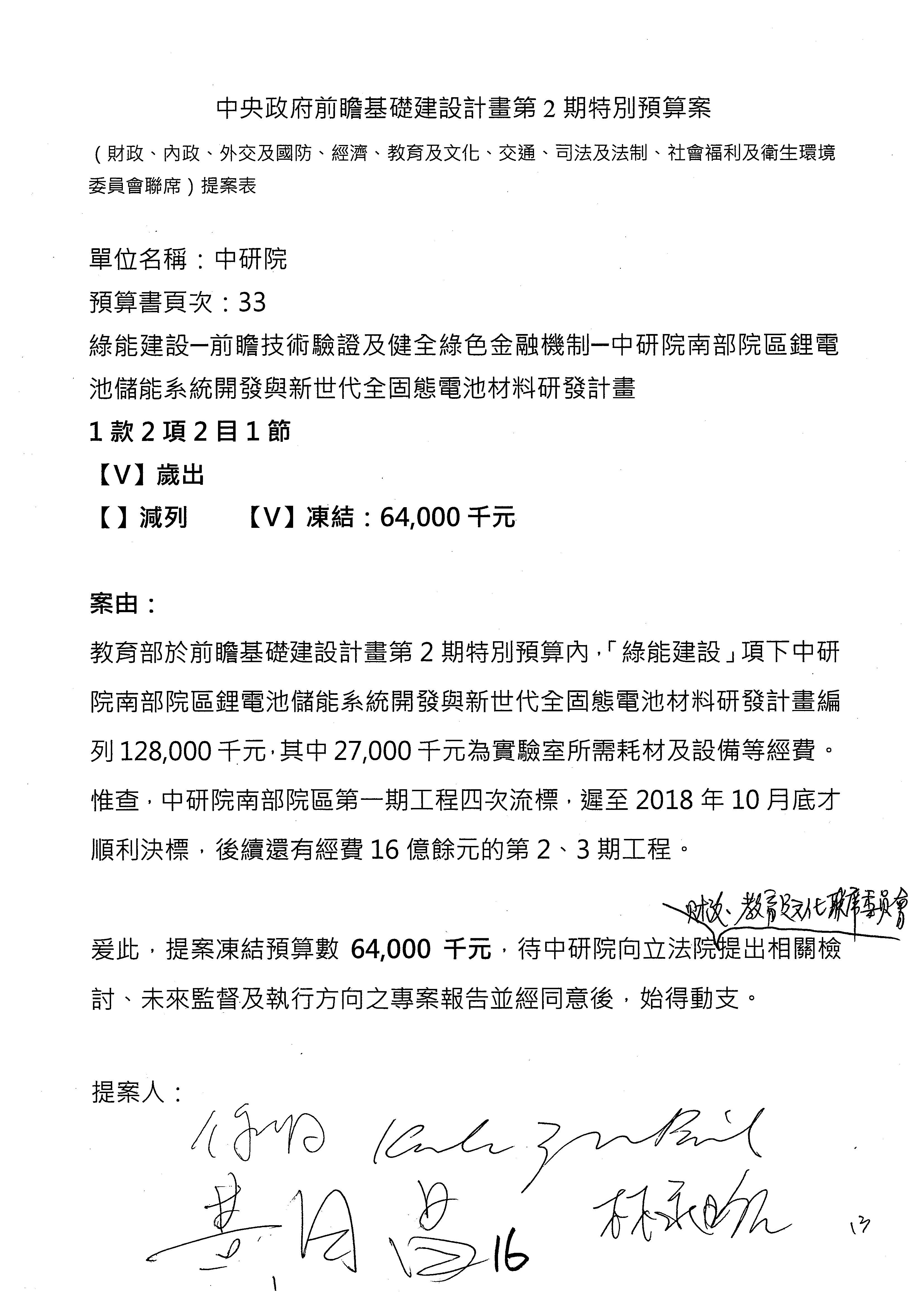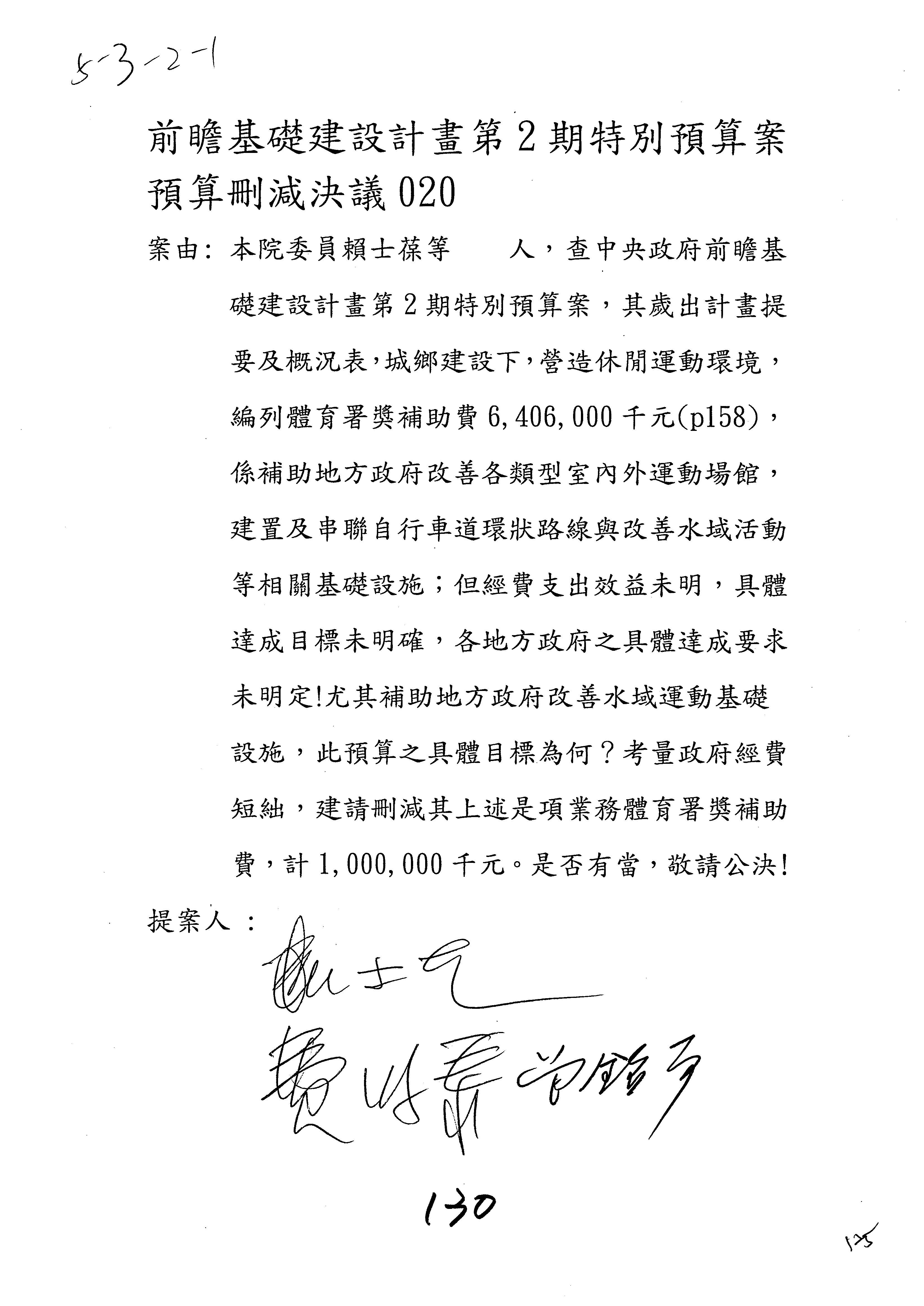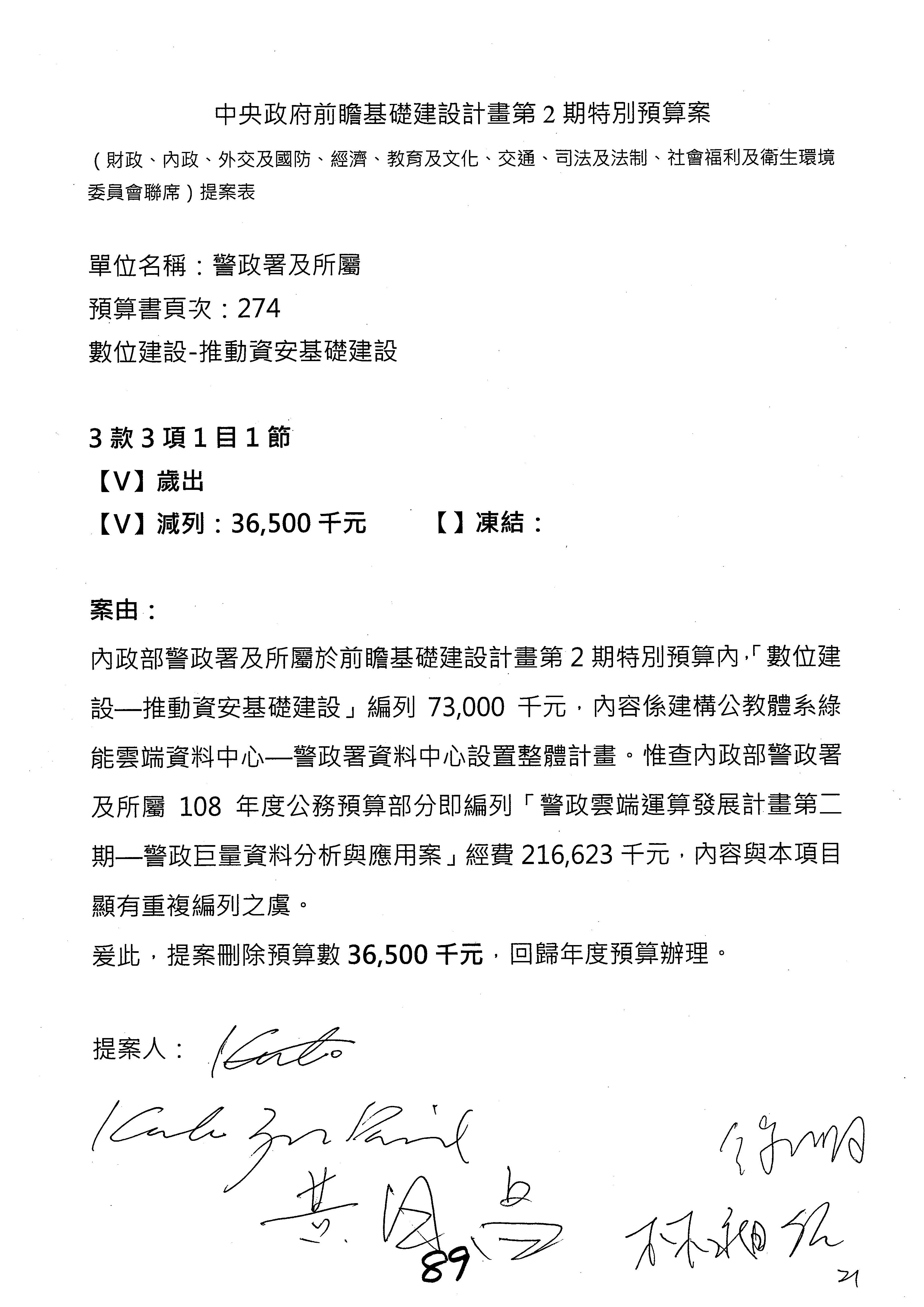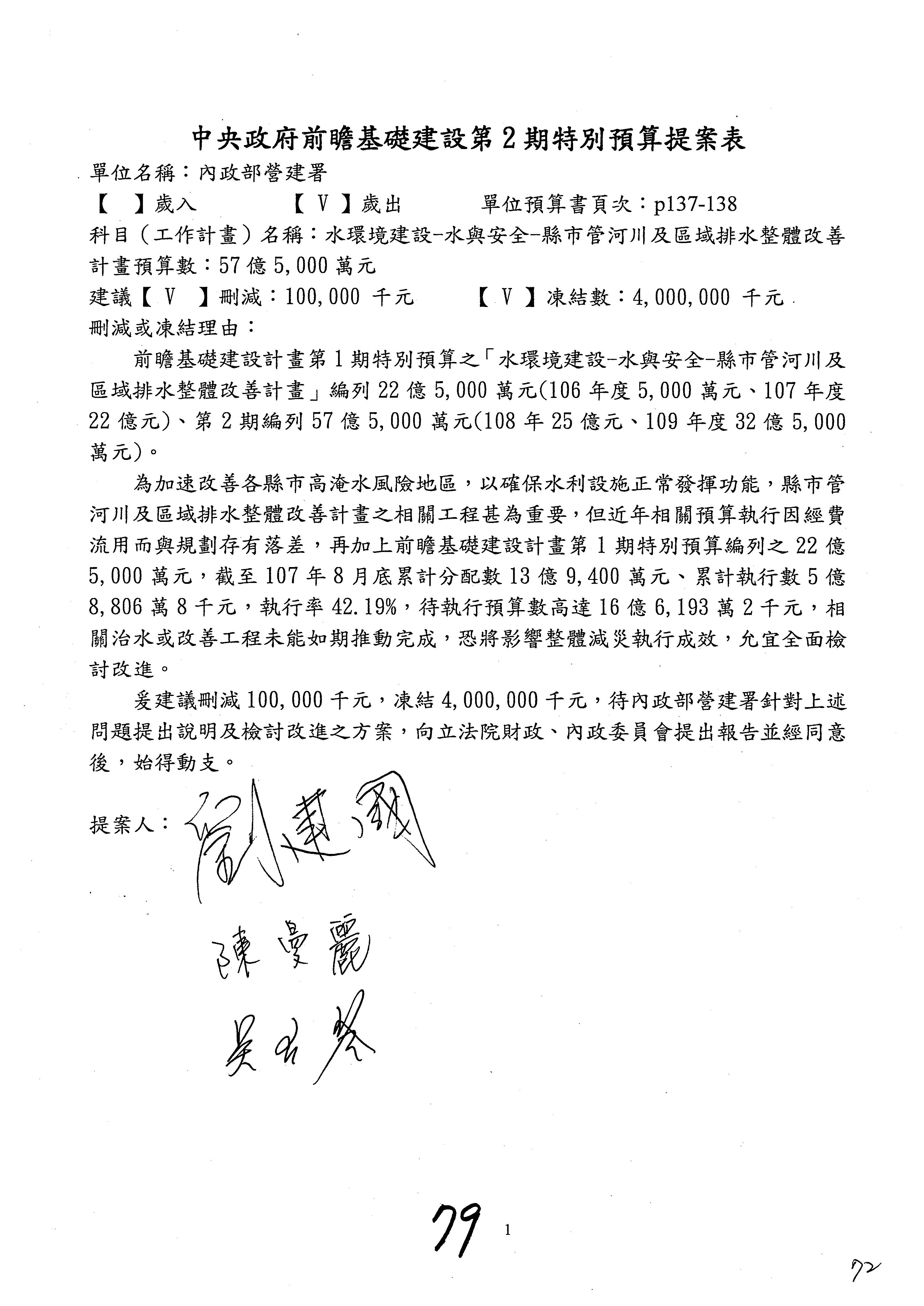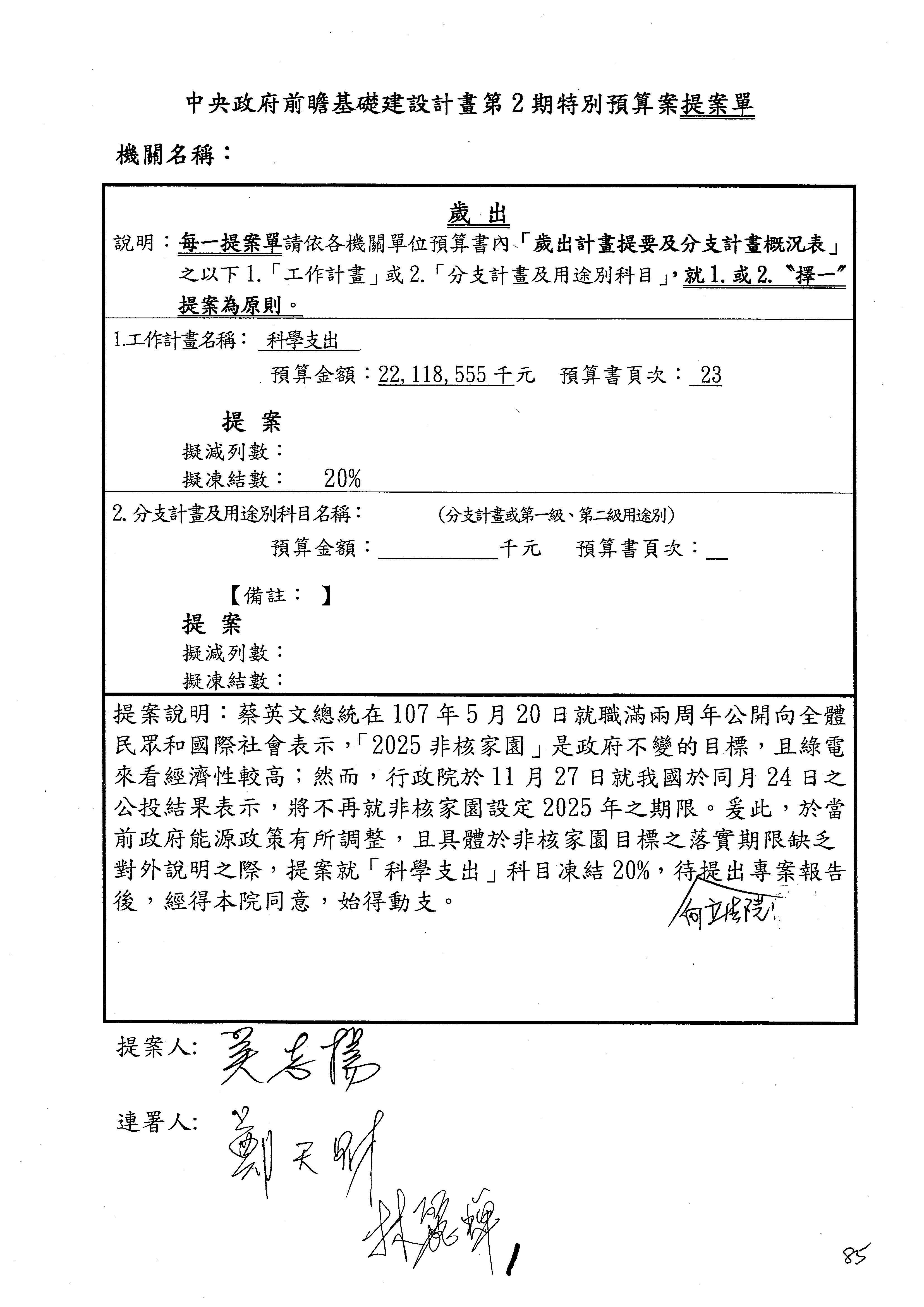 第174案刪減1億1,150萬6,000元,科目自行調整。第175案刪減3,000萬元,科目自行調整。