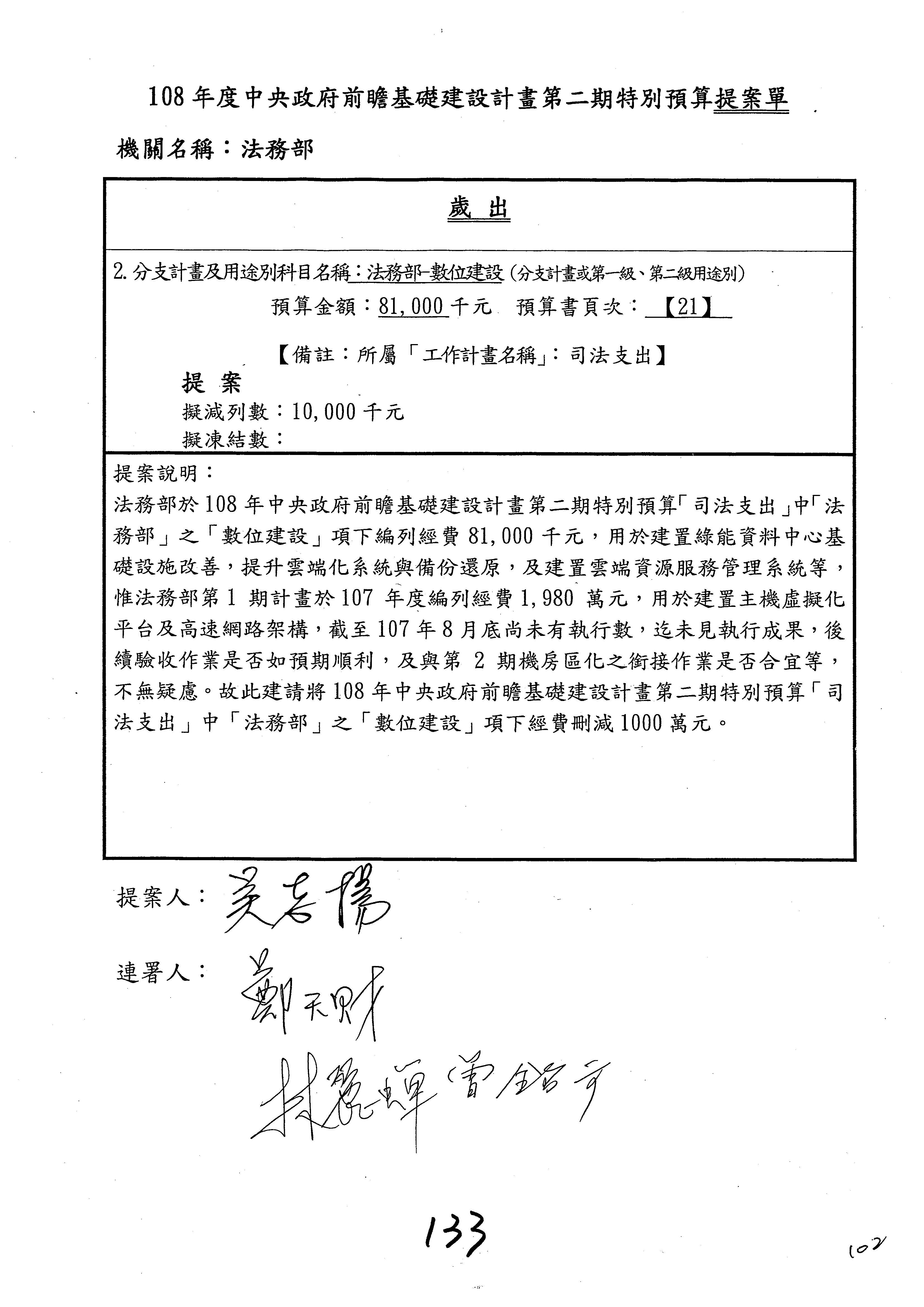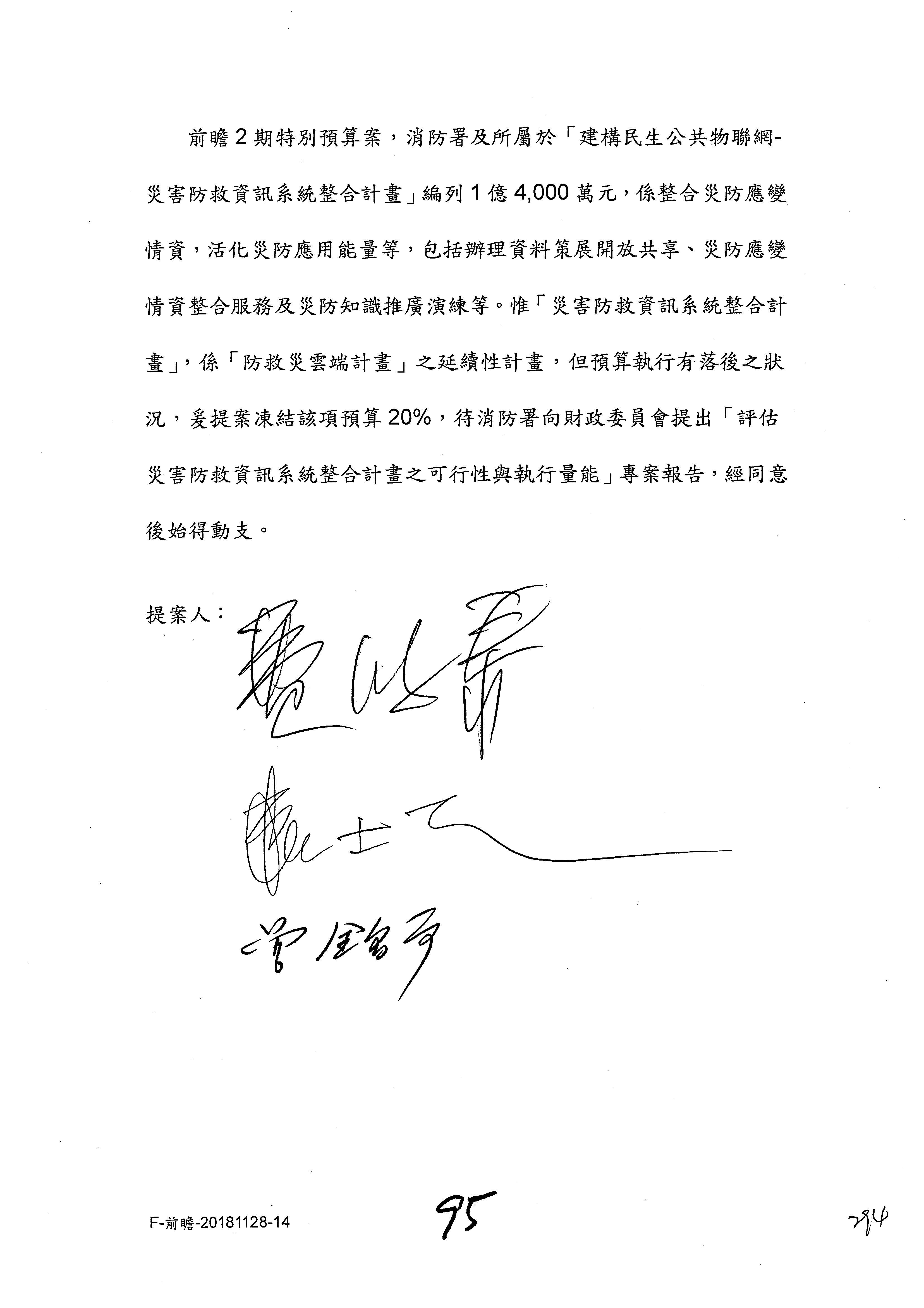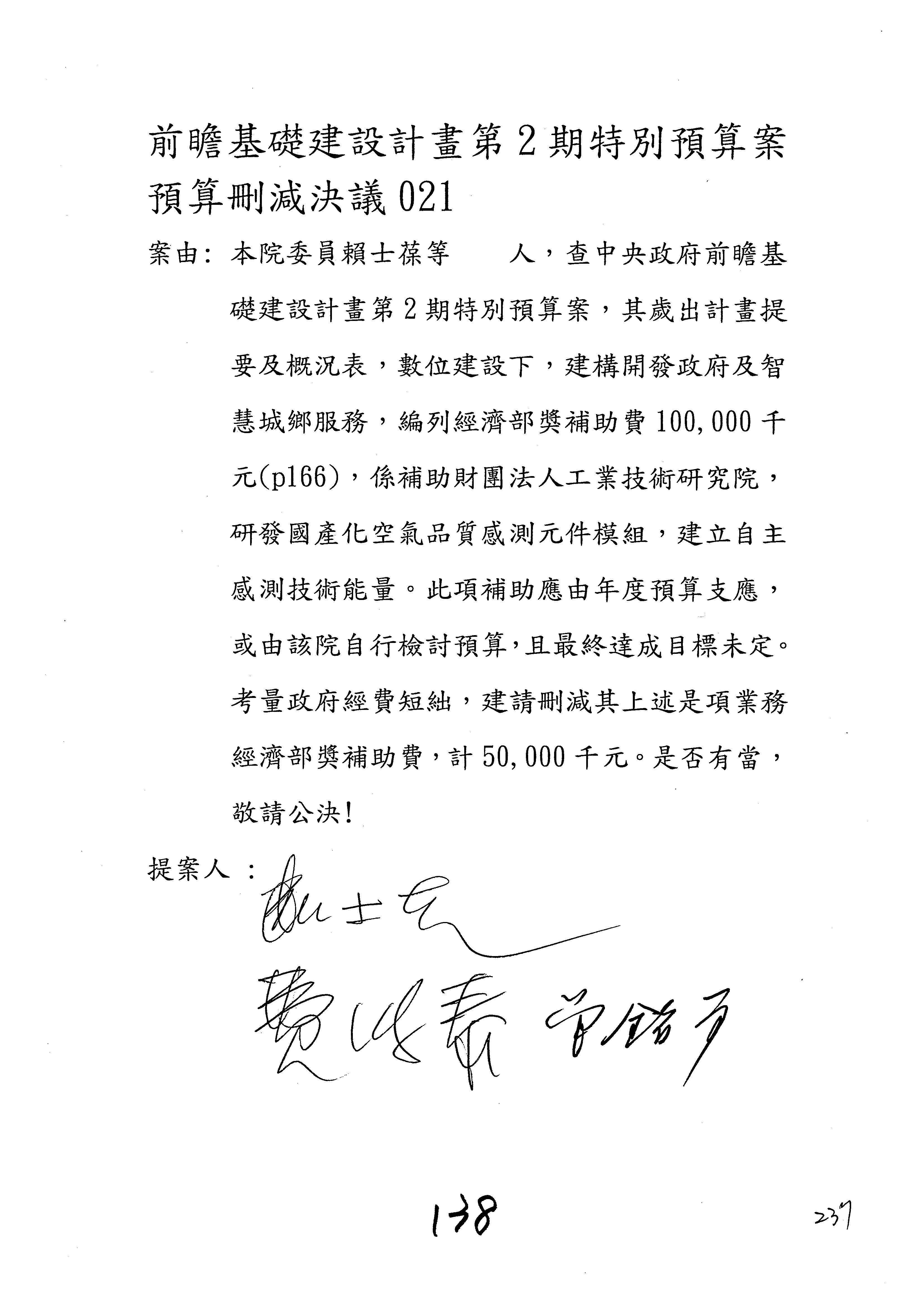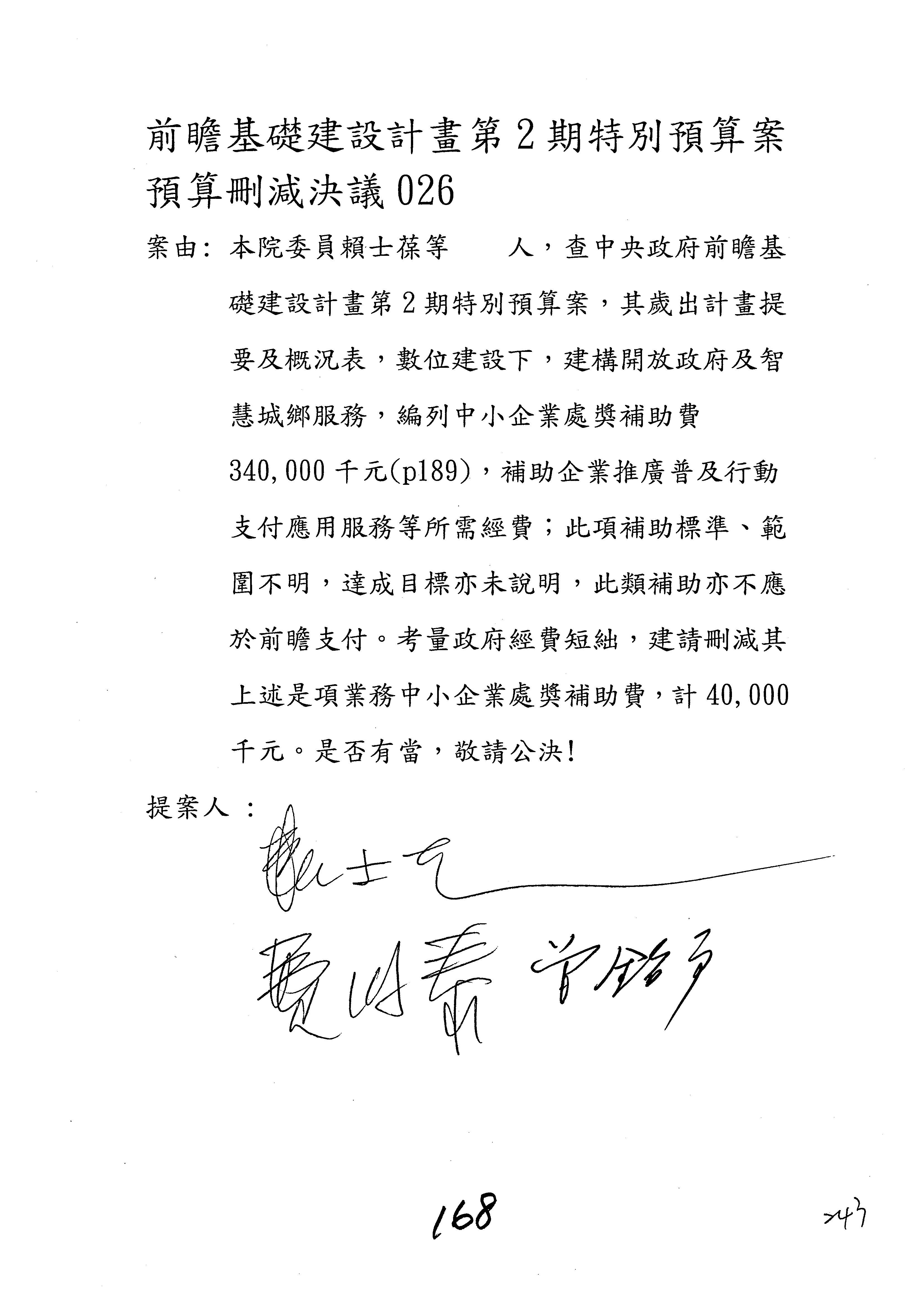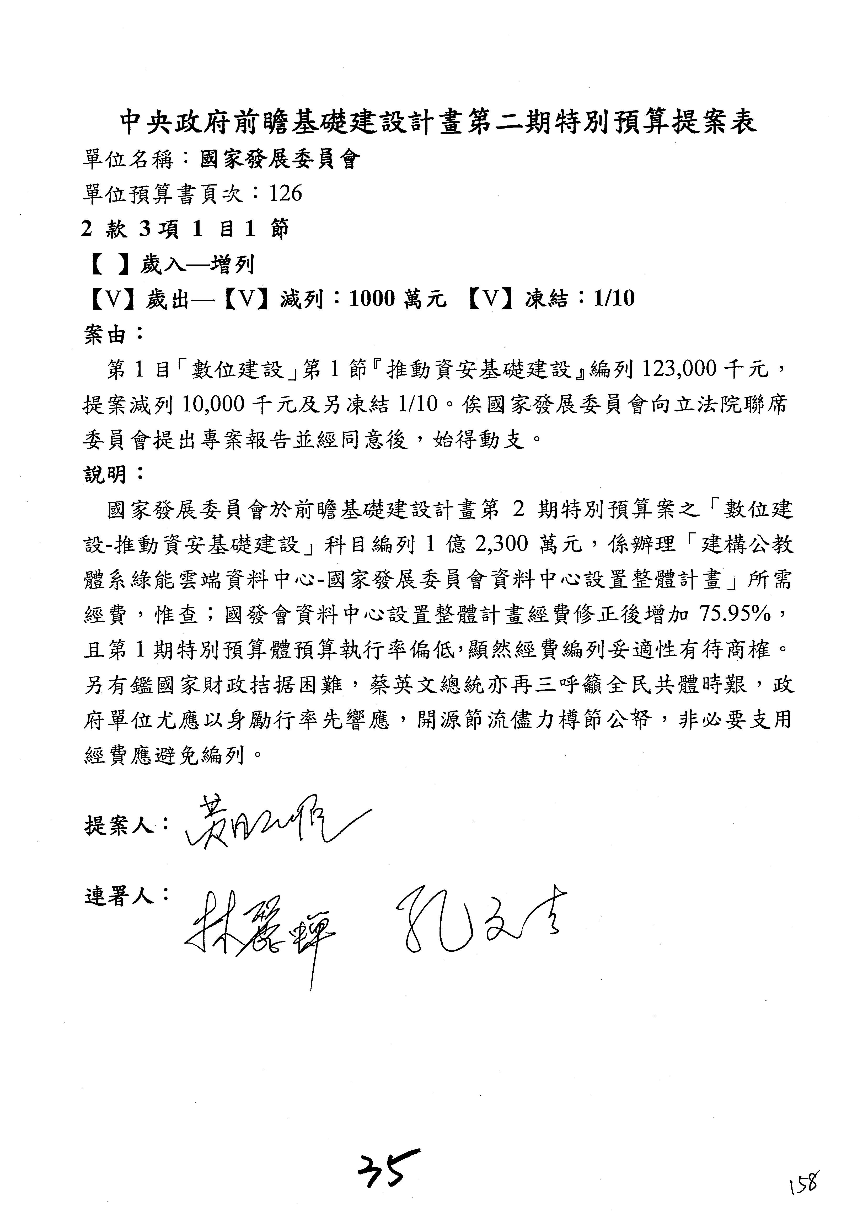 第174案刪減1億1,150萬6,000元,科目自行調整。第175案刪減3,000萬元,科目自行調整。