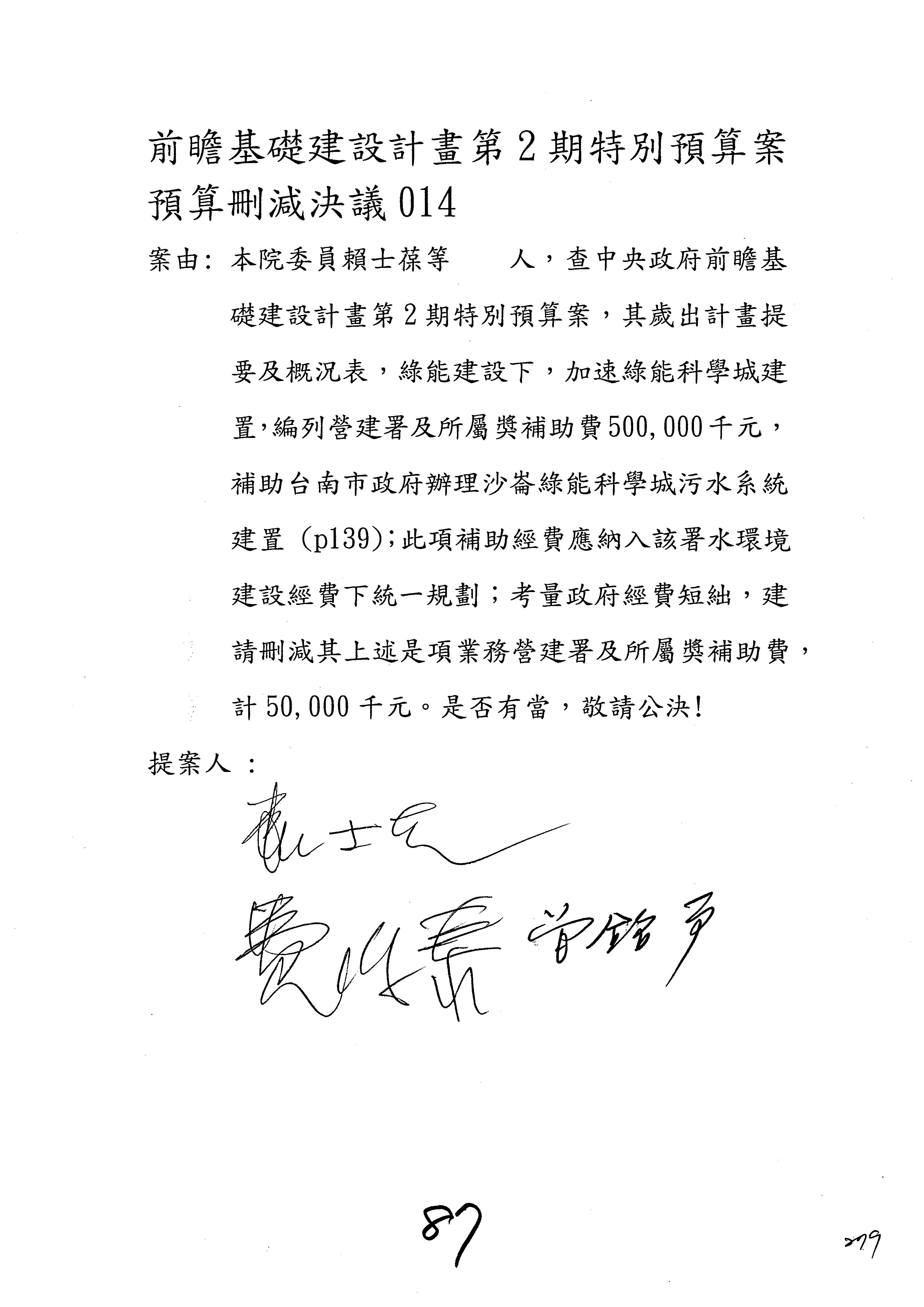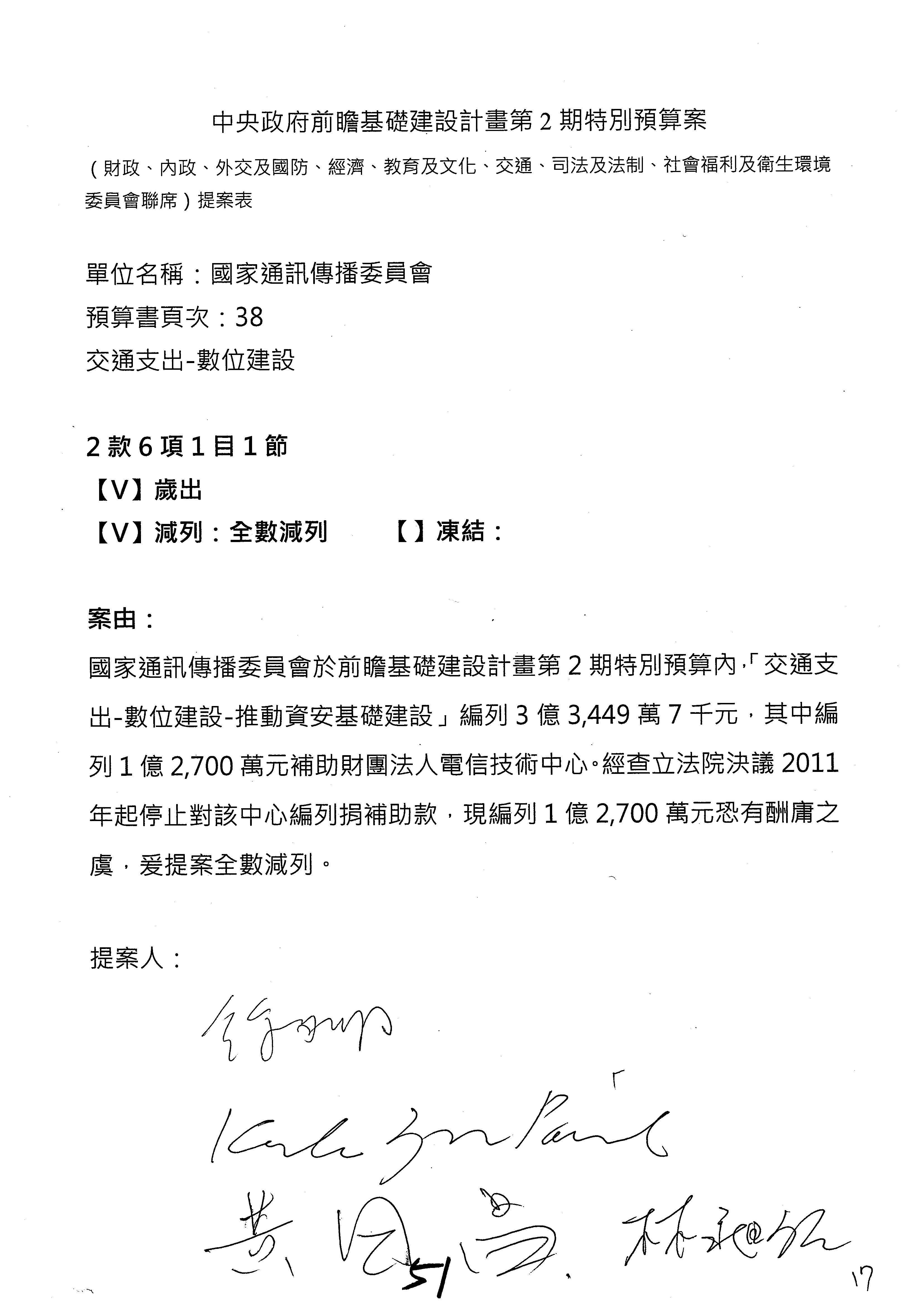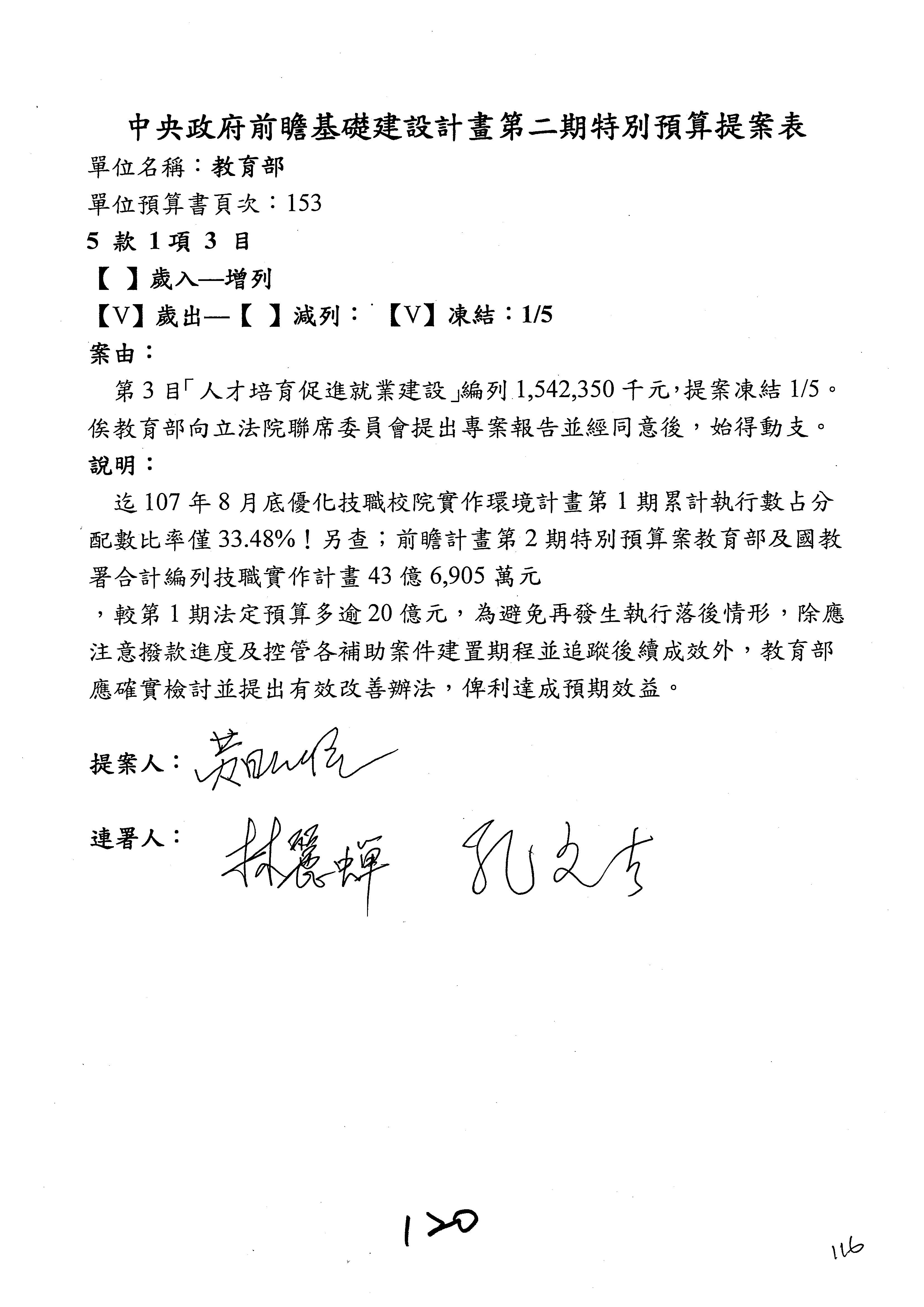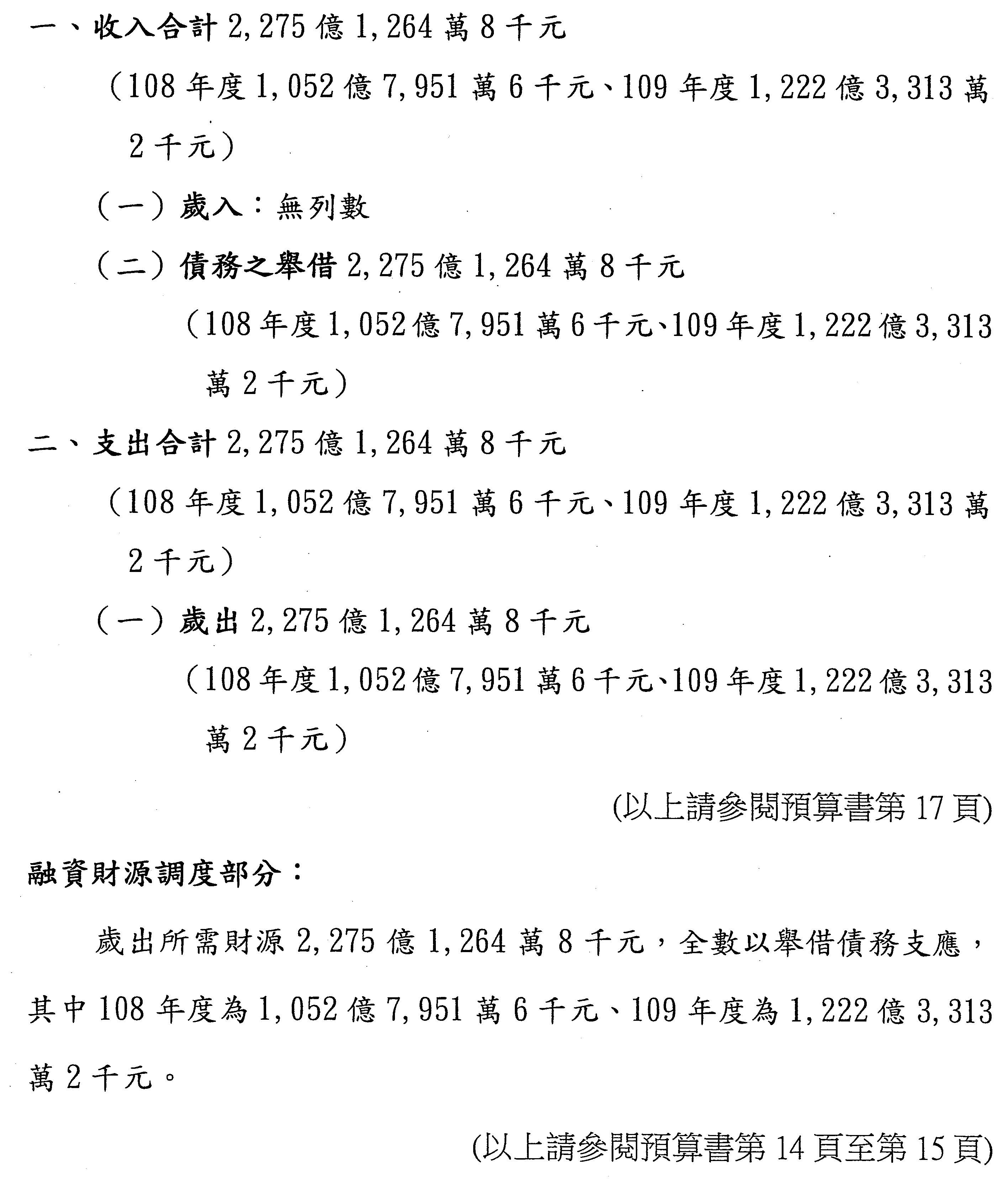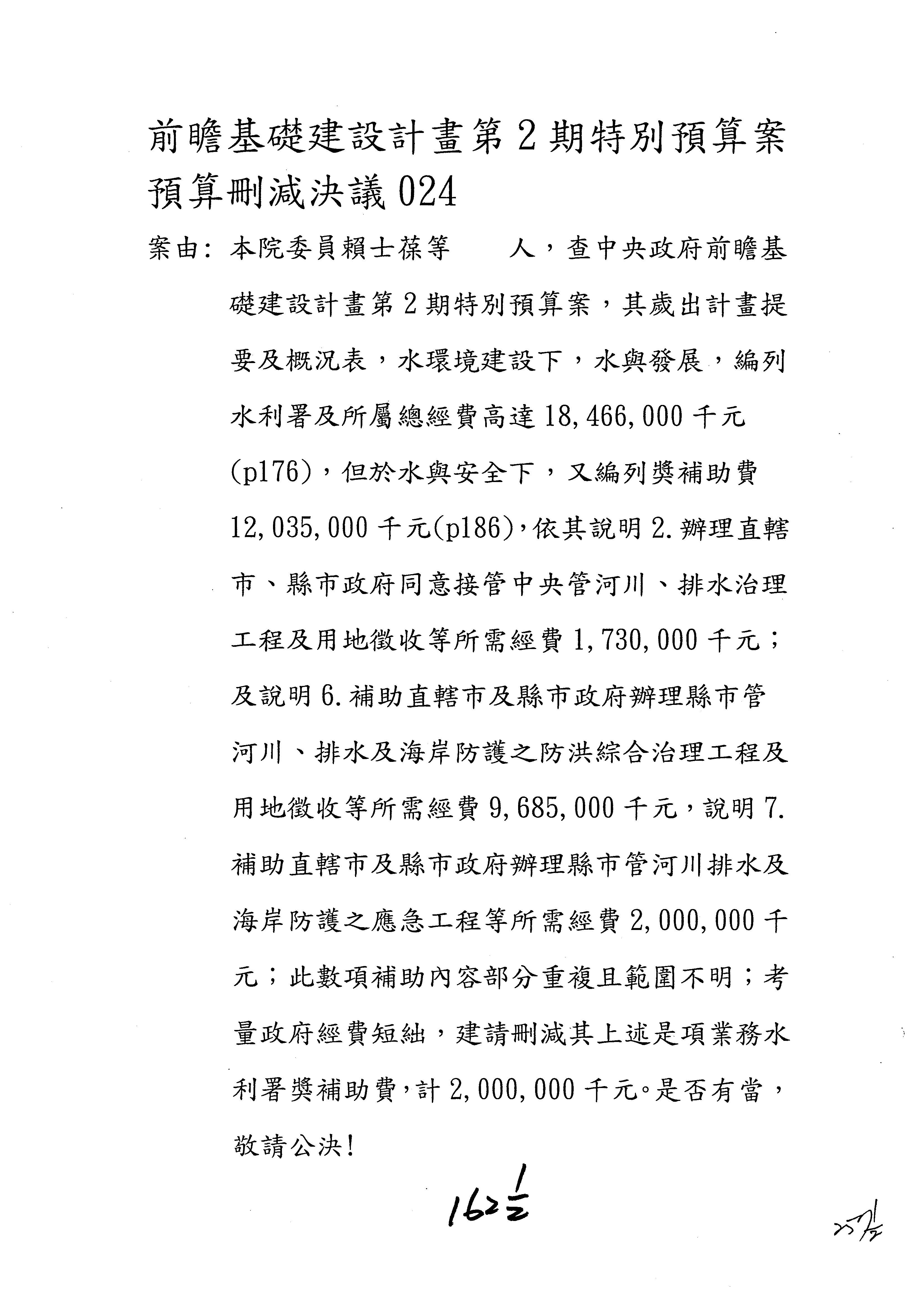 第174案刪減1億1,150萬6,000元,科目自行調整。第175案刪減3,000萬元,科目自行調整。