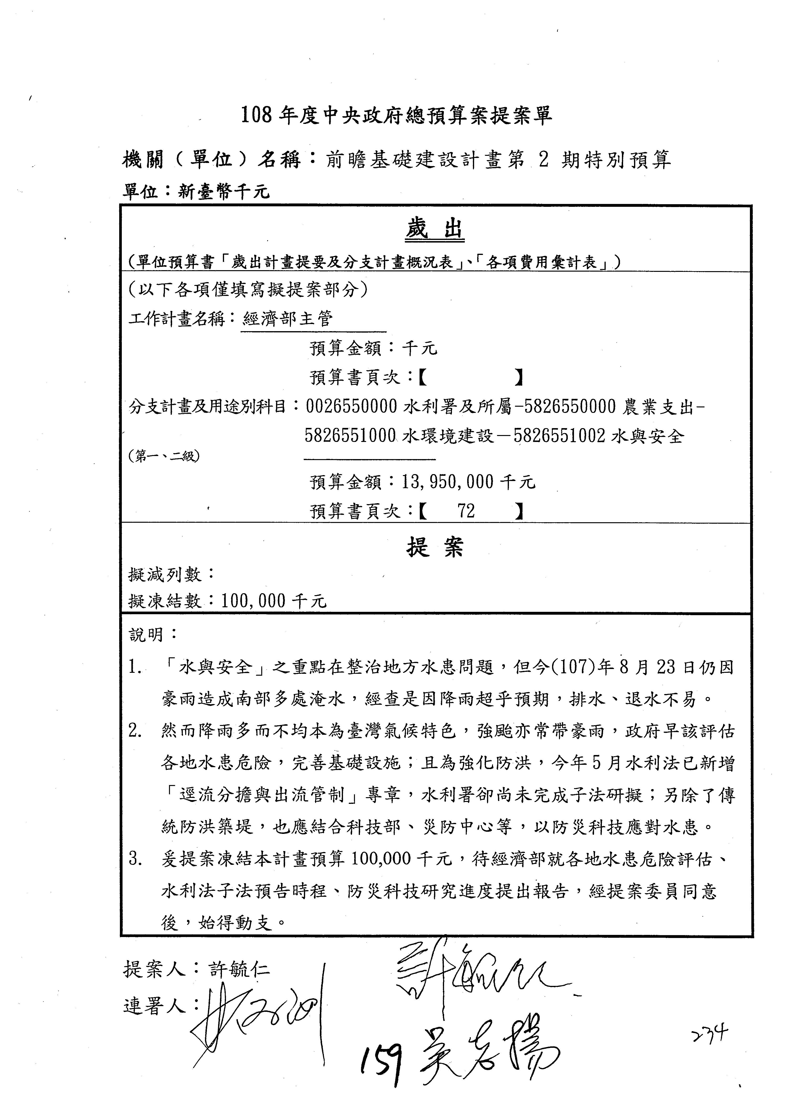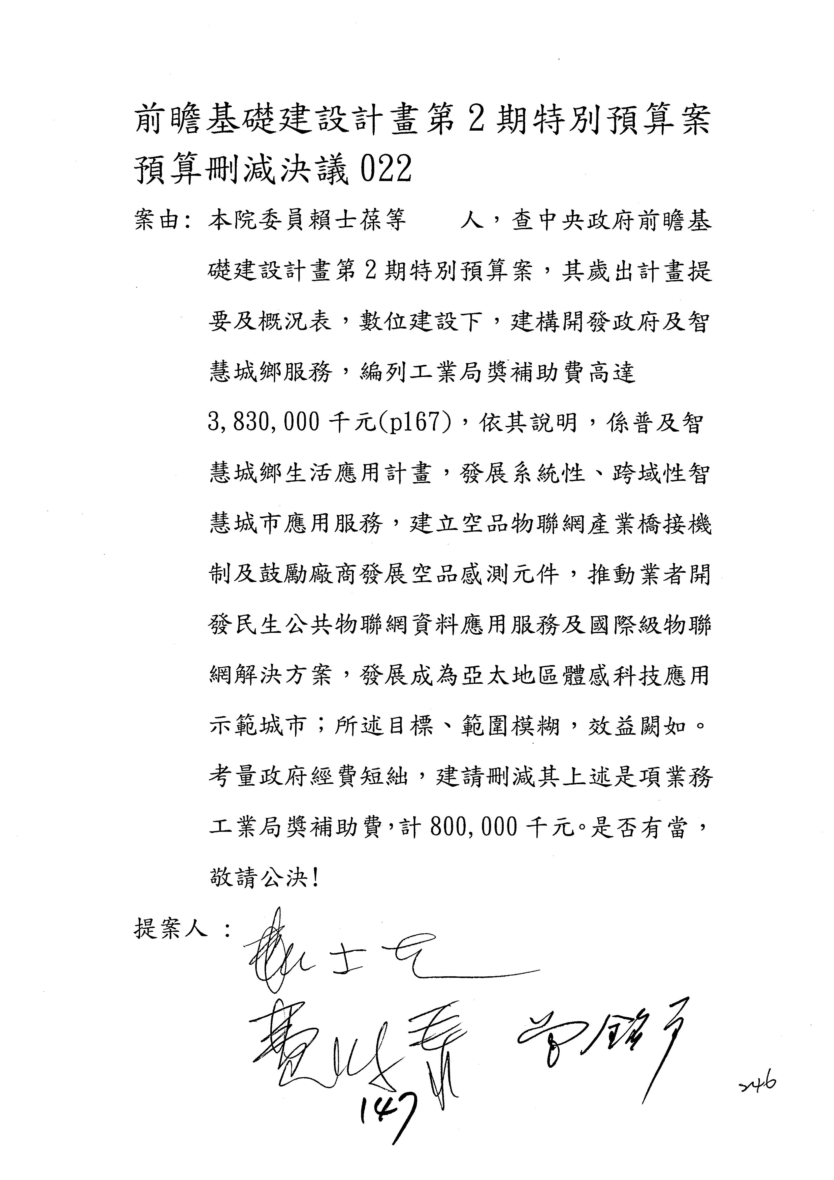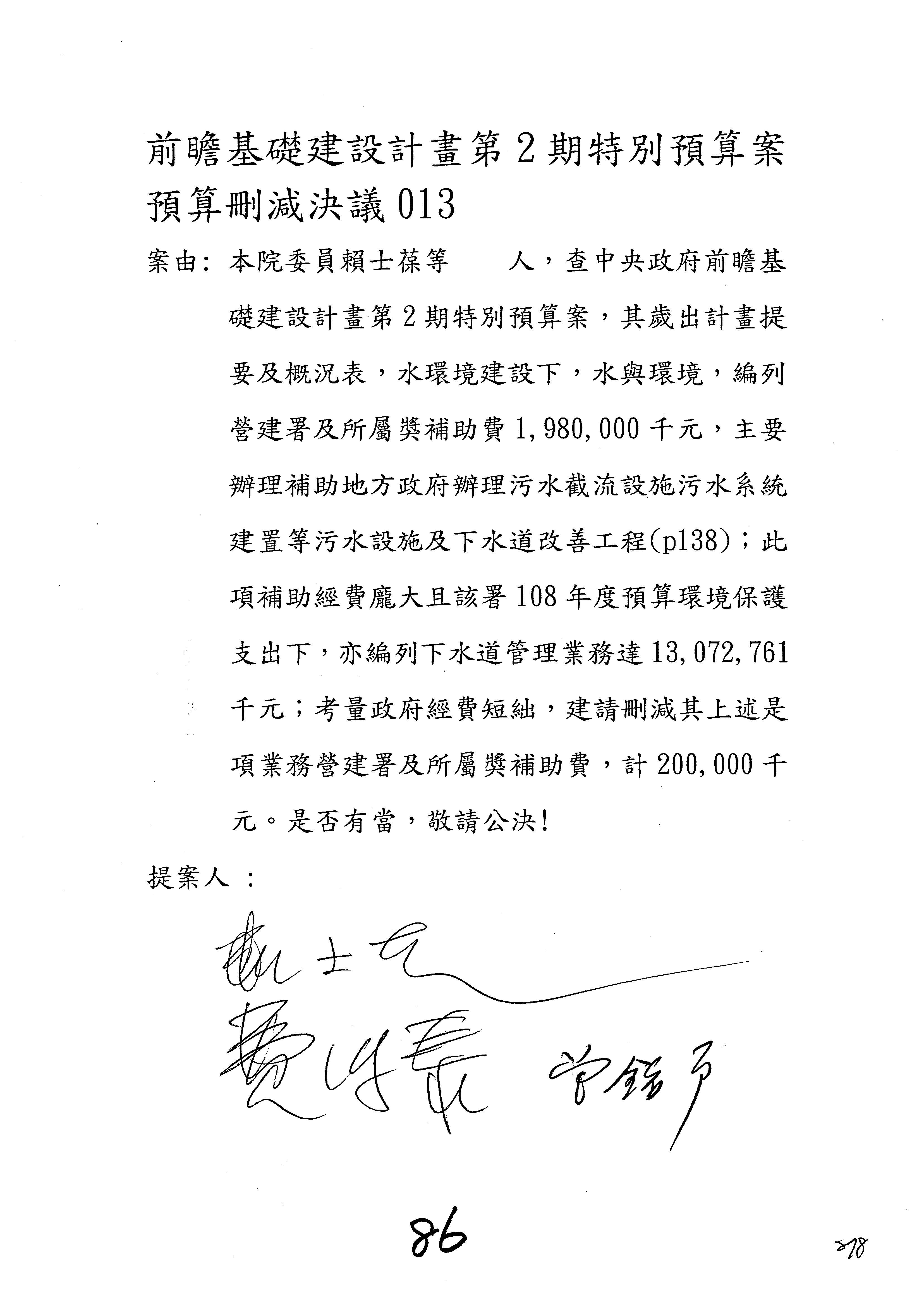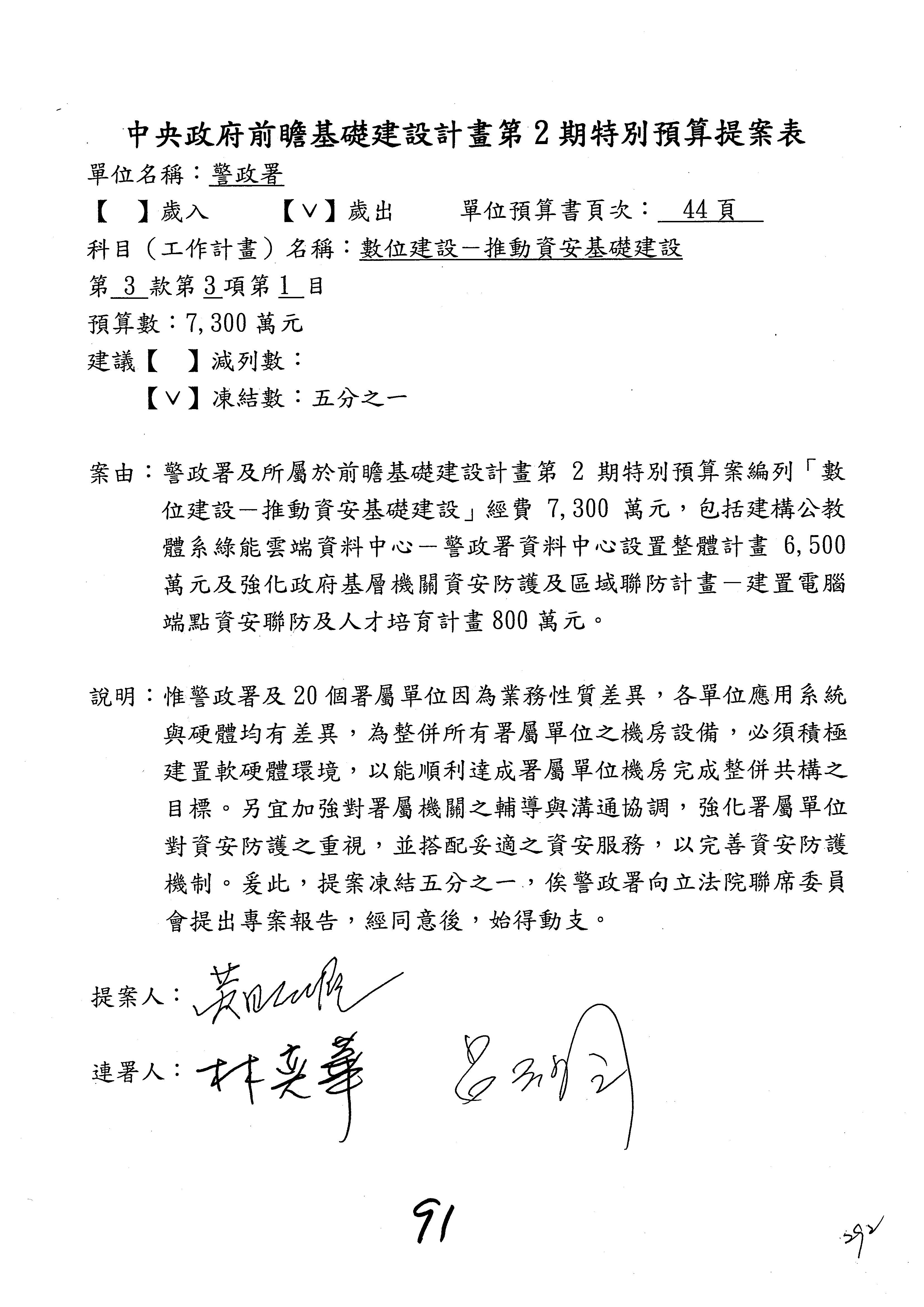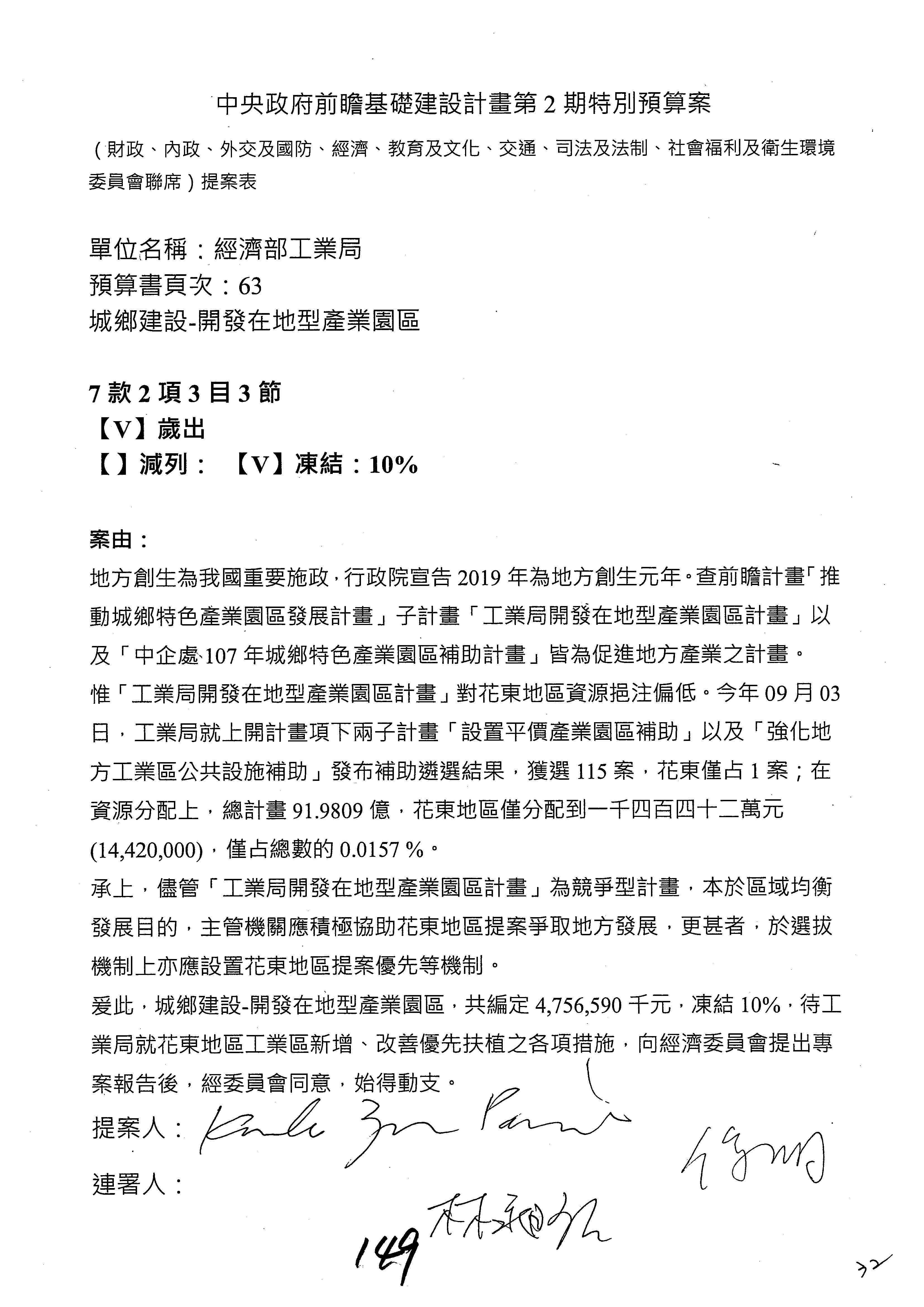 第174案刪減1億1,150萬6,000元,科目自行調整。第175案刪減3,000萬元,科目自行調整。