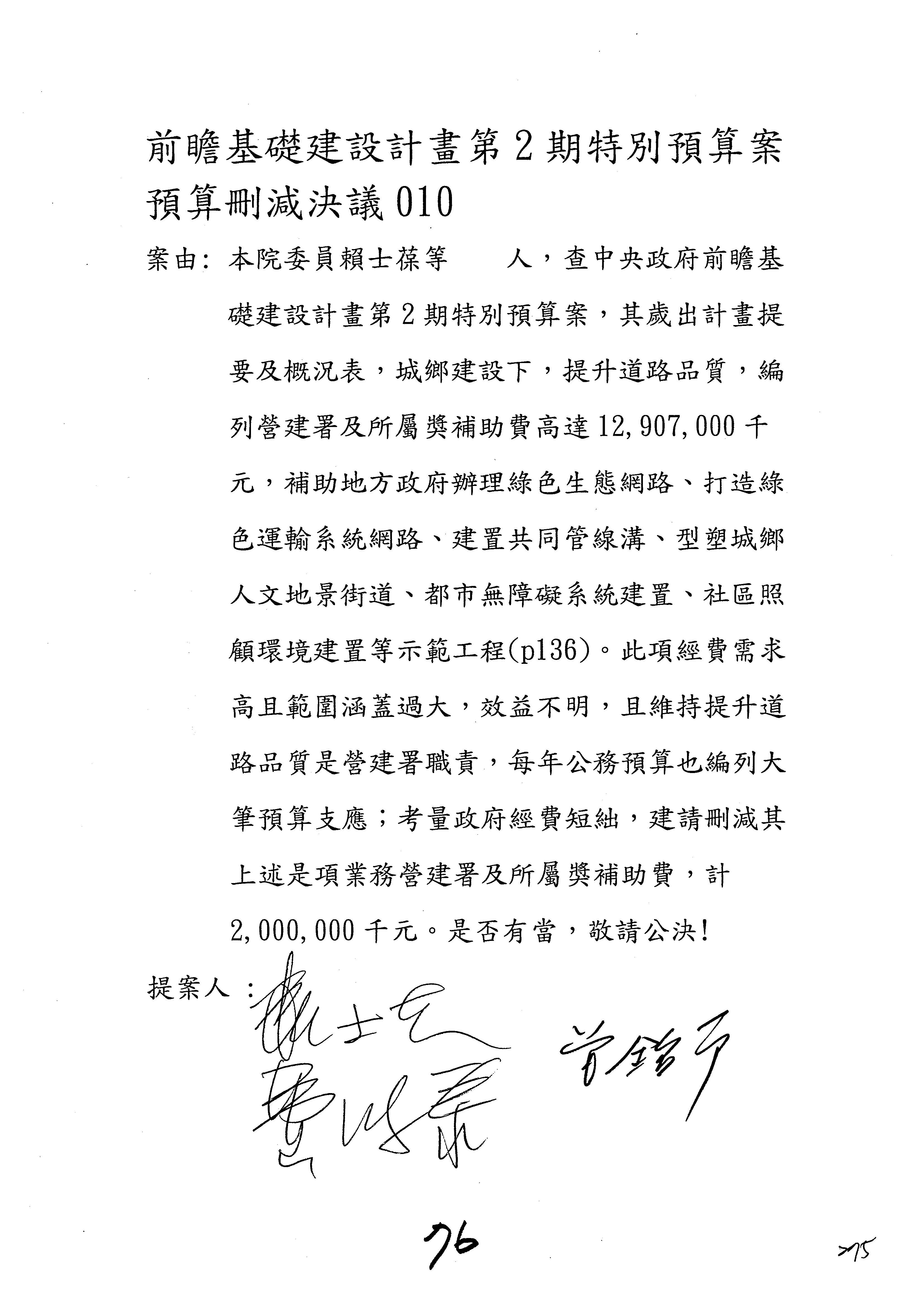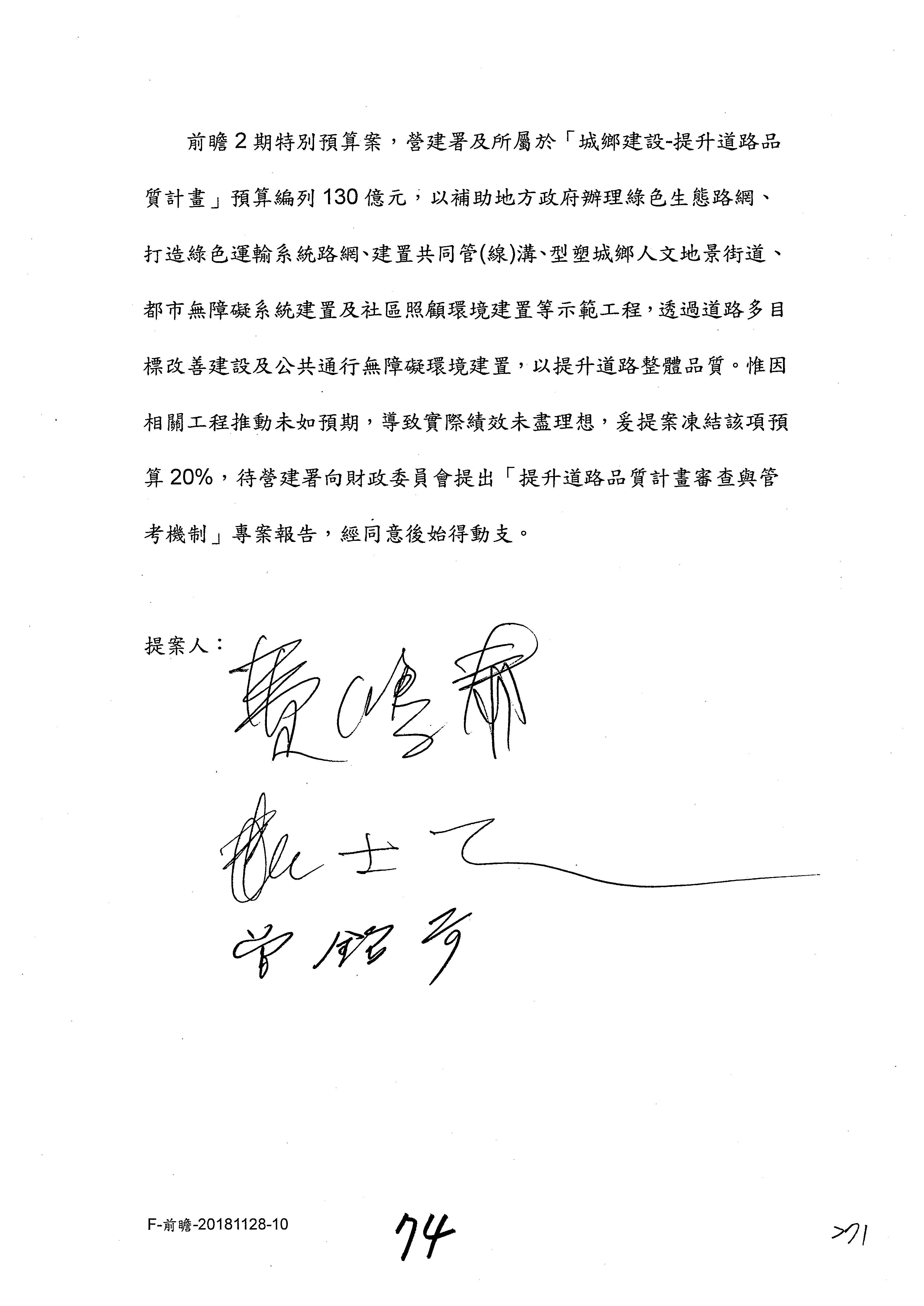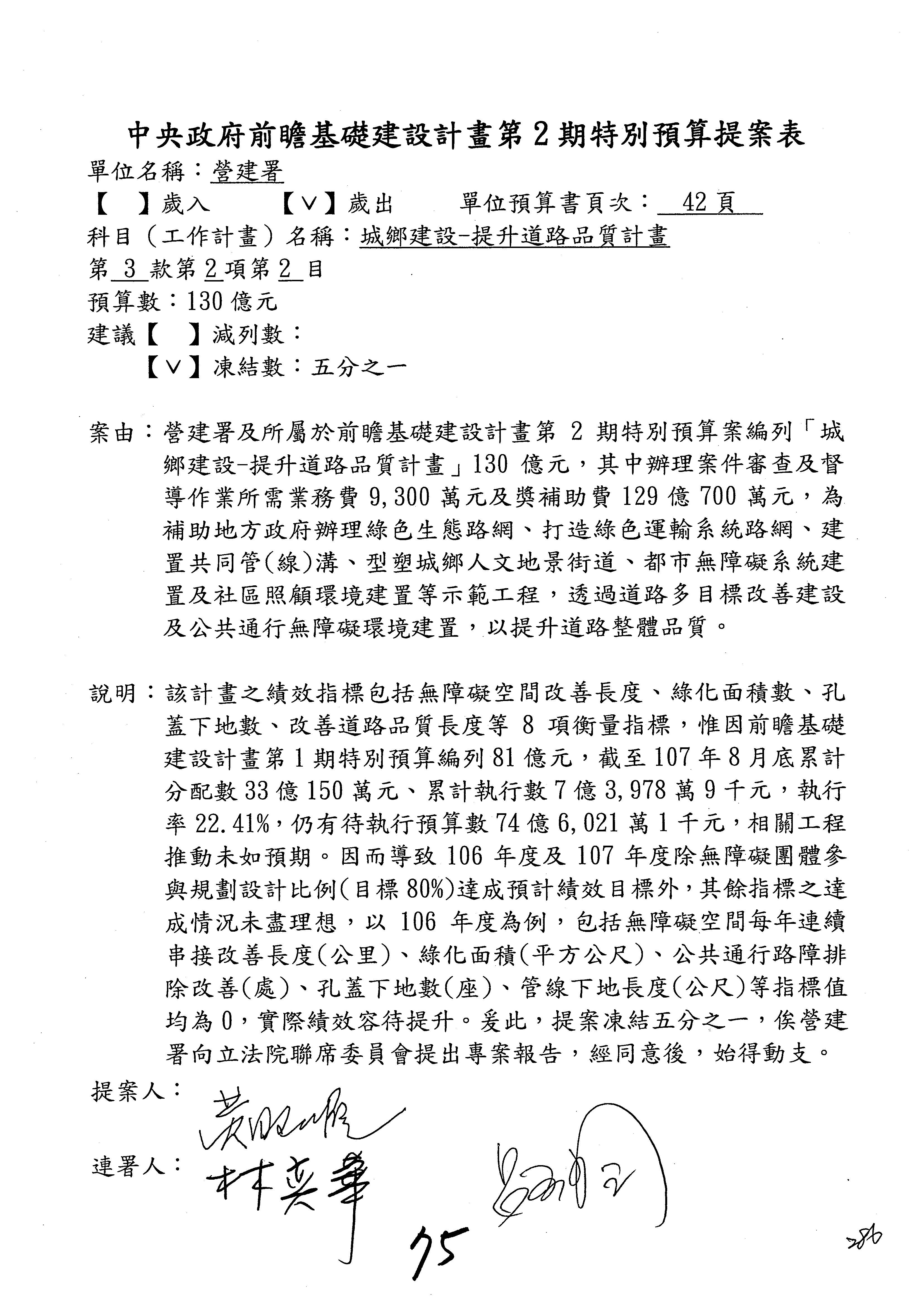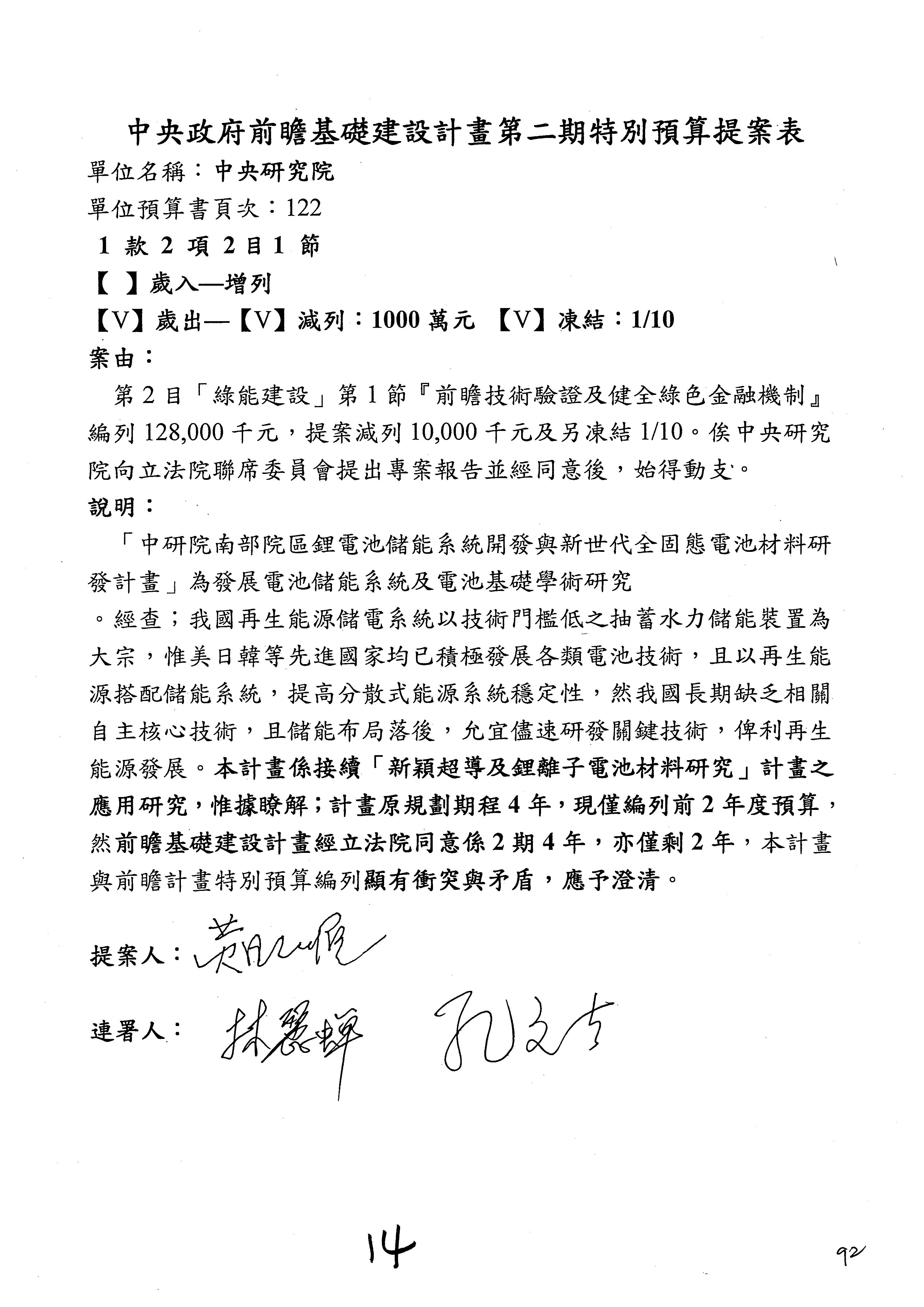 第174案刪減1億1,150萬6,000元,科目自行調整。第175案刪減3,000萬元,科目自行調整。