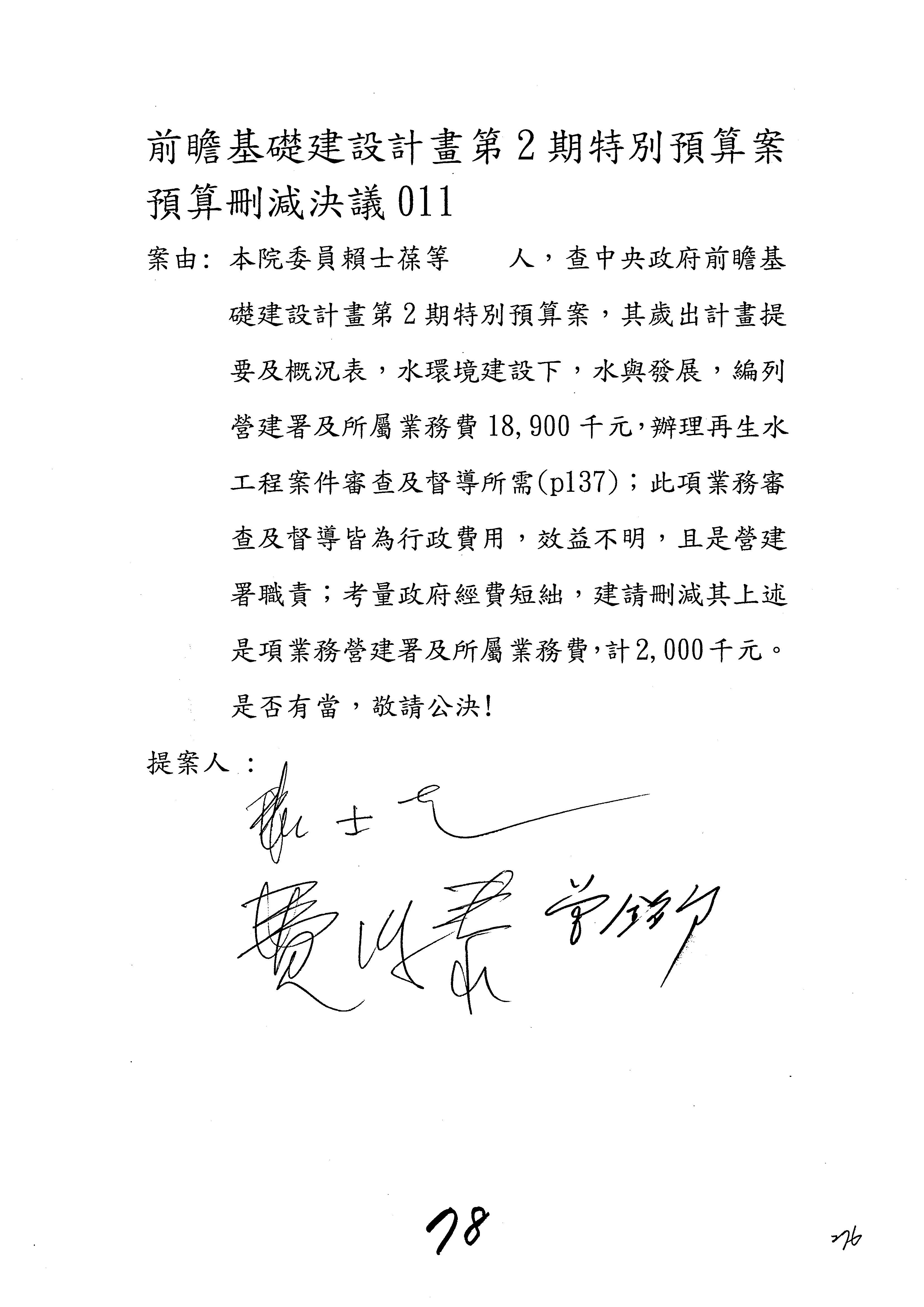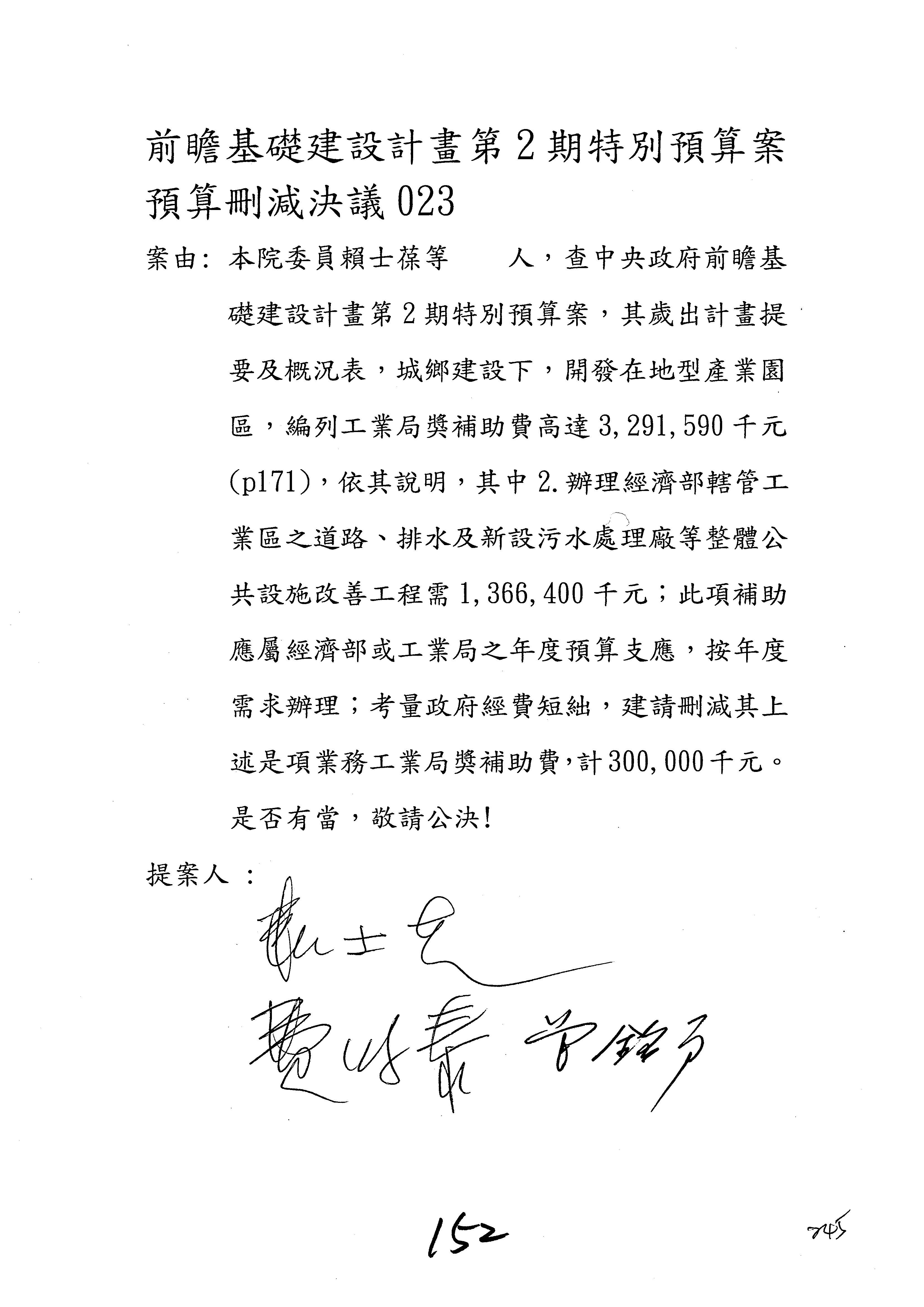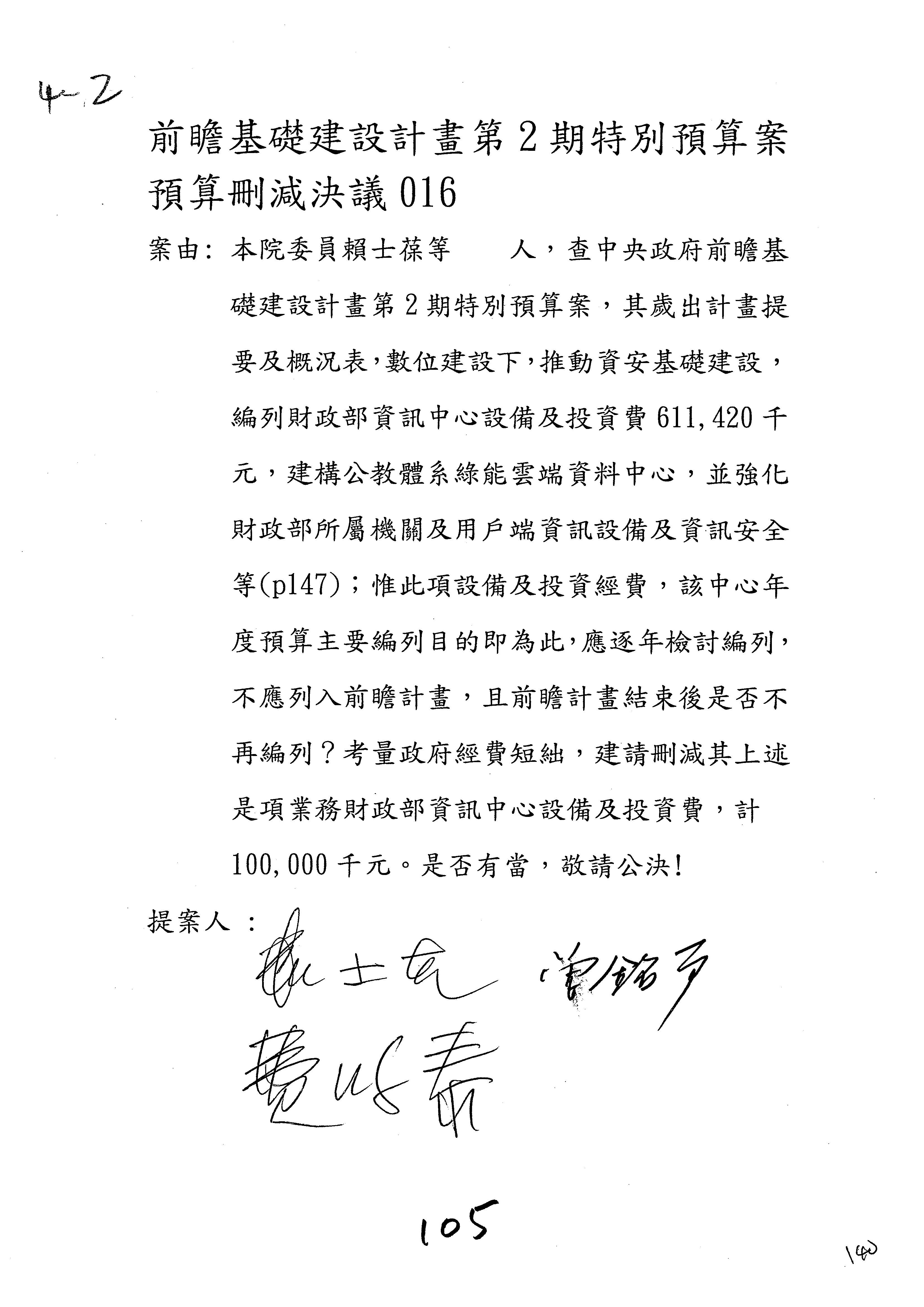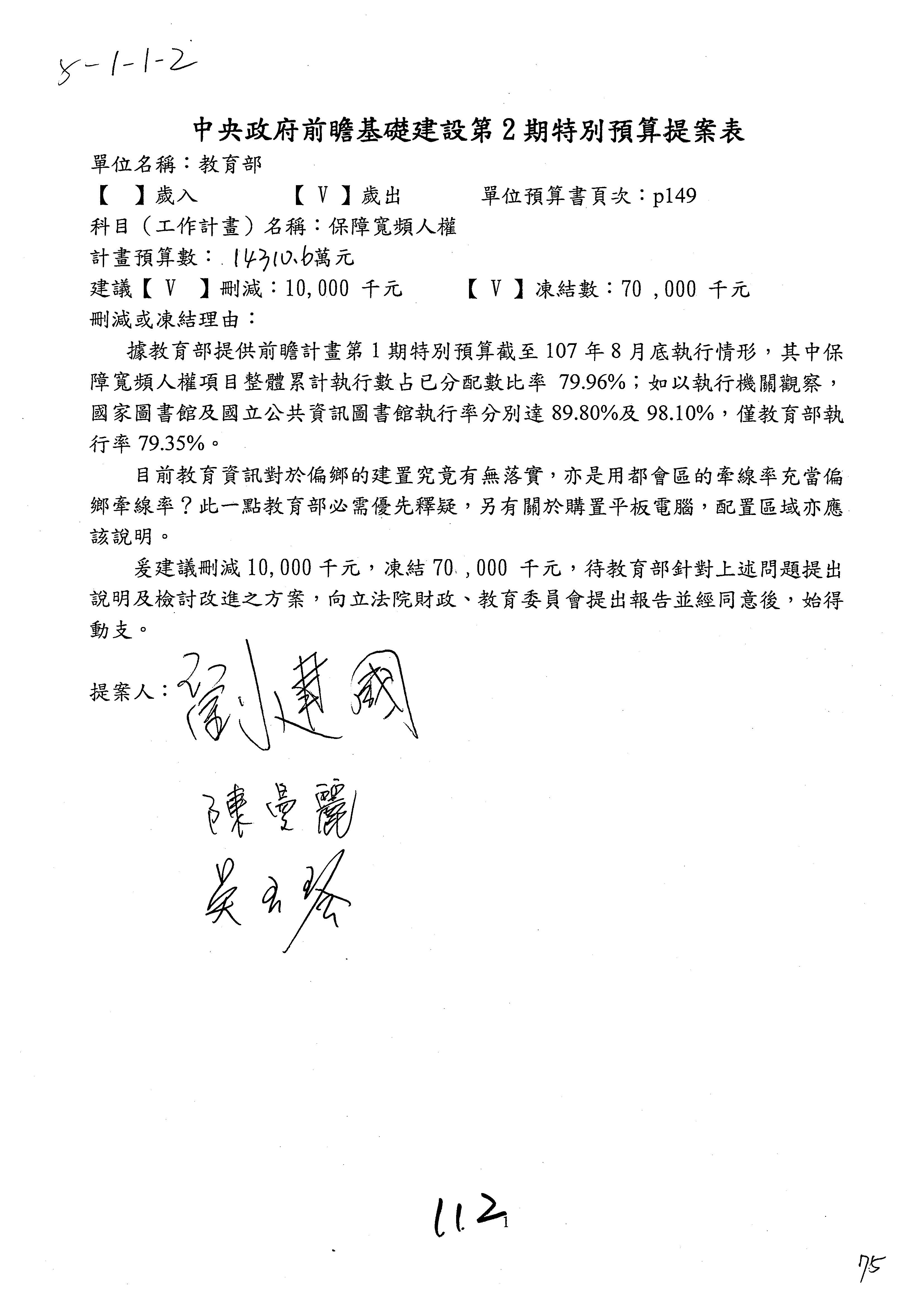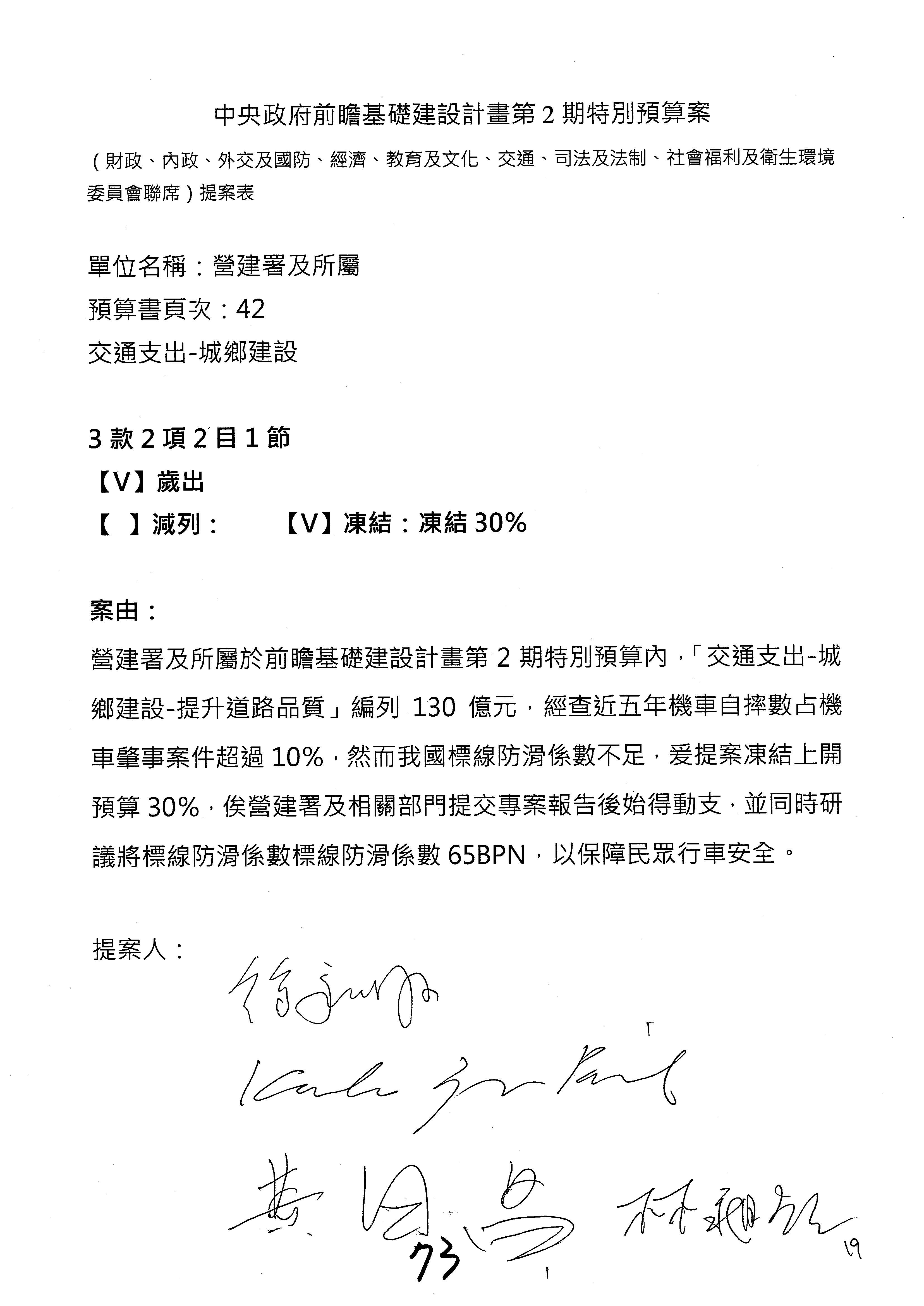 第174案刪減1億1,150萬6,000元,科目自行調整。第175案刪減3,000萬元,科目自行調整。