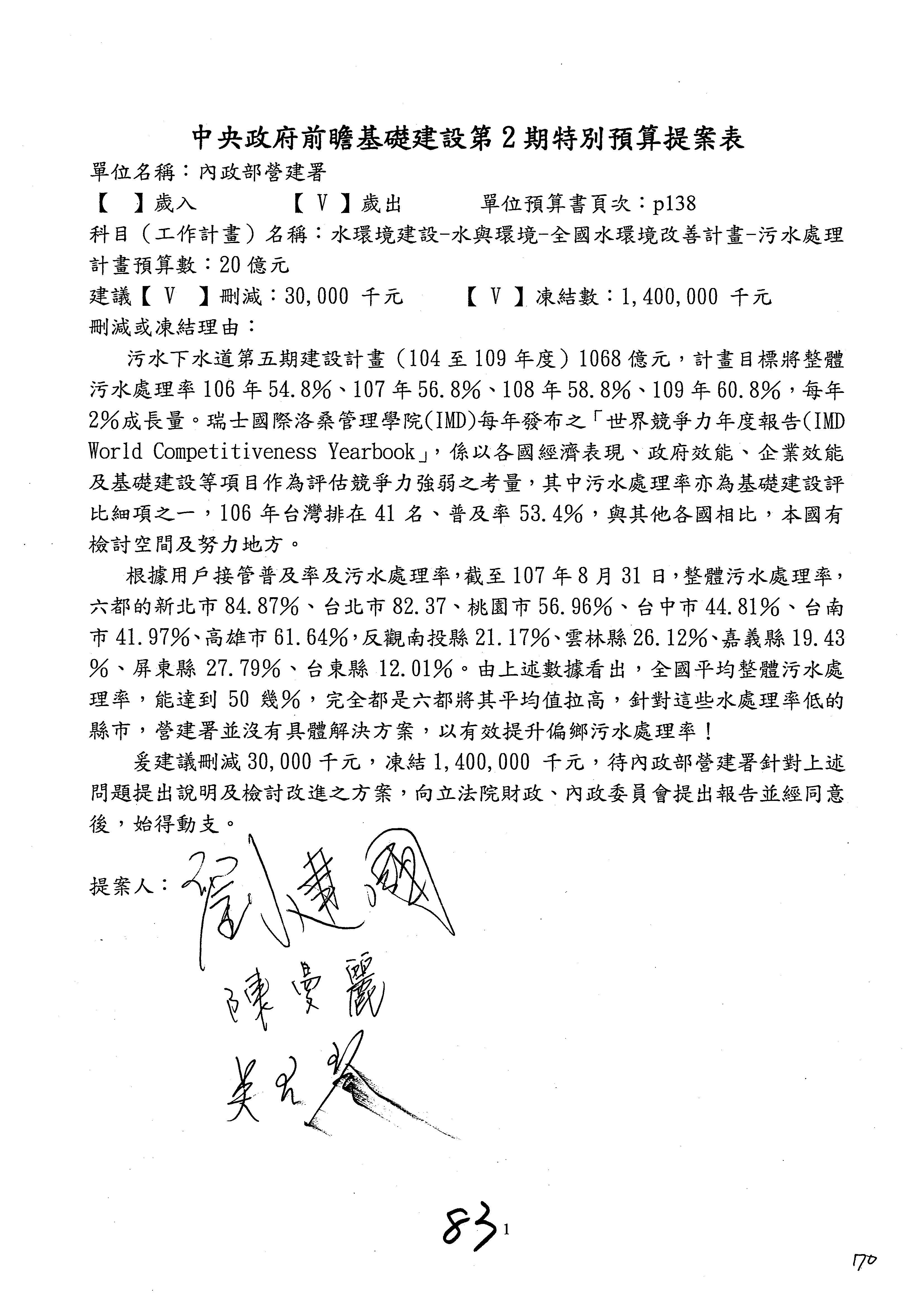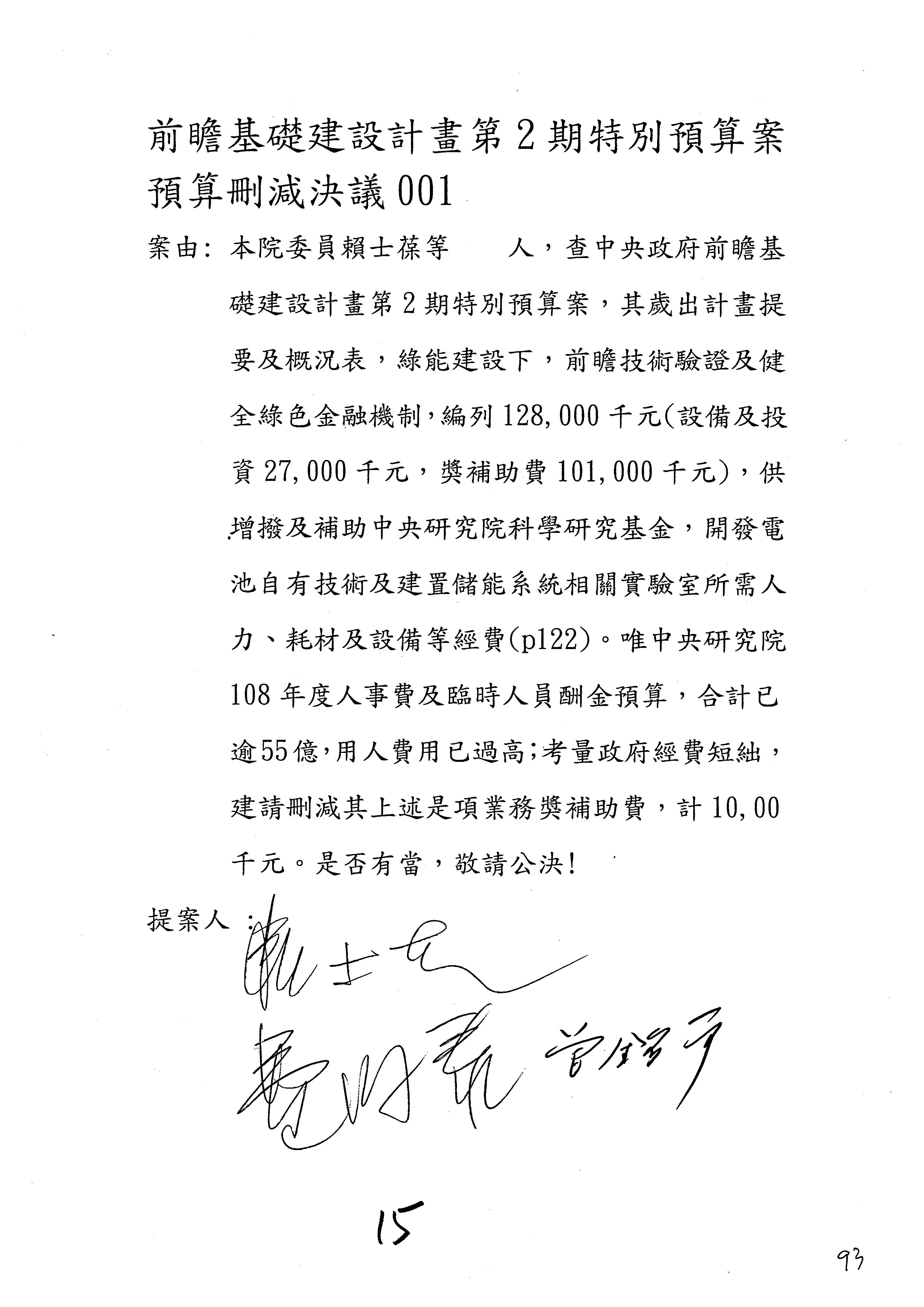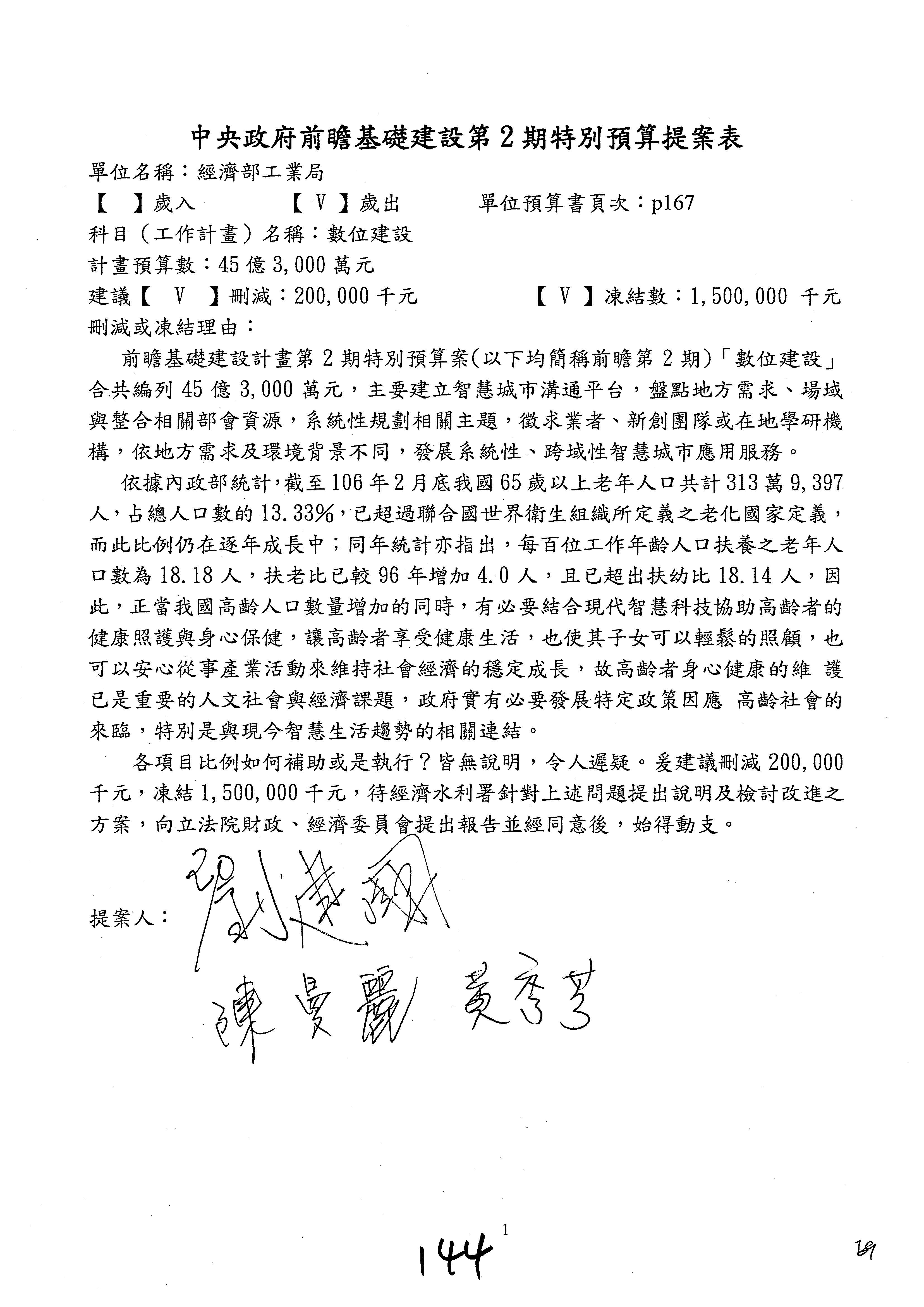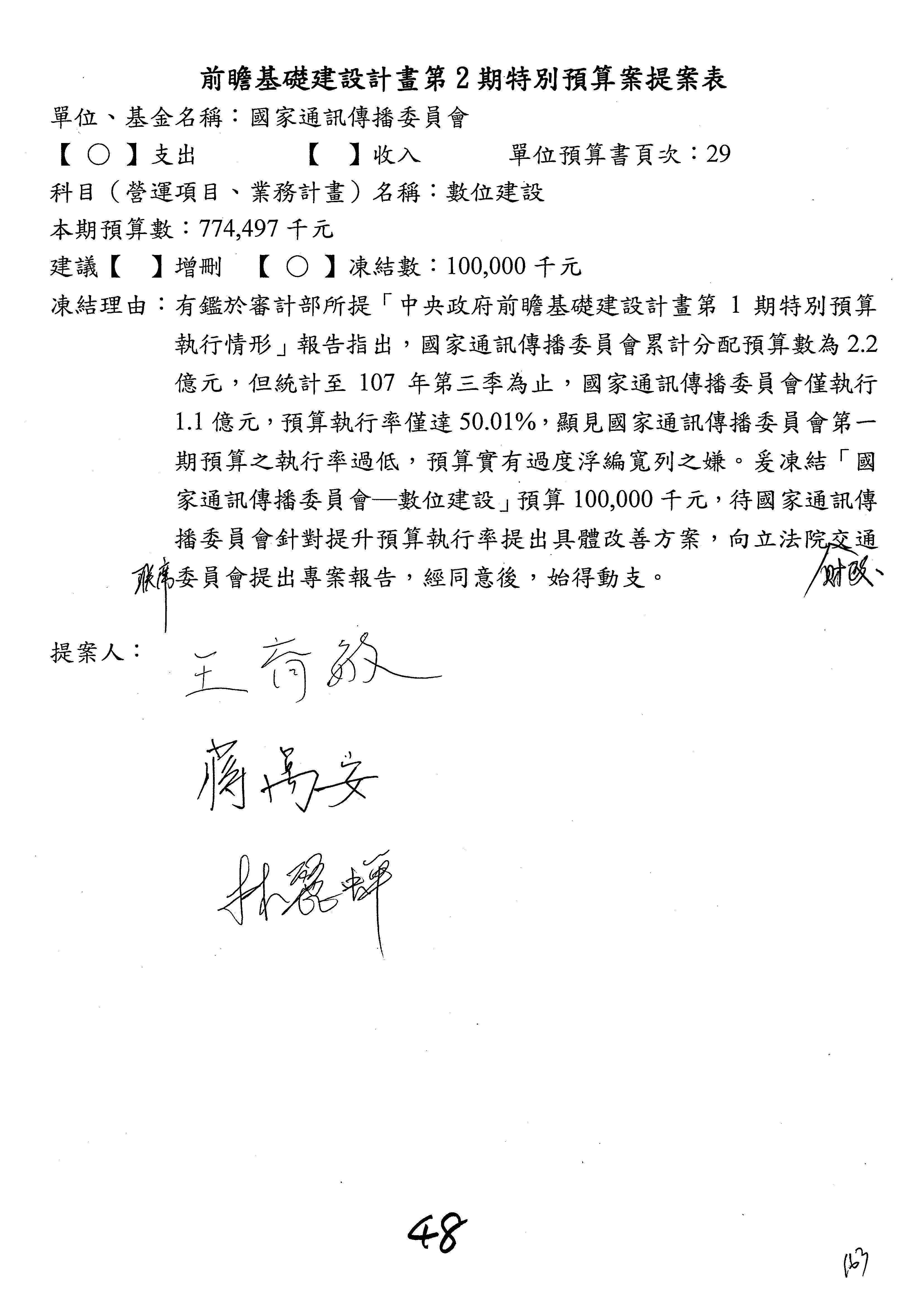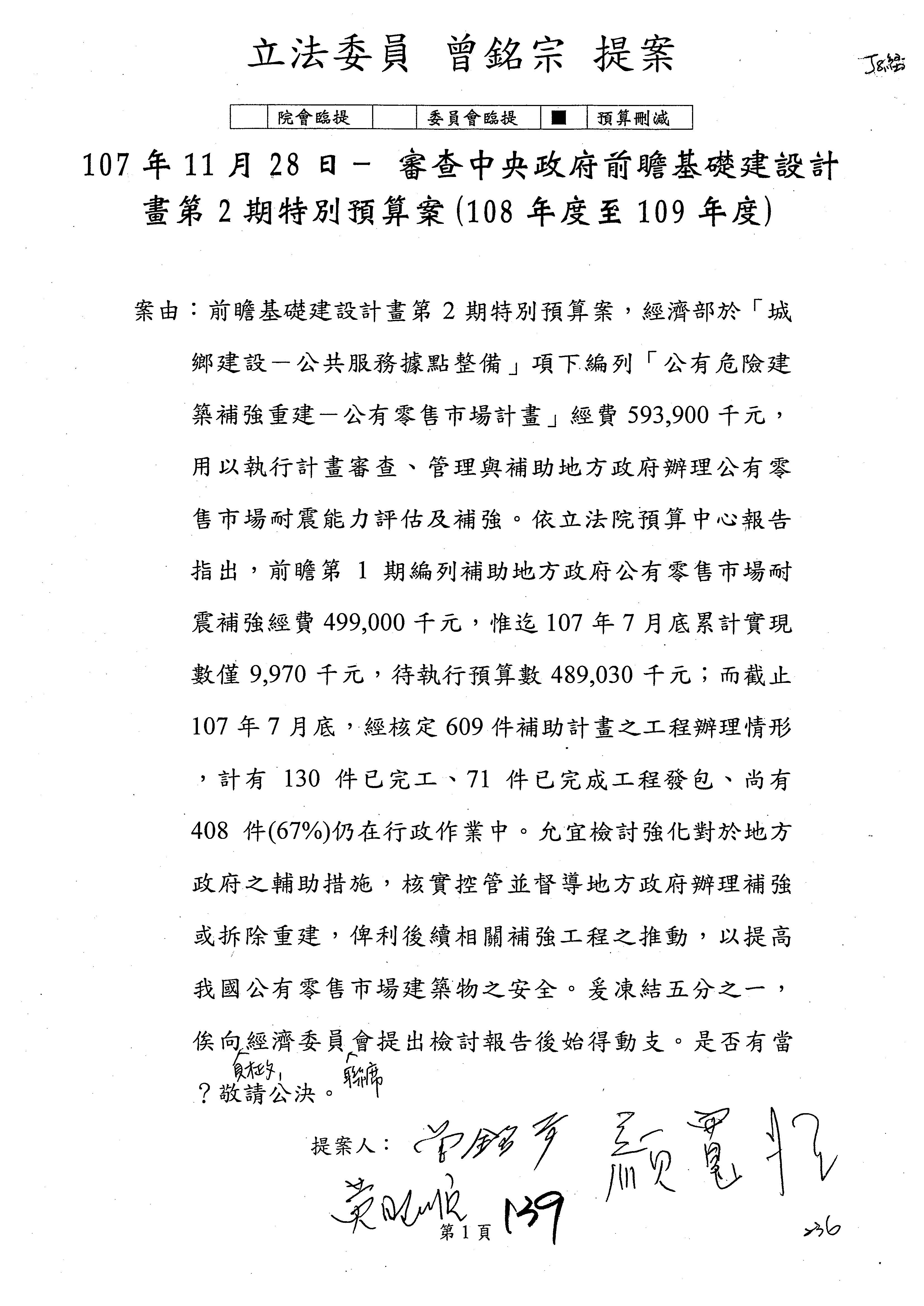 第174案刪減1億1,150萬6,000元,科目自行調整。第175案刪減3,000萬元,科目自行調整。