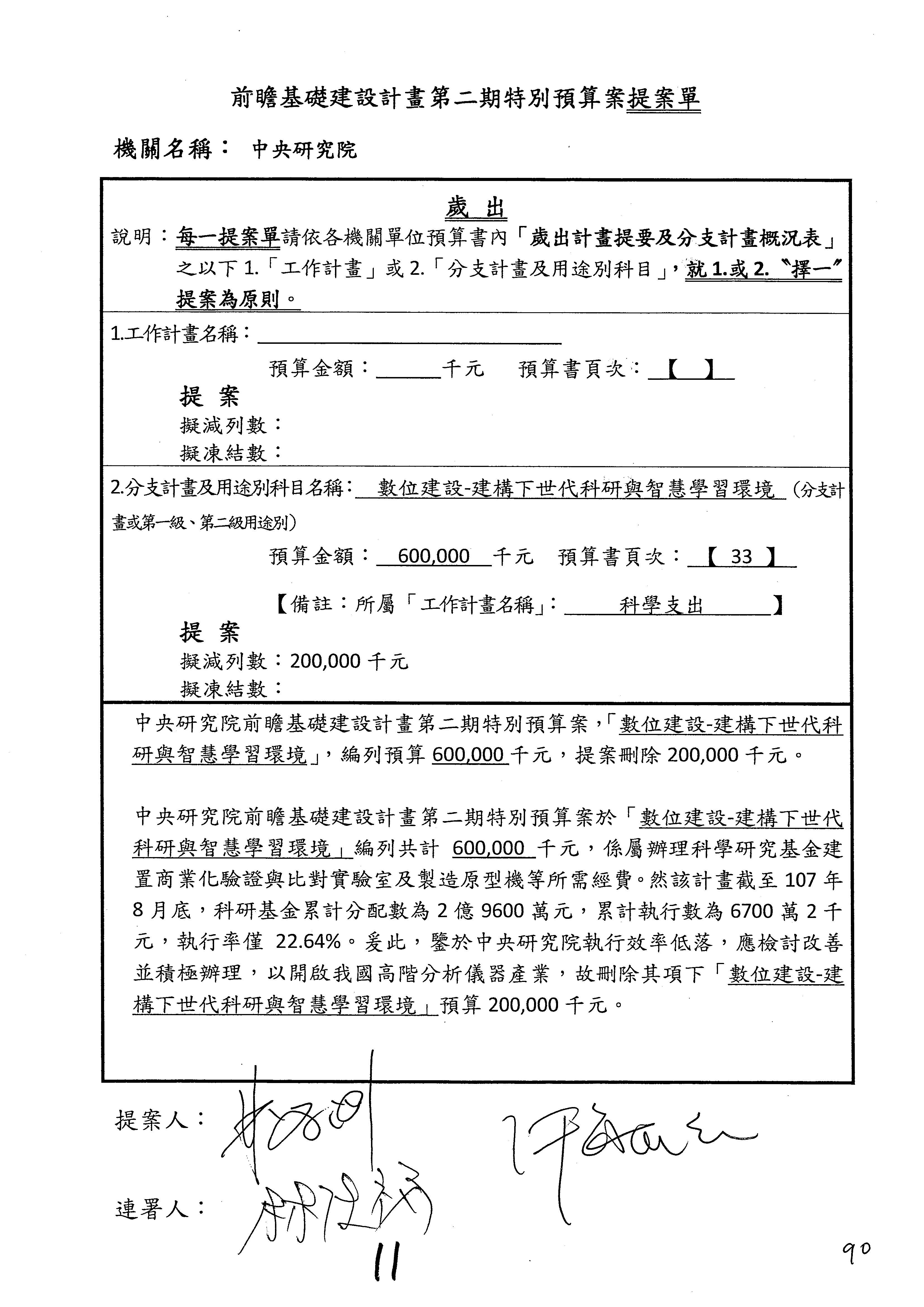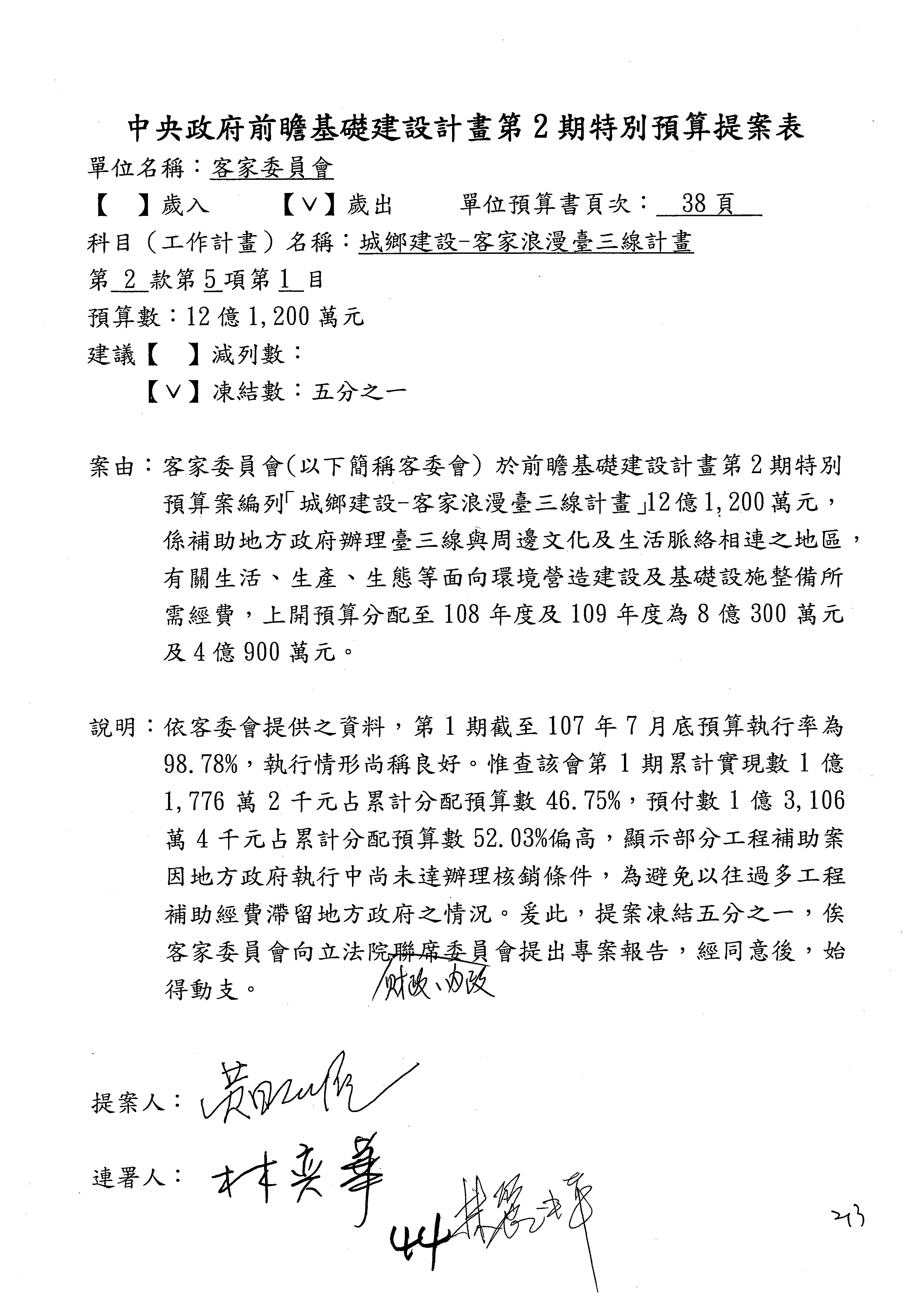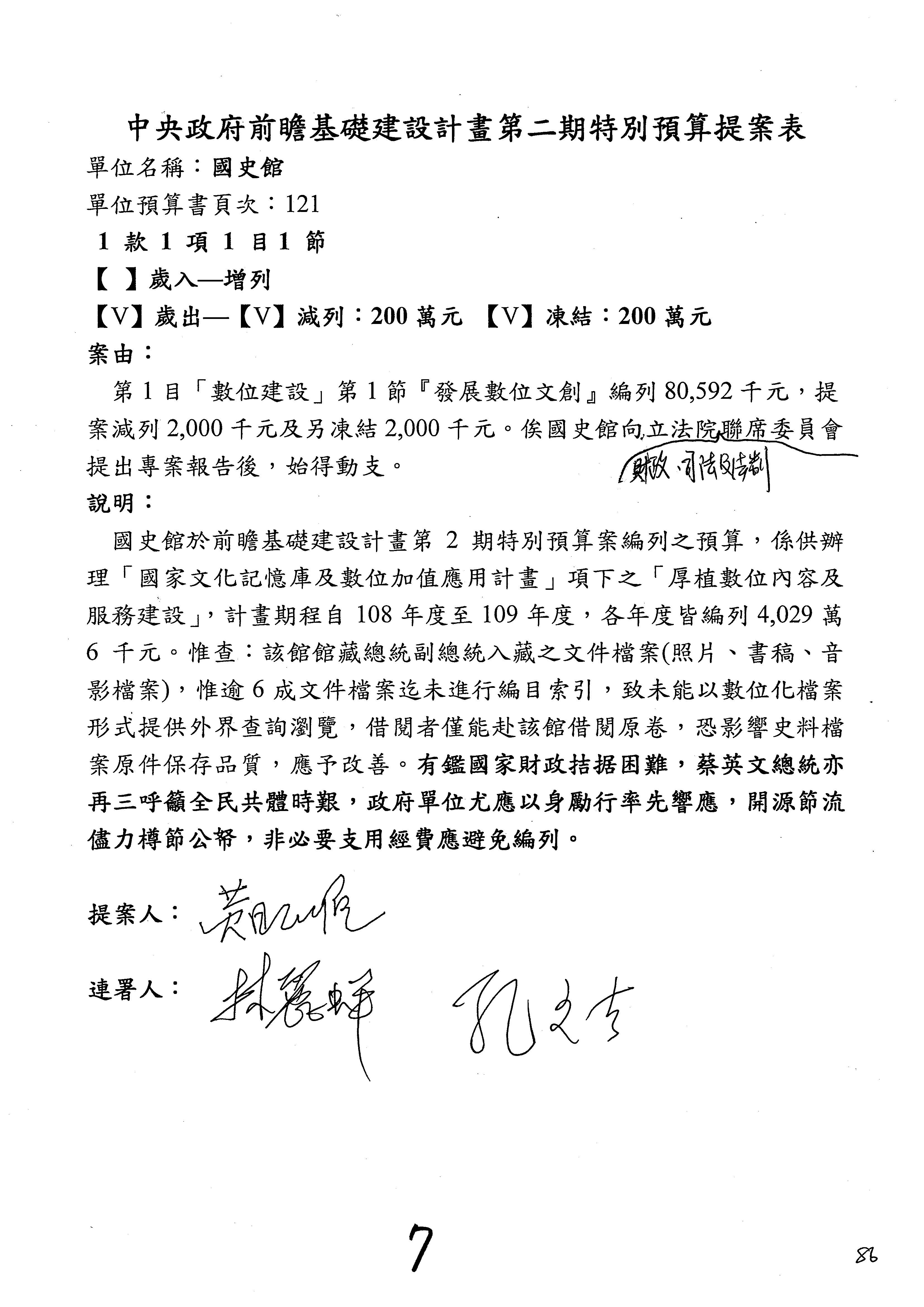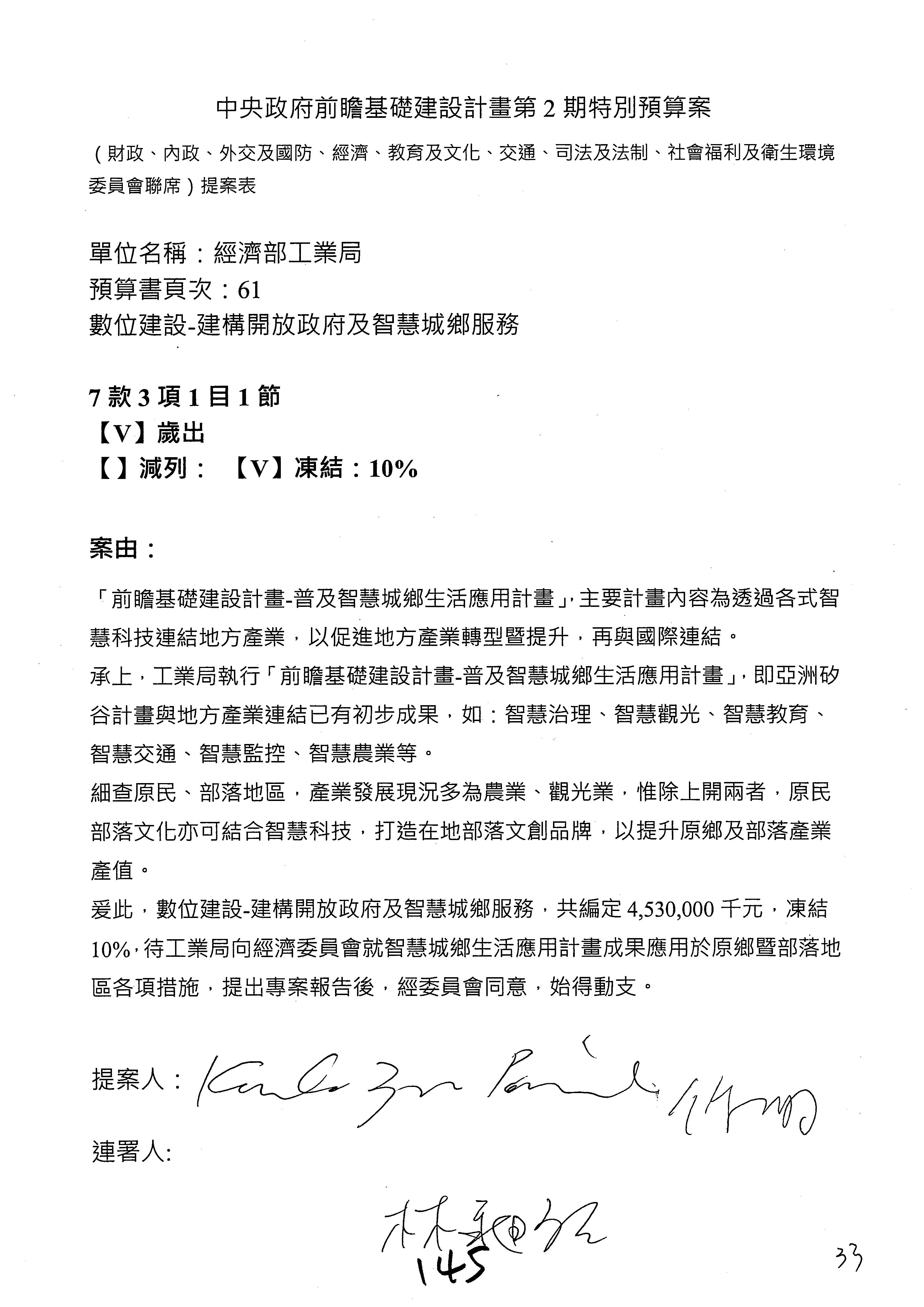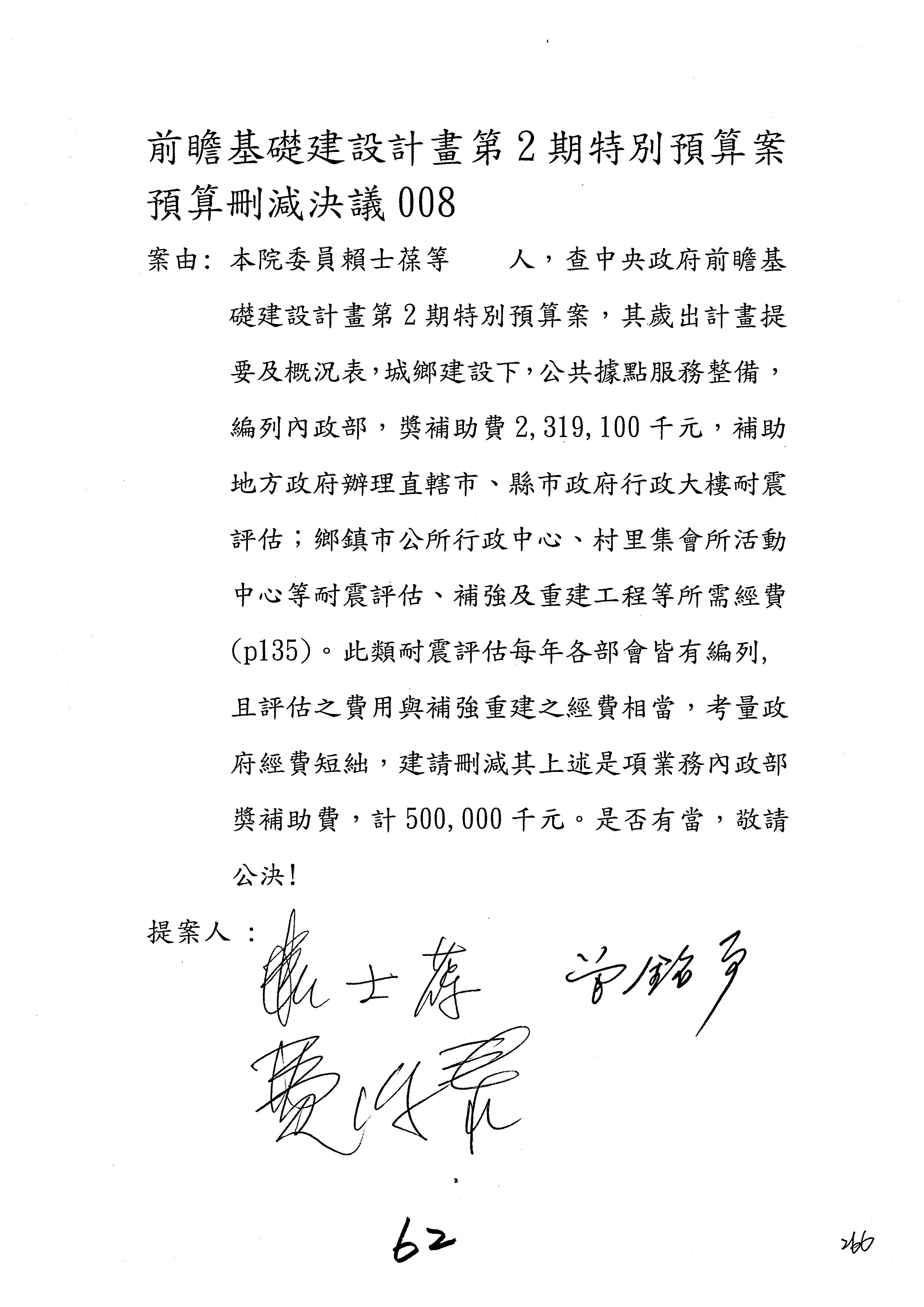 第174案刪減1億1,150萬6,000元,科目自行調整。第175案刪減3,000萬元,科目自行調整。