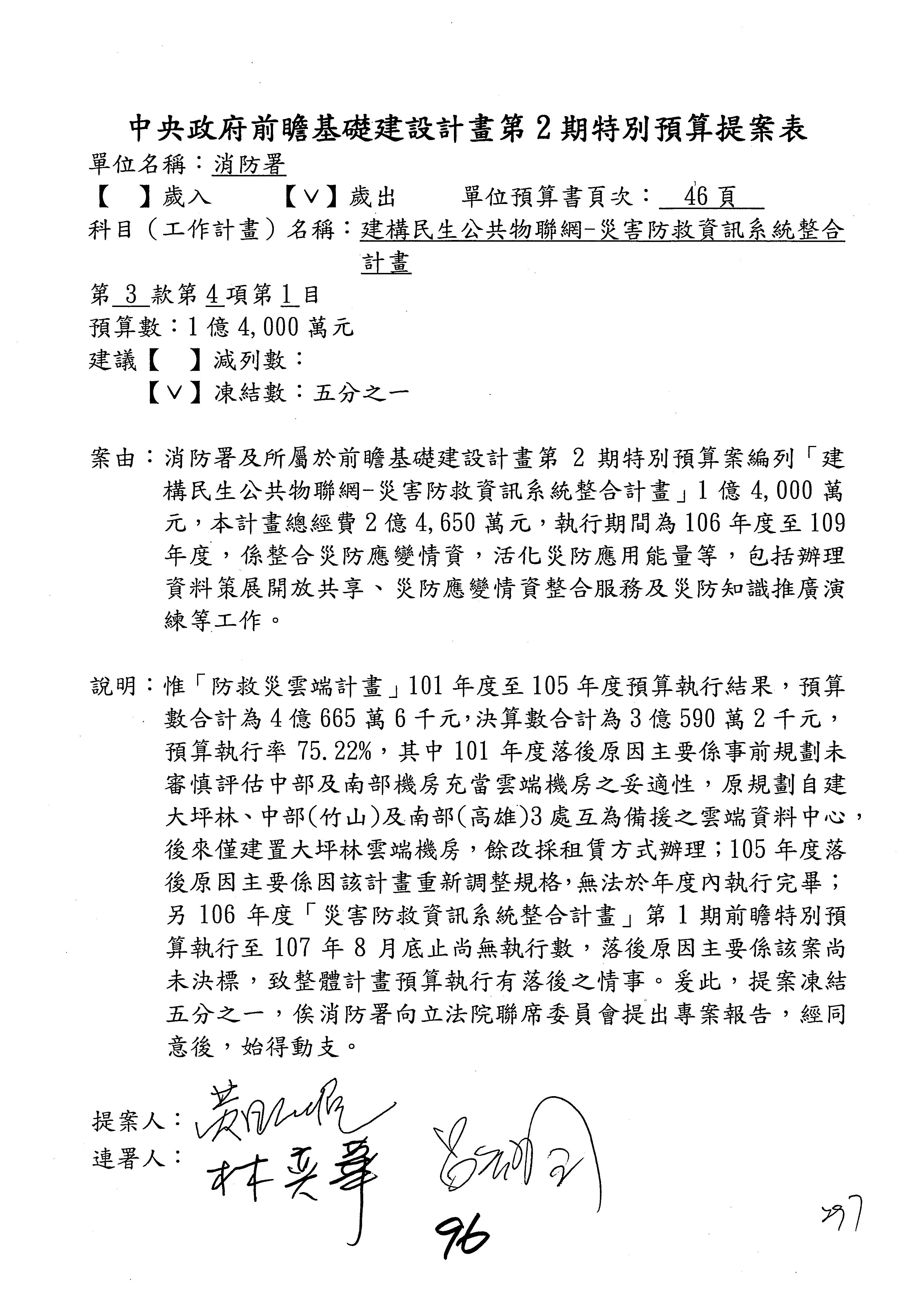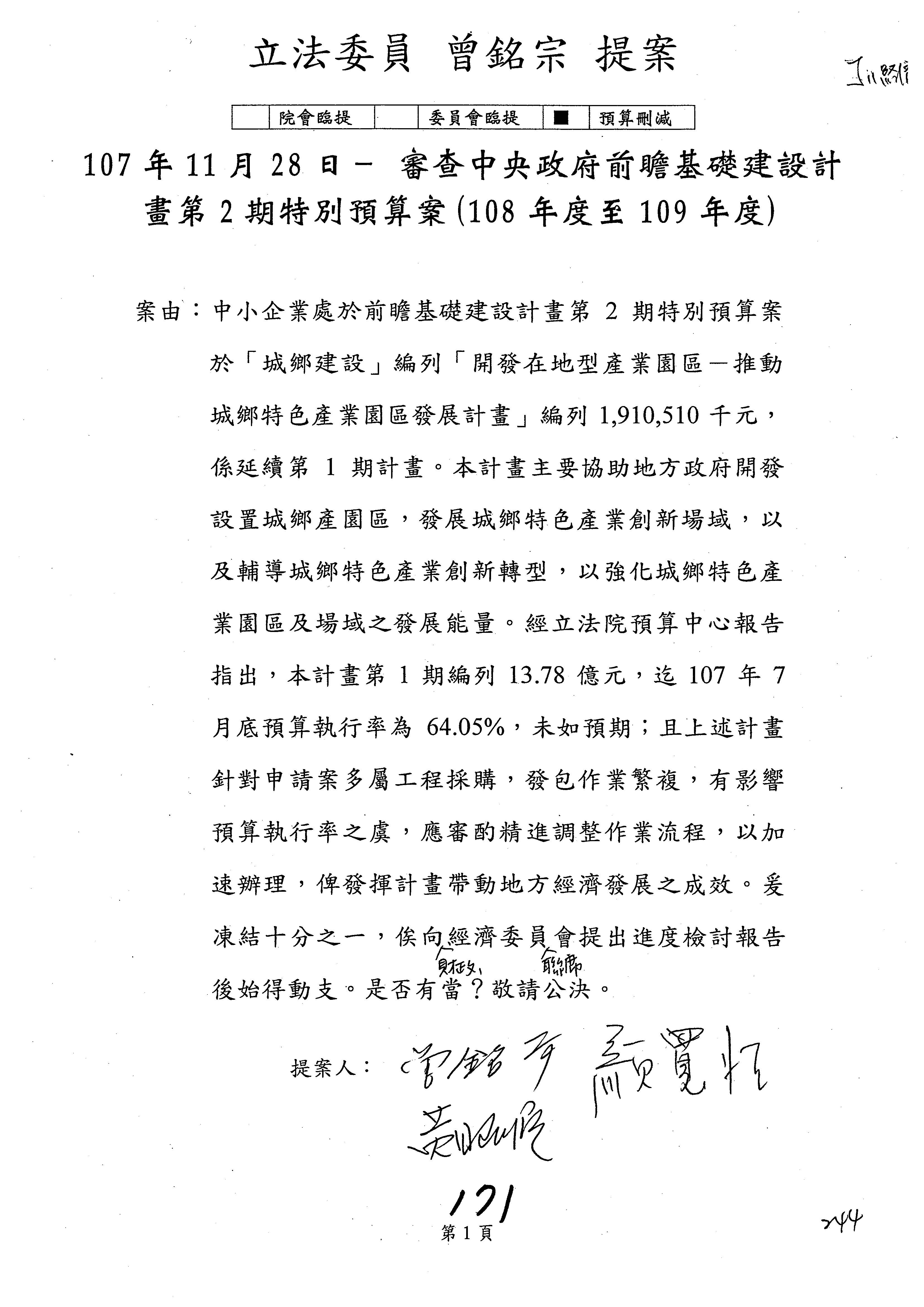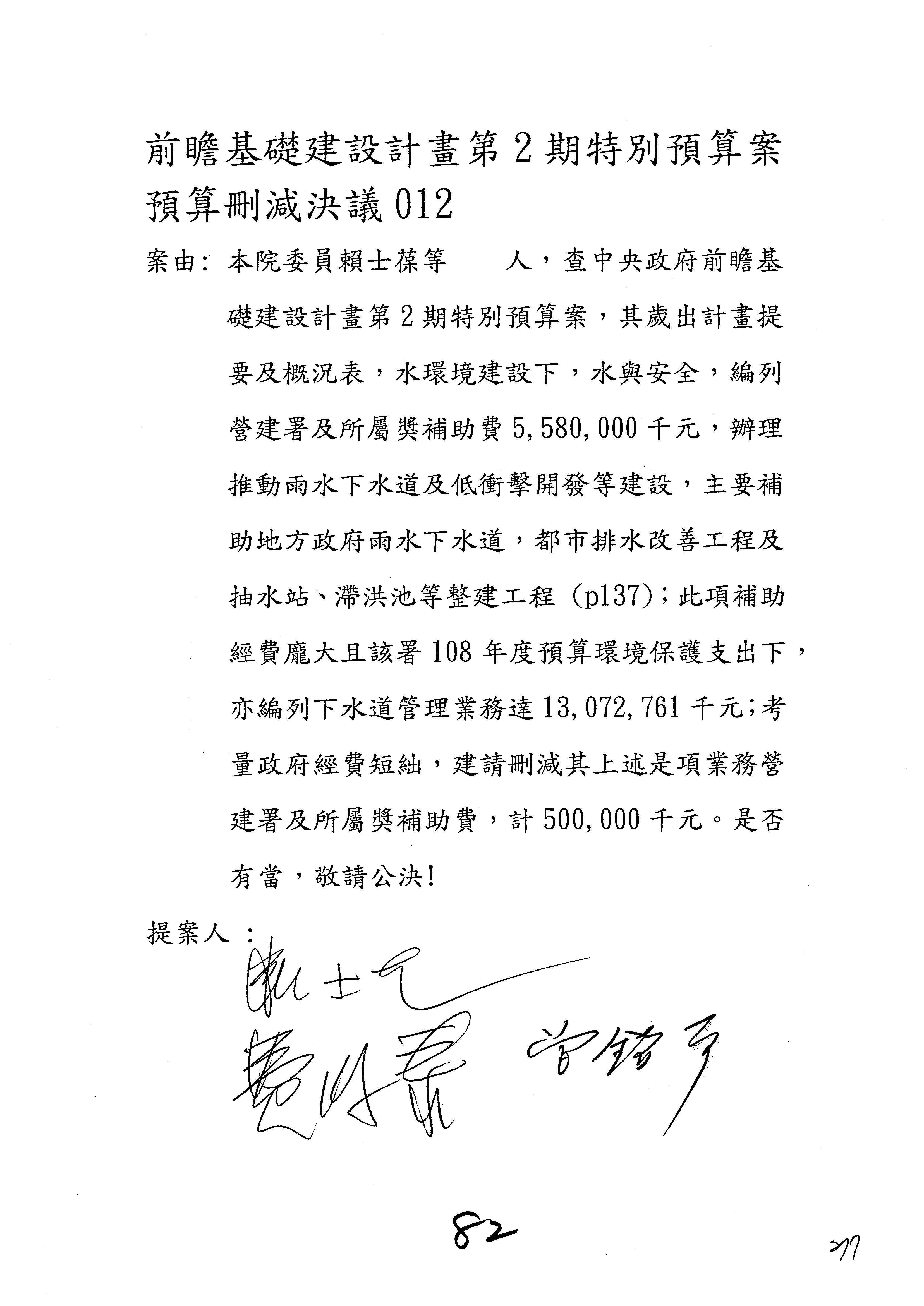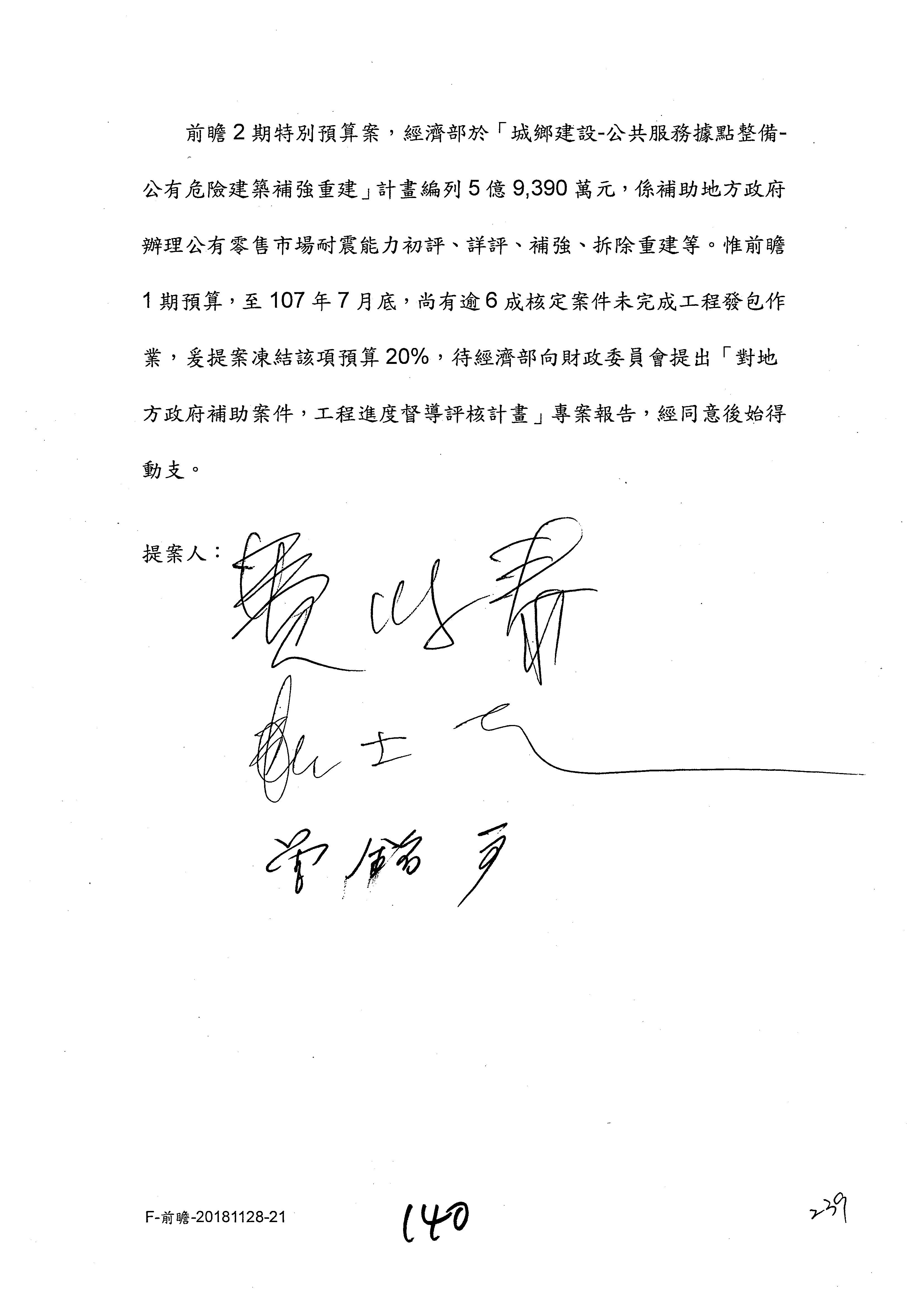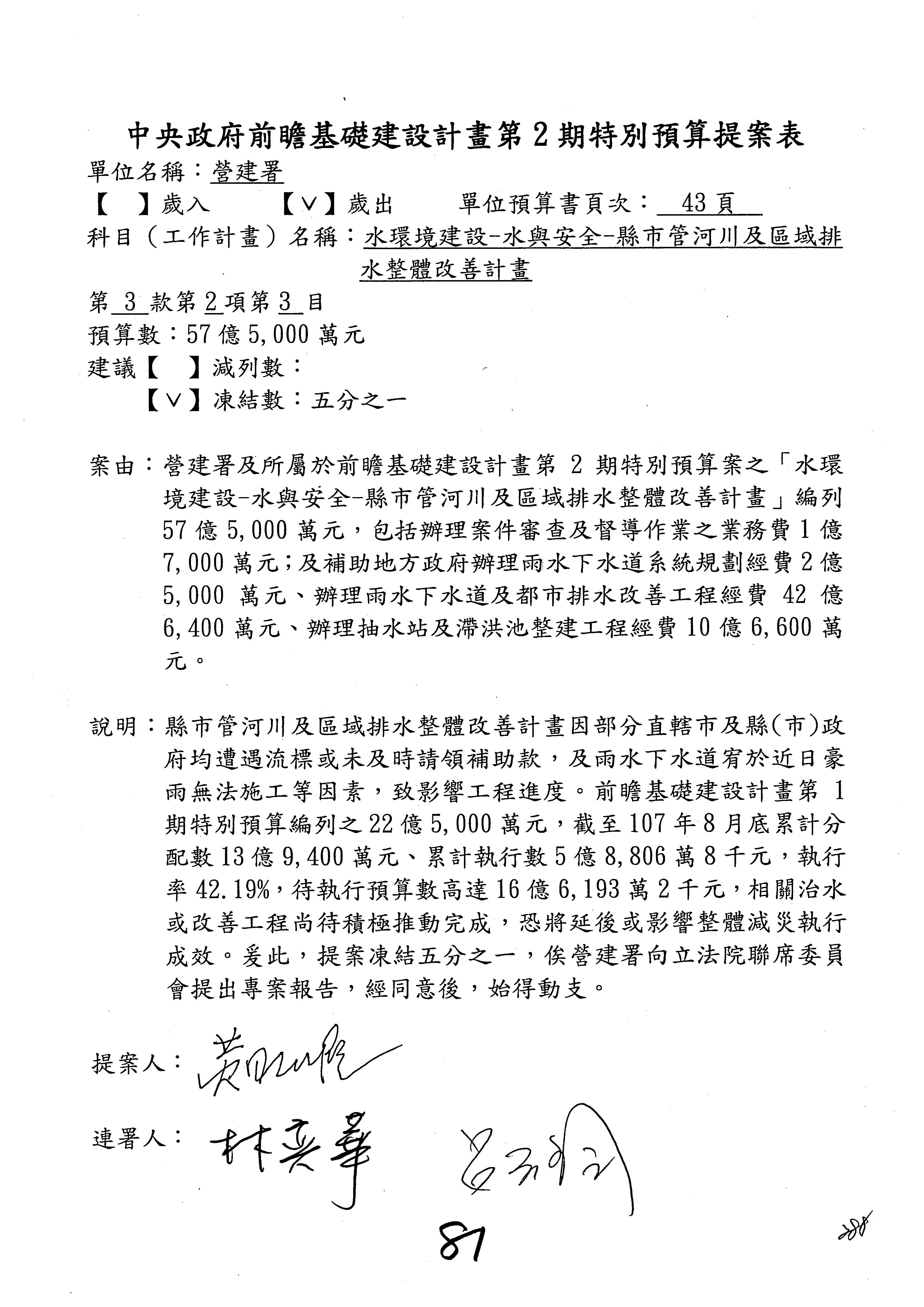 第174案刪減1億1,150萬6,000元,科目自行調整。第175案刪減3,000萬元,科目自行調整。