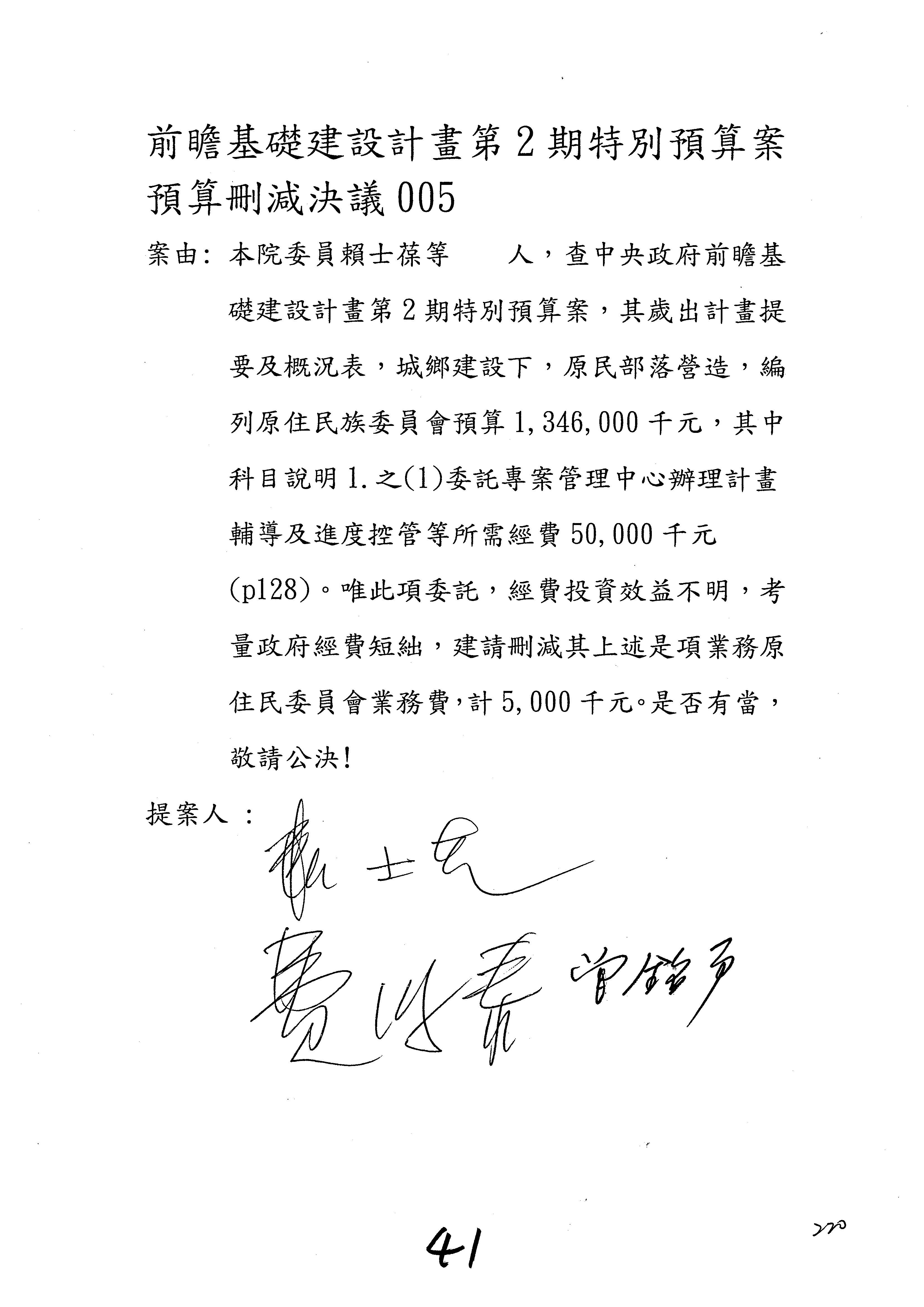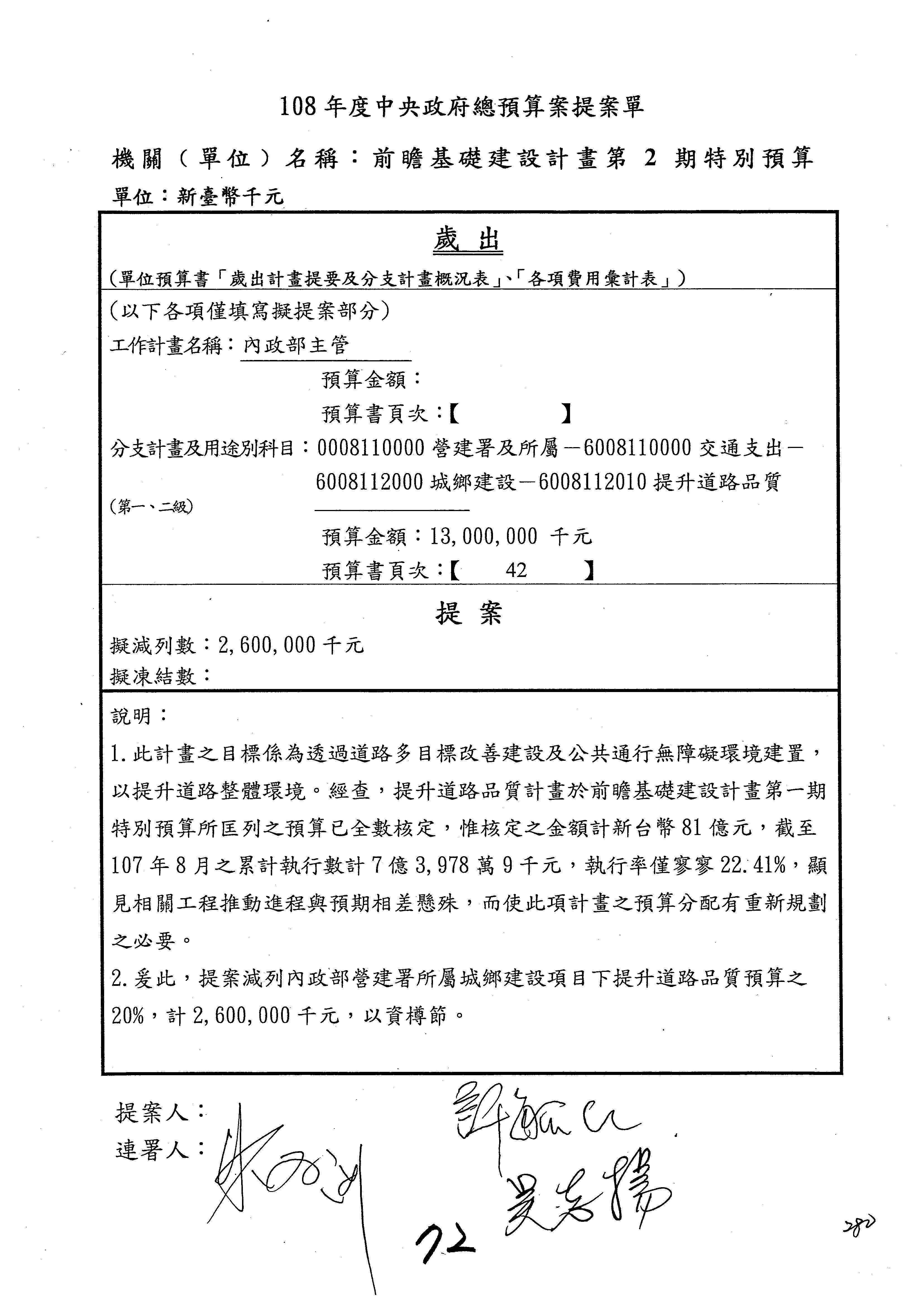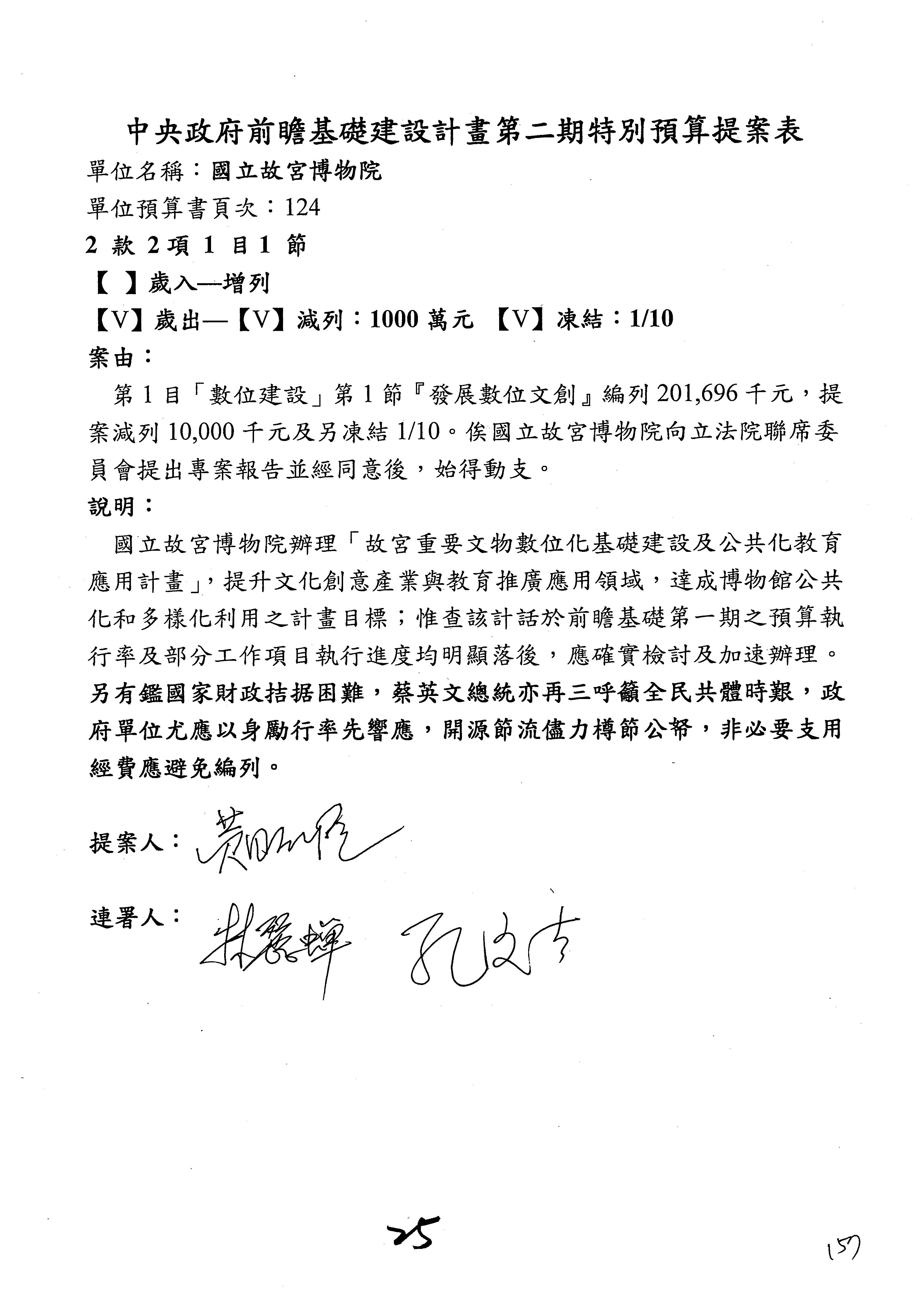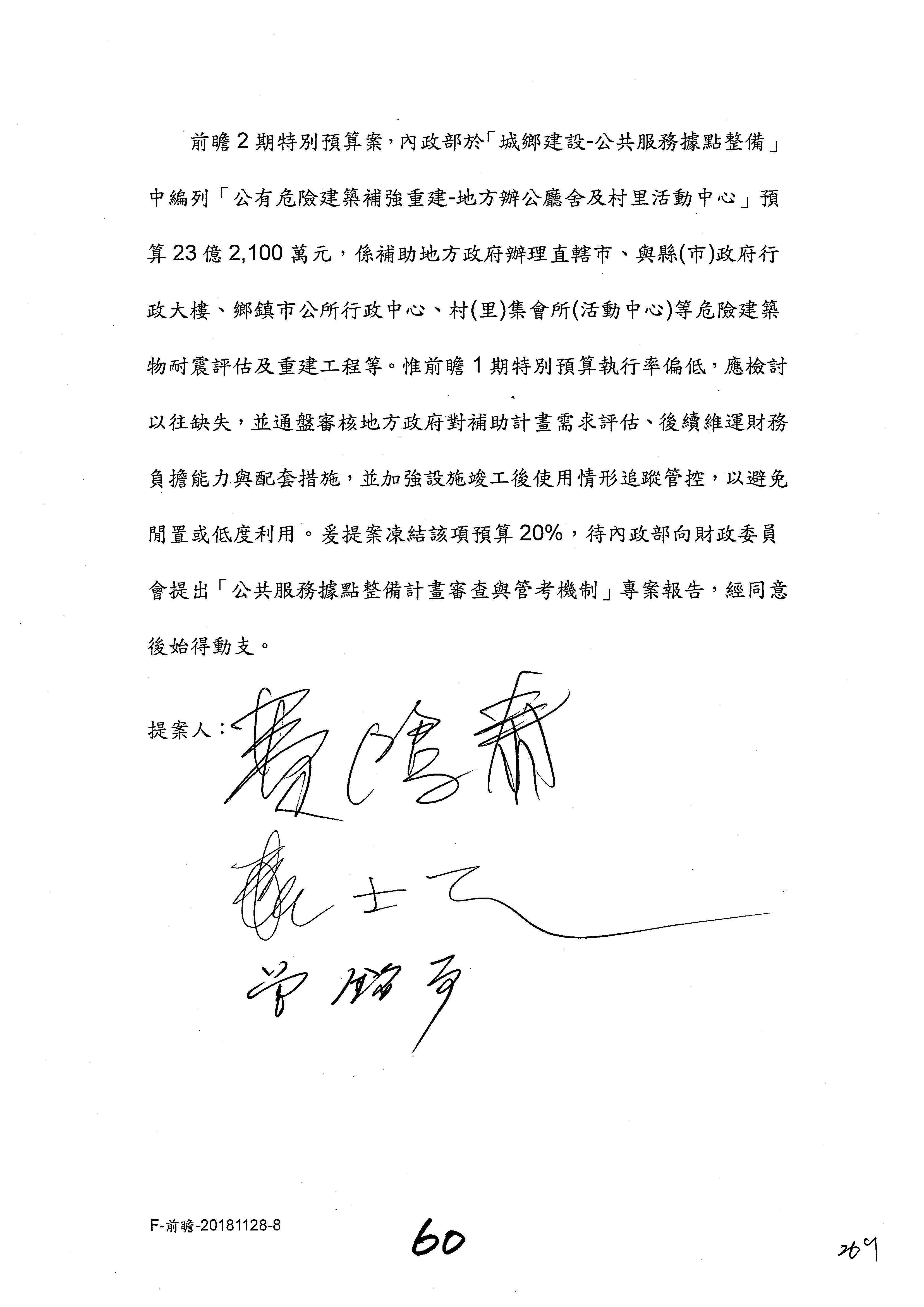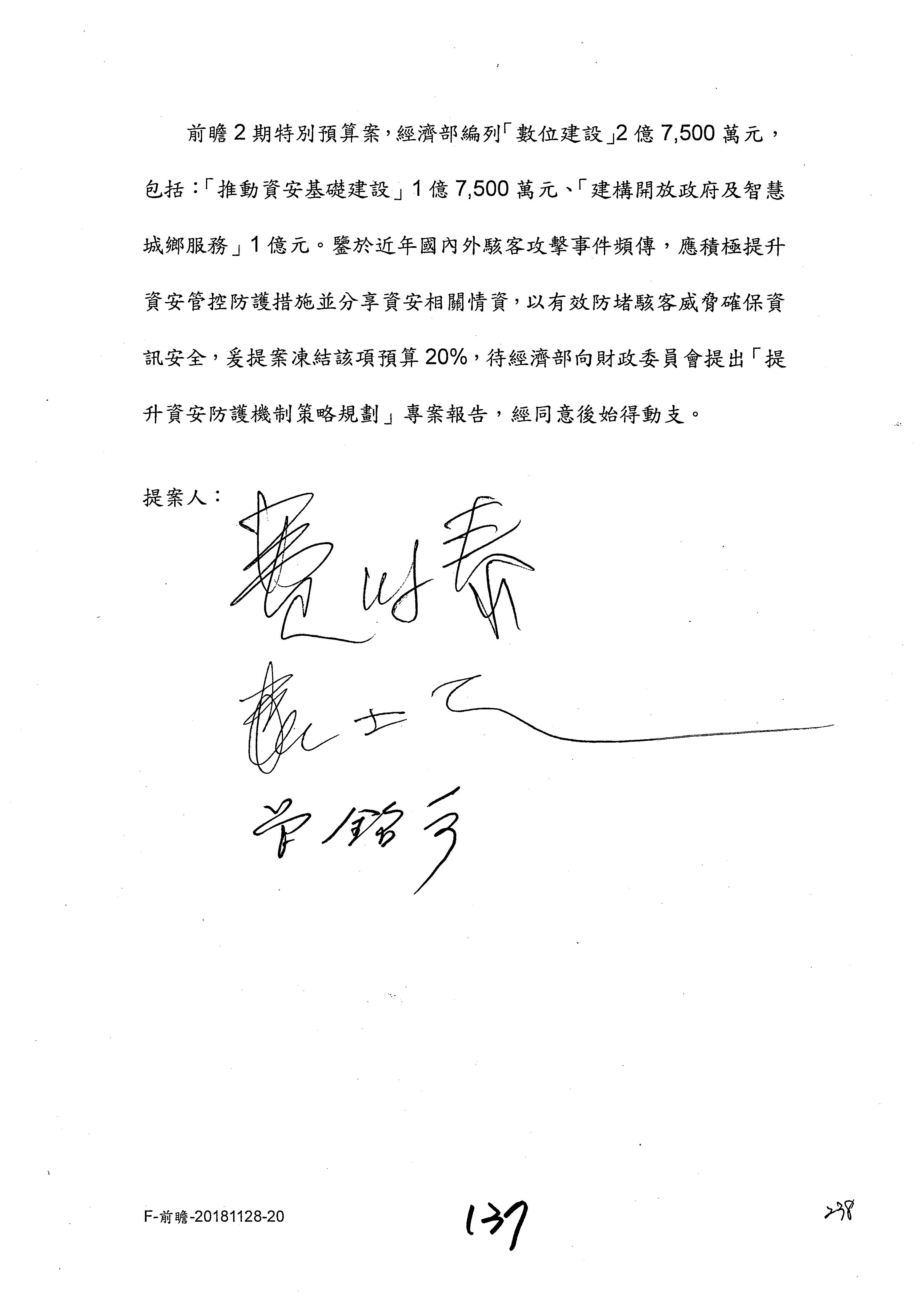 第174案刪減1億1,150萬6,000元,科目自行調整。第175案刪減3,000萬元,科目自行調整。