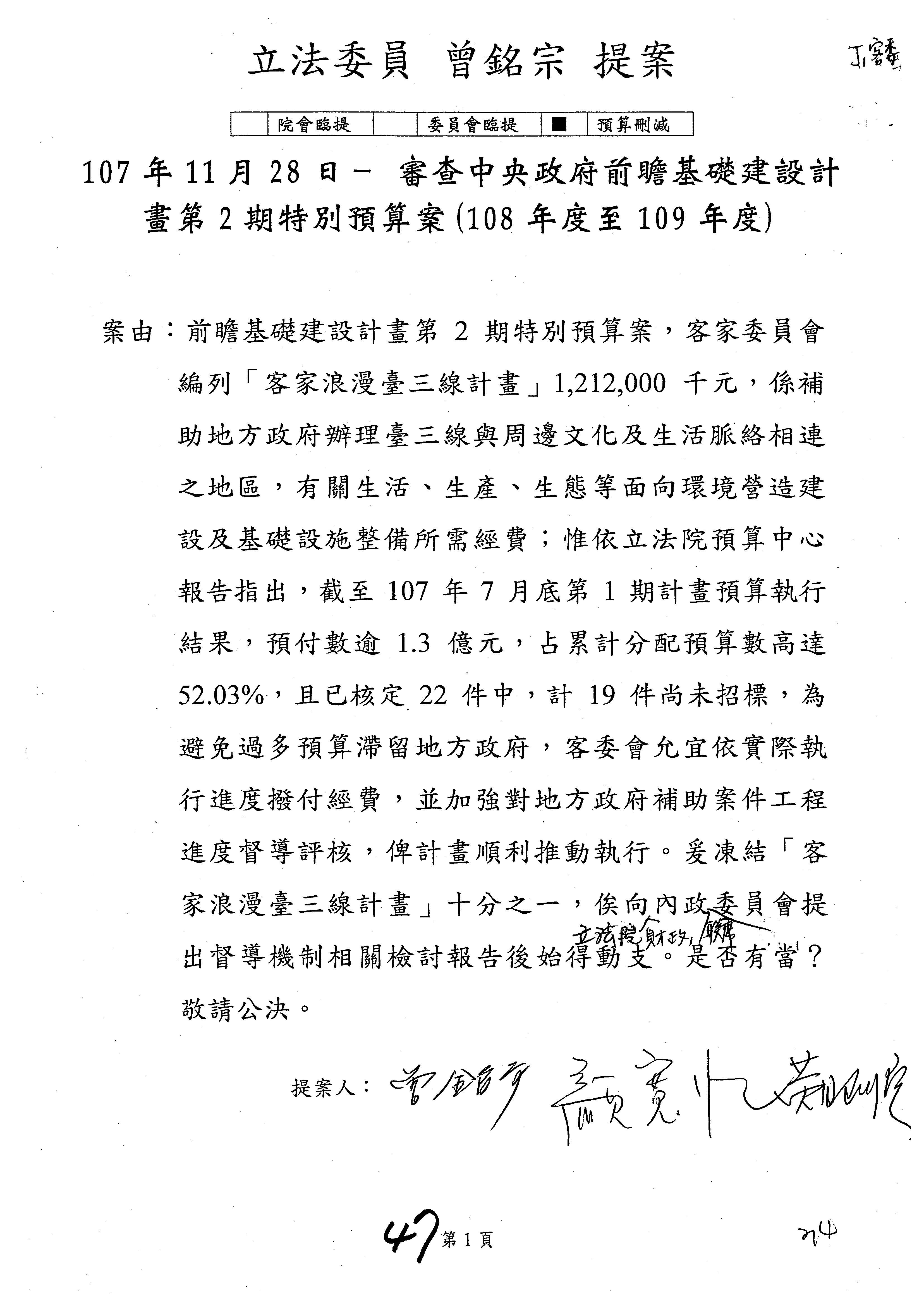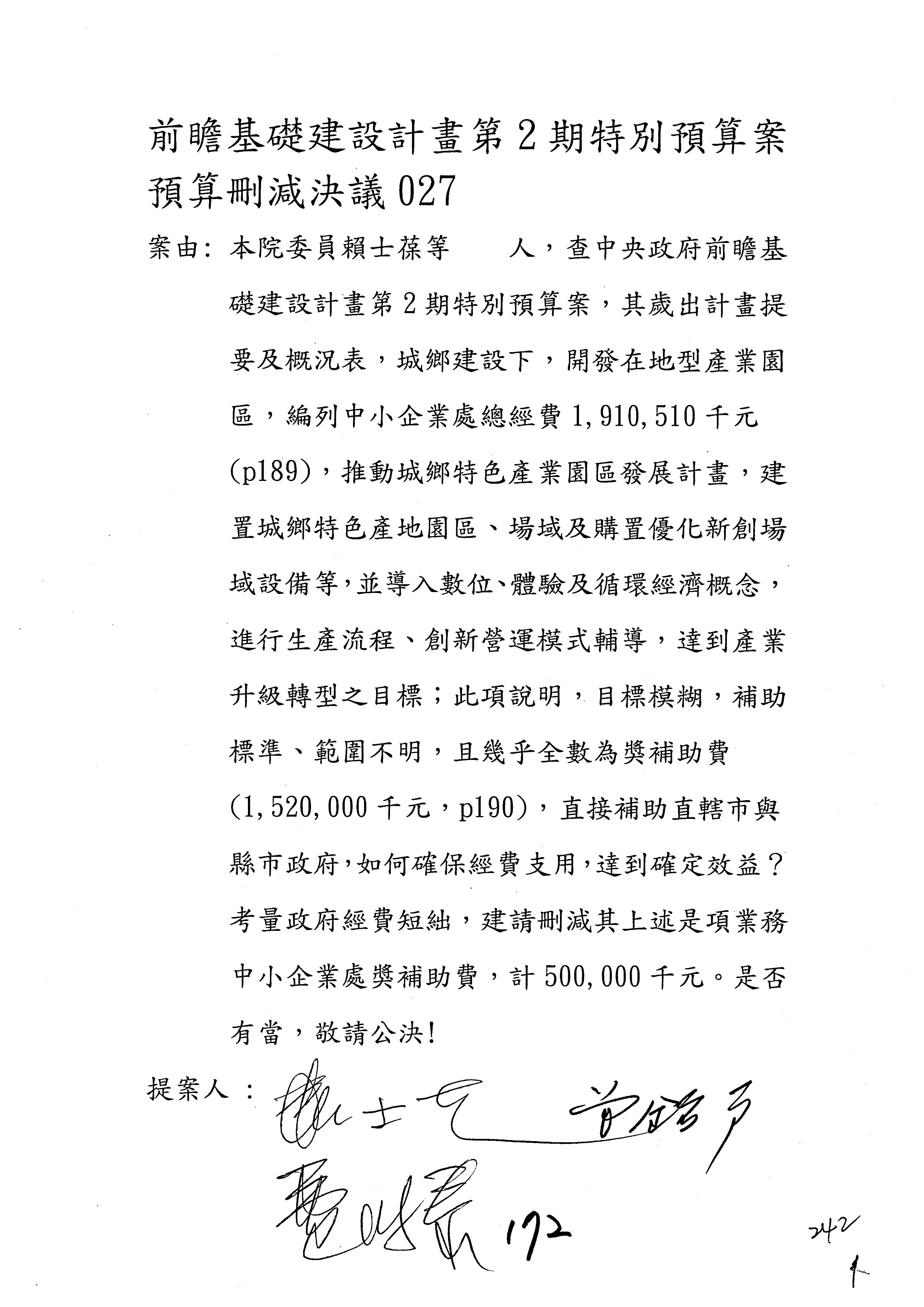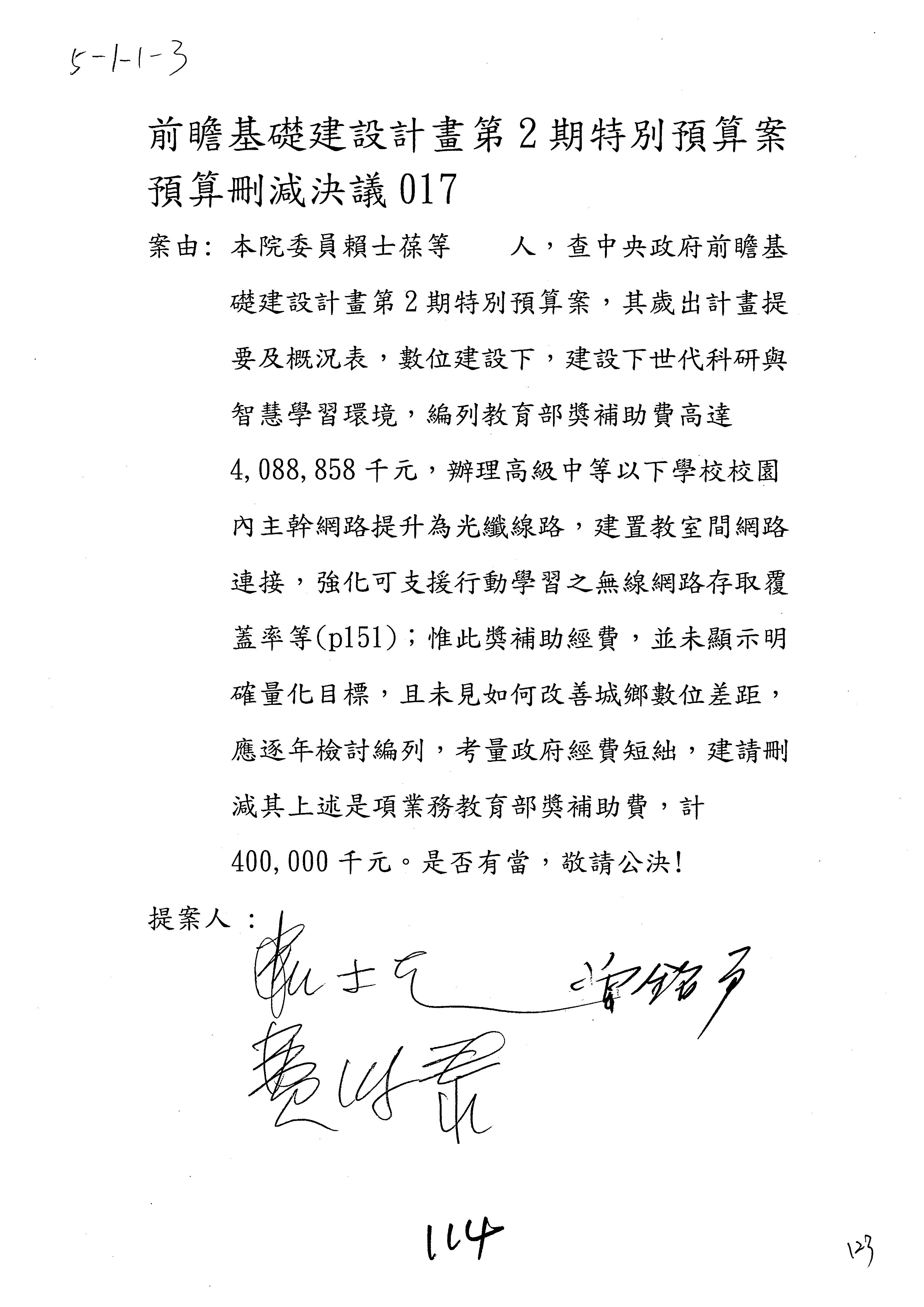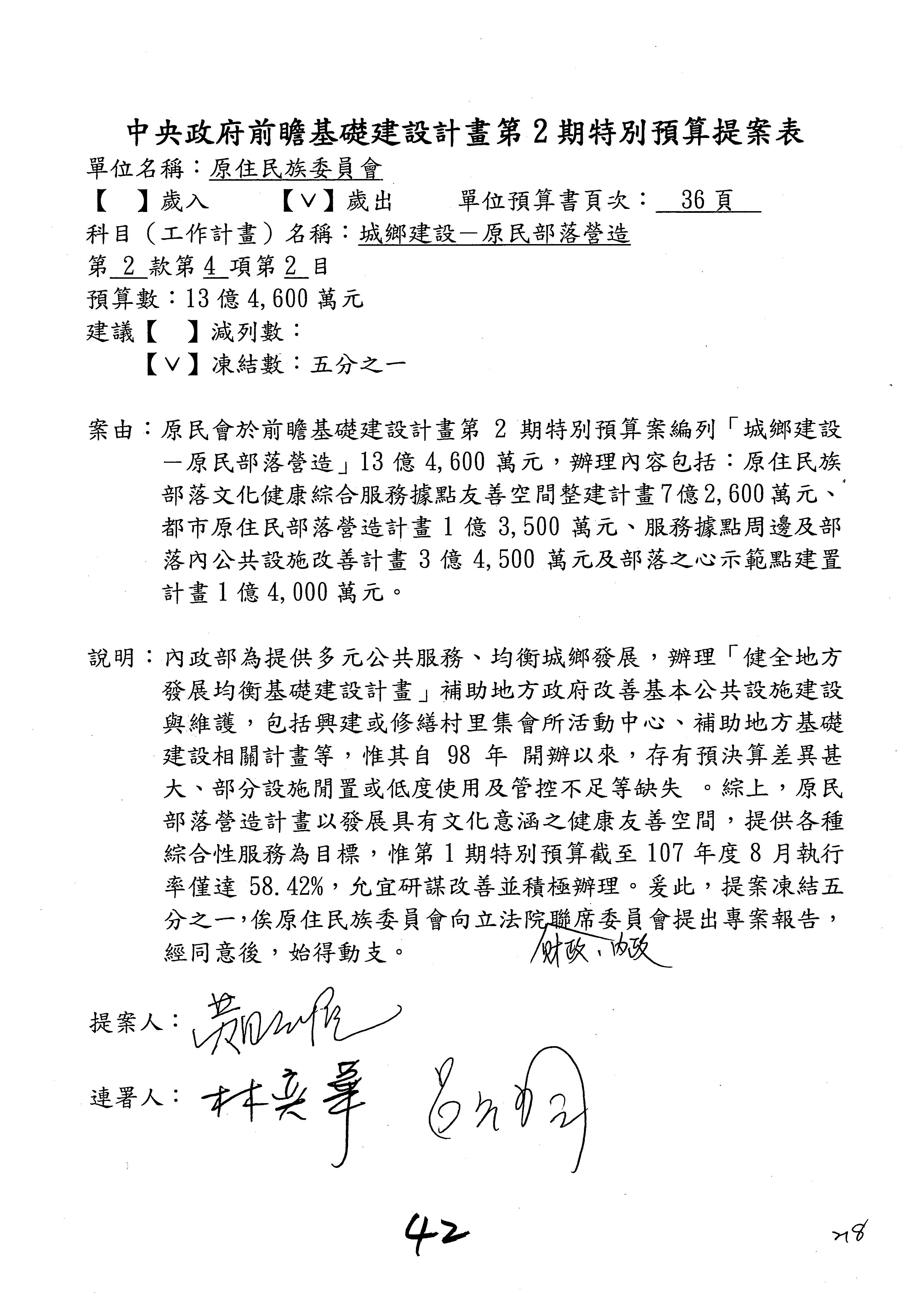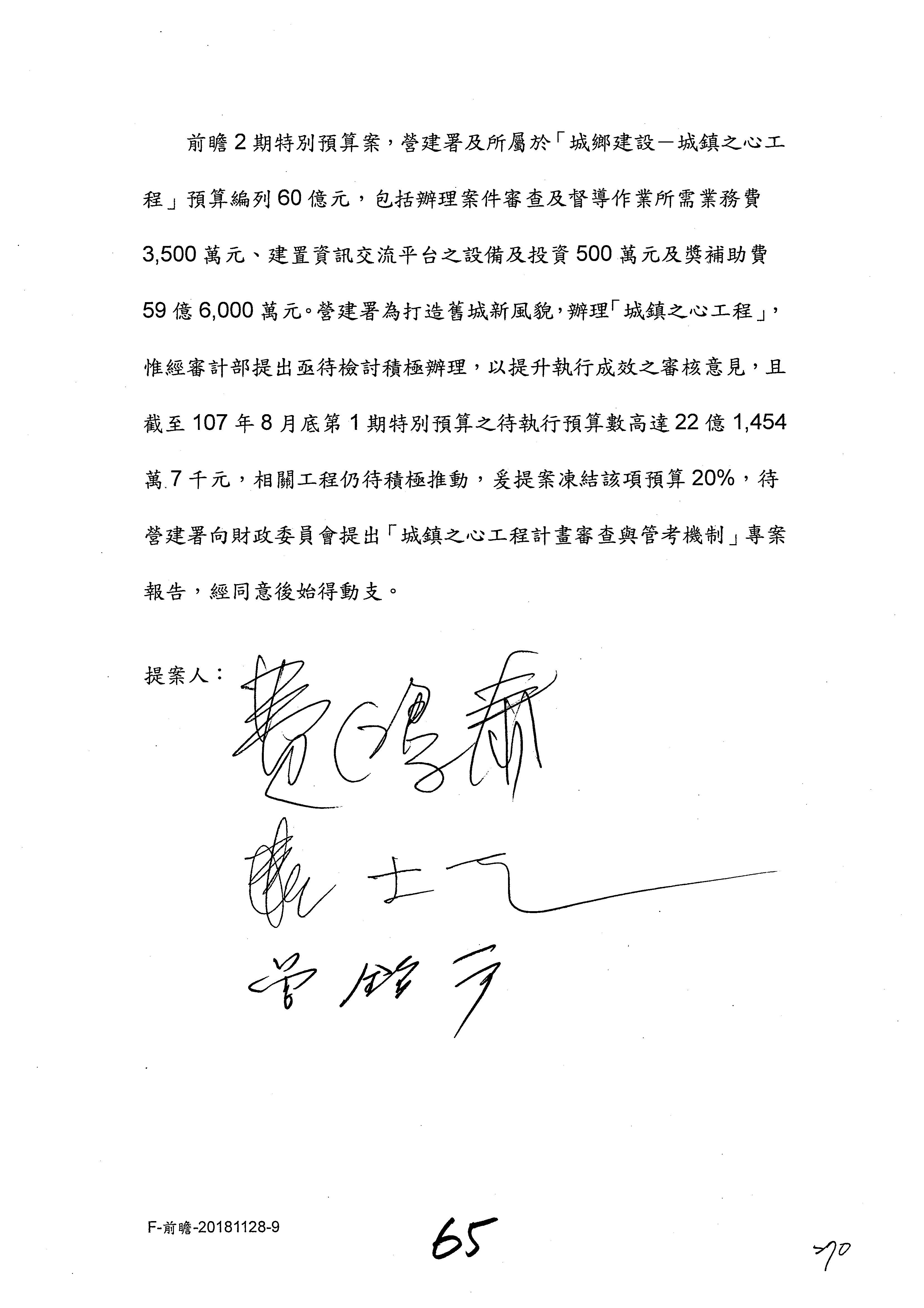 第174案刪減1億1,150萬6,000元,科目自行調整。第175案刪減3,000萬元,科目自行調整。