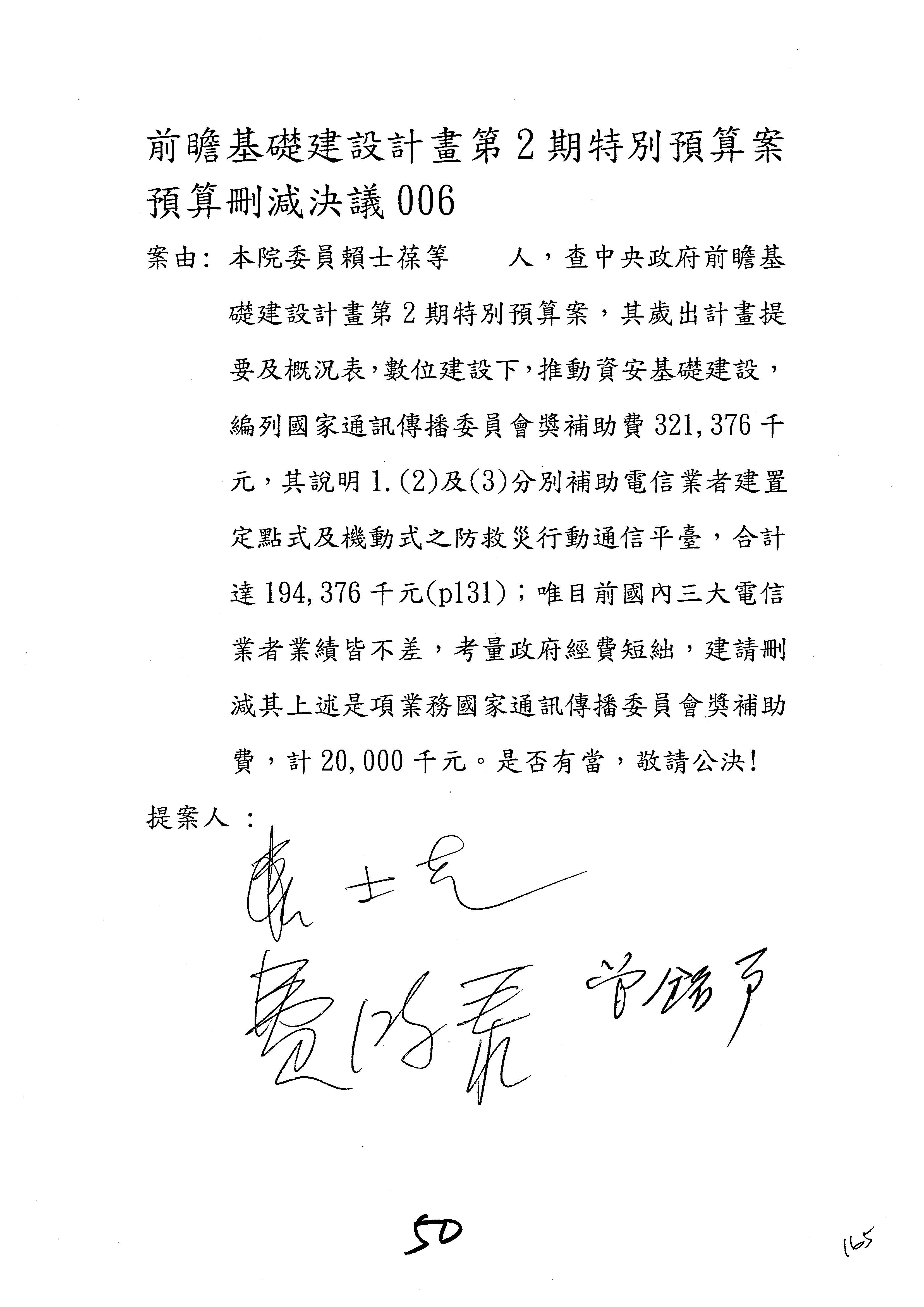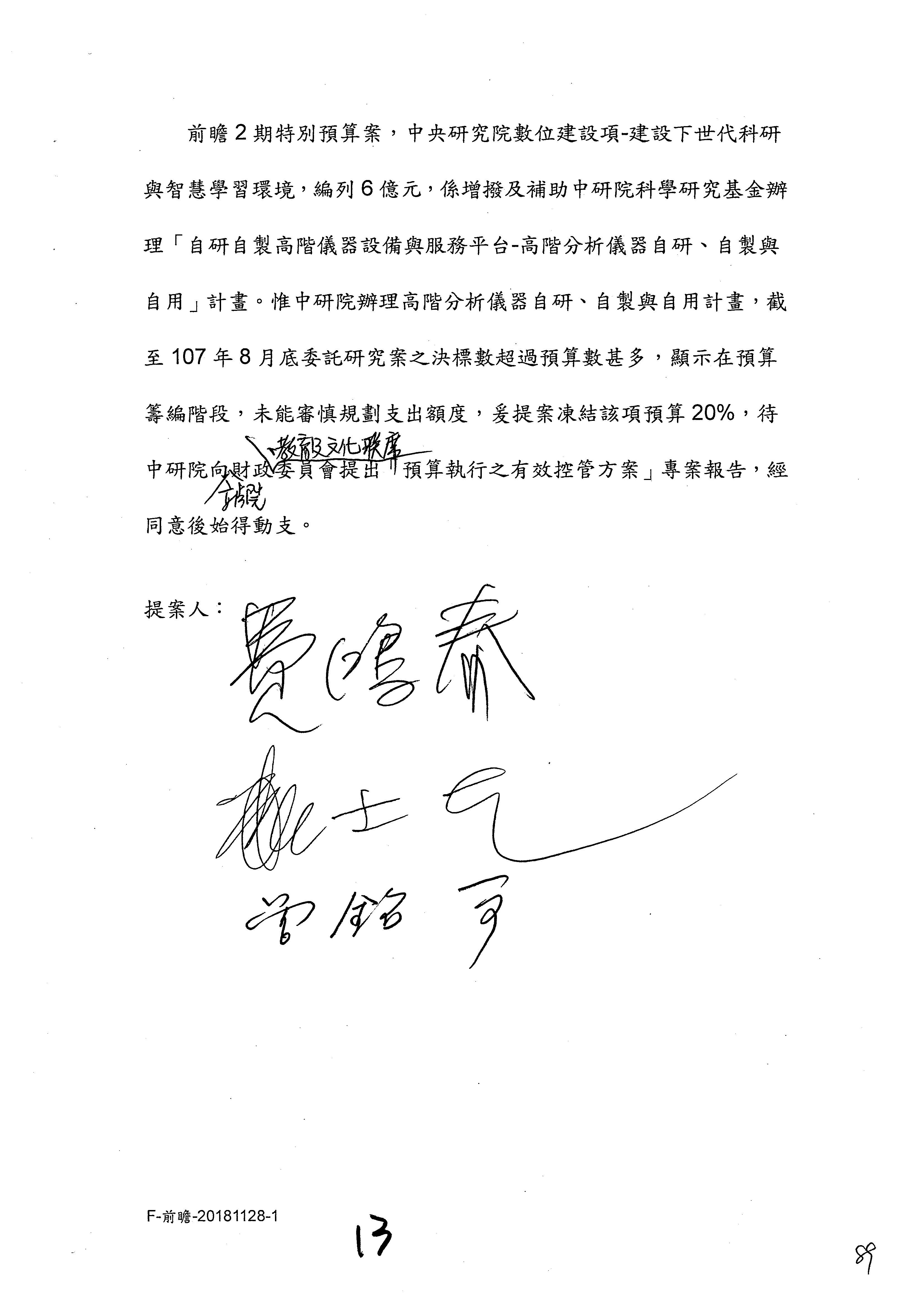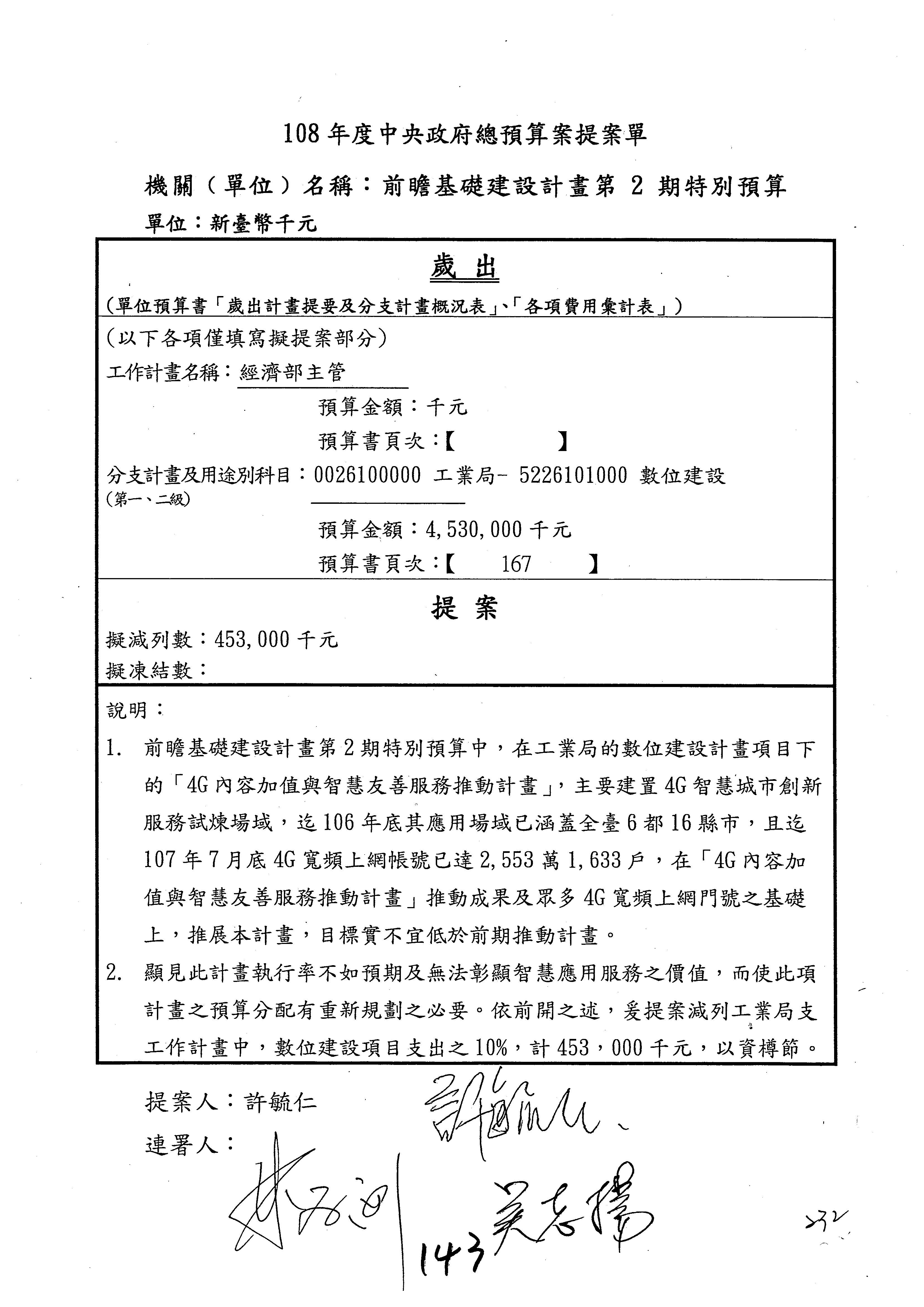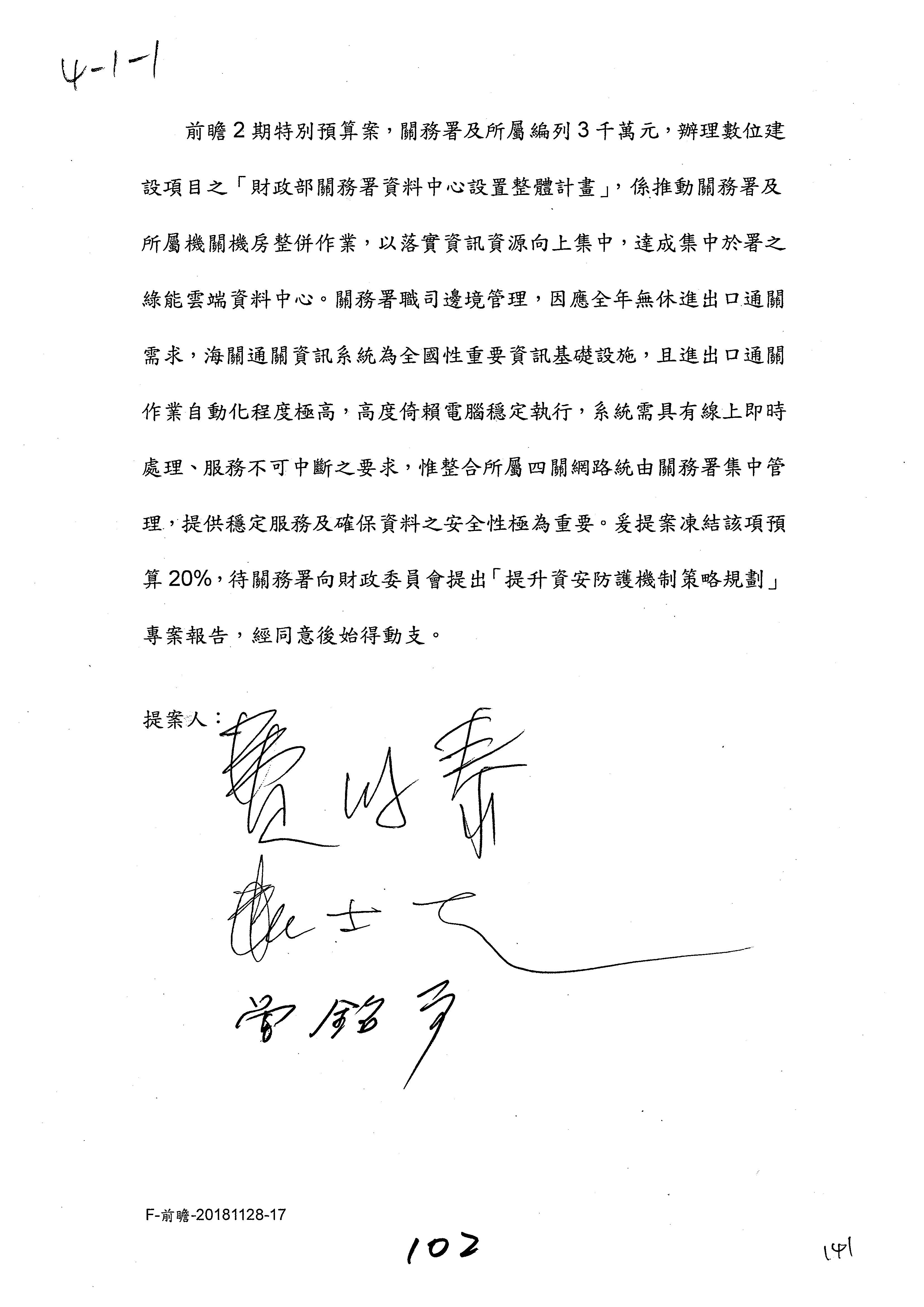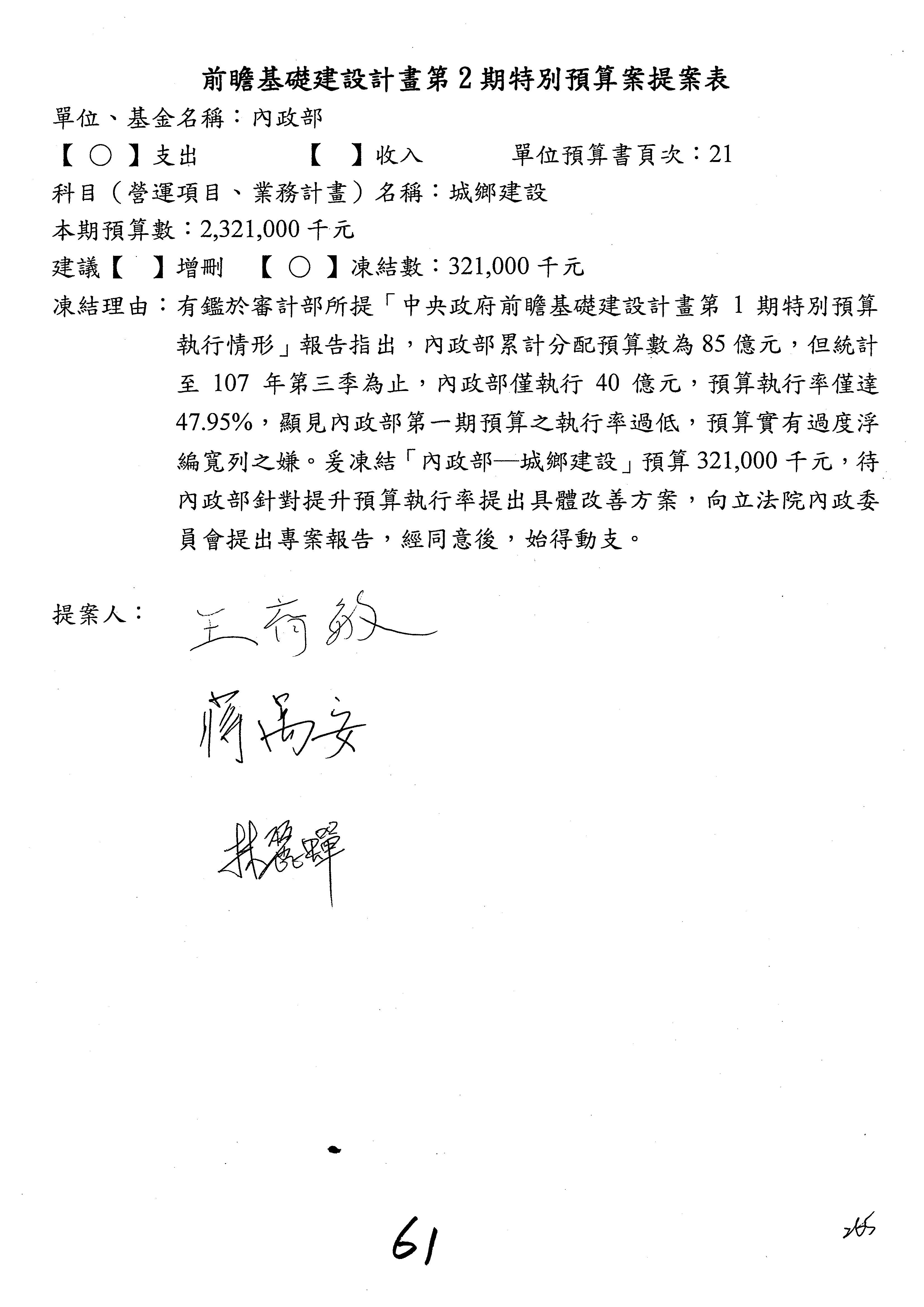 第174案刪減1億1,150萬6,000元,科目自行調整。第175案刪減3,000萬元,科目自行調整。