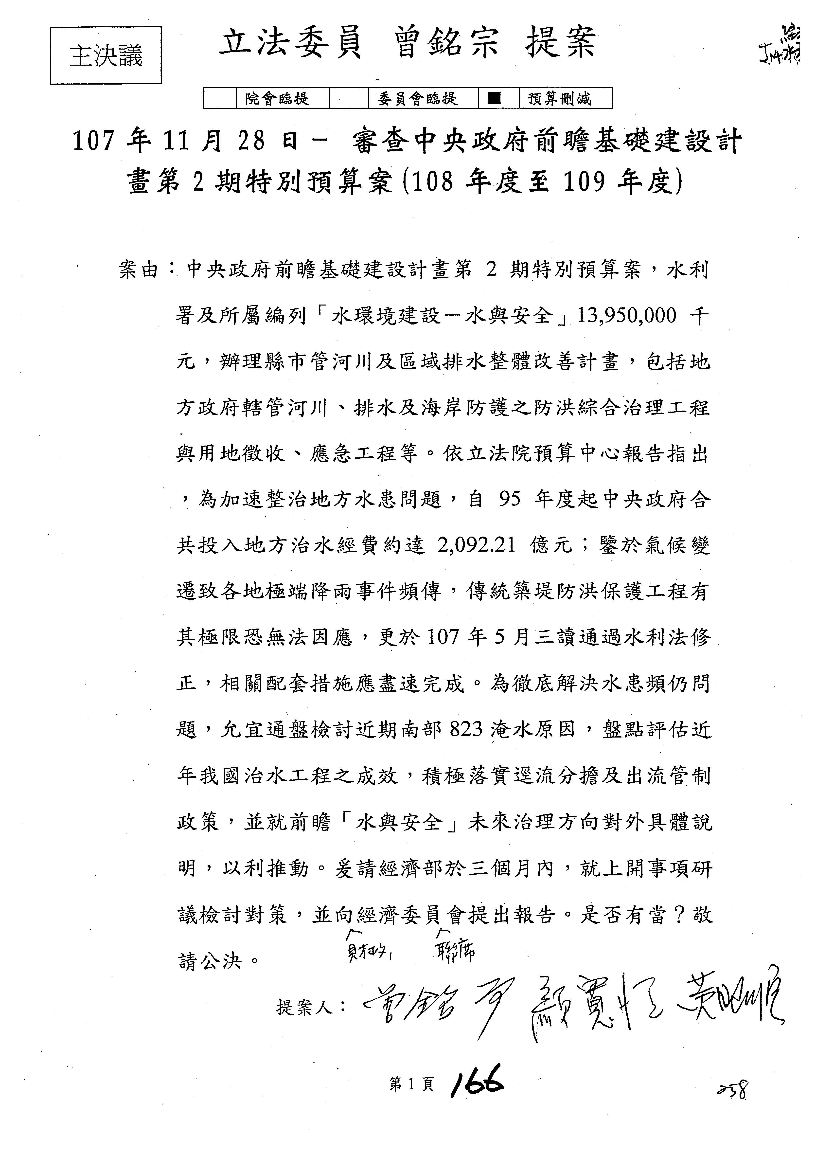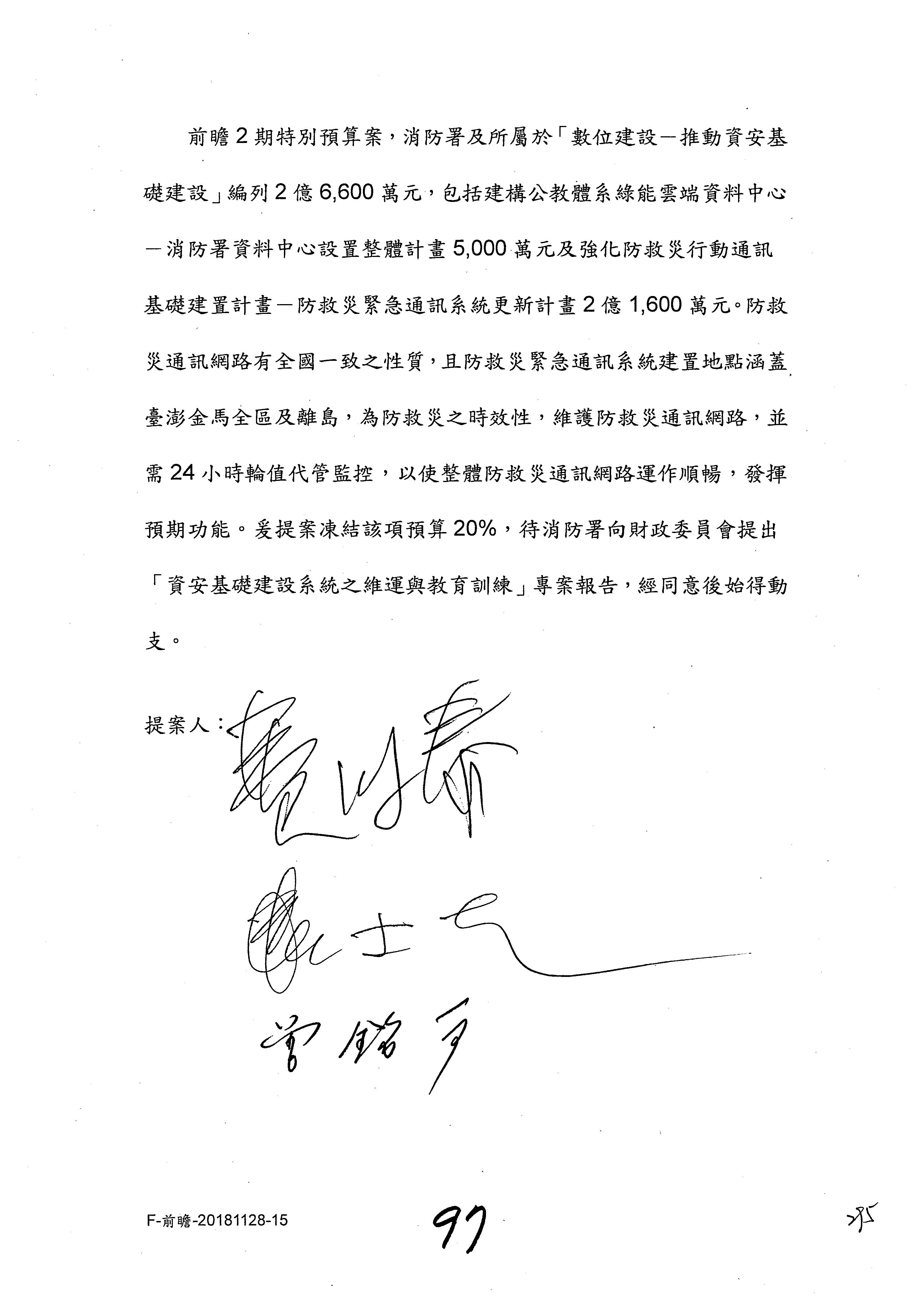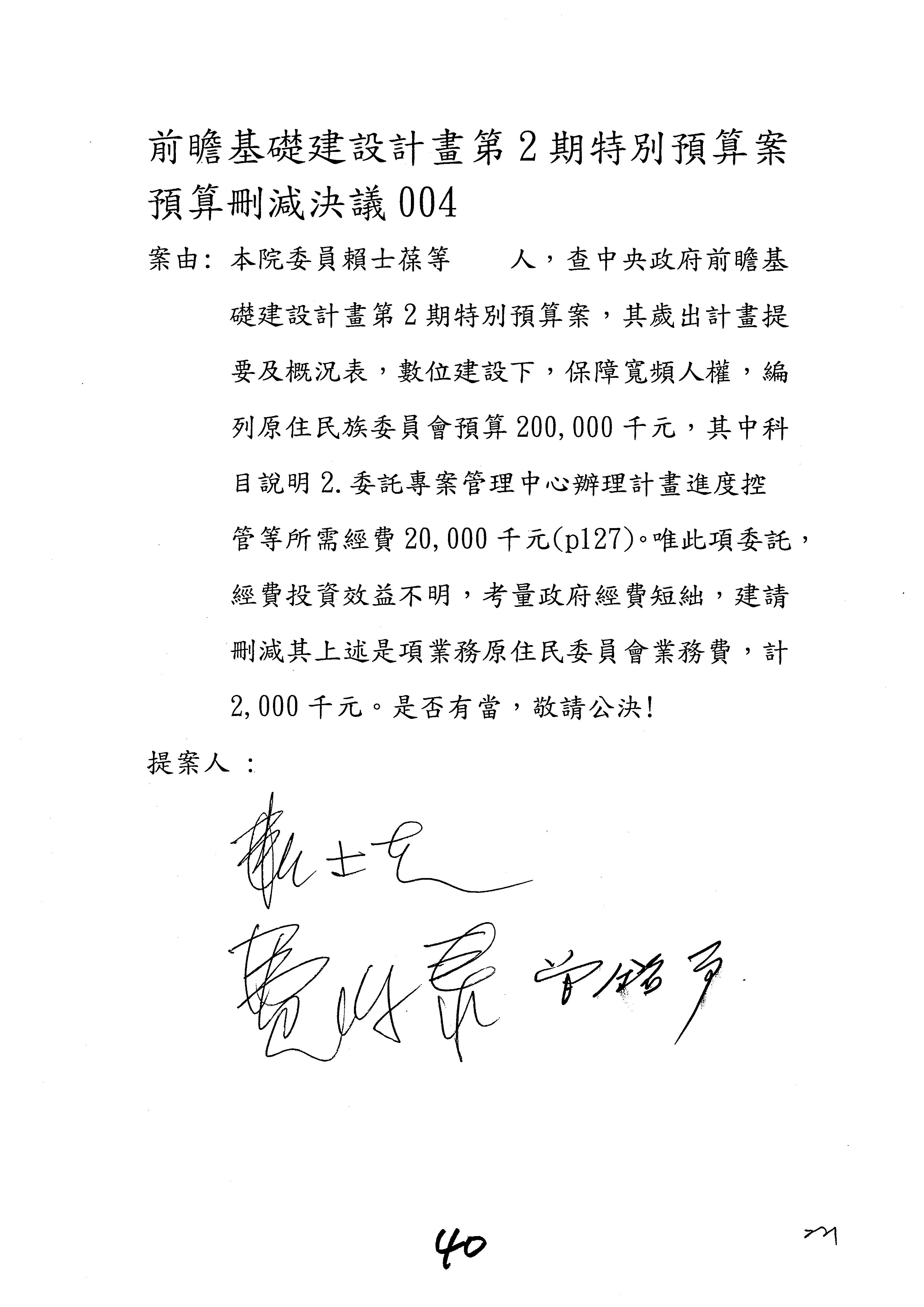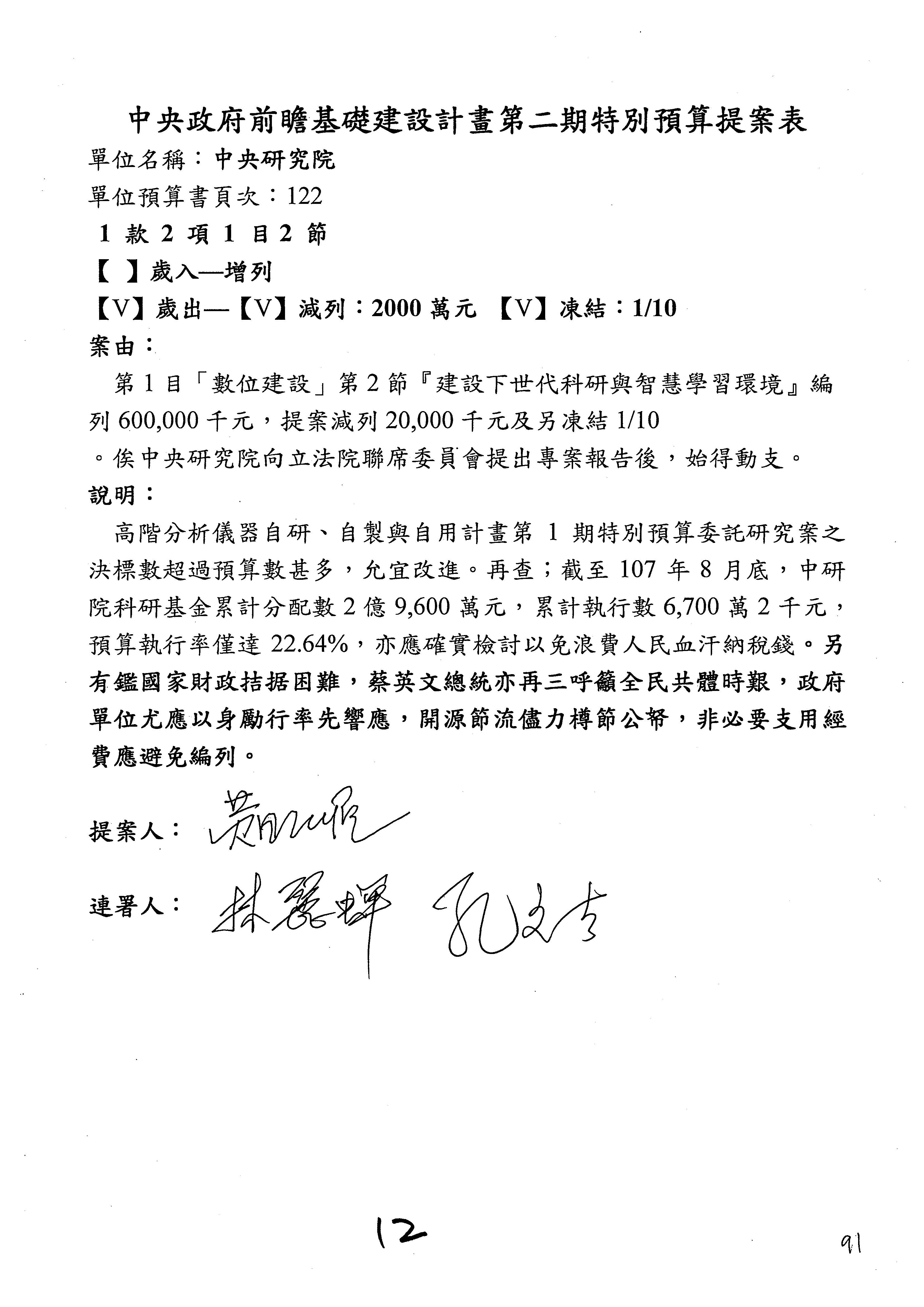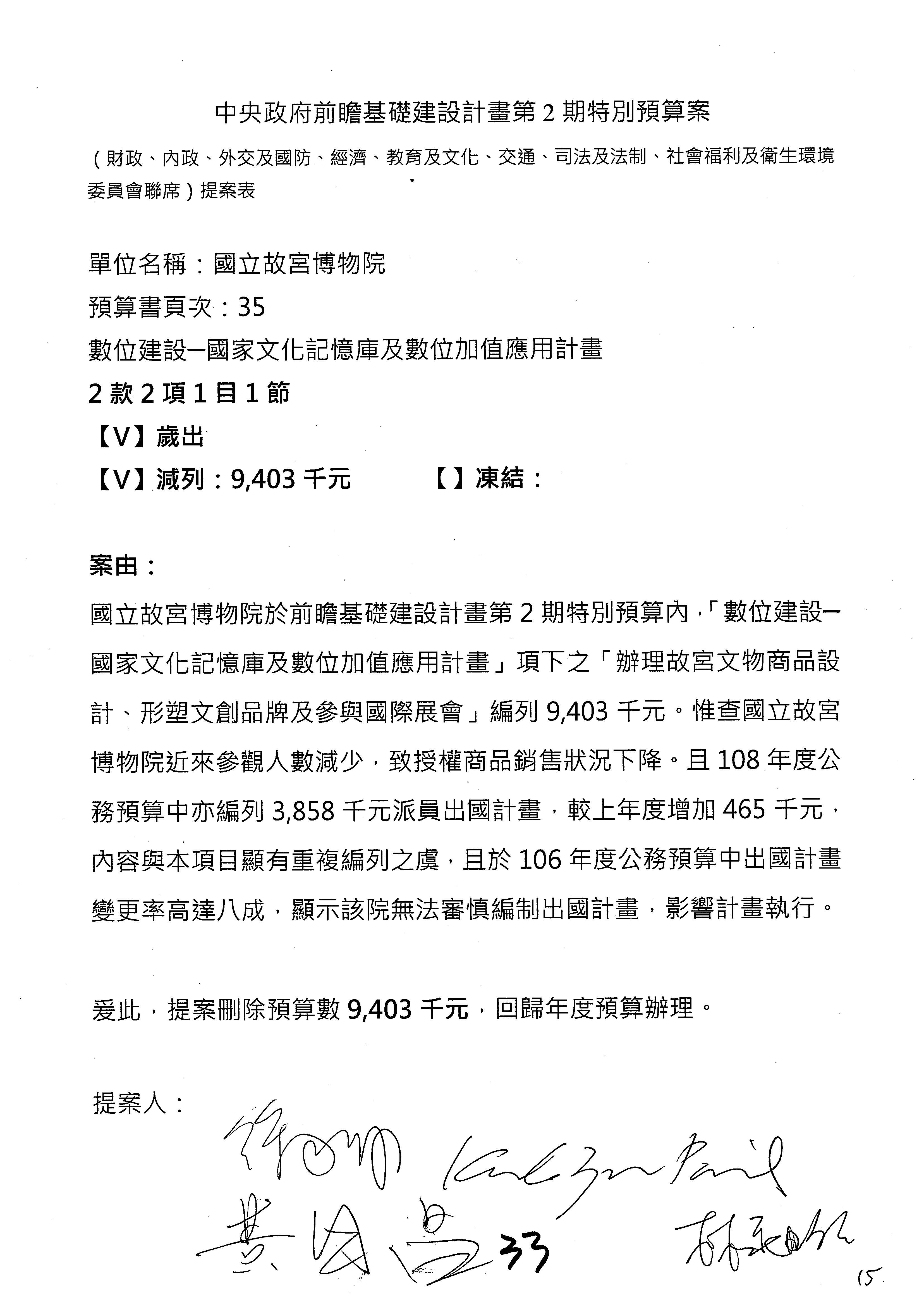 第174案刪減1億1,150萬6,000元,科目自行調整。第175案刪減3,000萬元,科目自行調整。