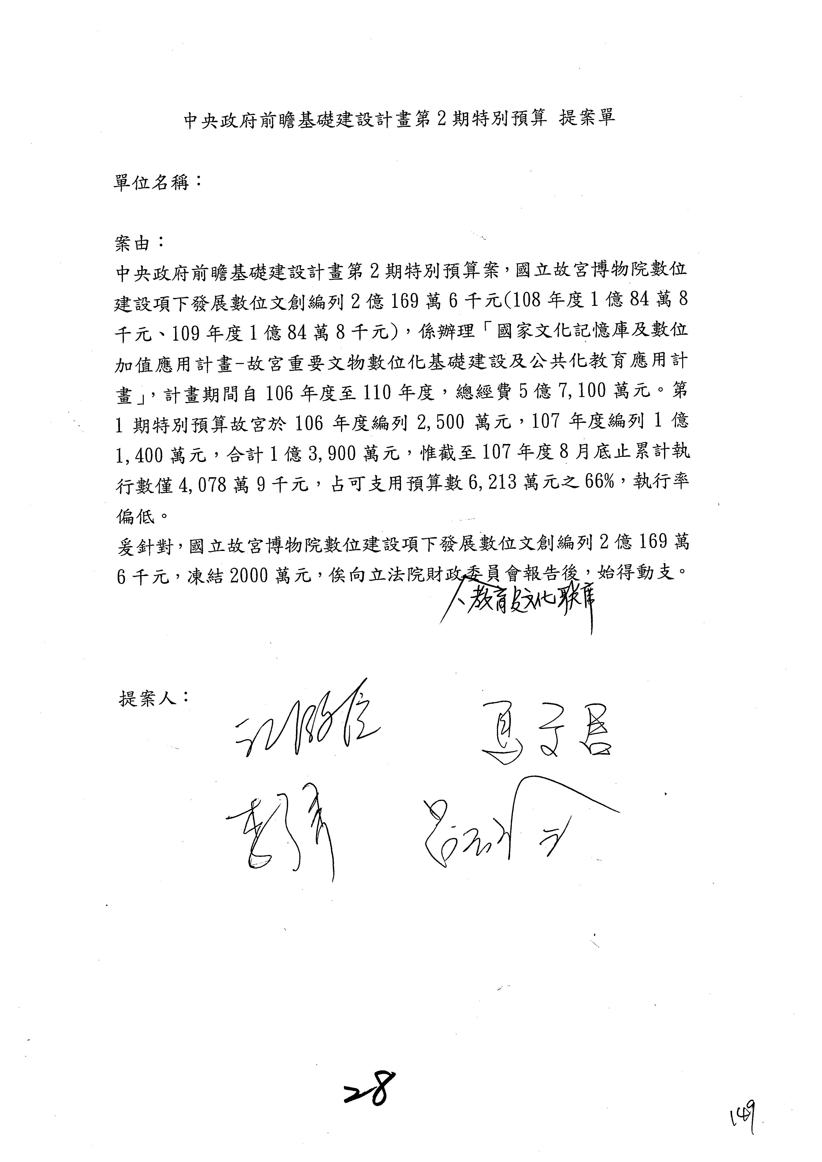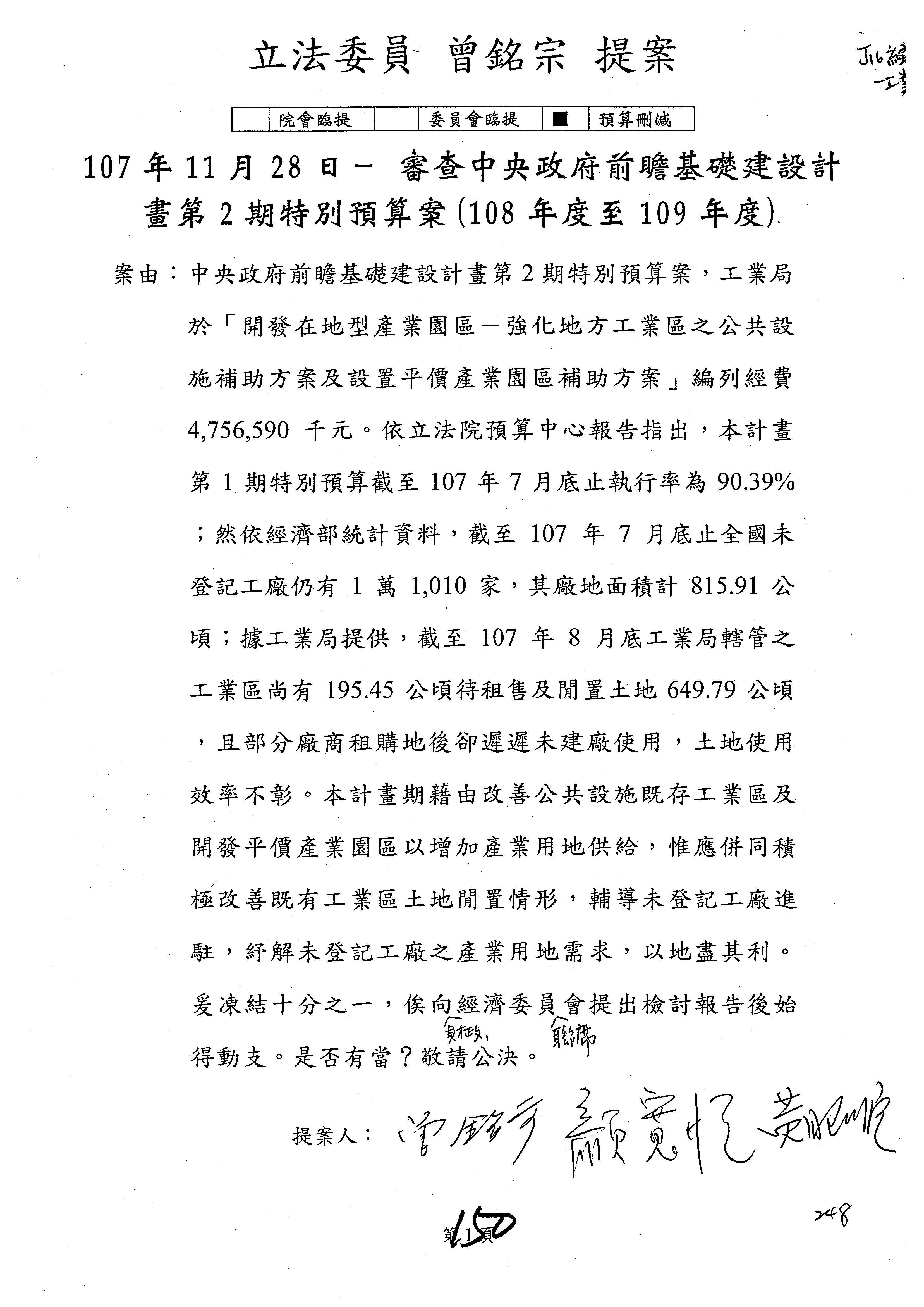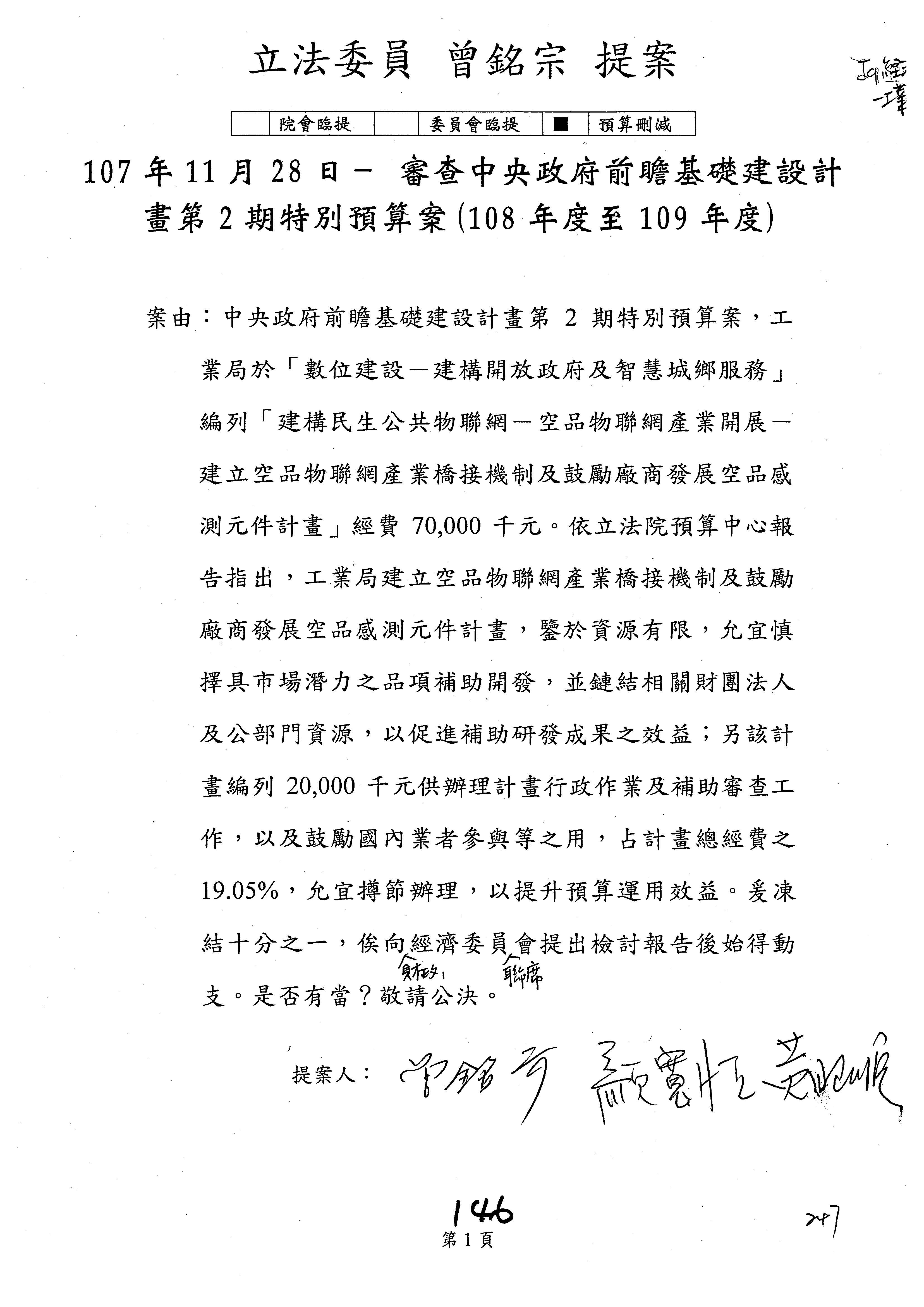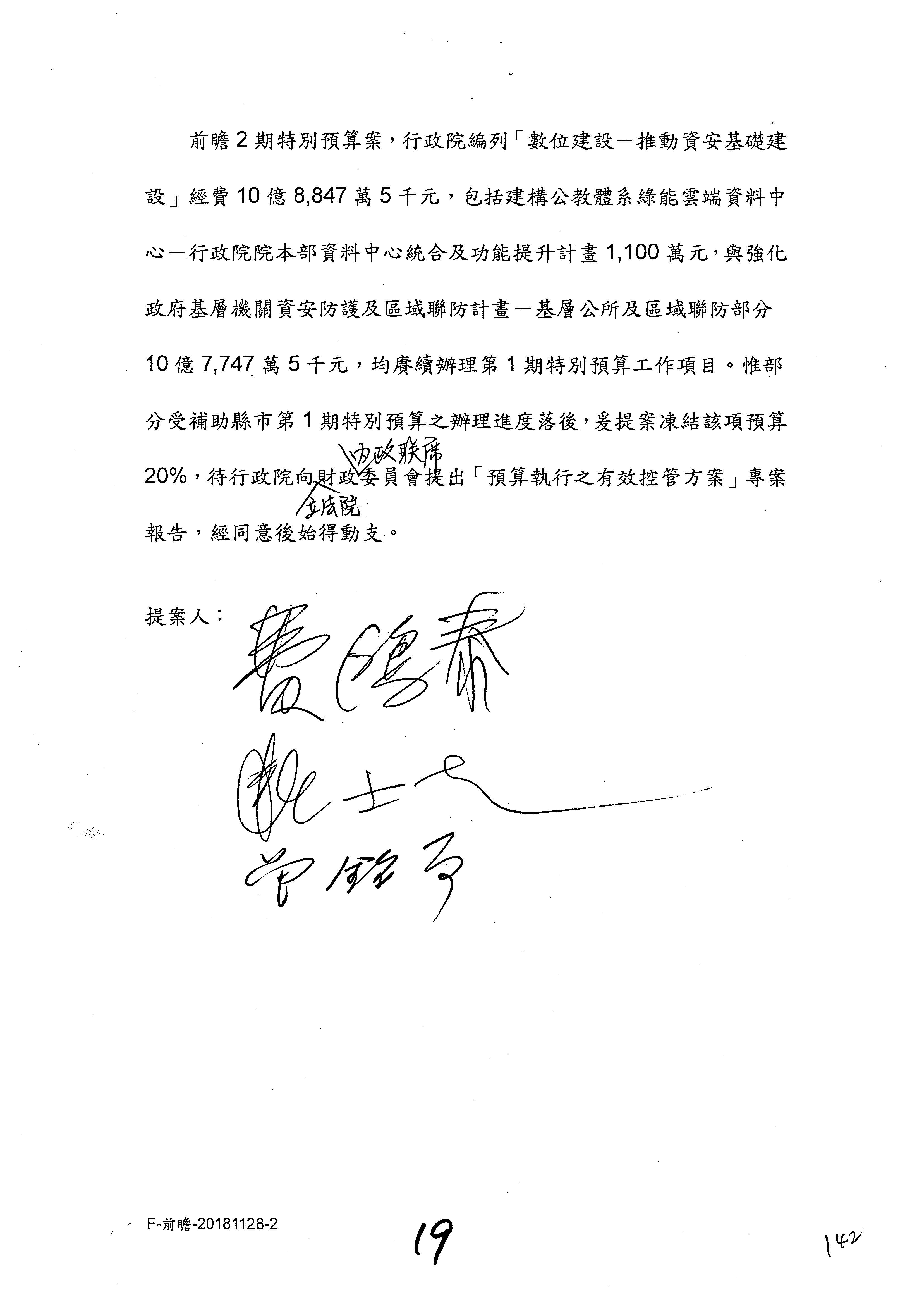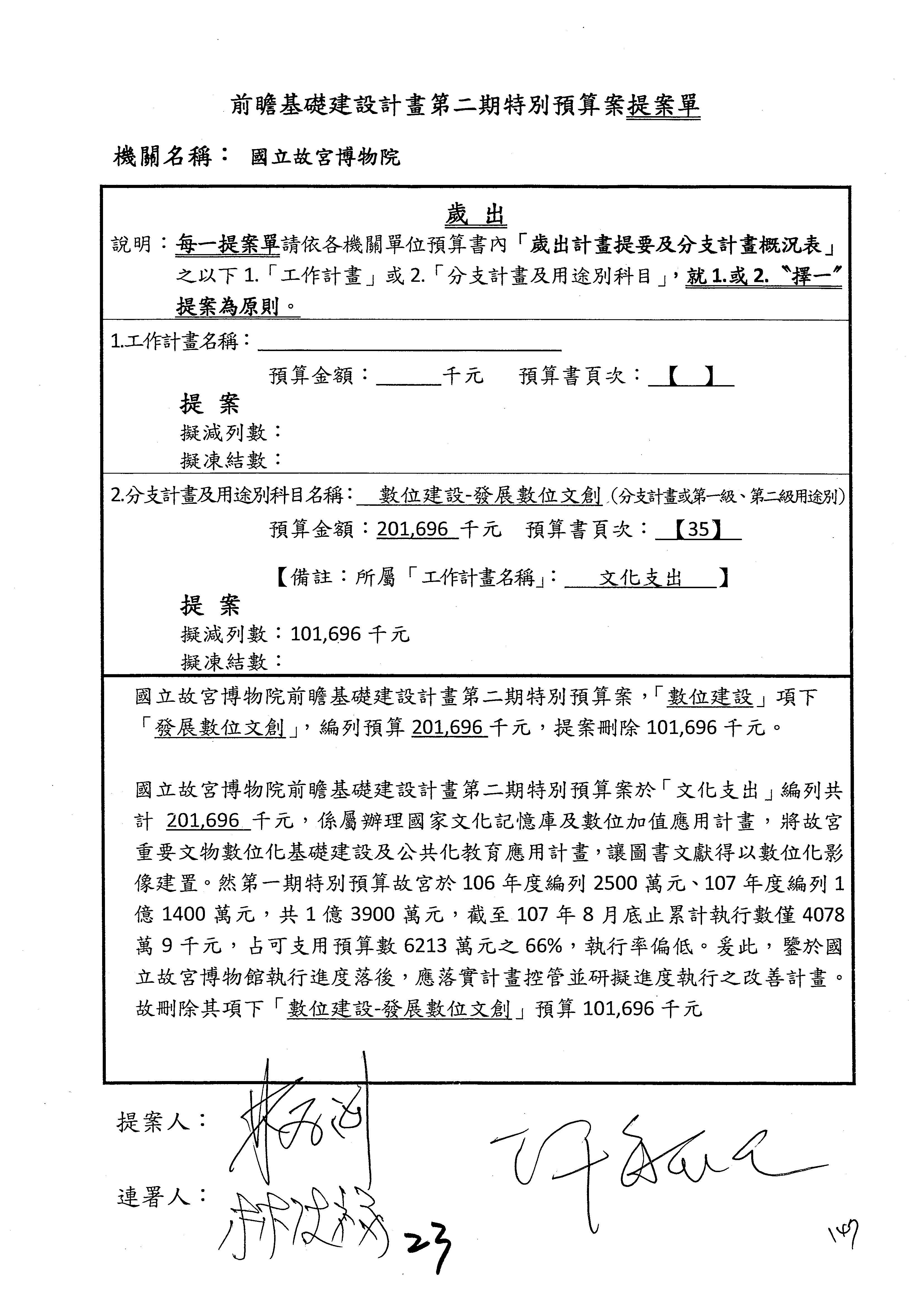 第174案刪減1億1,150萬6,000元,科目自行調整。第175案刪減3,000萬元,科目自行調整。