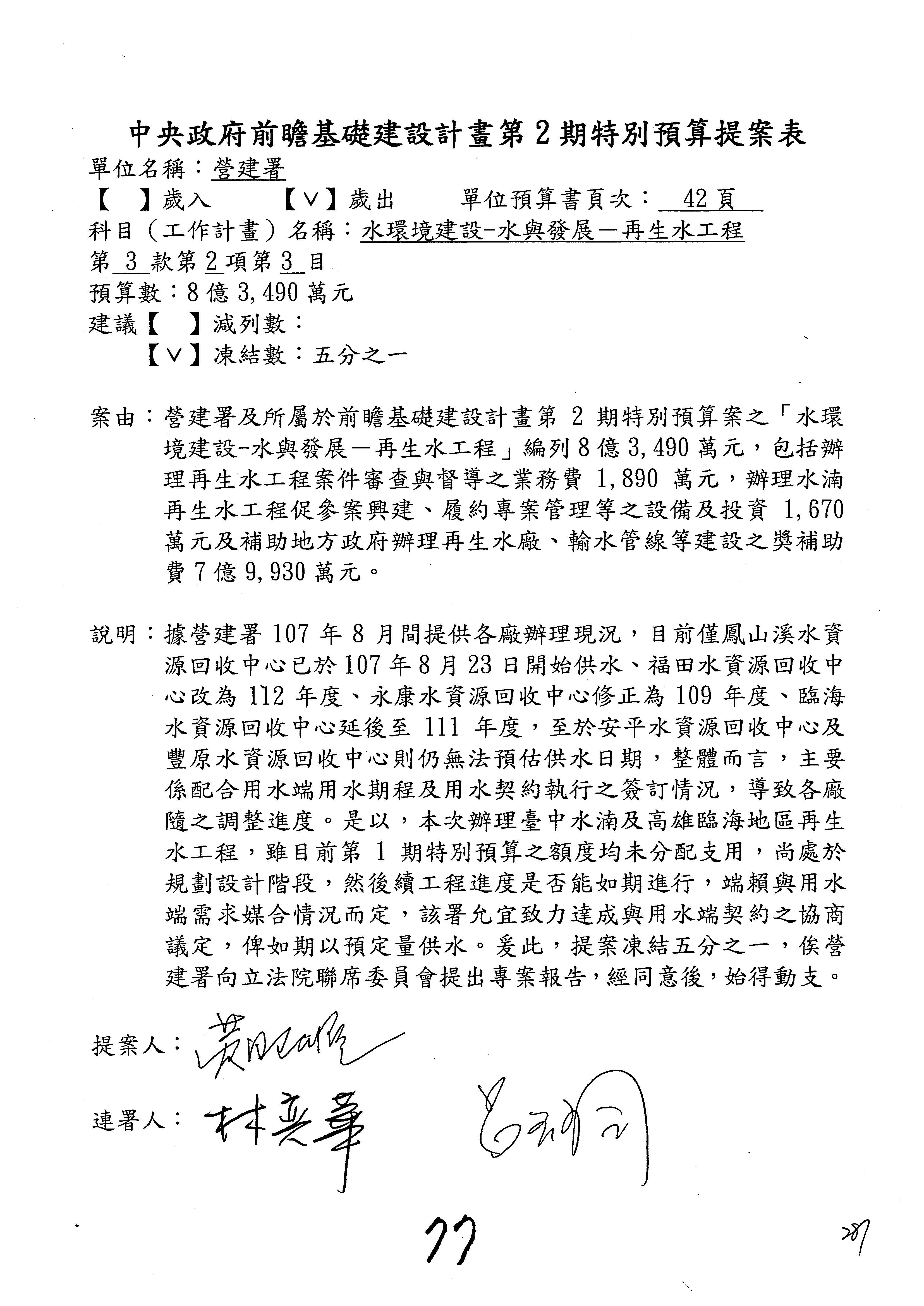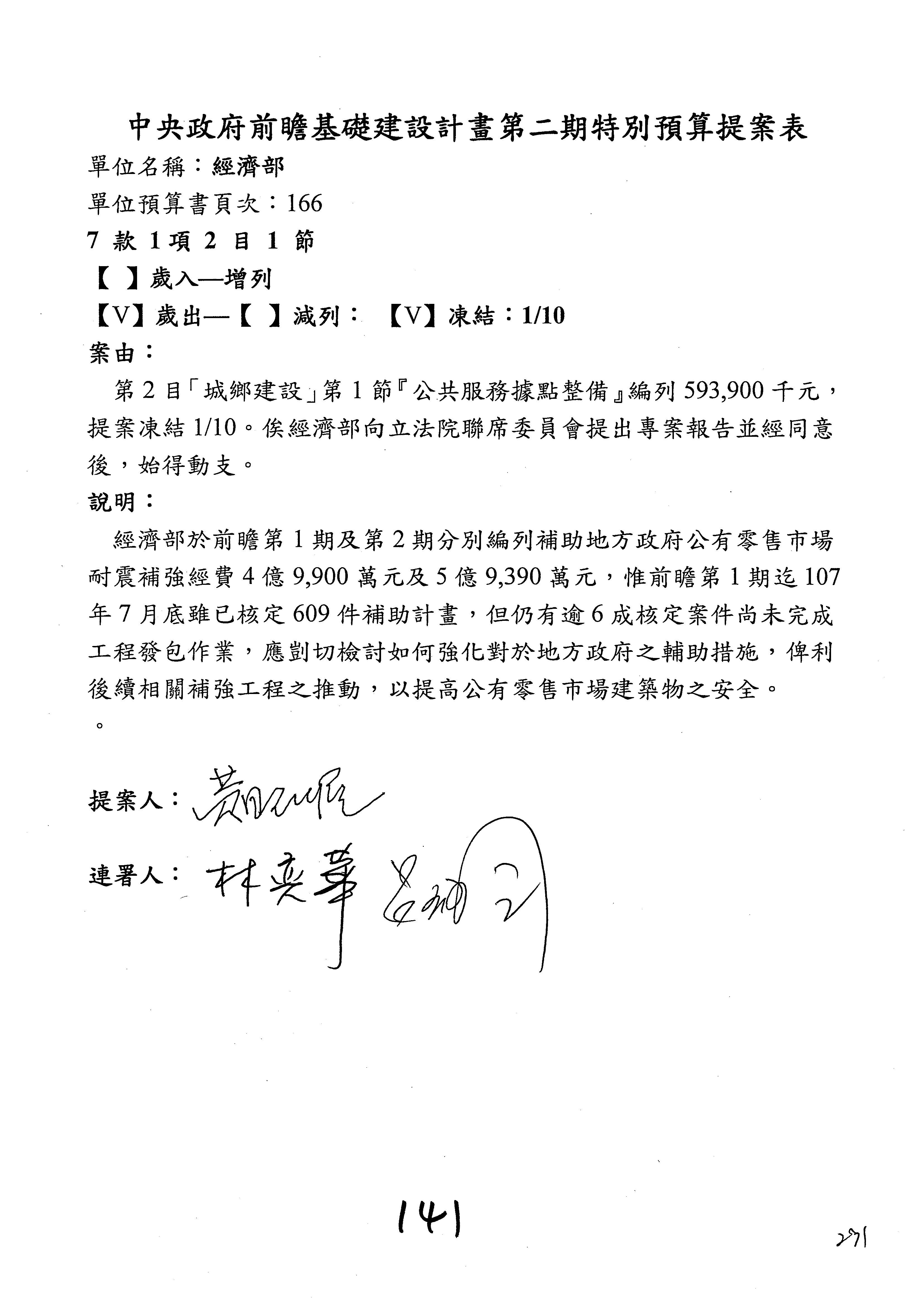 第139案至第141案凍結十分之一,專案報告,以第140案為主。