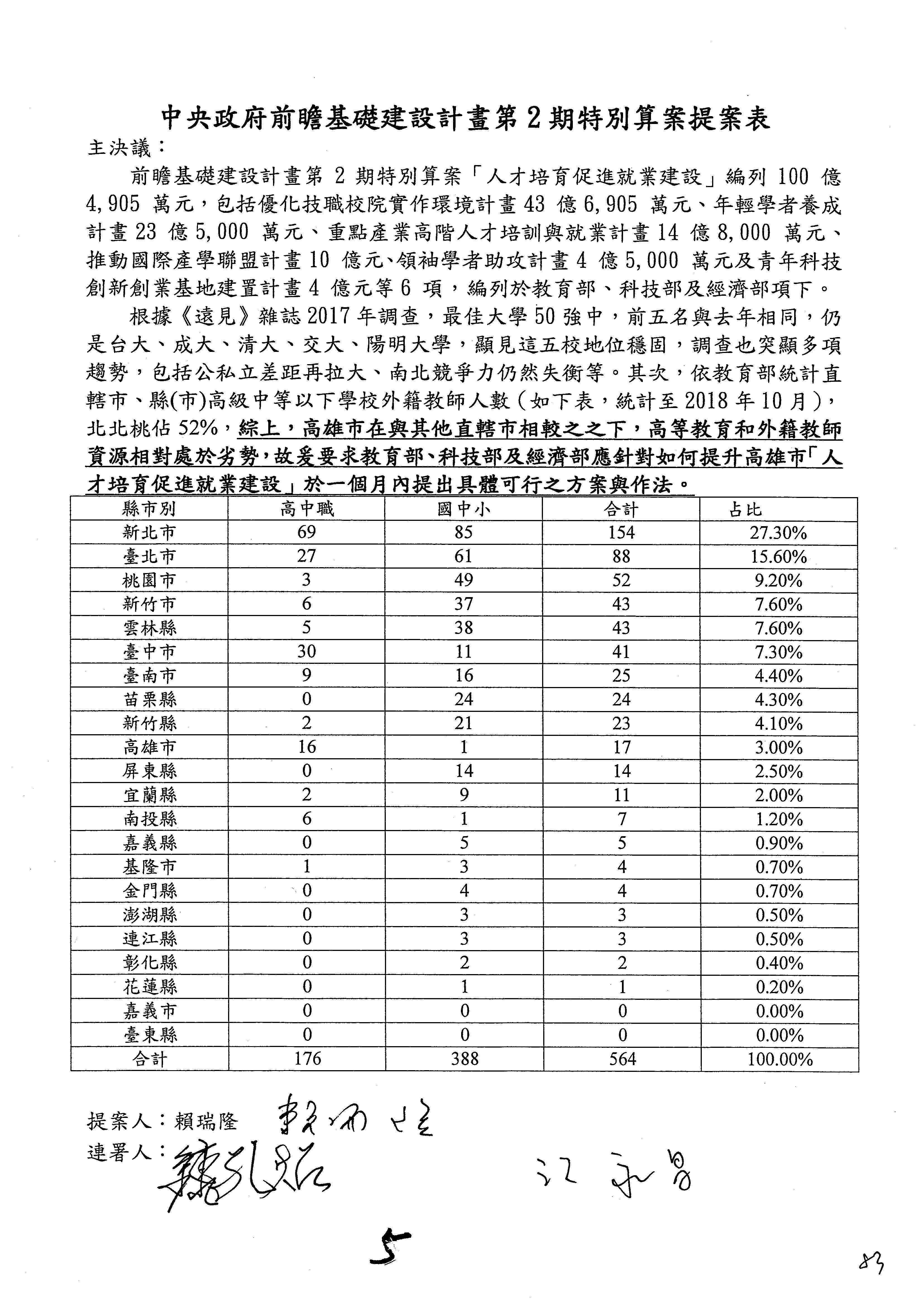 提案人:郭正亮 曾銘宗 賴士葆 費鴻泰 施義芳 江永昌