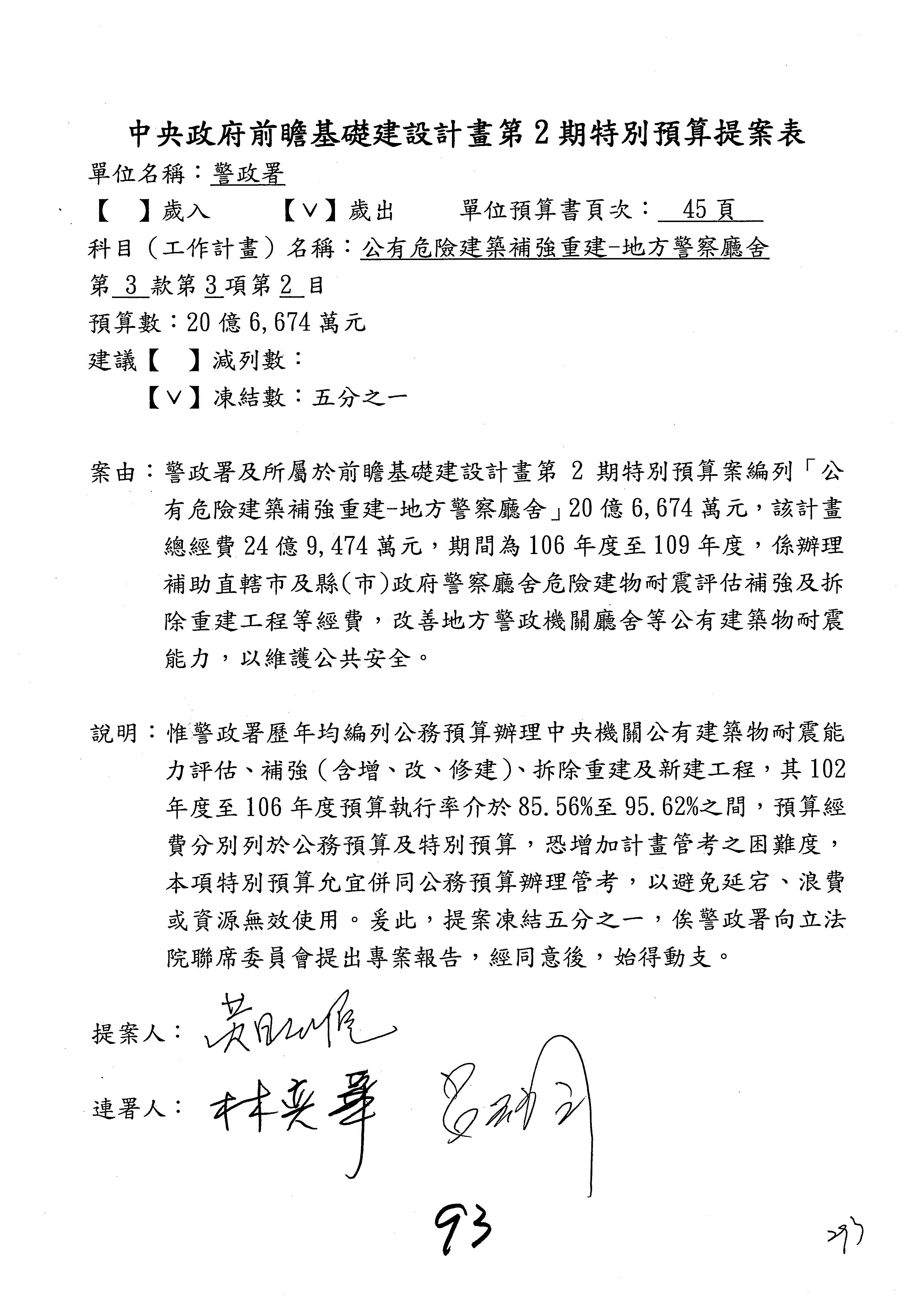 徐委員永明:真的嗎?我的第94案是關心執行率太差的問題。