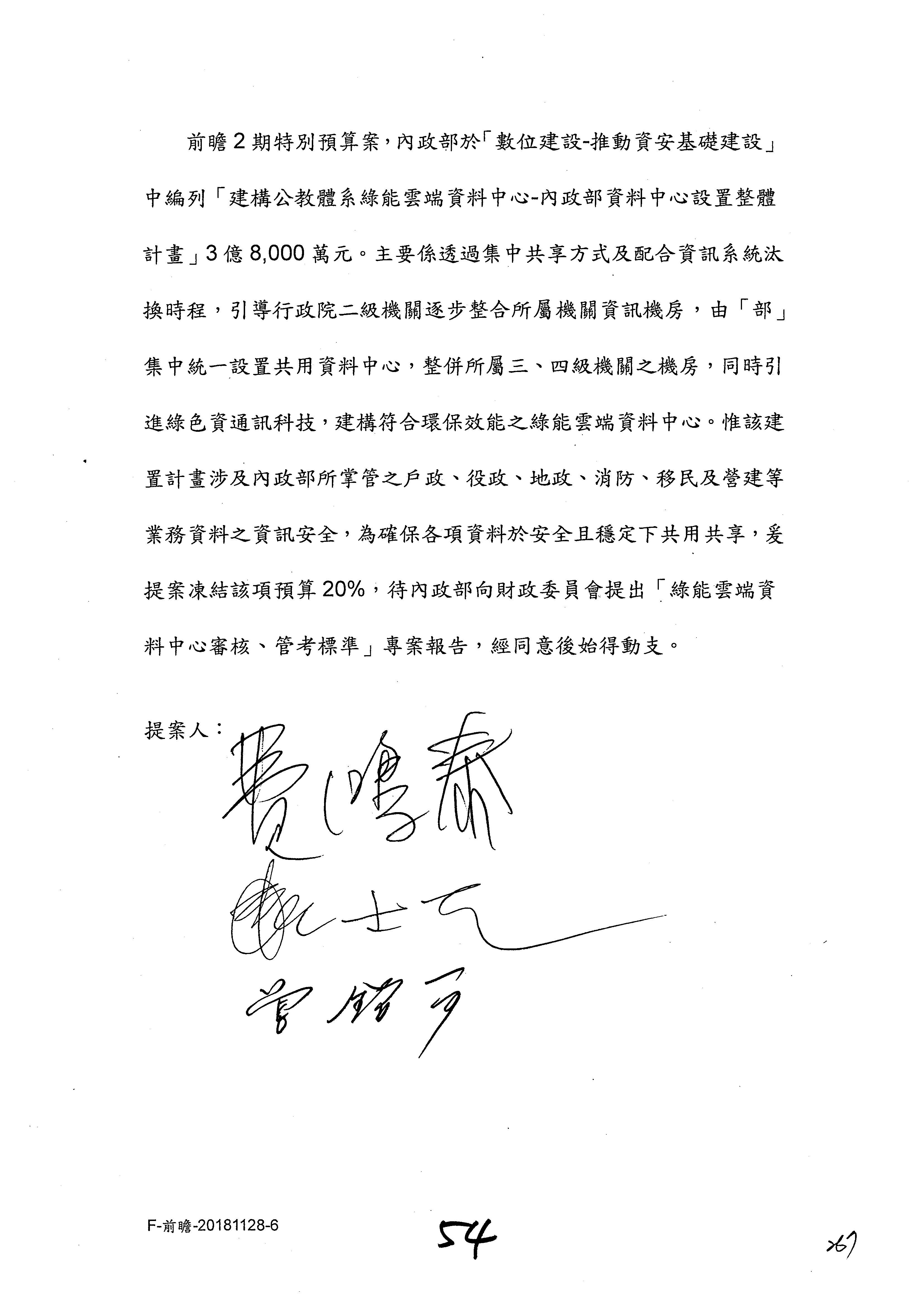 主席:再來回頭處理第54至第57案有關資安基礎建設的部分。