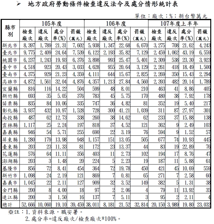 108年度勞動部及所屬預算書未如同歷年預算書編撰年度關鍵績效指標,亦無前年度之績效指標分析,故立法院無法了解108年度勞動部之重點施政所需預算,以及無法檢視前年度預算執行及施政績效。爰要求勞動部於108年2月底前,提供107年「罰款及賠償收入」項下「罰金罰鍰」執行及績效,送交立法院社會福利及衛生環境委員會。