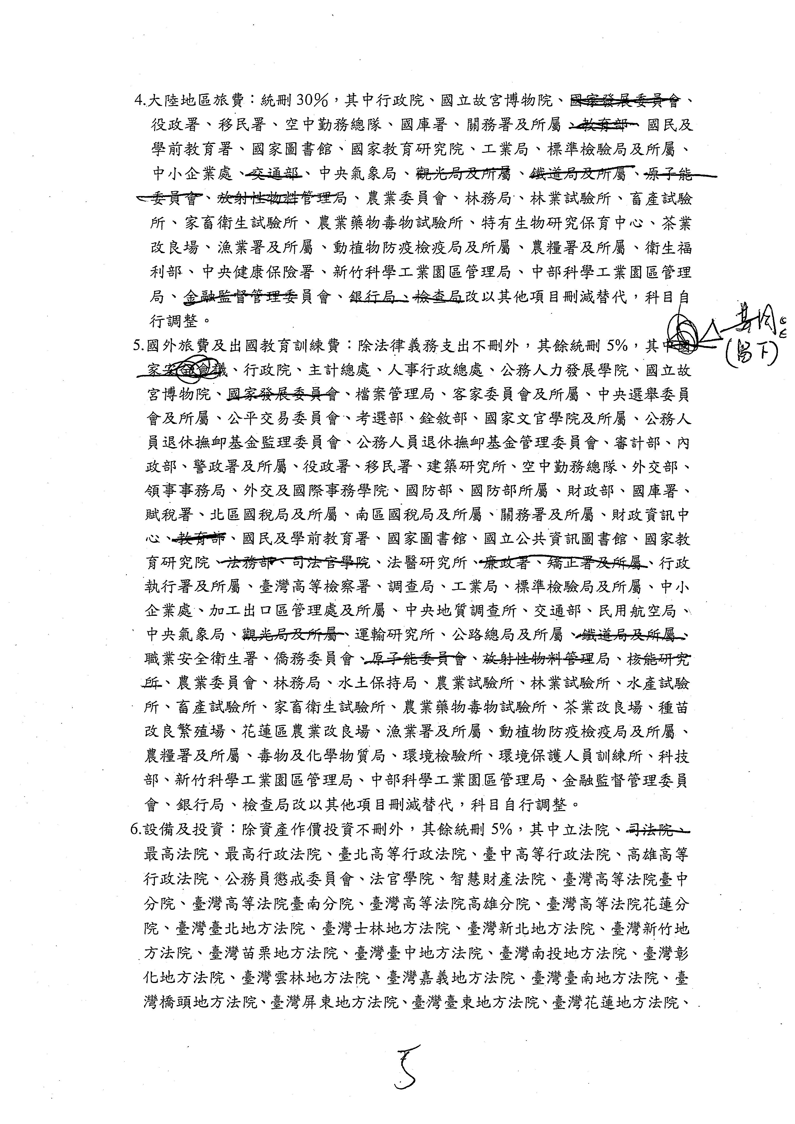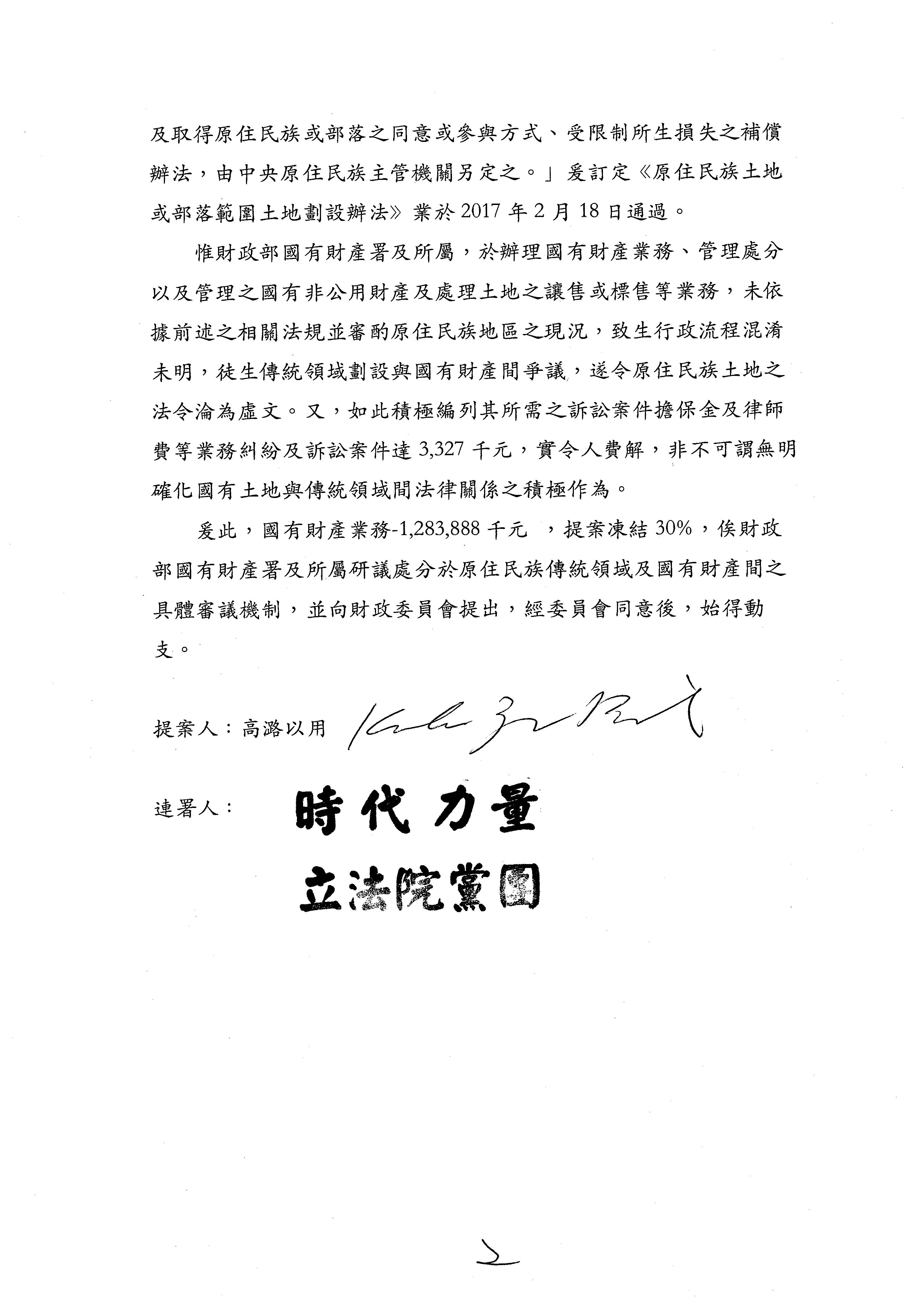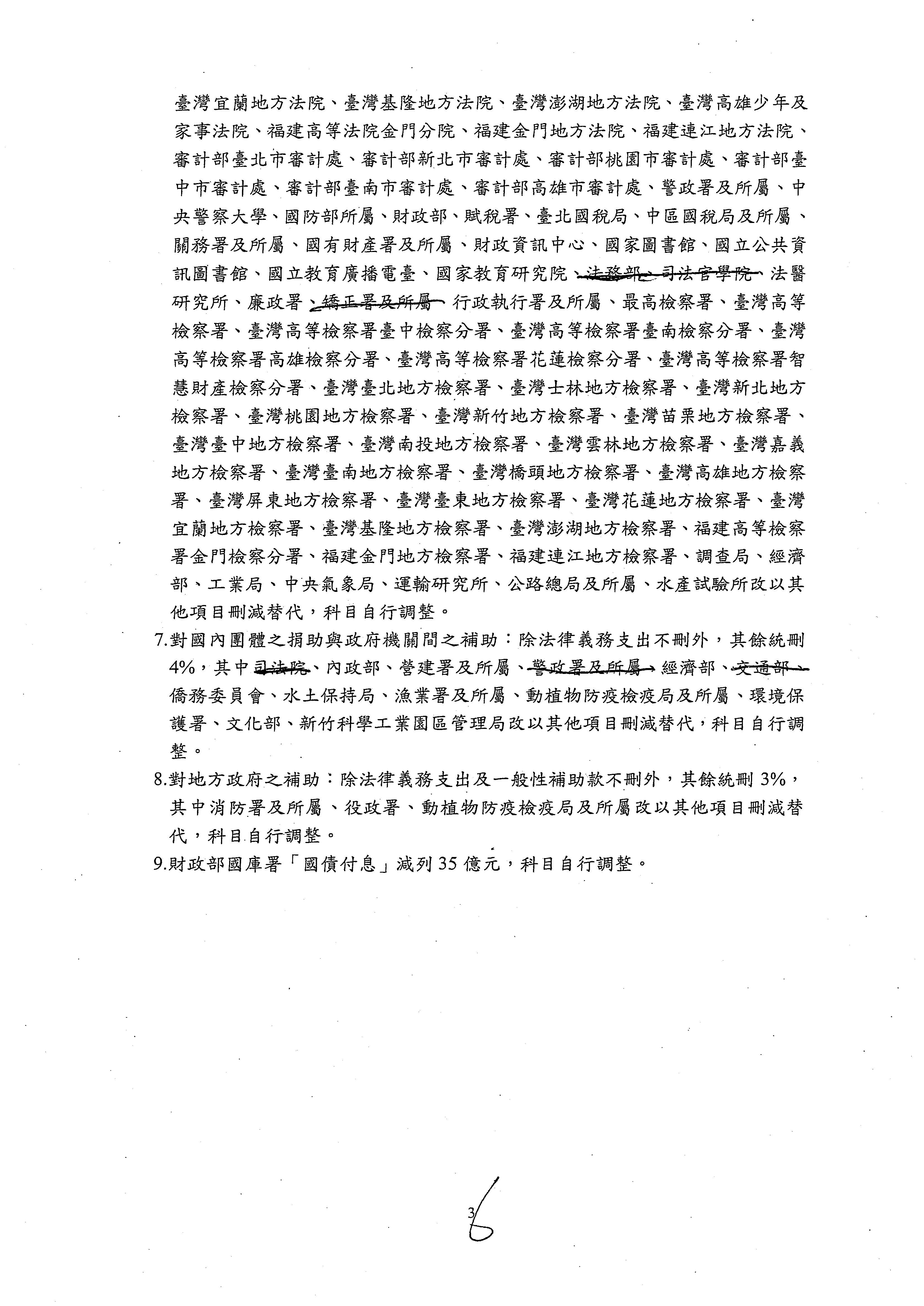 主席:針對本日上午通過之總預算案針對各機關及所屬統刪項目(附件二),現有時代力量黨團提案更正如附件。請宣讀。