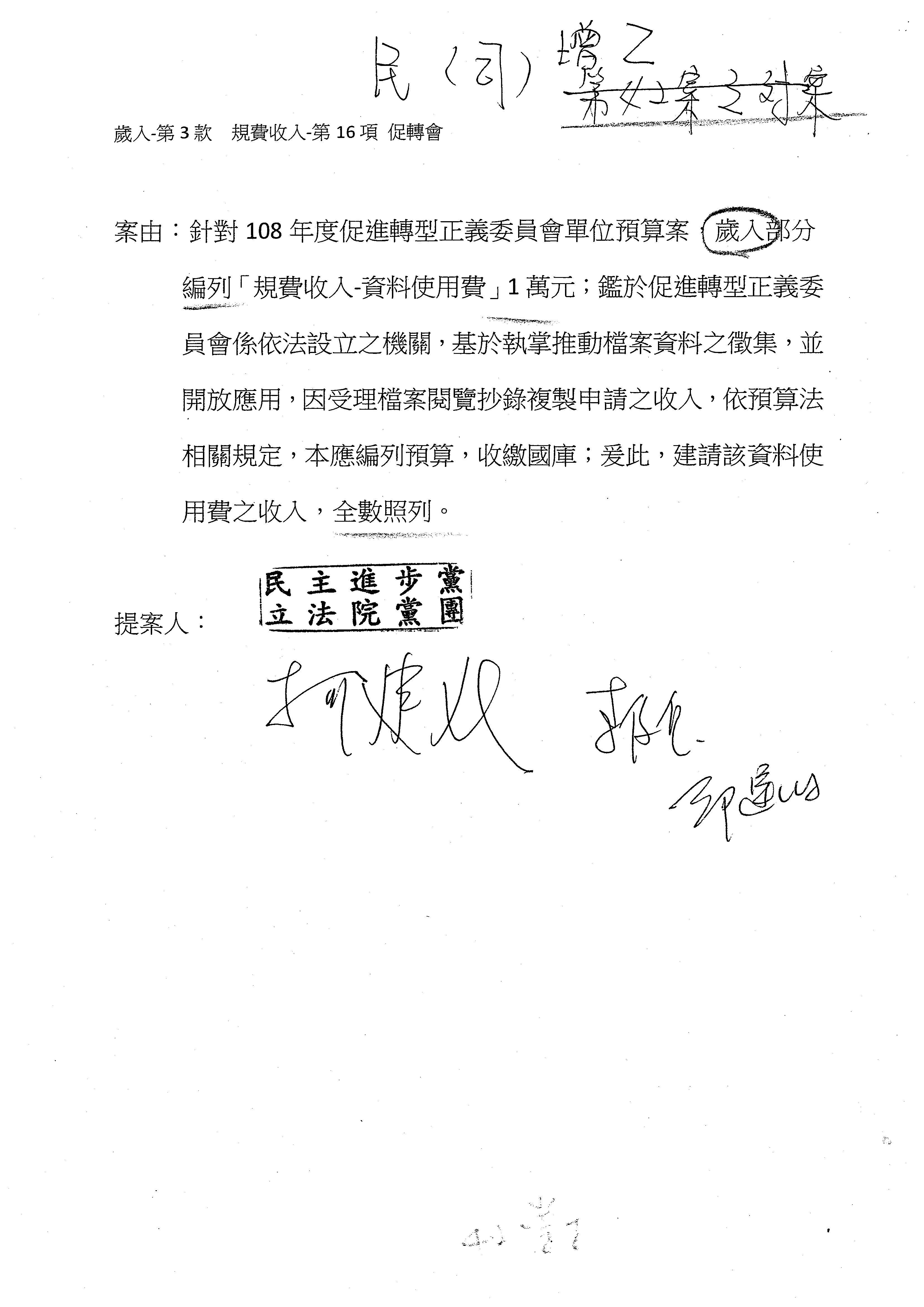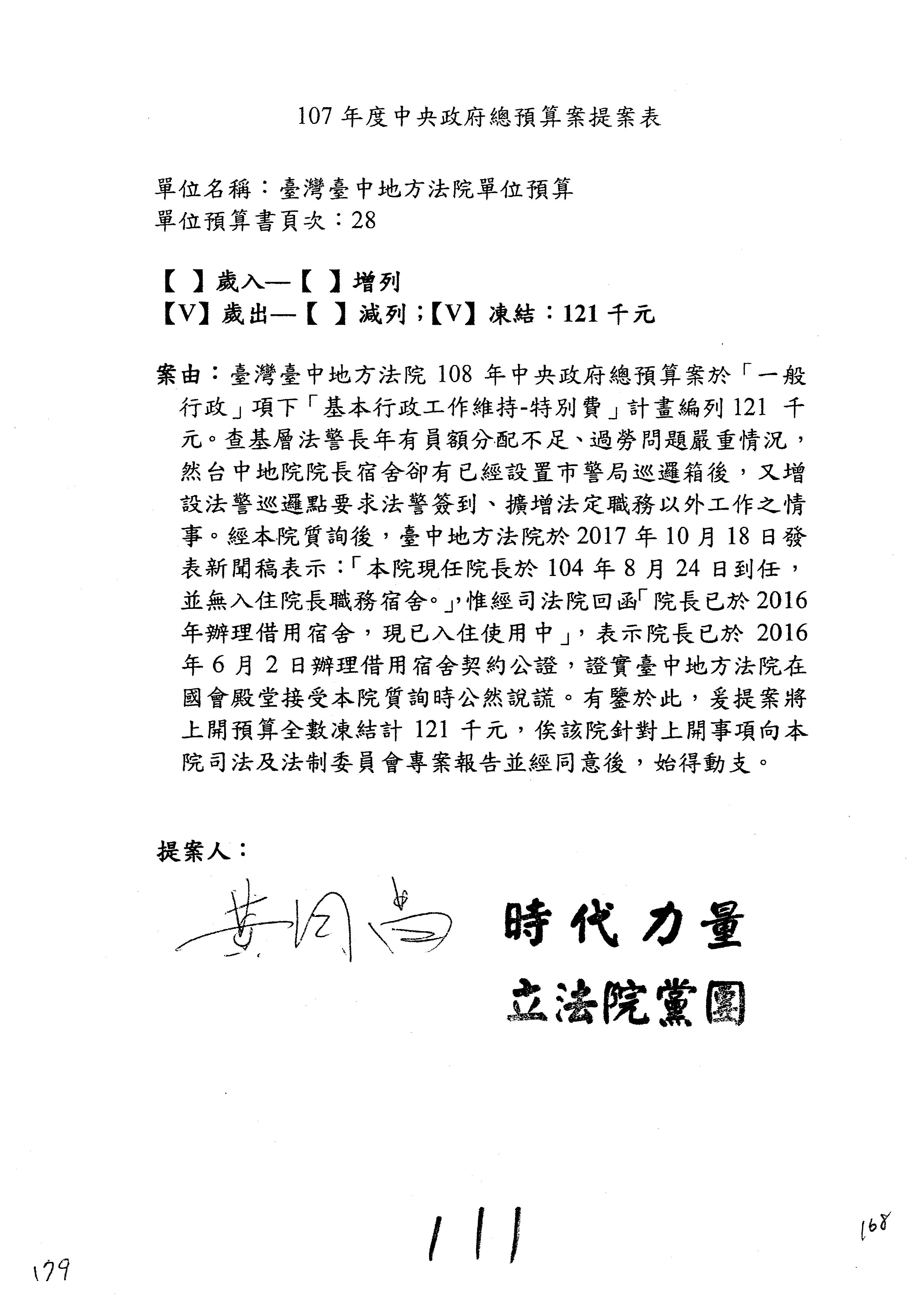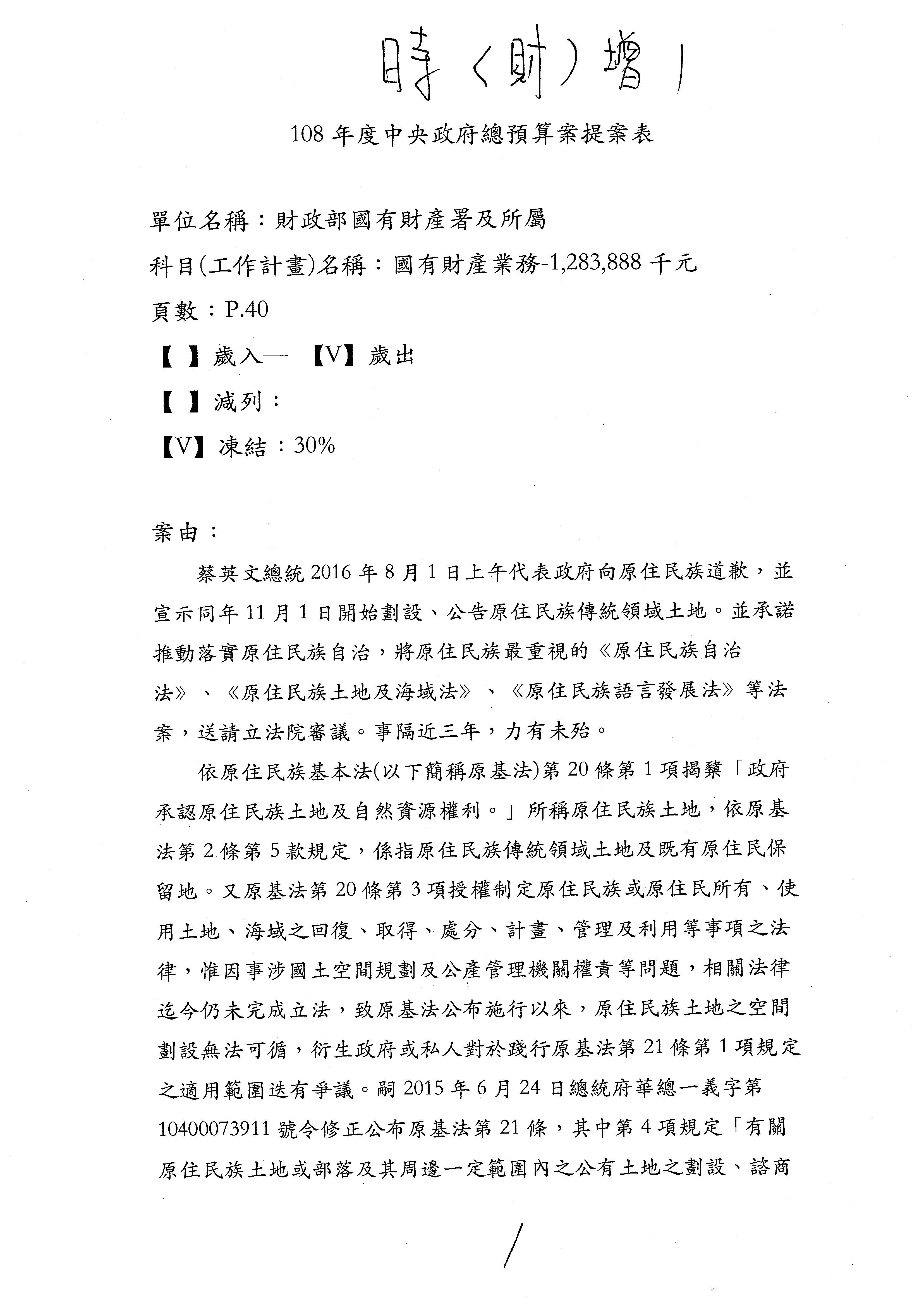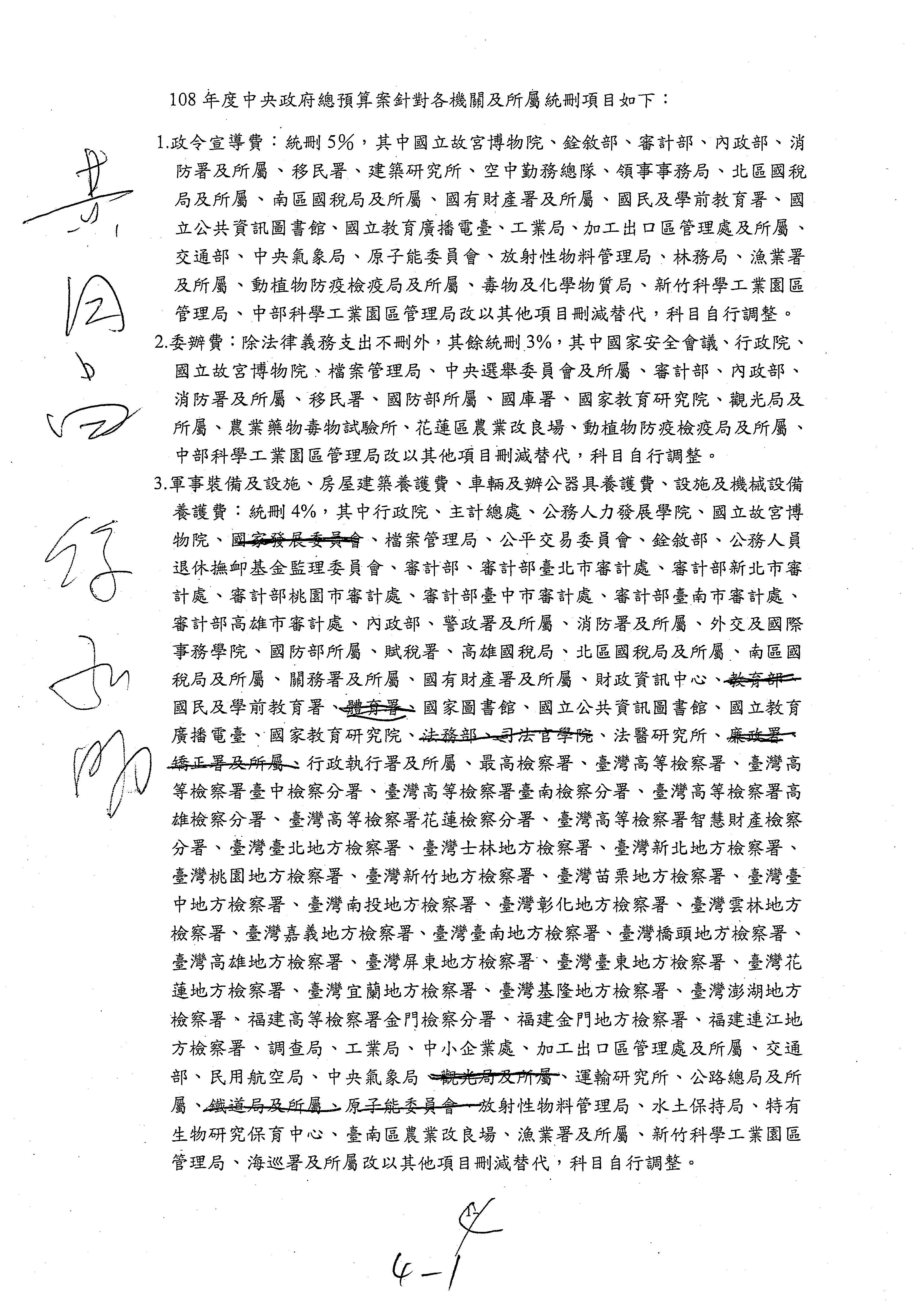 主席:針對本日上午通過之總預算案針對各機關及所屬統刪項目(附件二),現有時代力量黨團提案更正如附件。請宣讀。