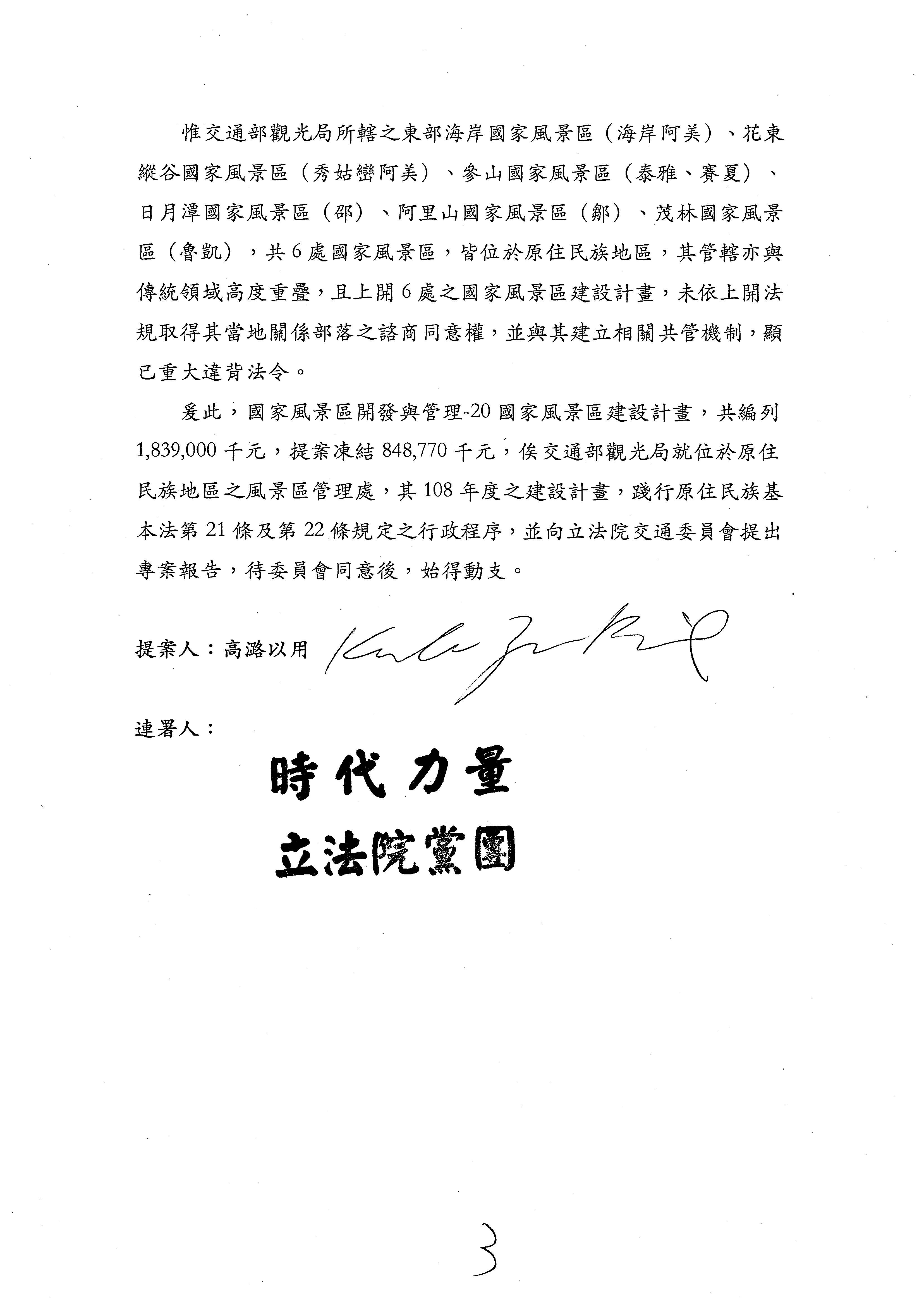 連署人:羅致政 鍾佳濱 林靜儀 黃秀芳 呂孫綾 王定宇 吳玉琴 陳 瑩 吳琪銘 管碧玲 楊 曜 陳明文 周春米 蔡適應 邱議瑩 段宜康 蔡易餘 邱志偉 邱泰源 吳思瑤 王榮璋 張廖萬堅 郭正亮 蘇治芬 李麗芬 洪宗熠 江永昌 陳歐珀 賴瑞隆 林岱樺 林淑芬 蘇巧慧 李俊俋 鍾孔炤 陳素月 許智傑 鄭運鵬 鄭寶清 蔡培慧 陳賴素美 劉建國 張宏陸 何欣純 余宛如 劉世芳 吳秉叡 葉宜津 黃國書 施義芳 李昆澤 林俊憲 尤美女 陳曼麗 陳亭妃 蘇震清 吳焜裕 劉櫂豪 陳靜敏