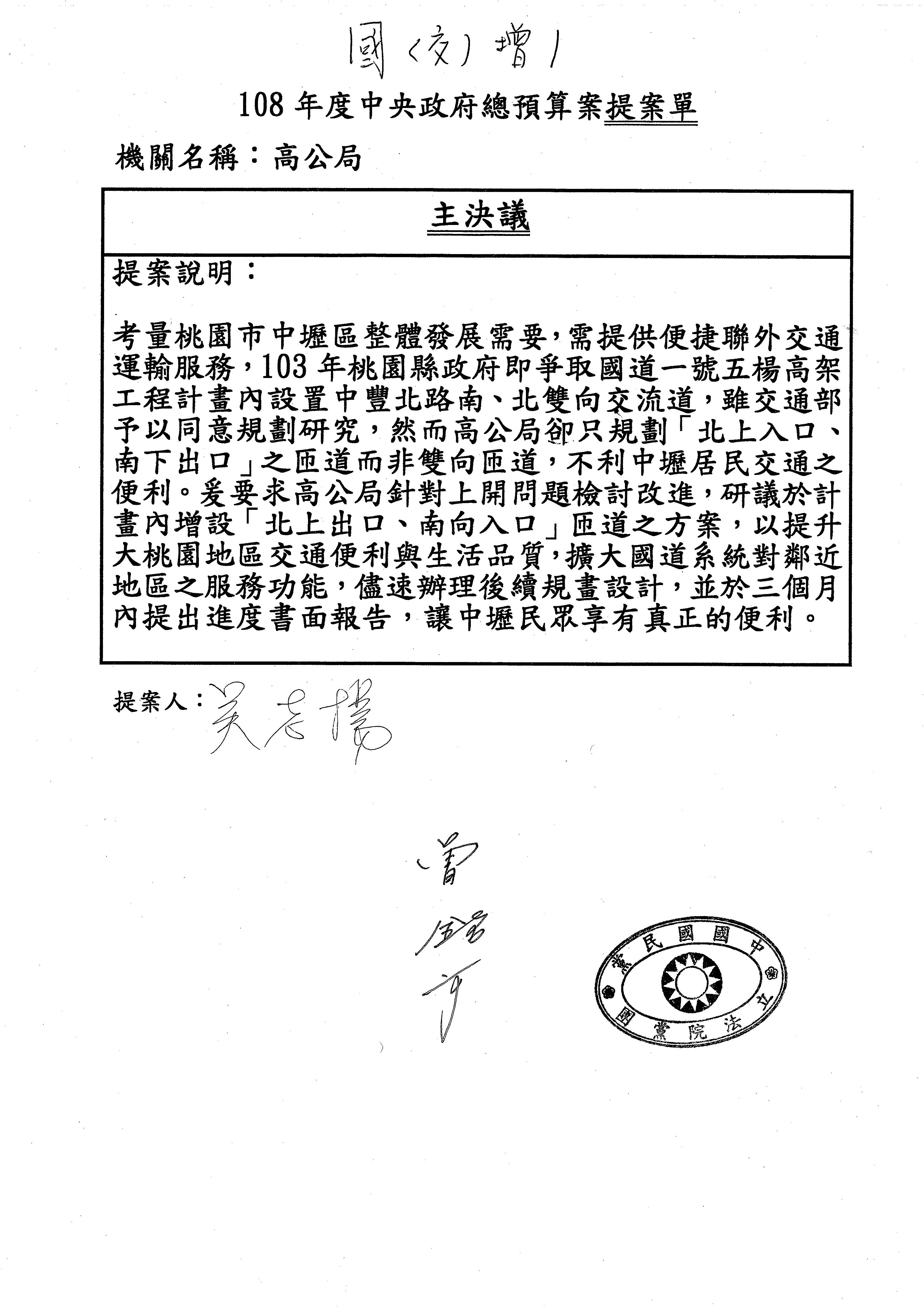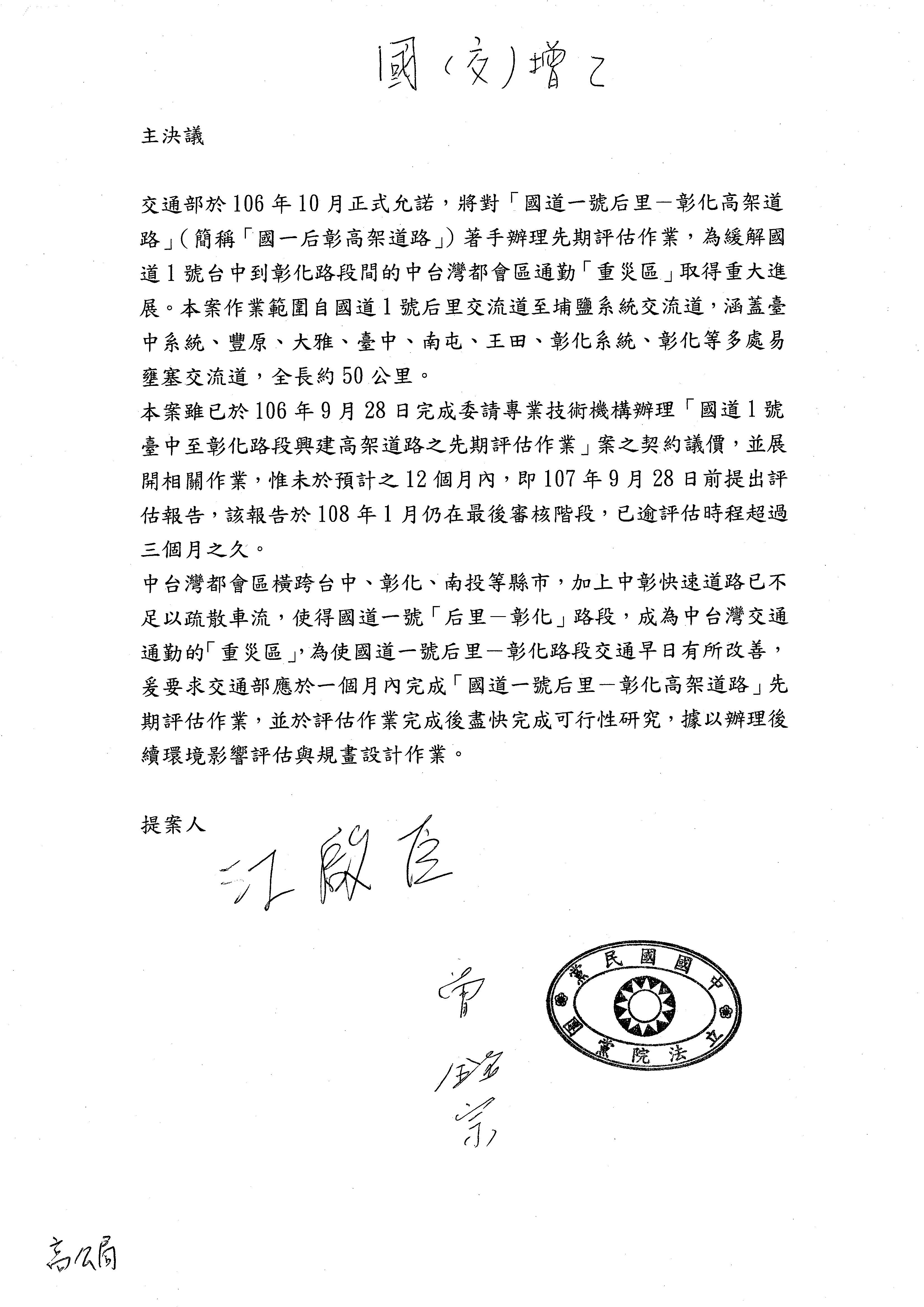 主席:請問院會,對國民黨黨團新增第1案有無異議?(無)無異議,本案照案通過。